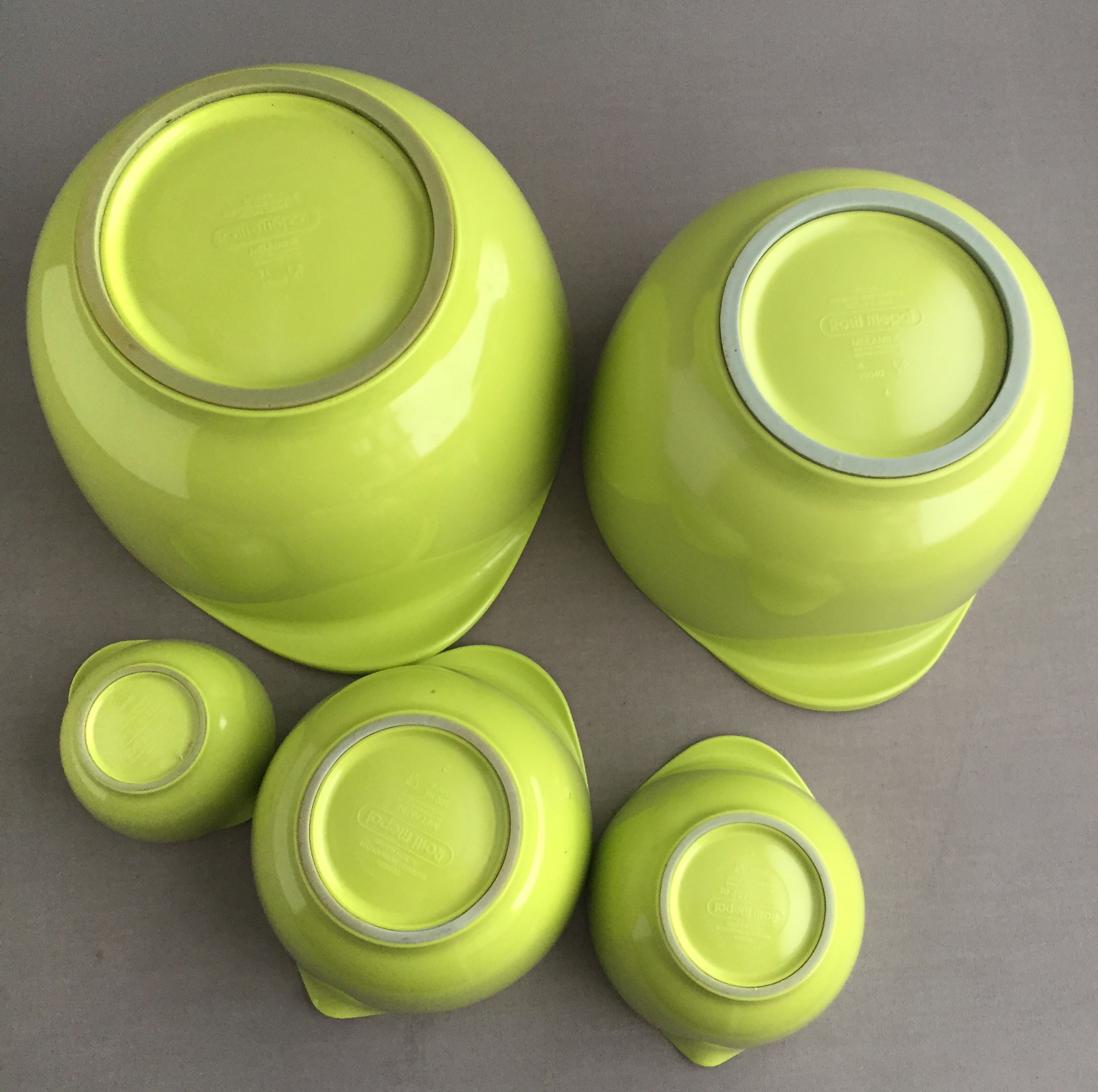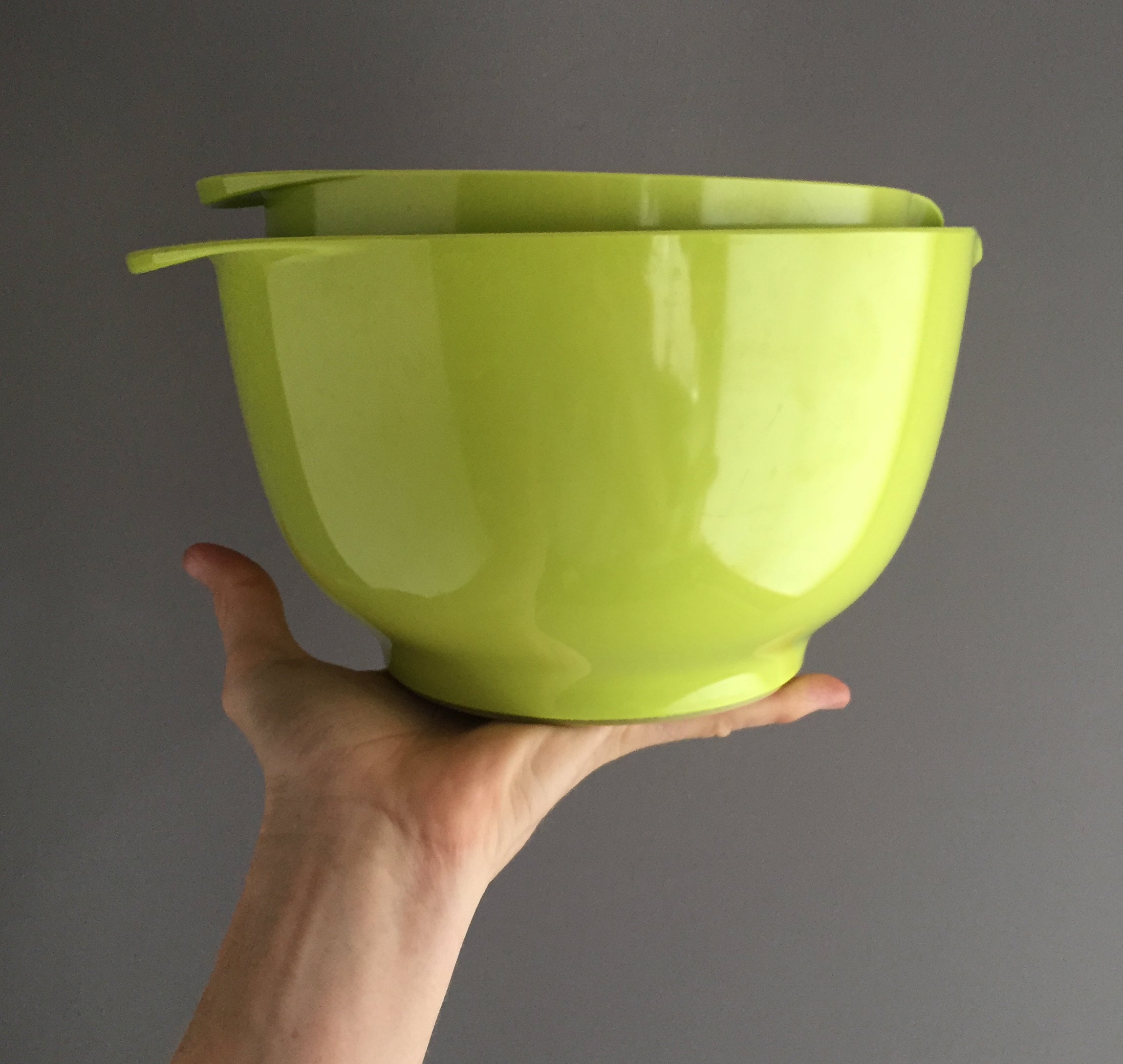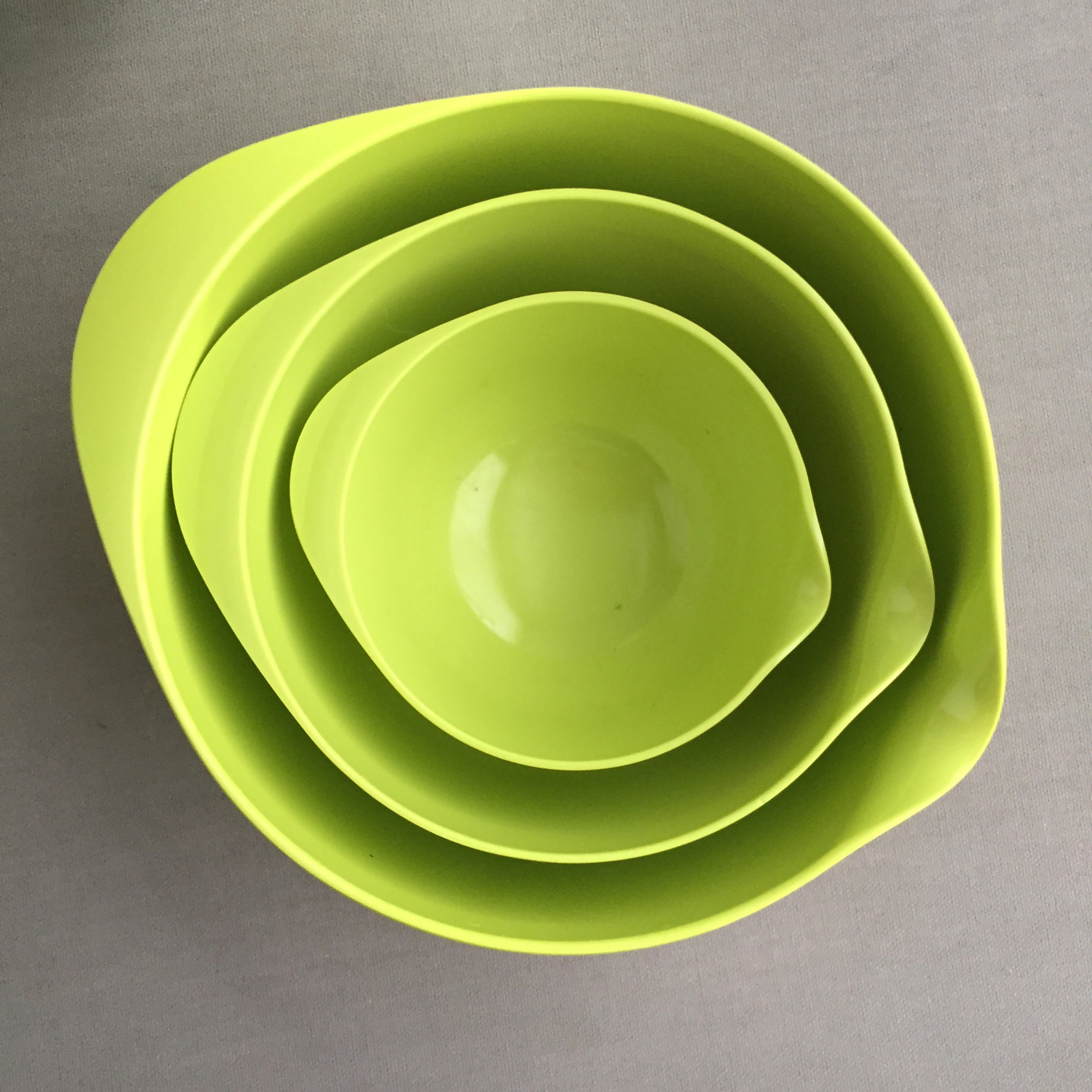 This is the lime green version. The bowls nest into each other for practical storage. This is a set of 6 bowls .