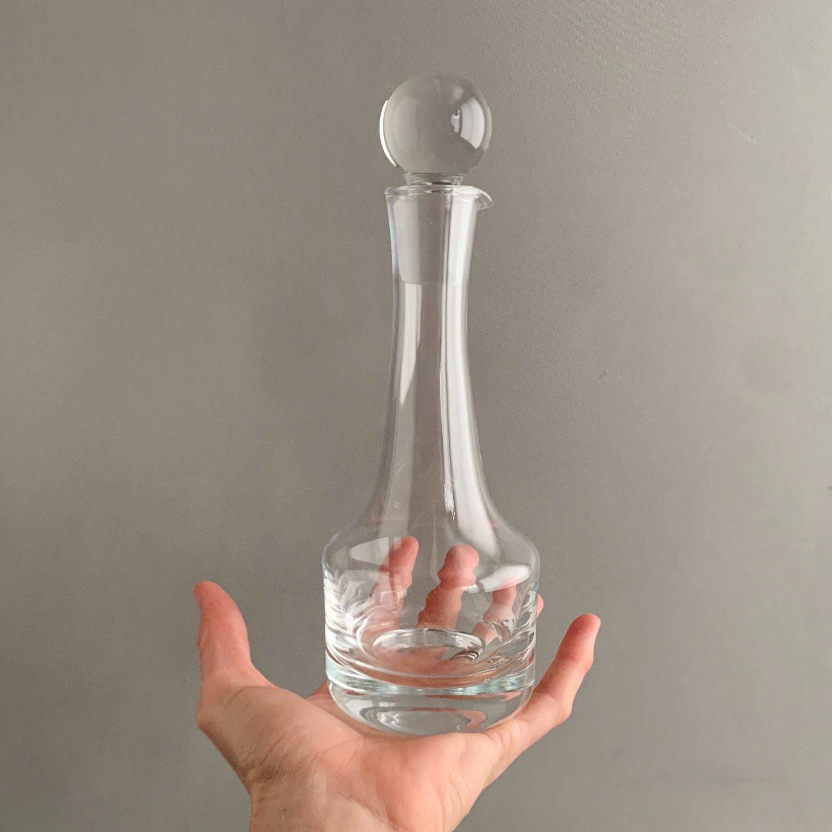 A beautiful modernist quality crystal glass oil/ vinegar decanter- no makers mark but looks like Dartington crystal to me ( quality and style) long elegant neck with spout and a weighty ground glass stopper. A beautiful dispenser for the table