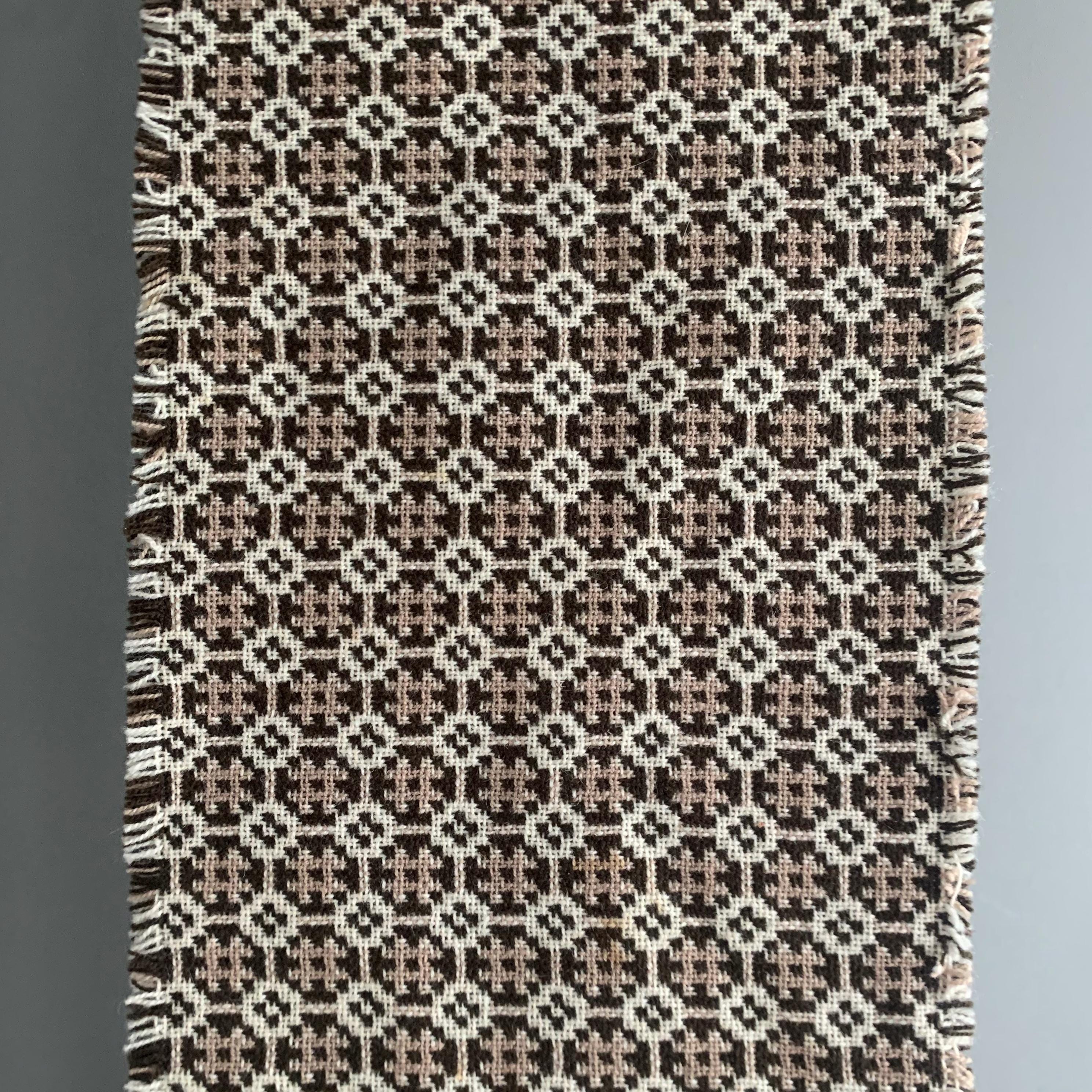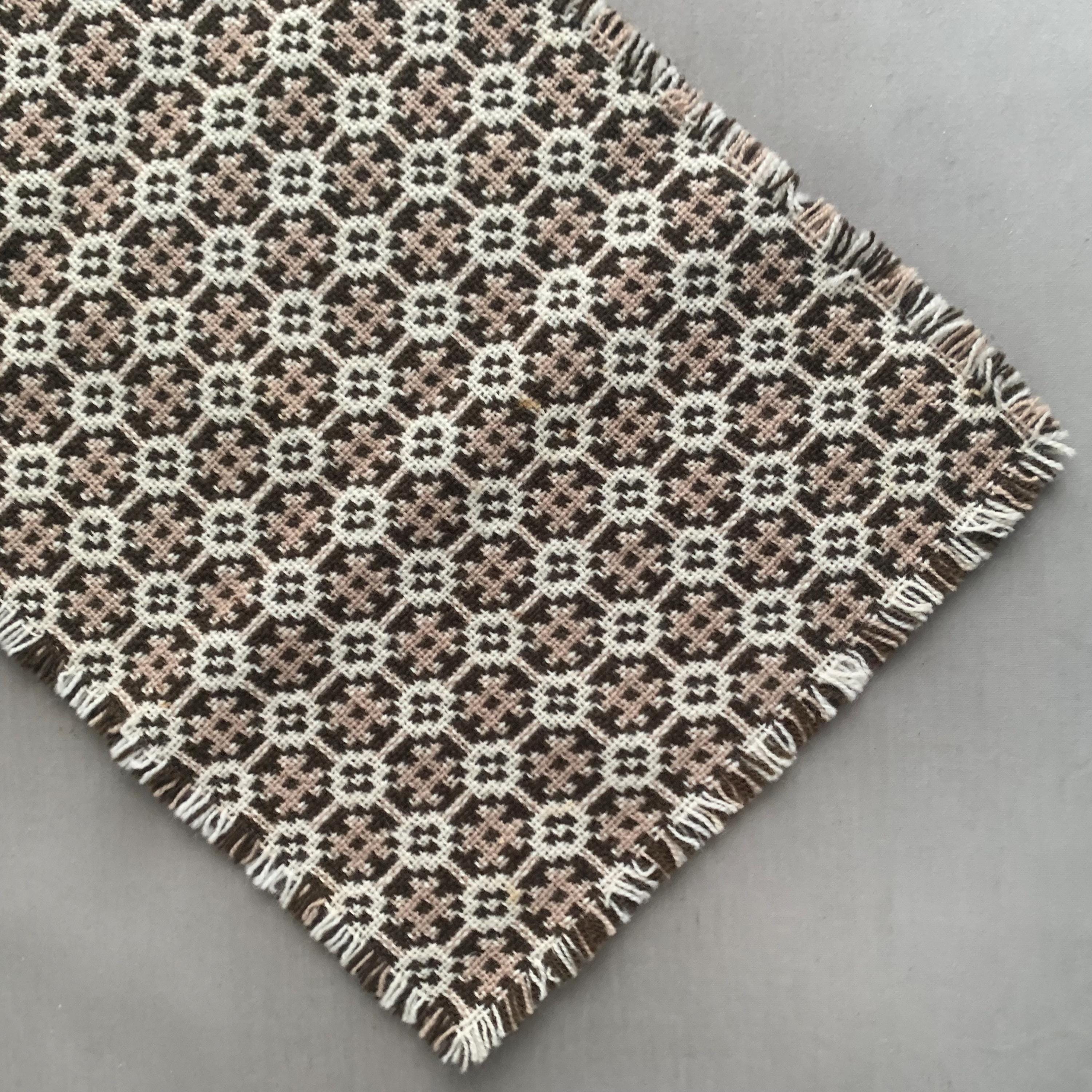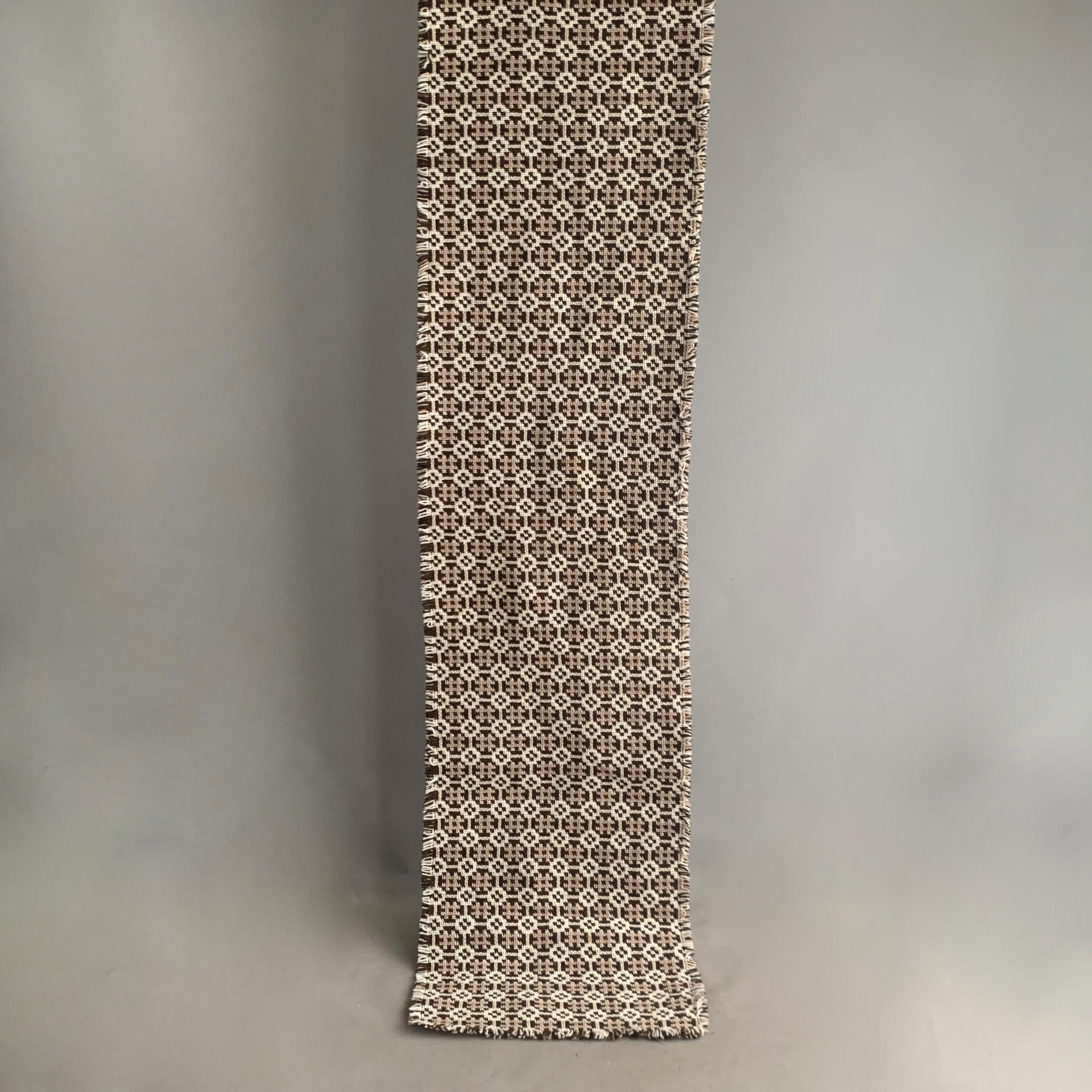 welsh wool table runner. A classic Welsh tapestry wool weave in brown , cream and beige with a fringed edge. A decorative table runner that will also protect wood from heat damage.