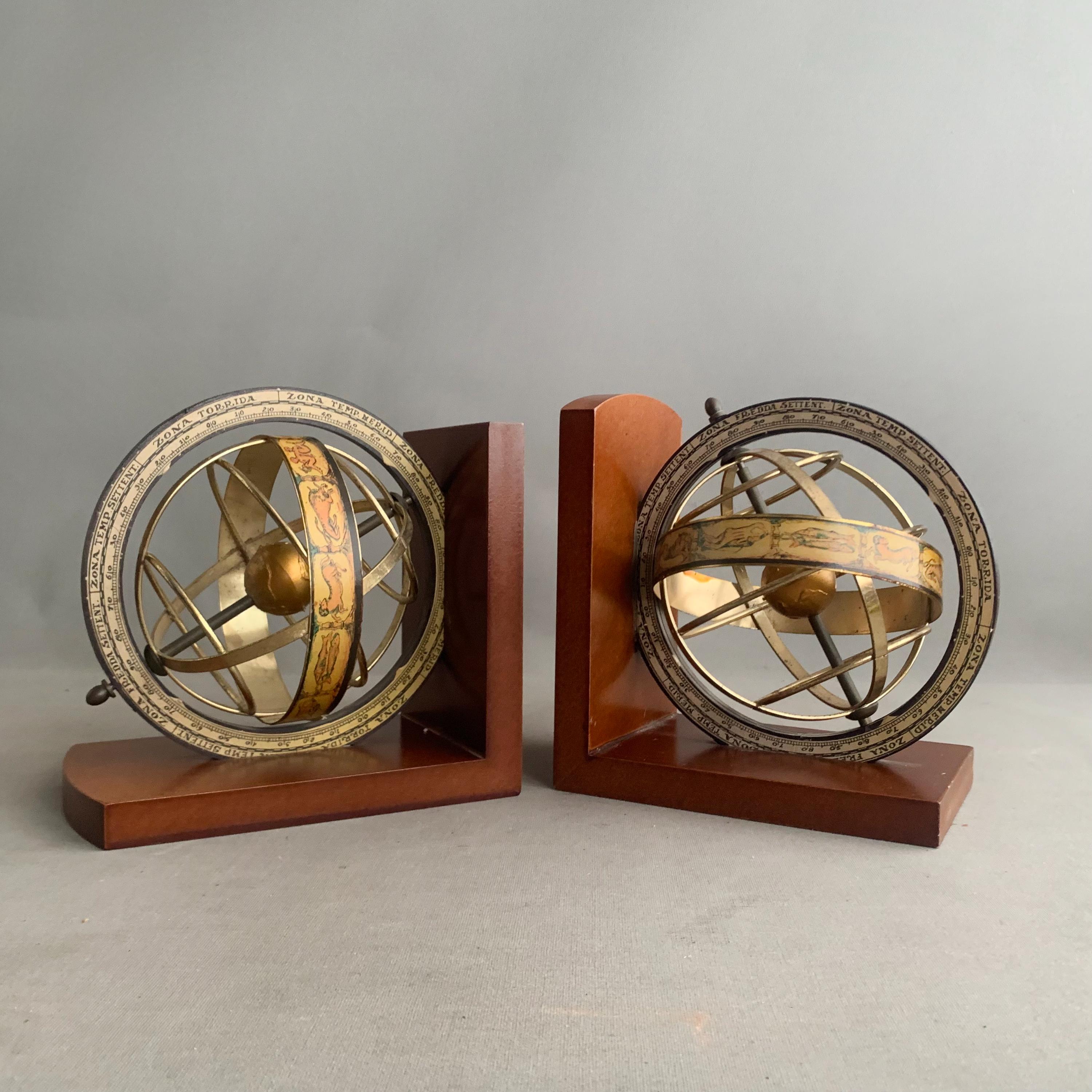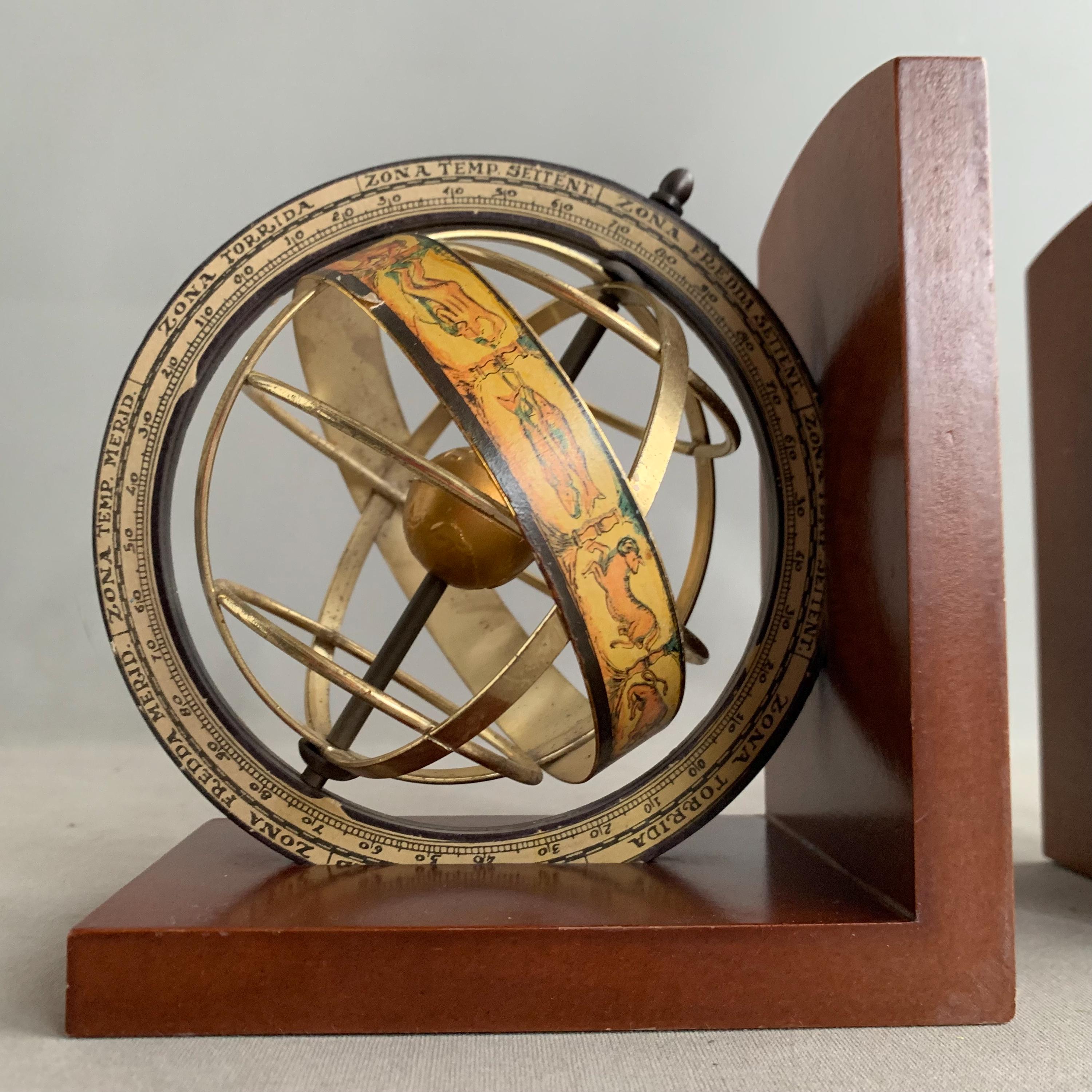 Armillary Sphere Astrological Zodiac Globe Bookends. In exellent condition