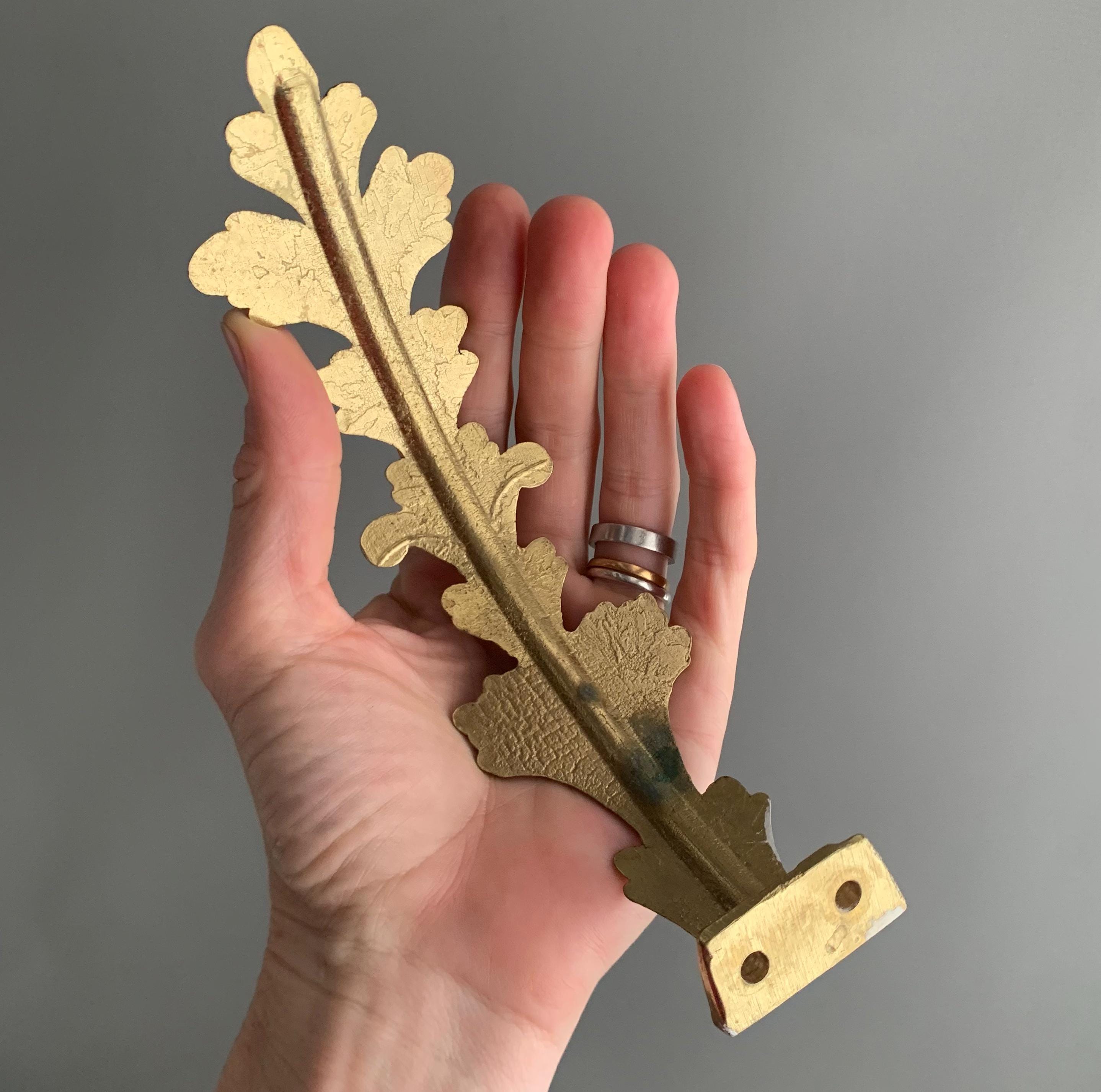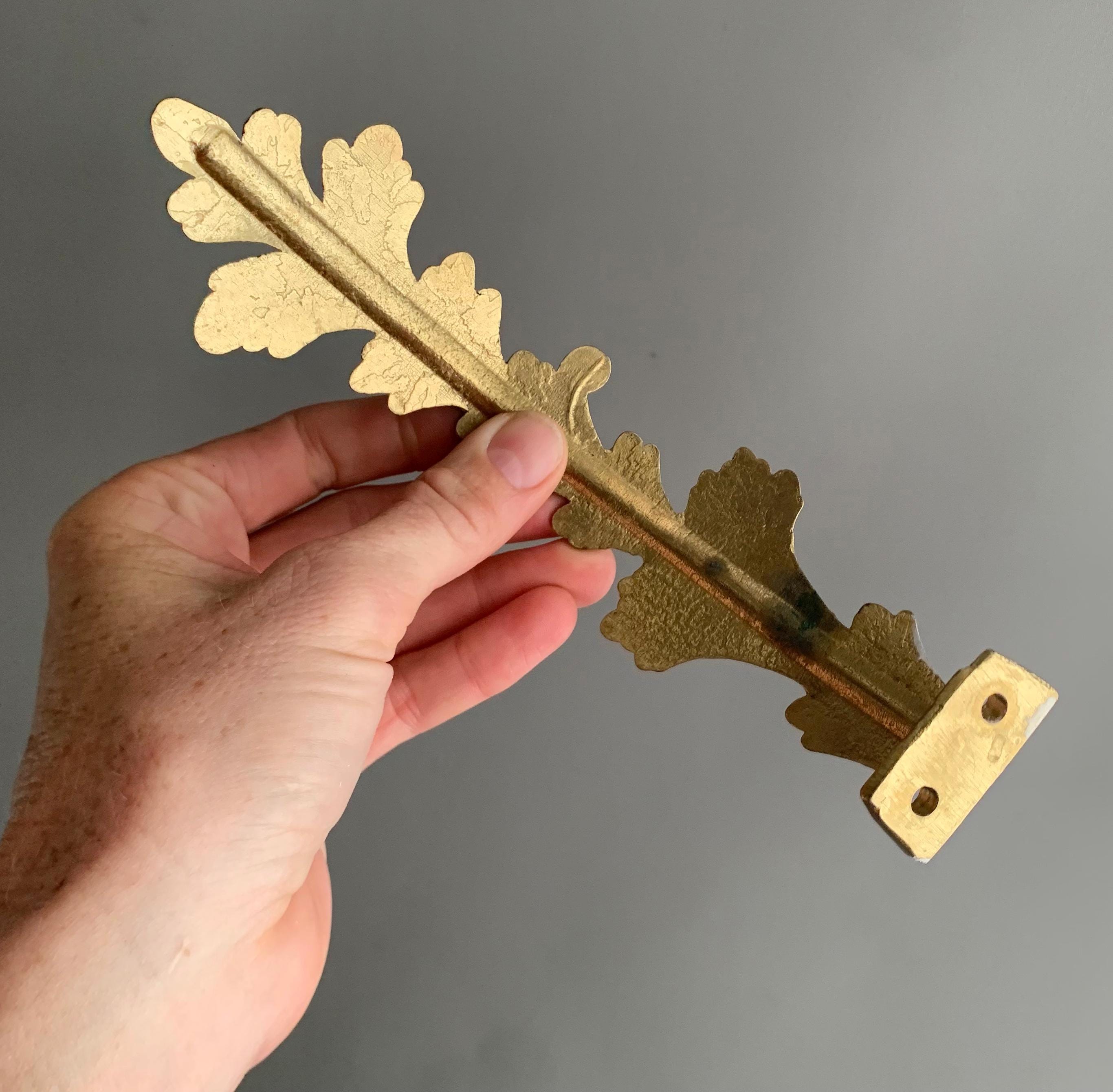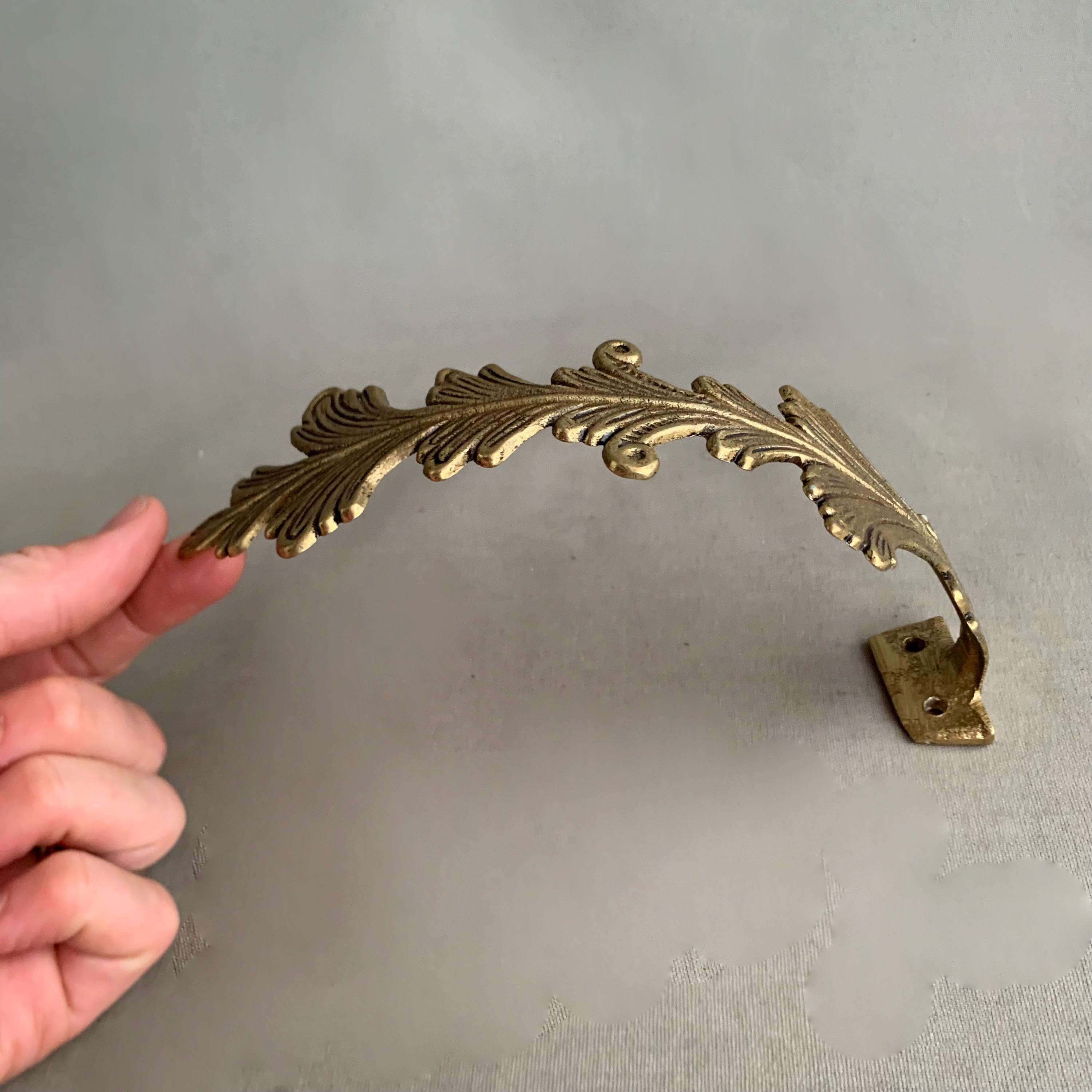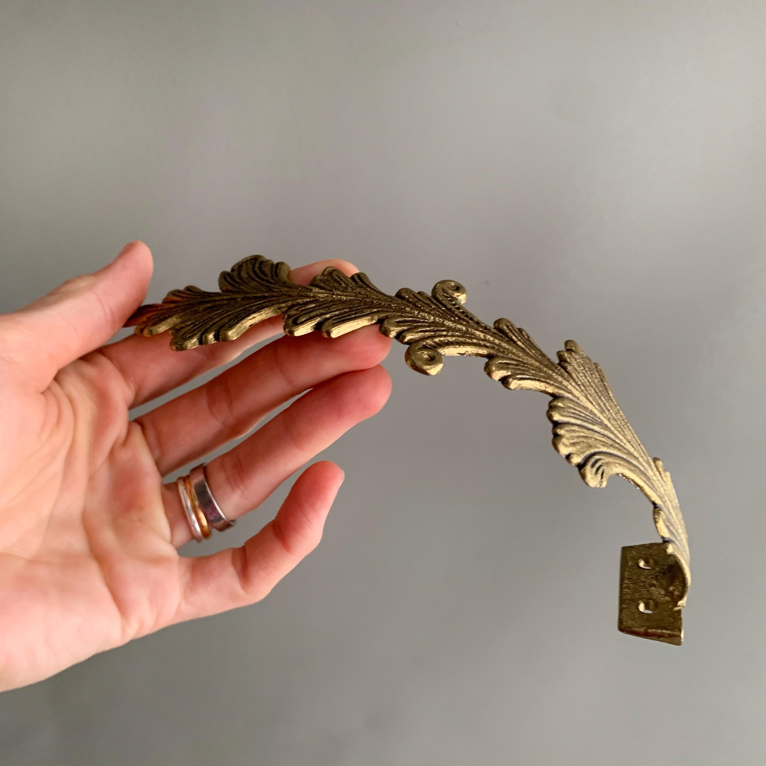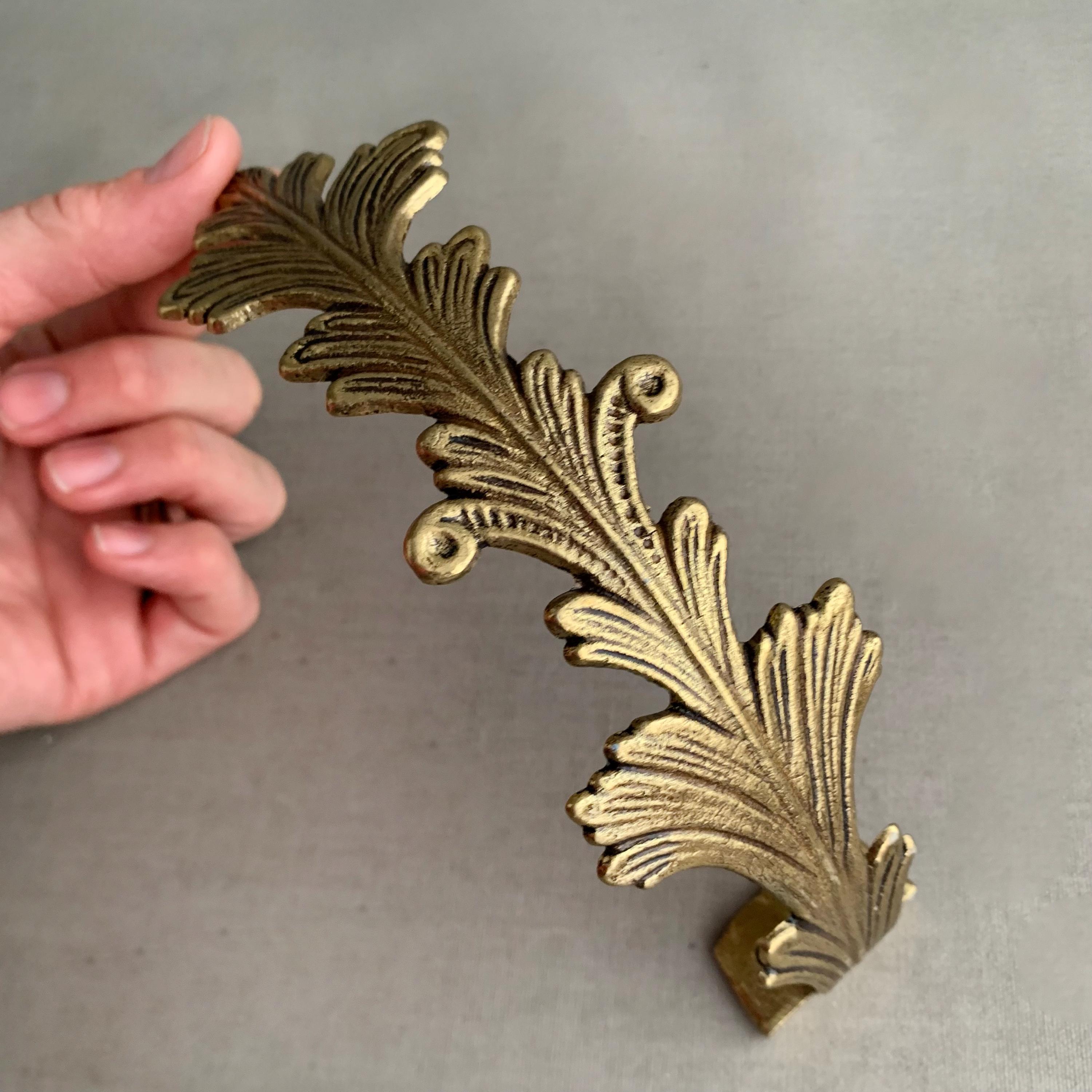 A Pair of vintage Acanthus solid brass curtains tiebbacks in a leaf/ laural design .Few signs of age used overall in good condition (please check the pictures ) length 9.5'' - 24 cm. width 2'' - 5 cm.