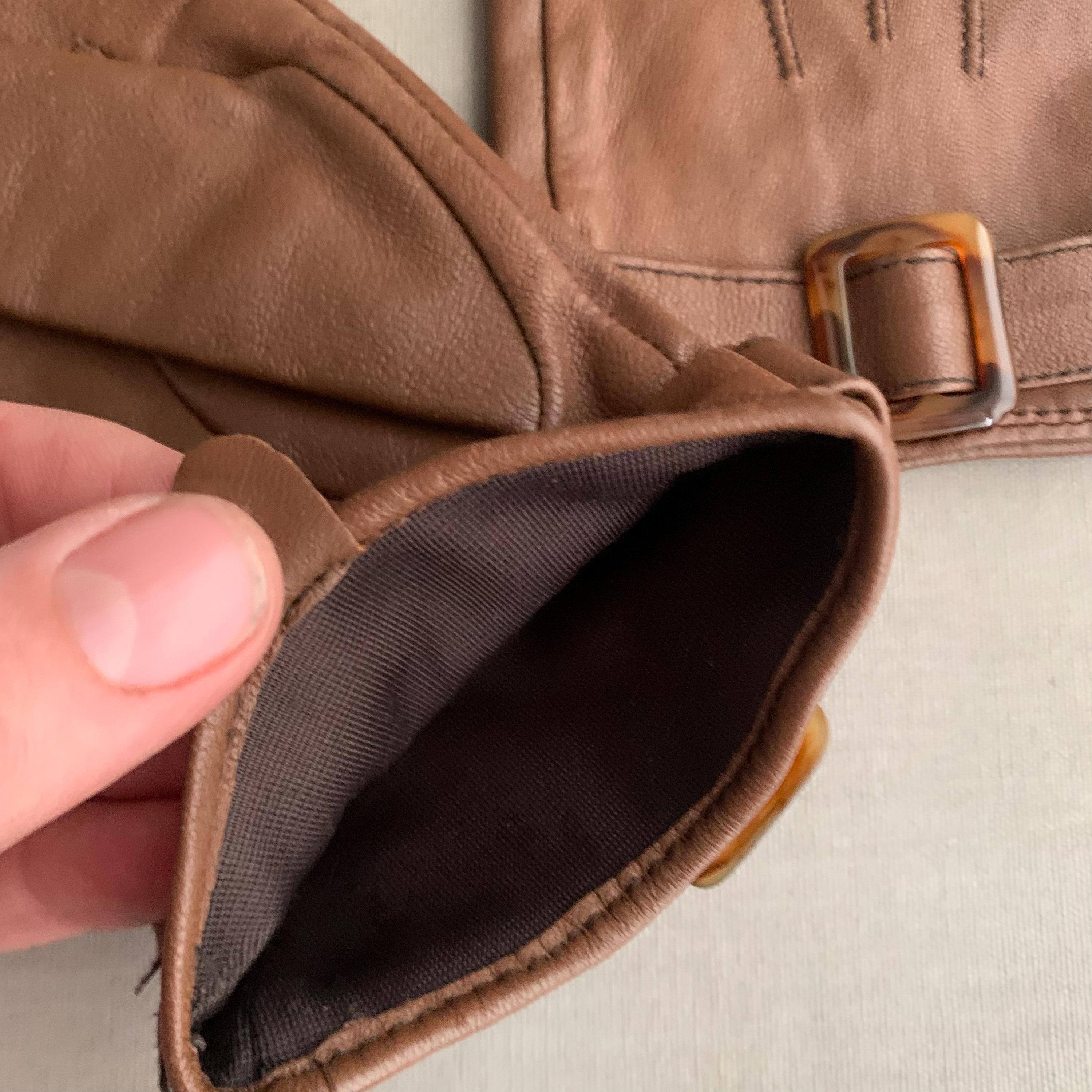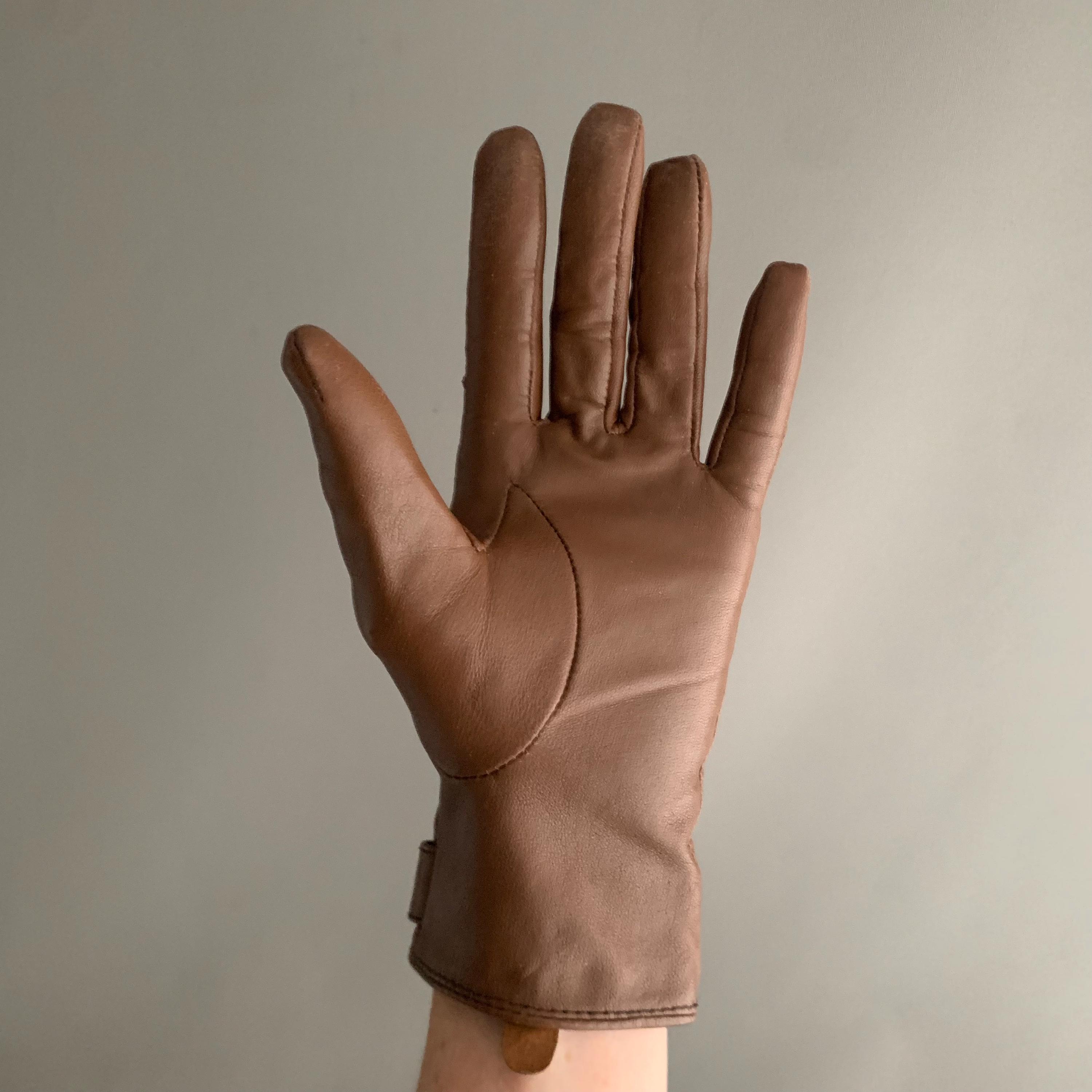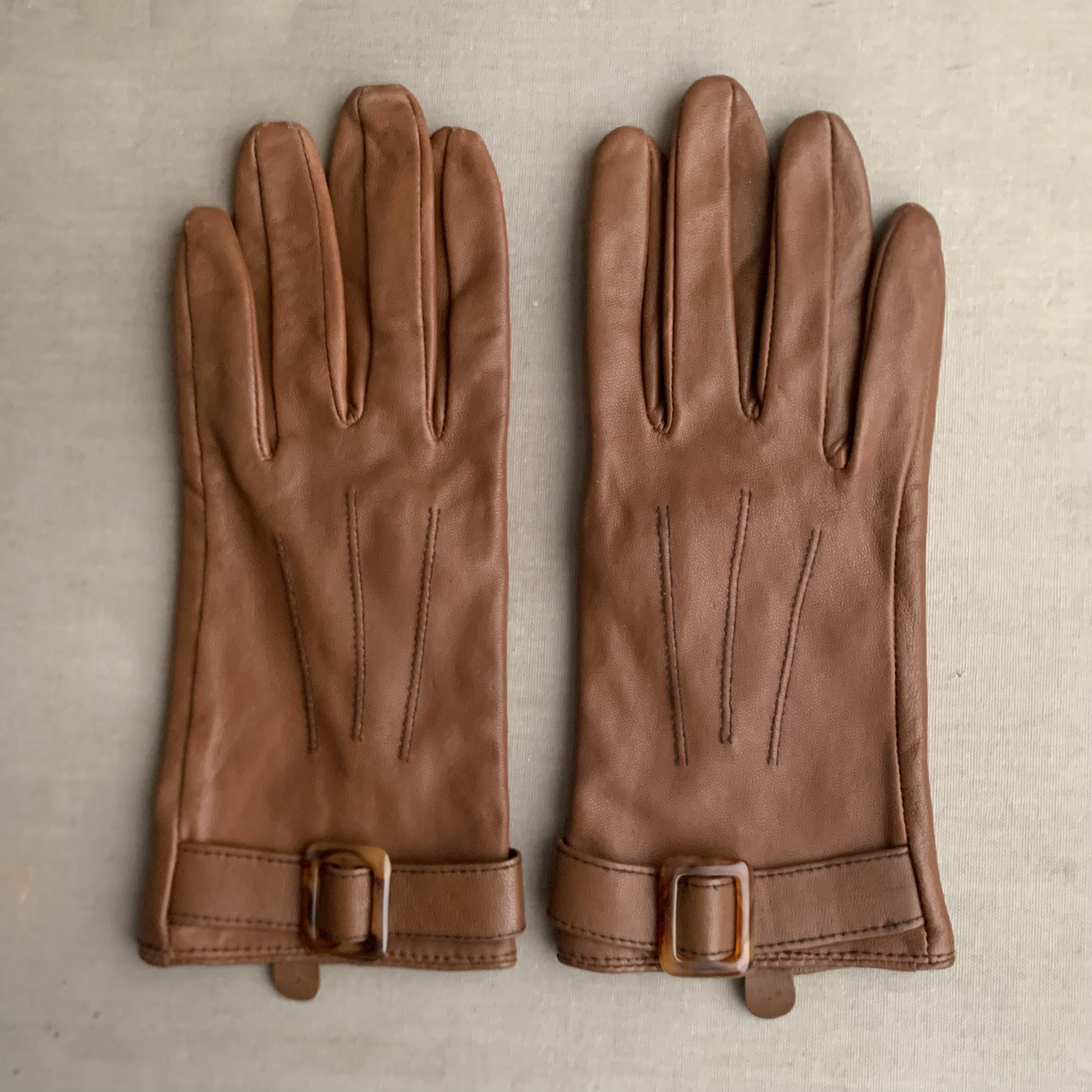 A smart pair of butter soft leather lined ladies gloves. Fully lined and in exellent condition. Buckel detail on the cuff. They look very elegant on and being lined they are nice and warm. Good as new , would make a lovely gift