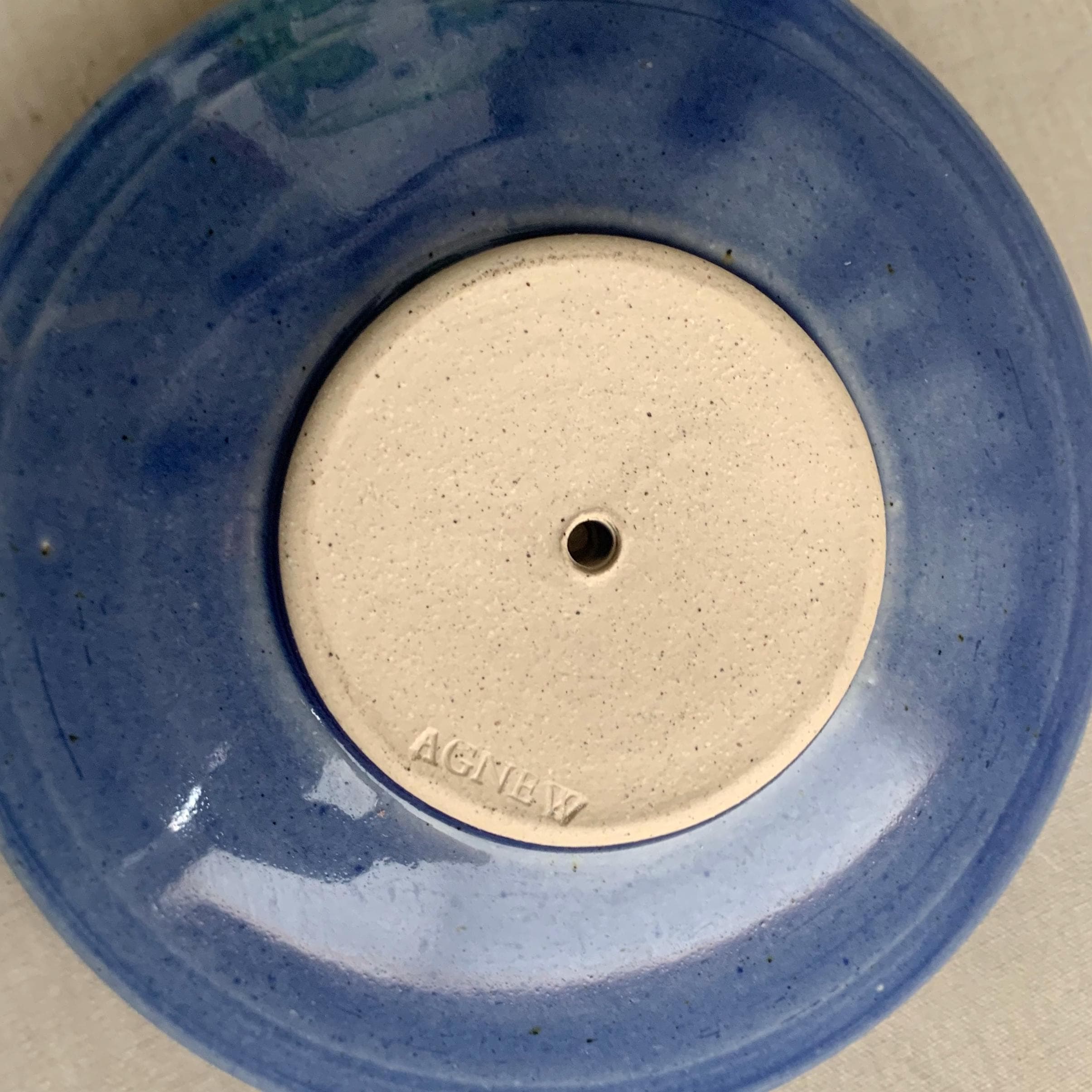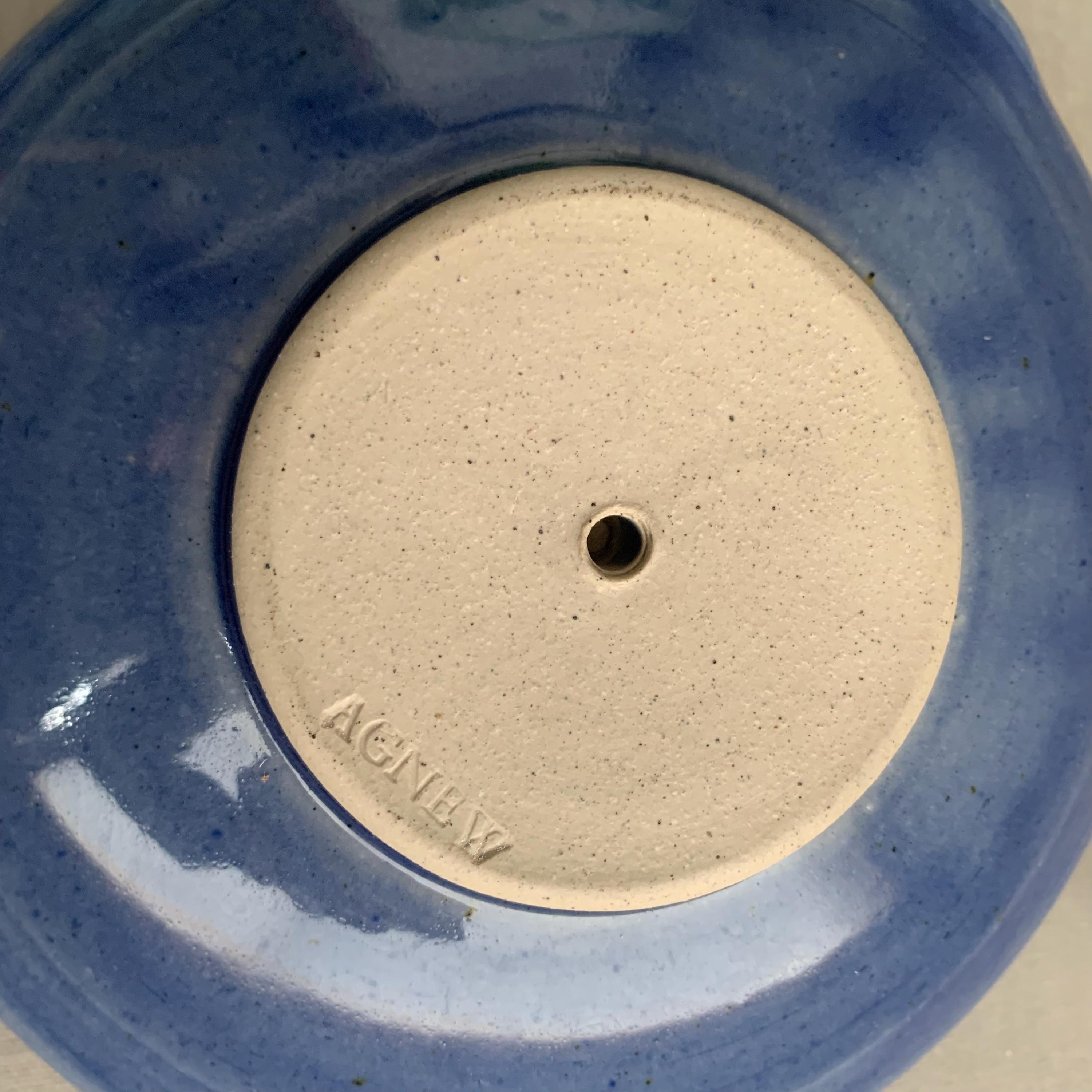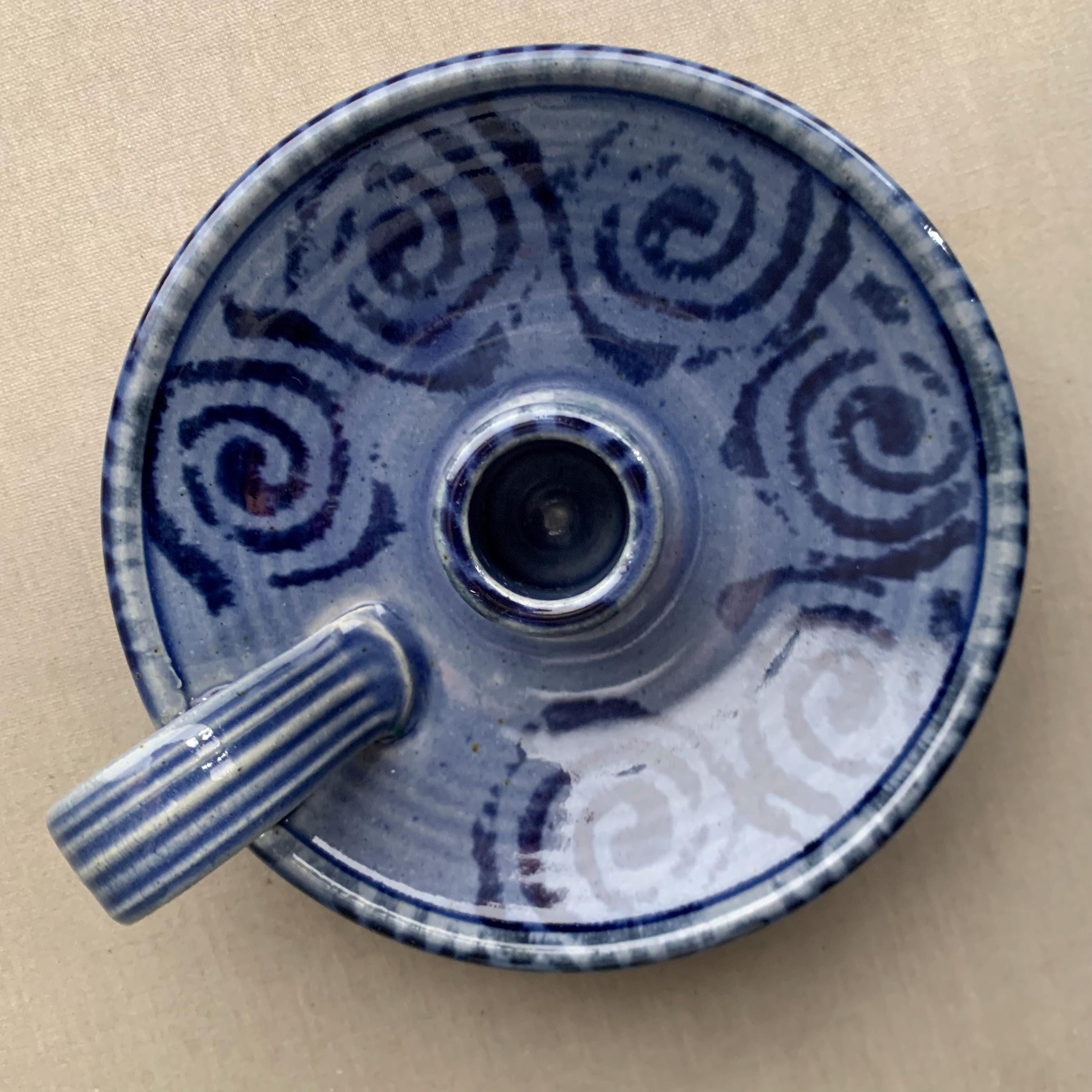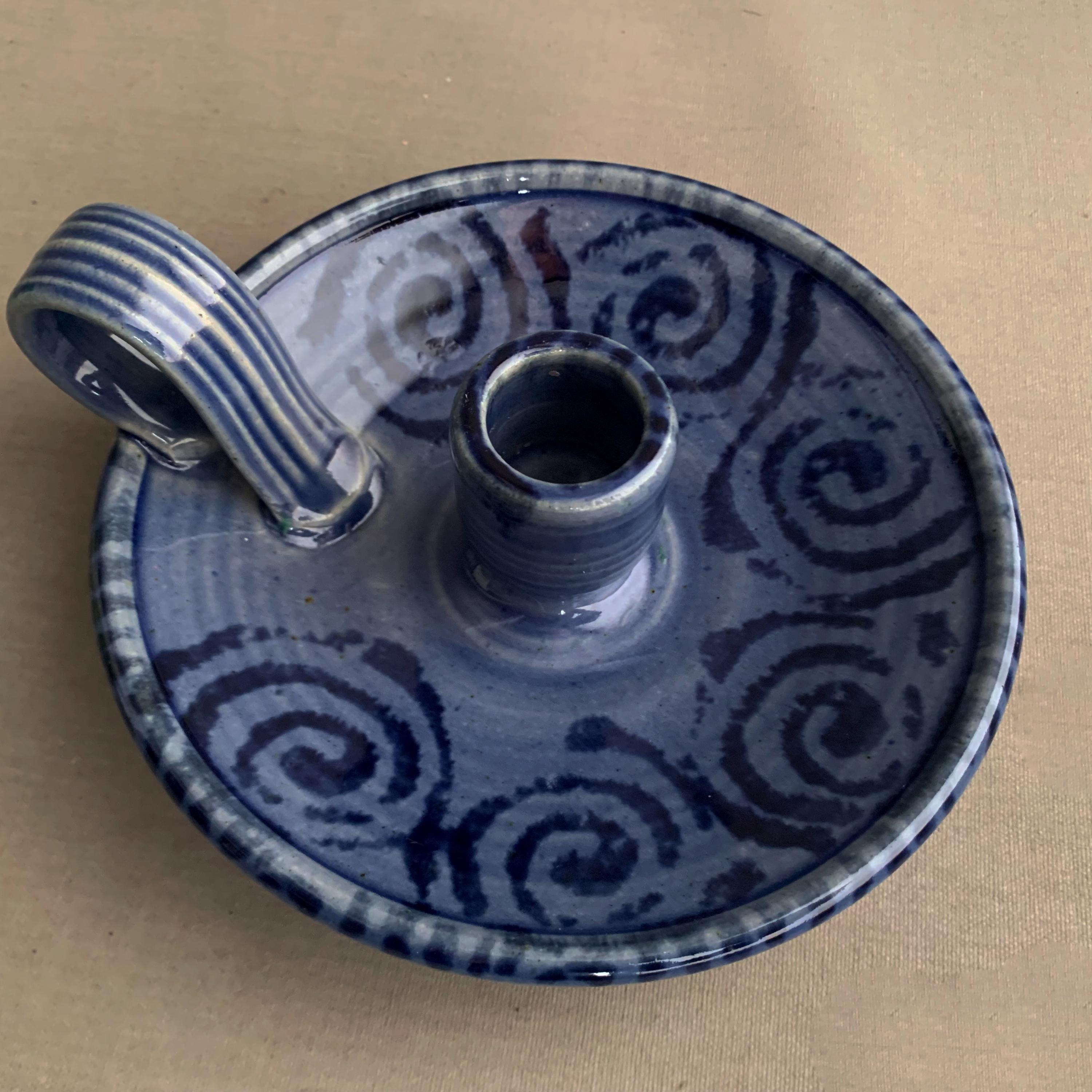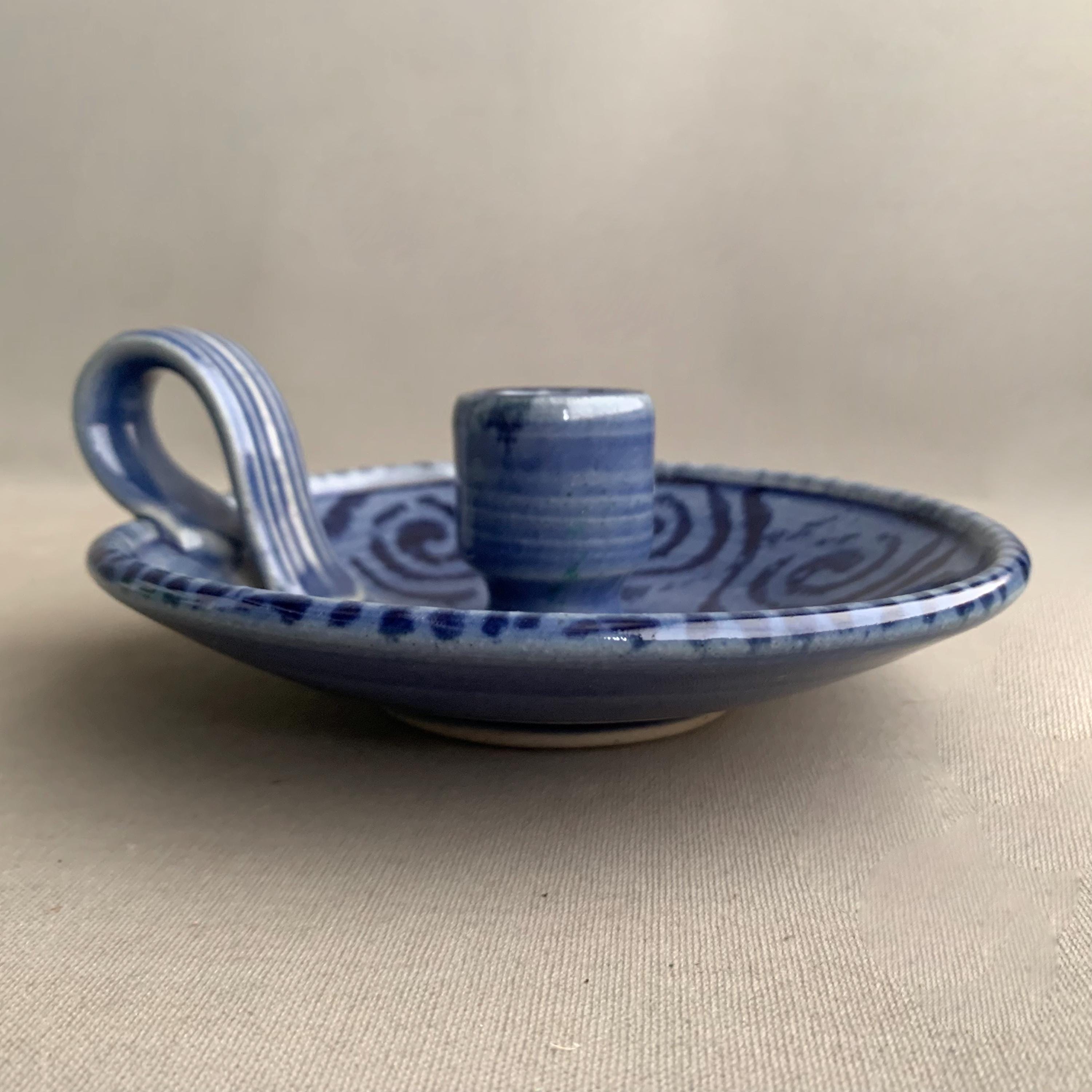 Beautiful hand thrown and hand painted glazed stoneware Tom Agnew Pottery candle stick holder co tyrone in a classic wee-willy-winkie style. Holds a standard dinner candle