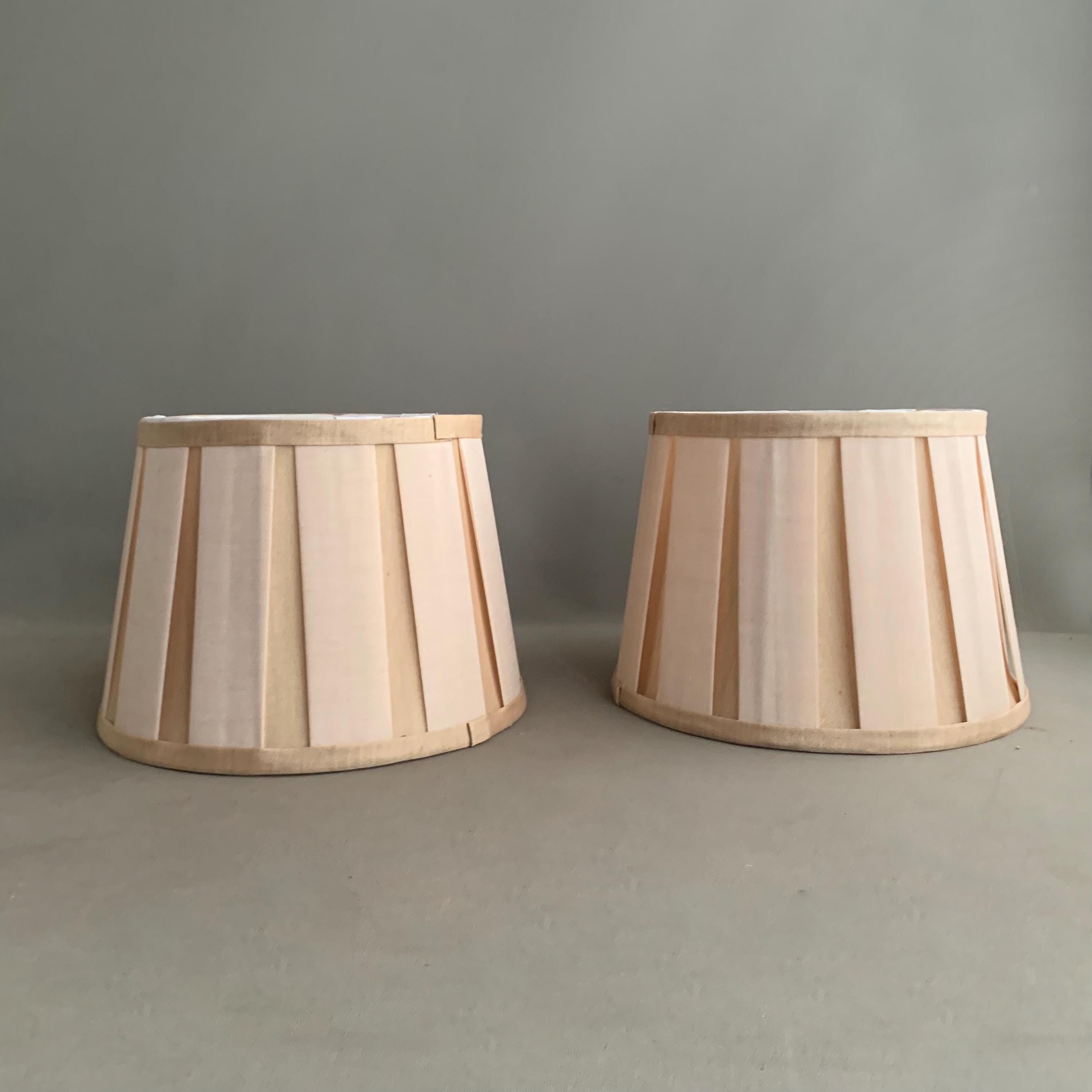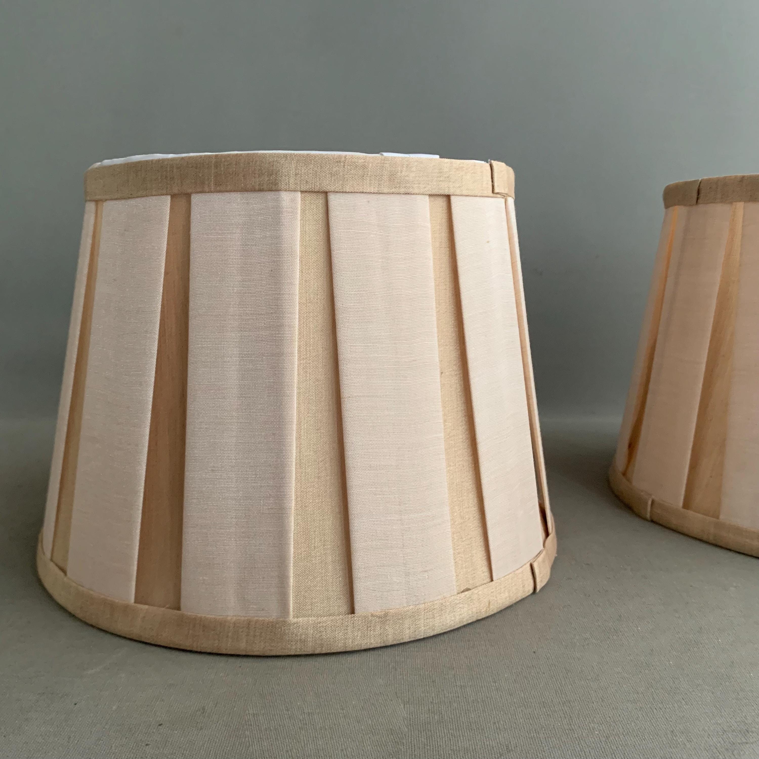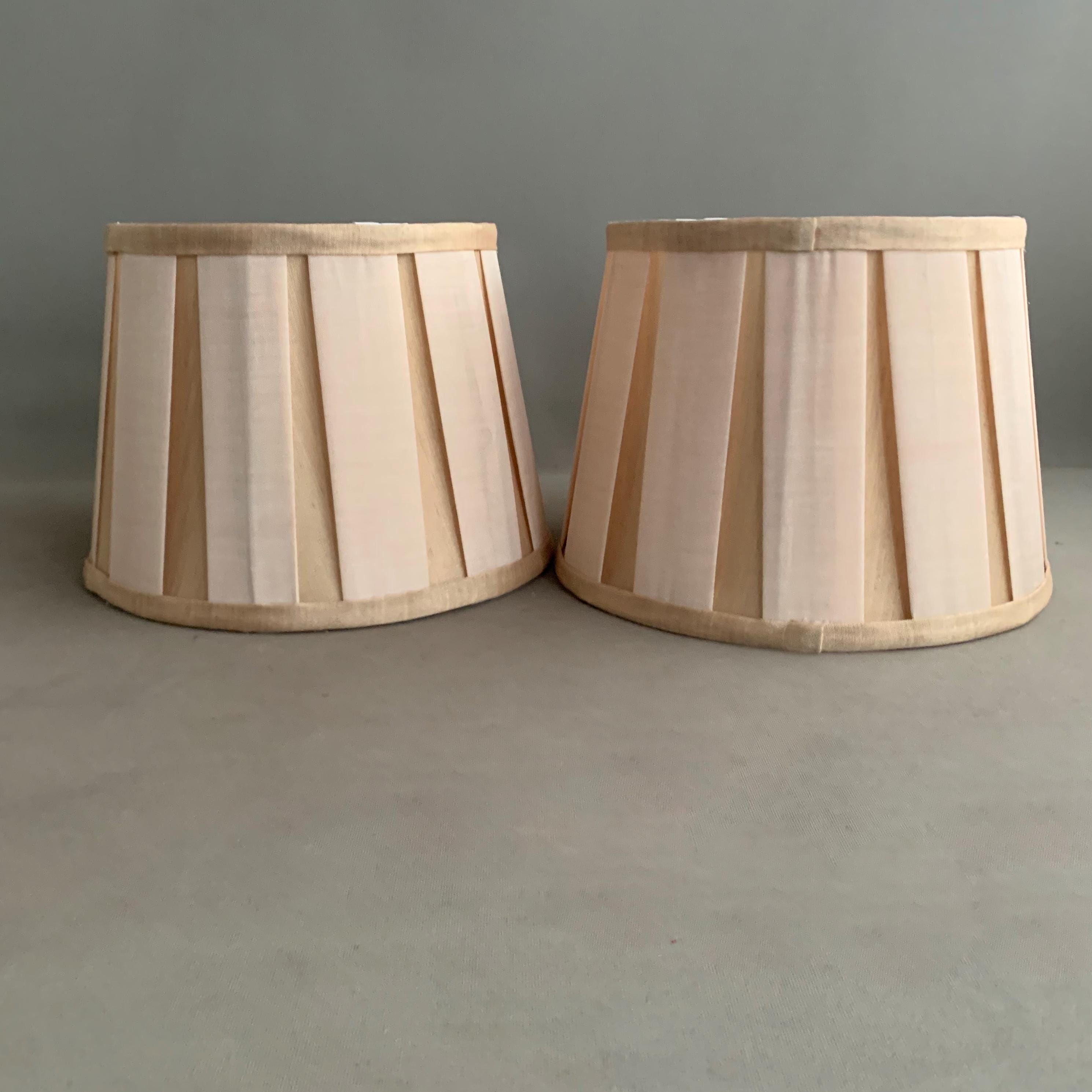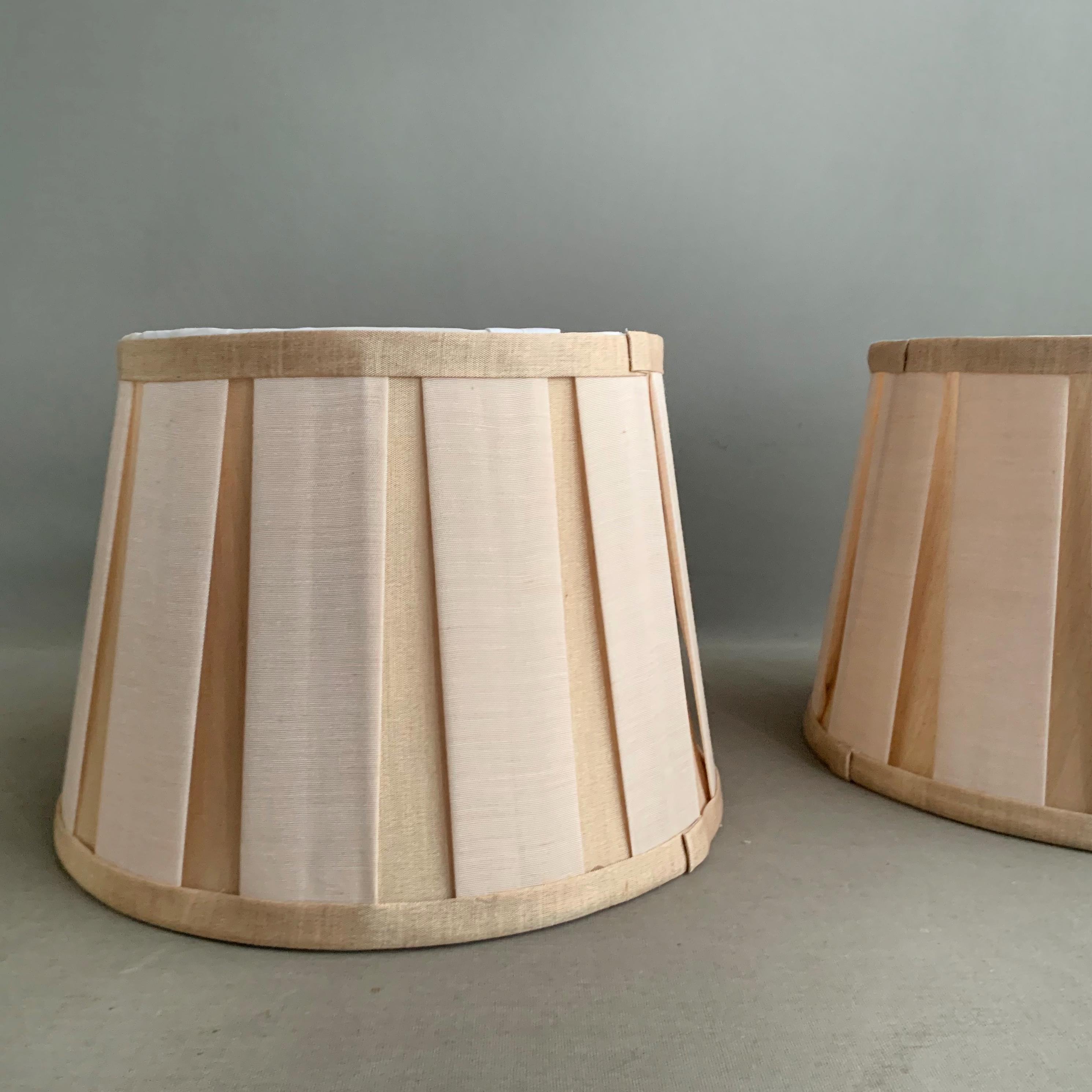 A pair of pleated empire-style lampshades in a two tone beige and pale pink. A lovely little pair of lampshades , made well . In clean like new condition