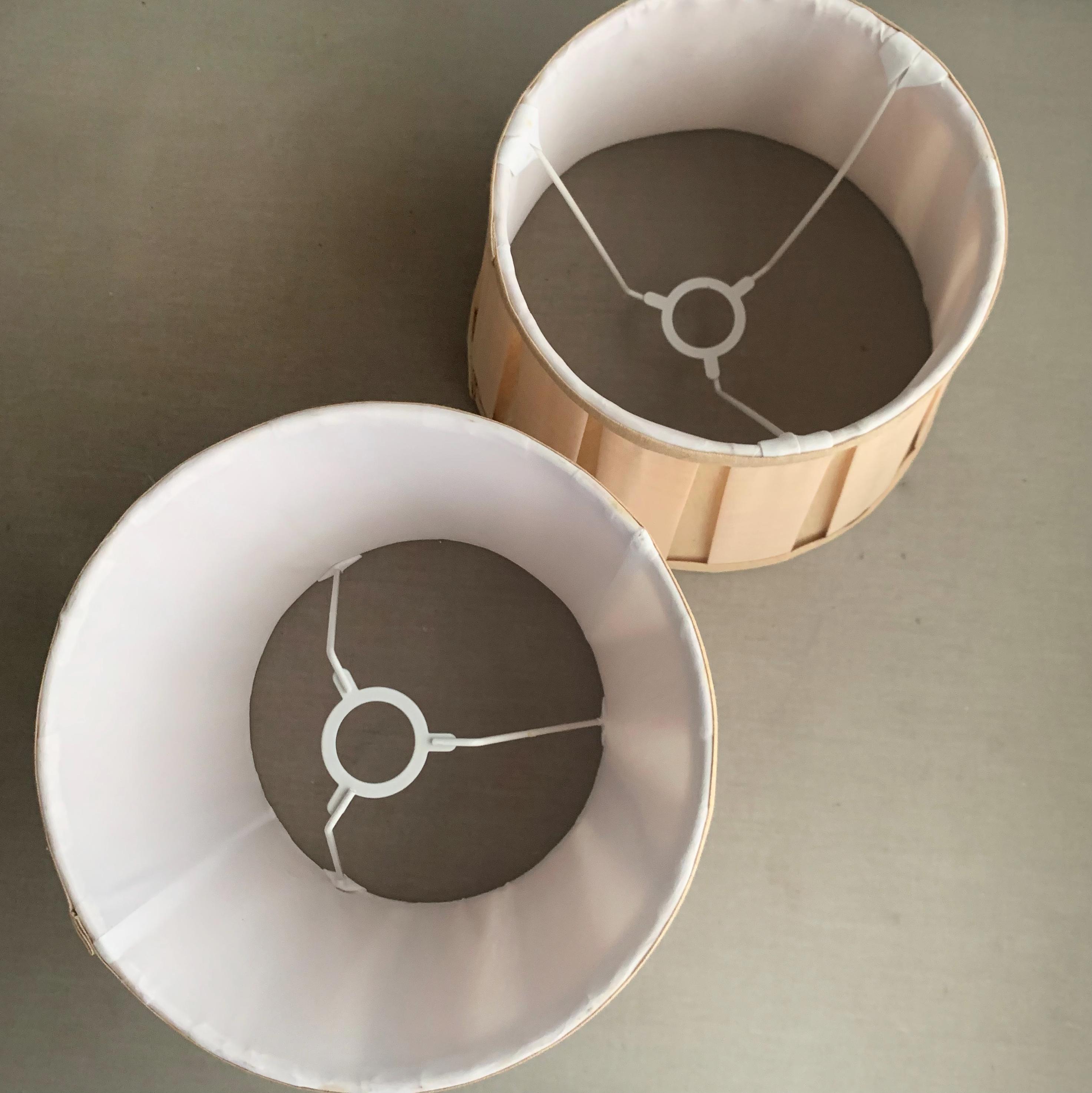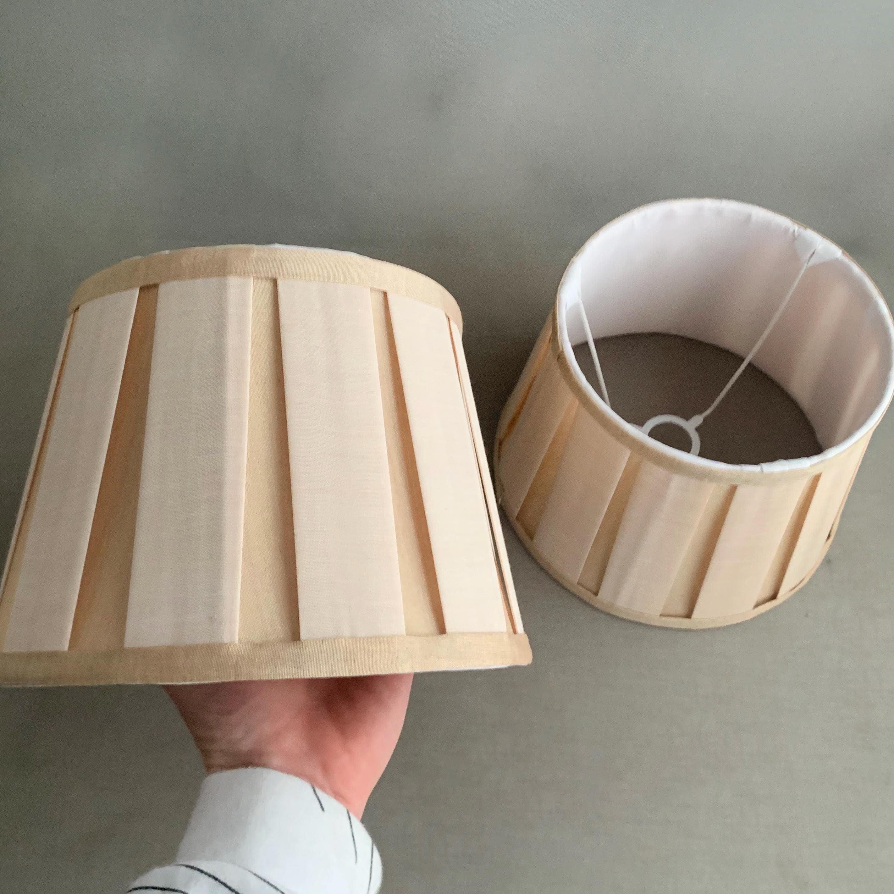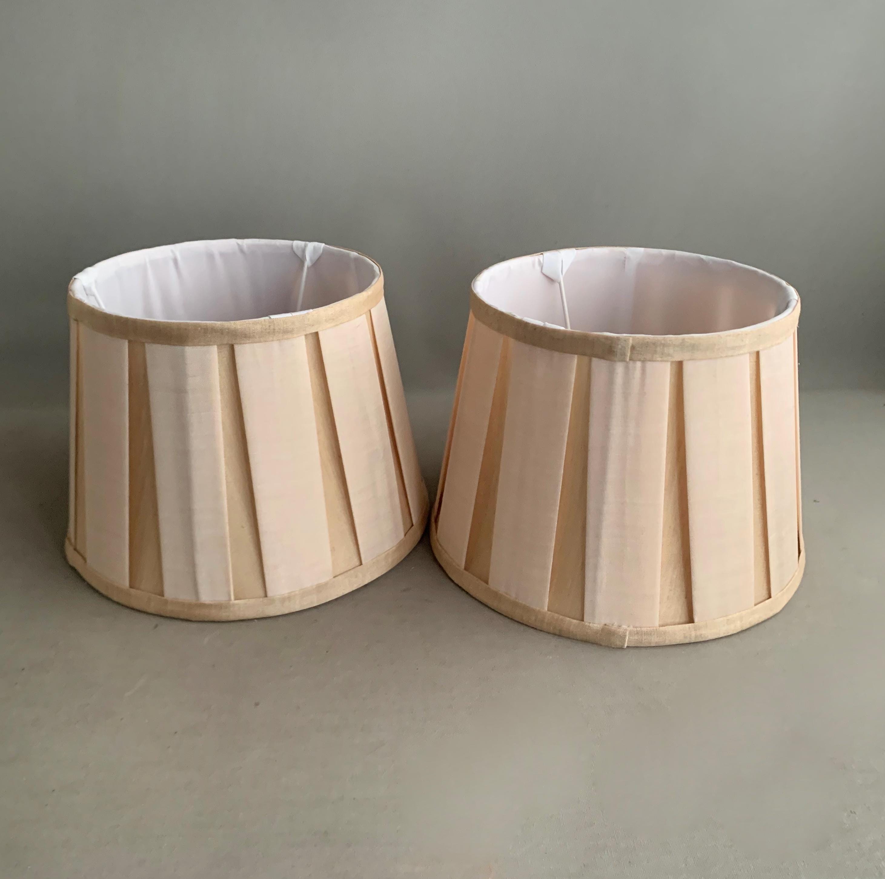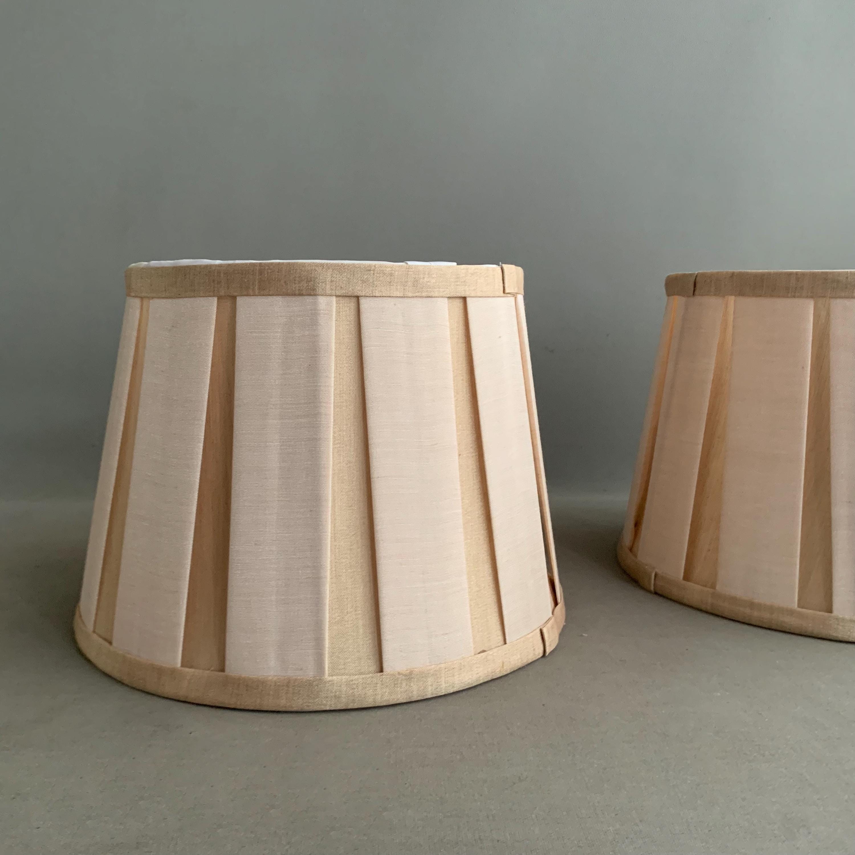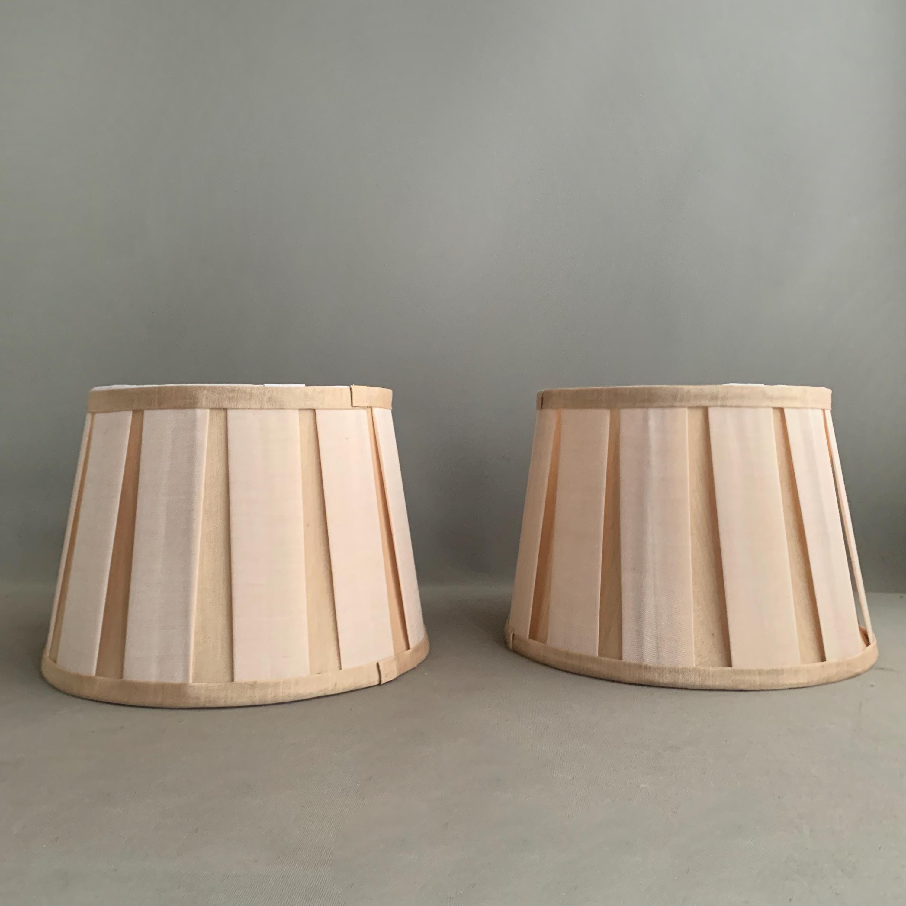 A pair of pleated empire-style lampshades in a two tone beige and pale pink. A lovely little pair of lampshades , made well . In clean like new condition