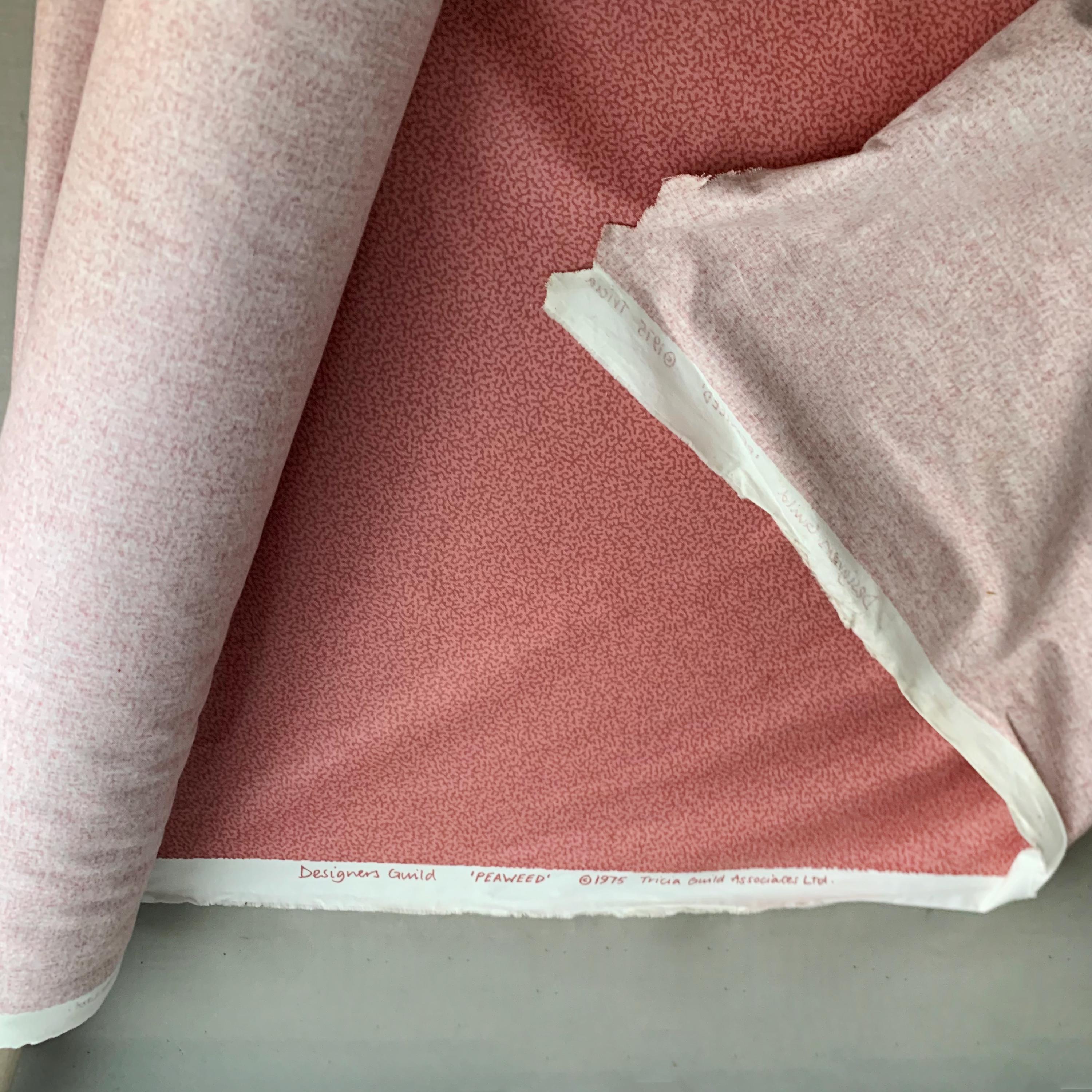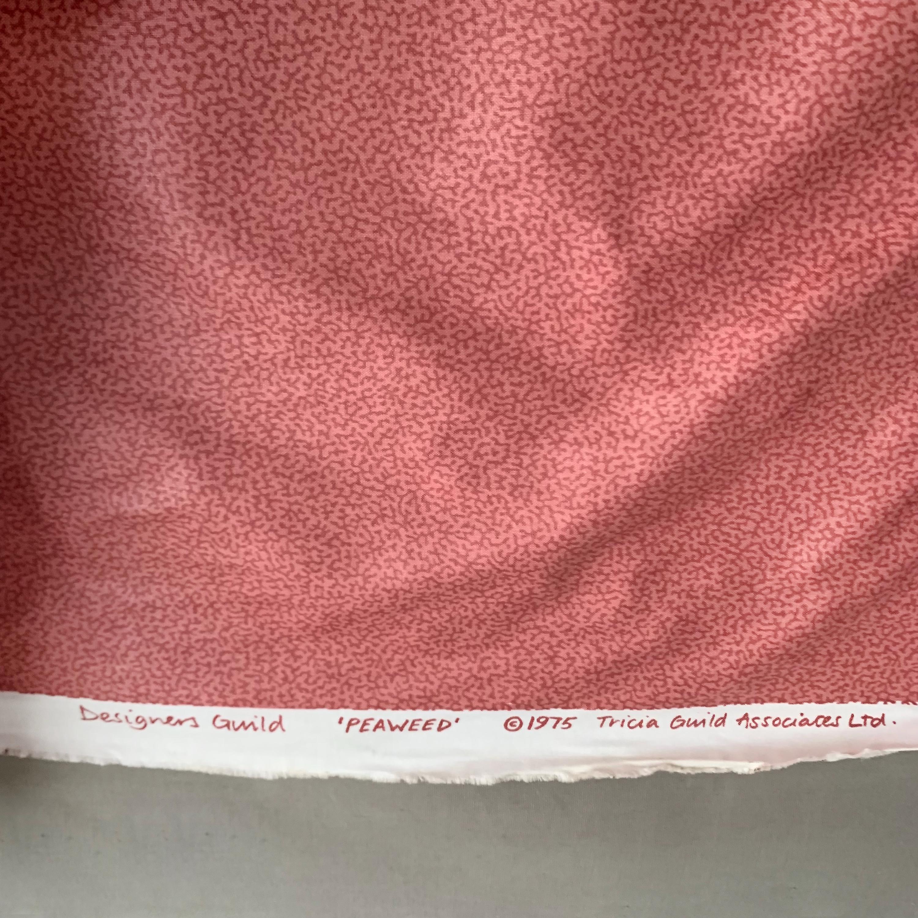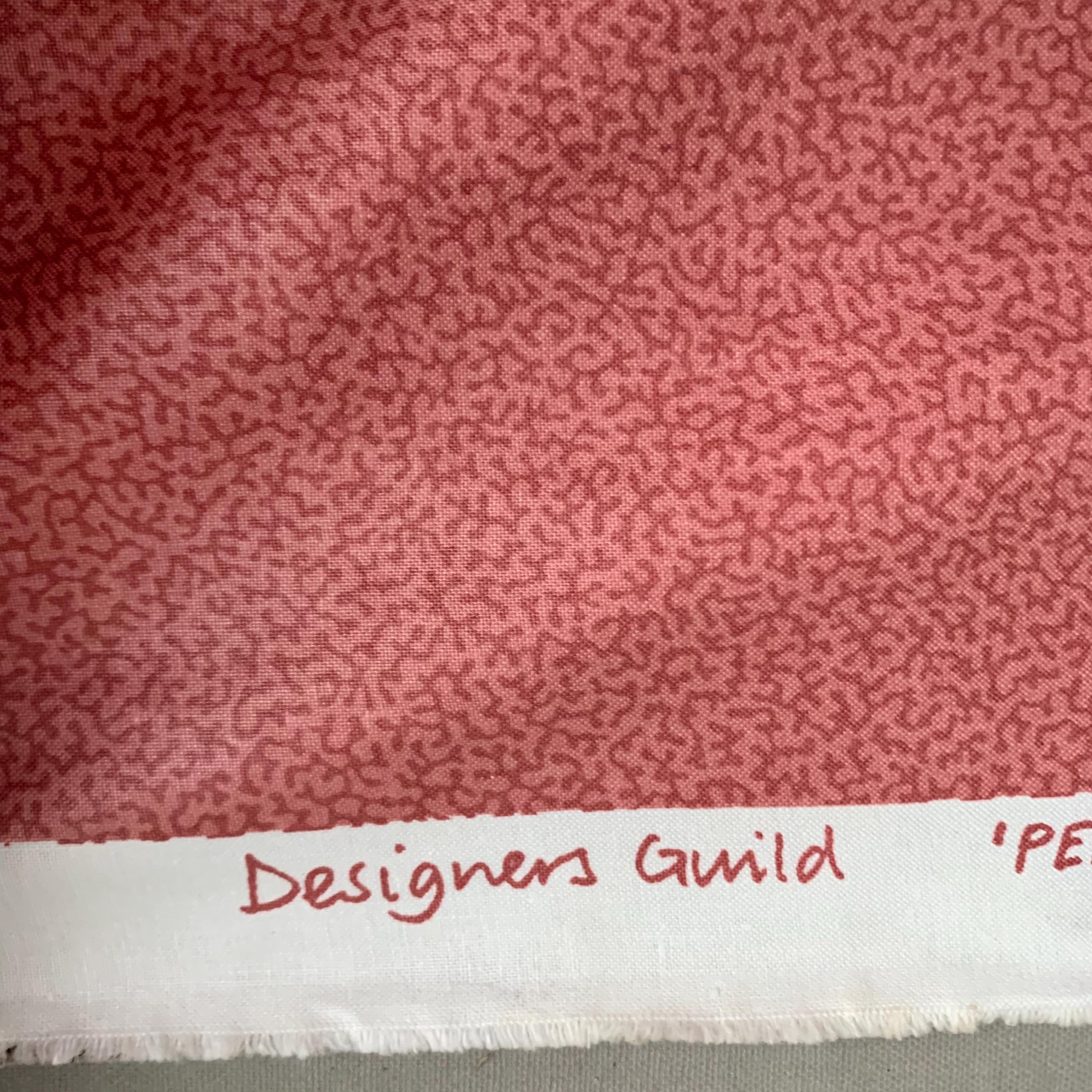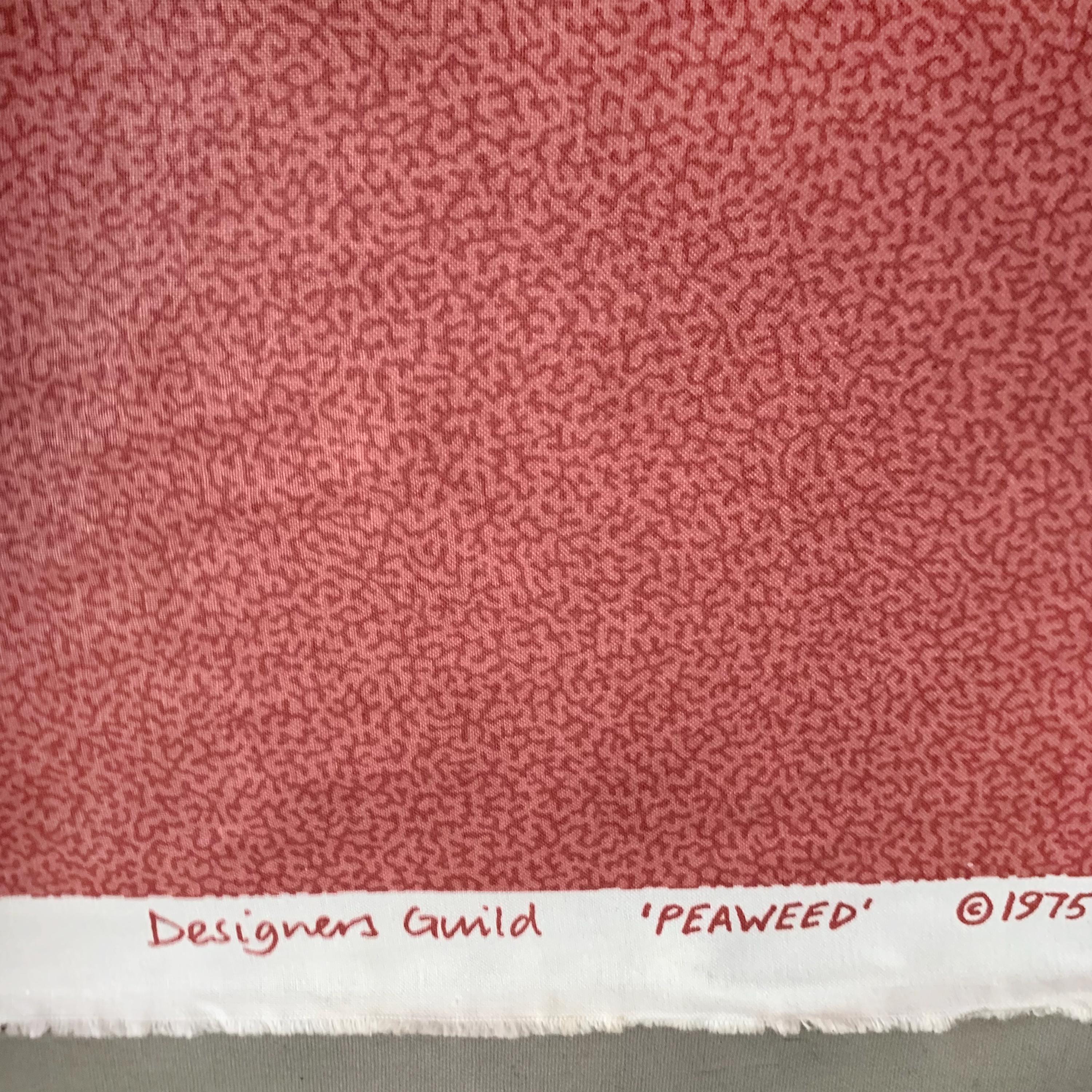 Peaweed cotton Voile in Scarlet colourway . A modest small-scale squiggle floral print fabric from Designers Guild Vintage Flowers Collection entitled "Peaweed" printed on exquisite cotton voile from designers guild fabrics circa 1975