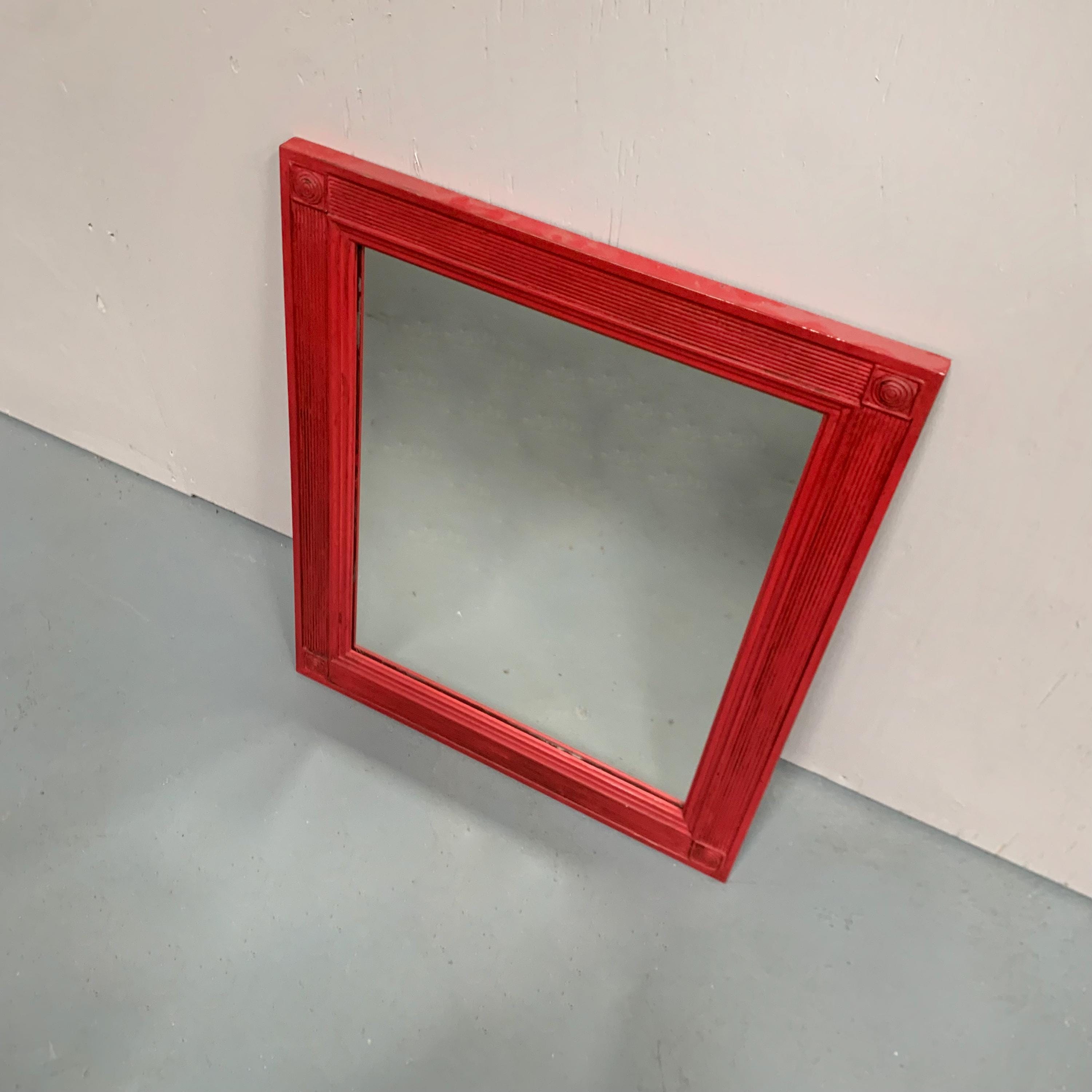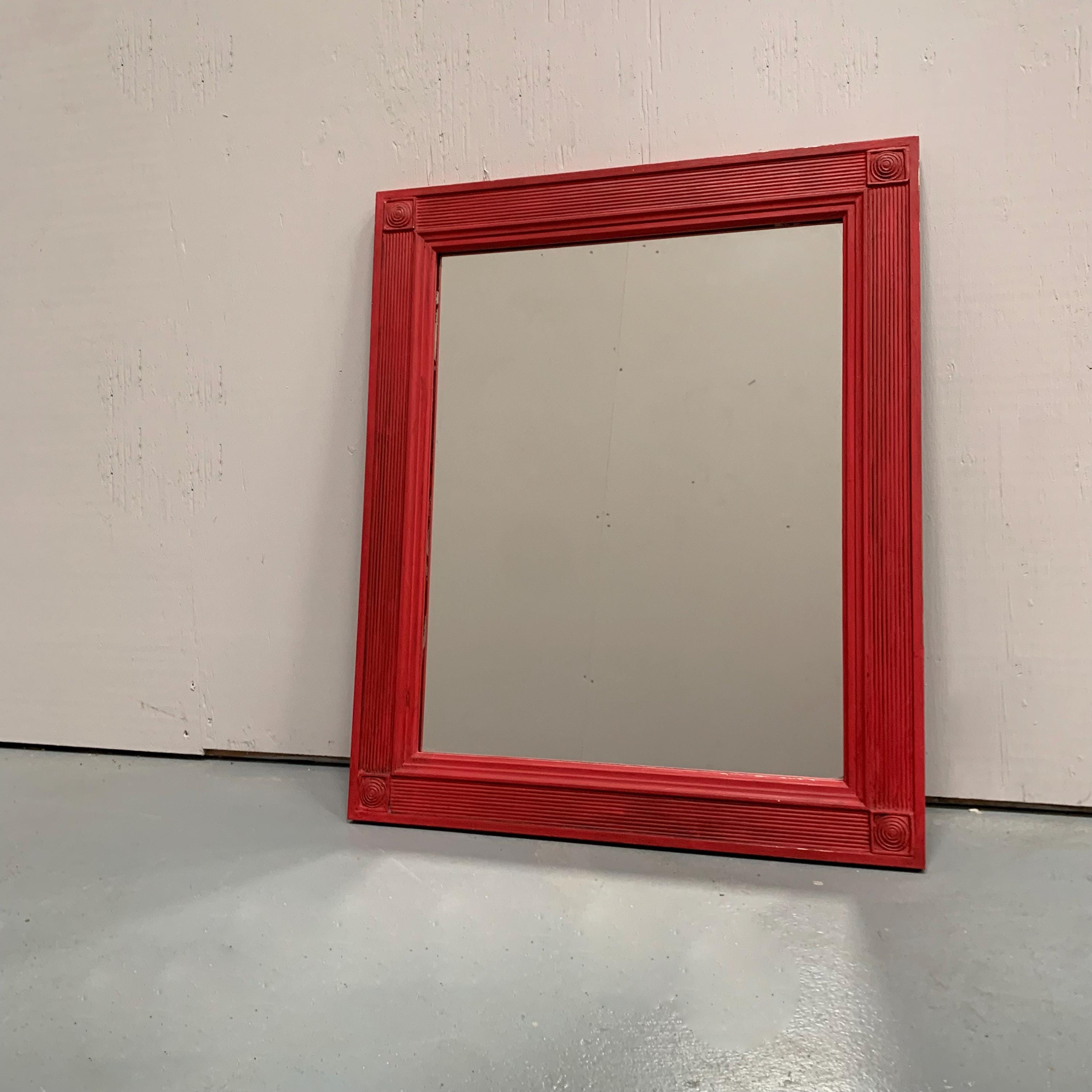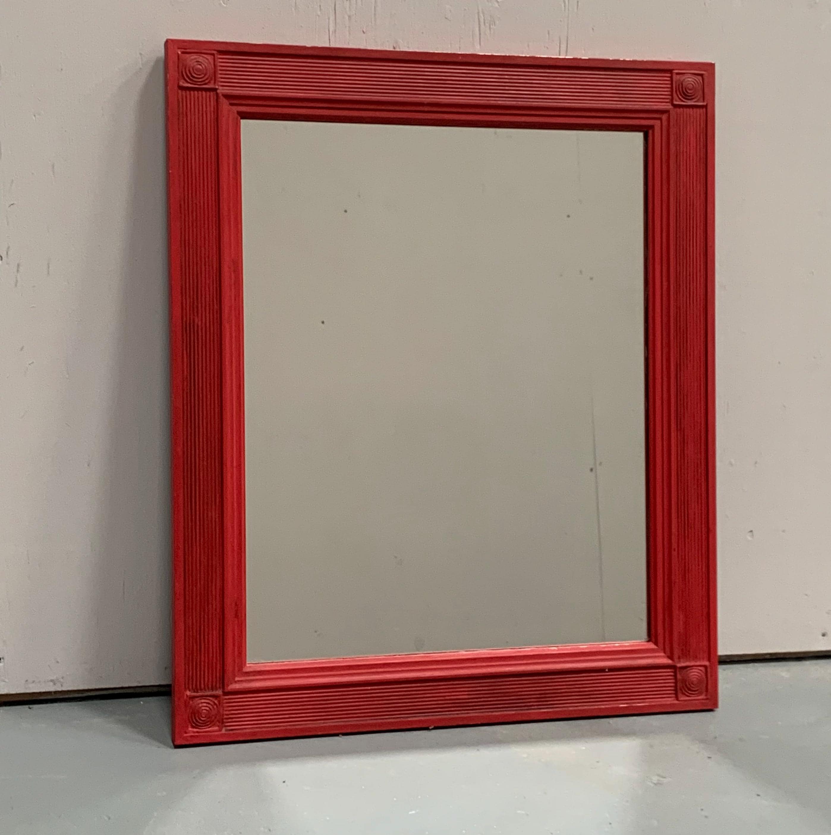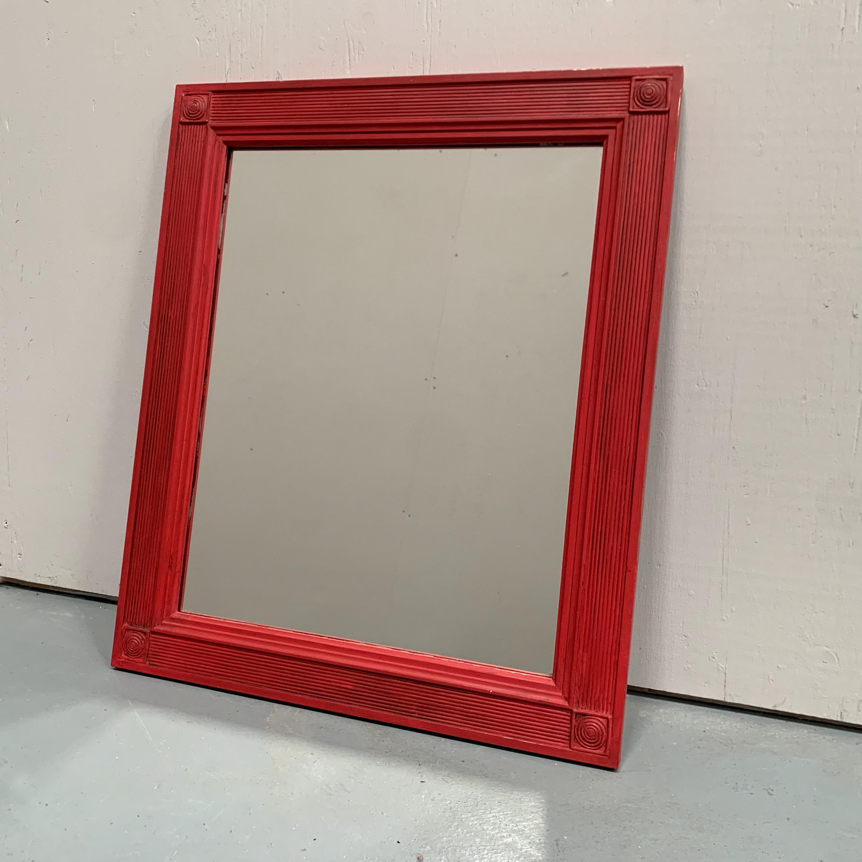 A chalk painted and waxed frame mirror . A good sized mirror in a striking colour