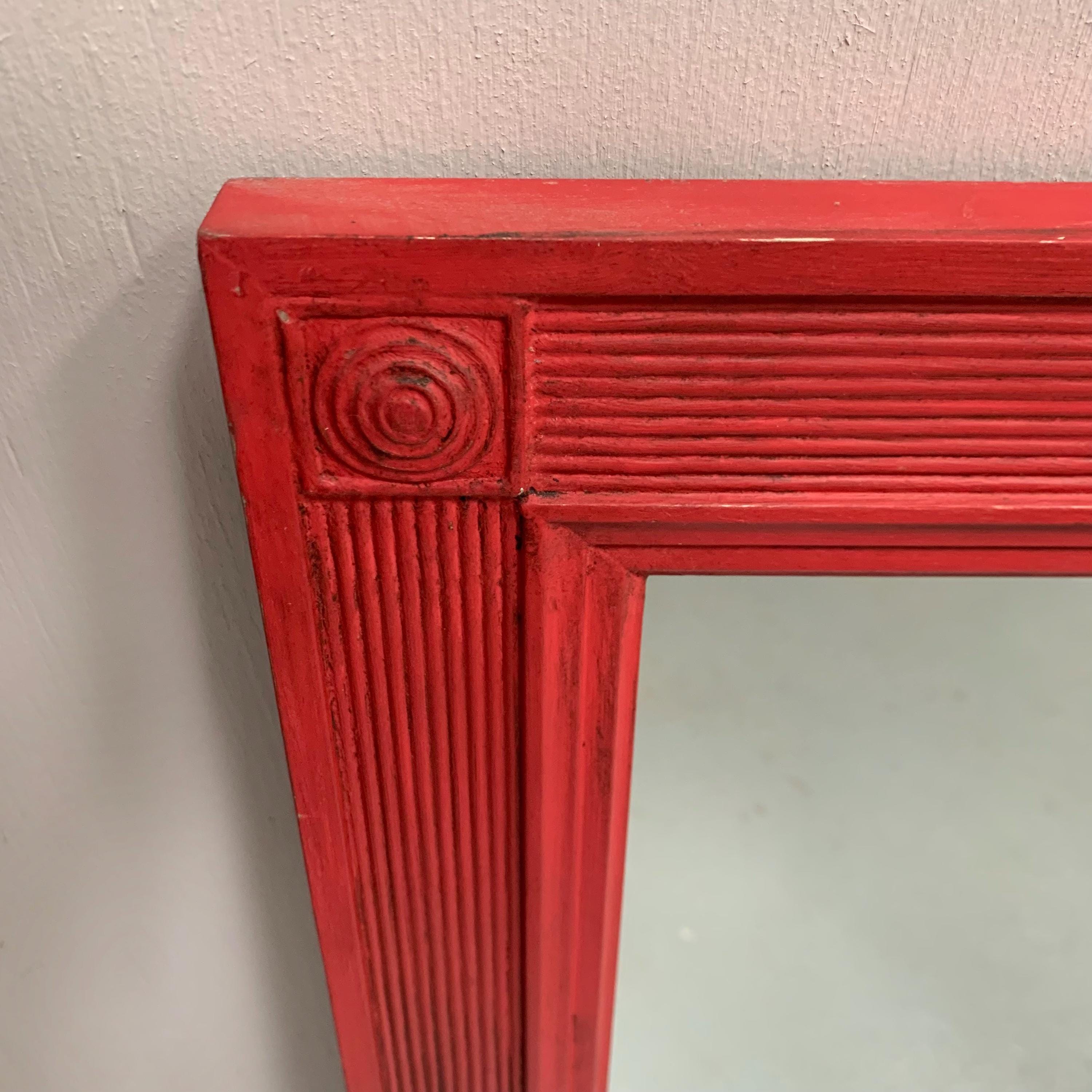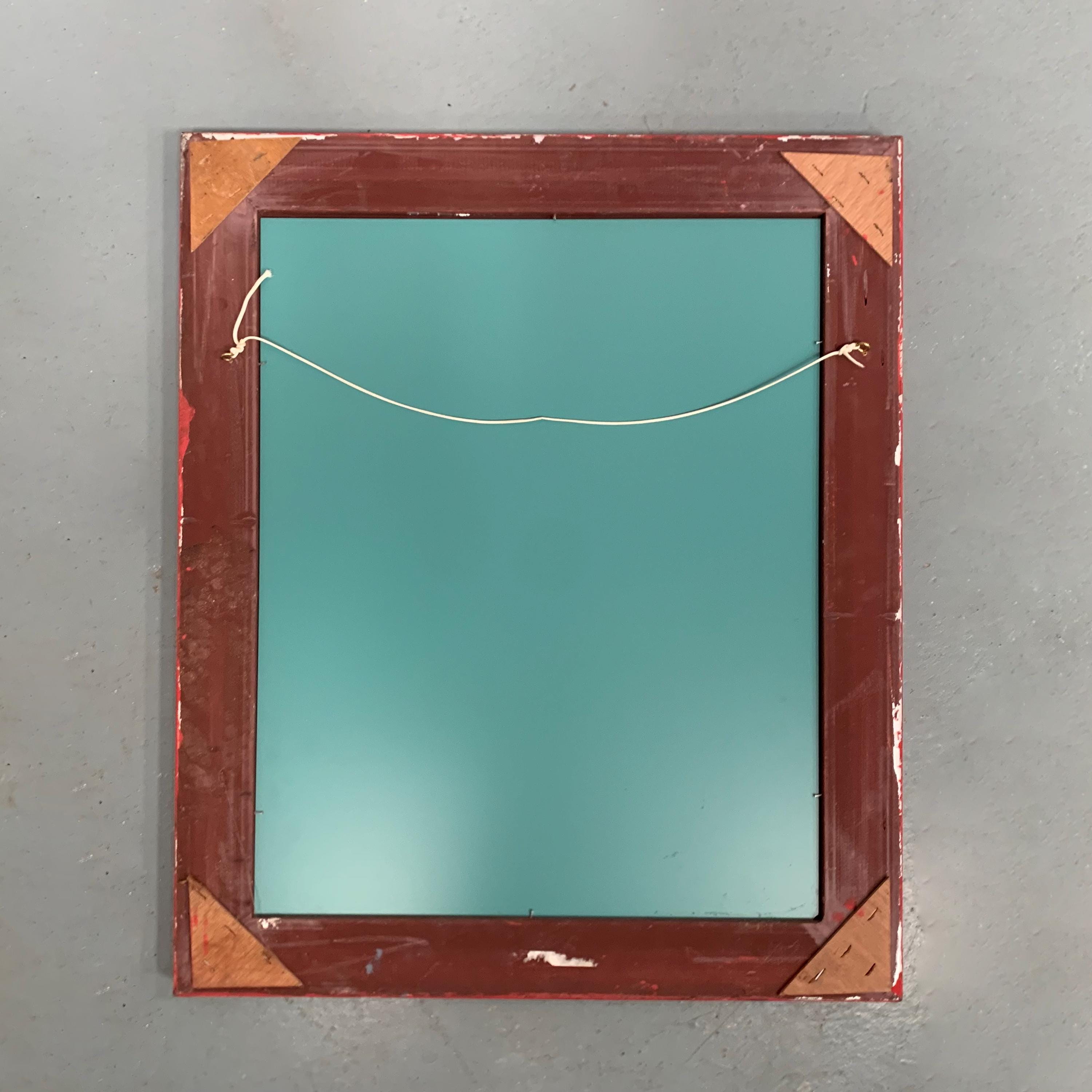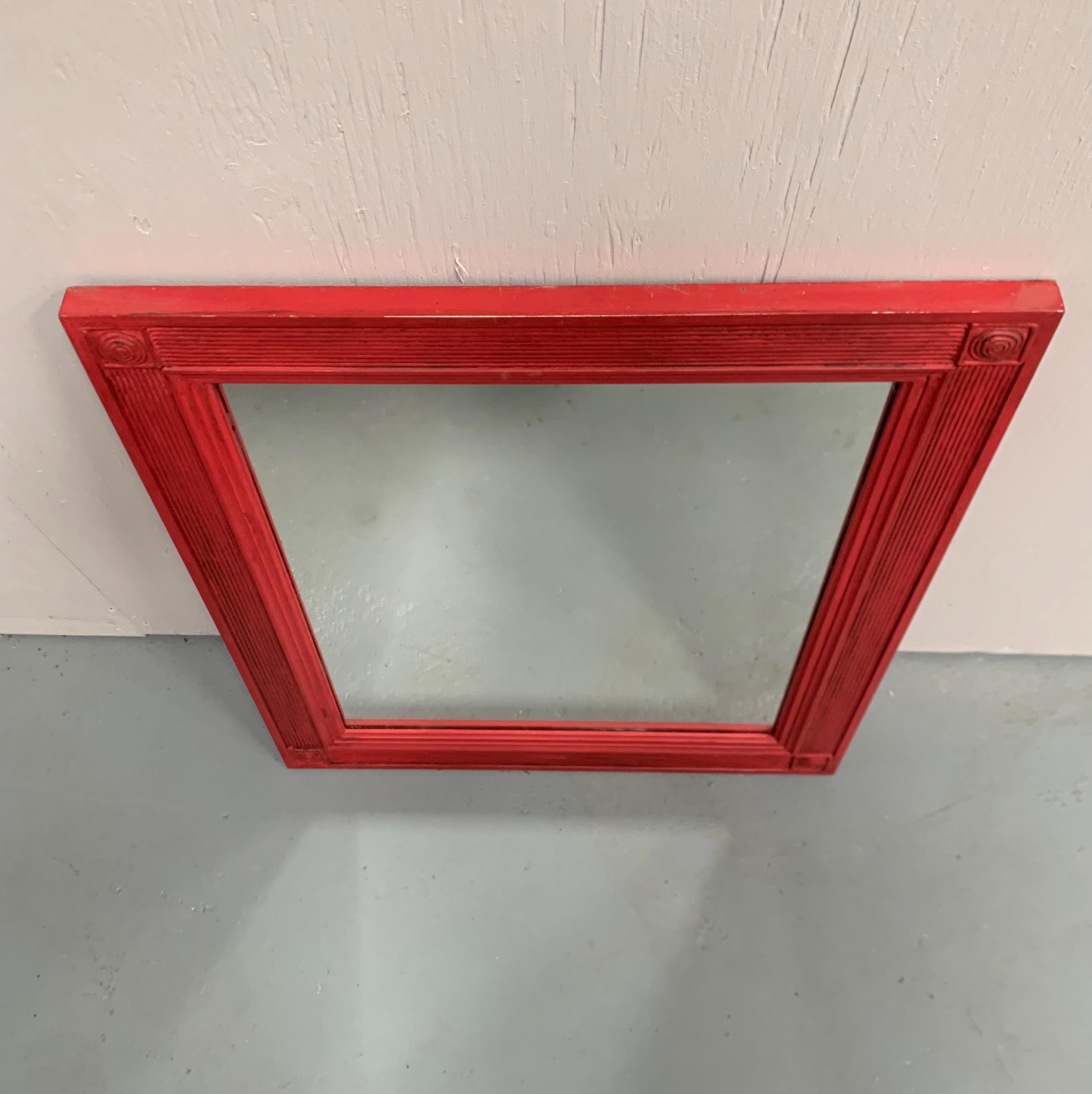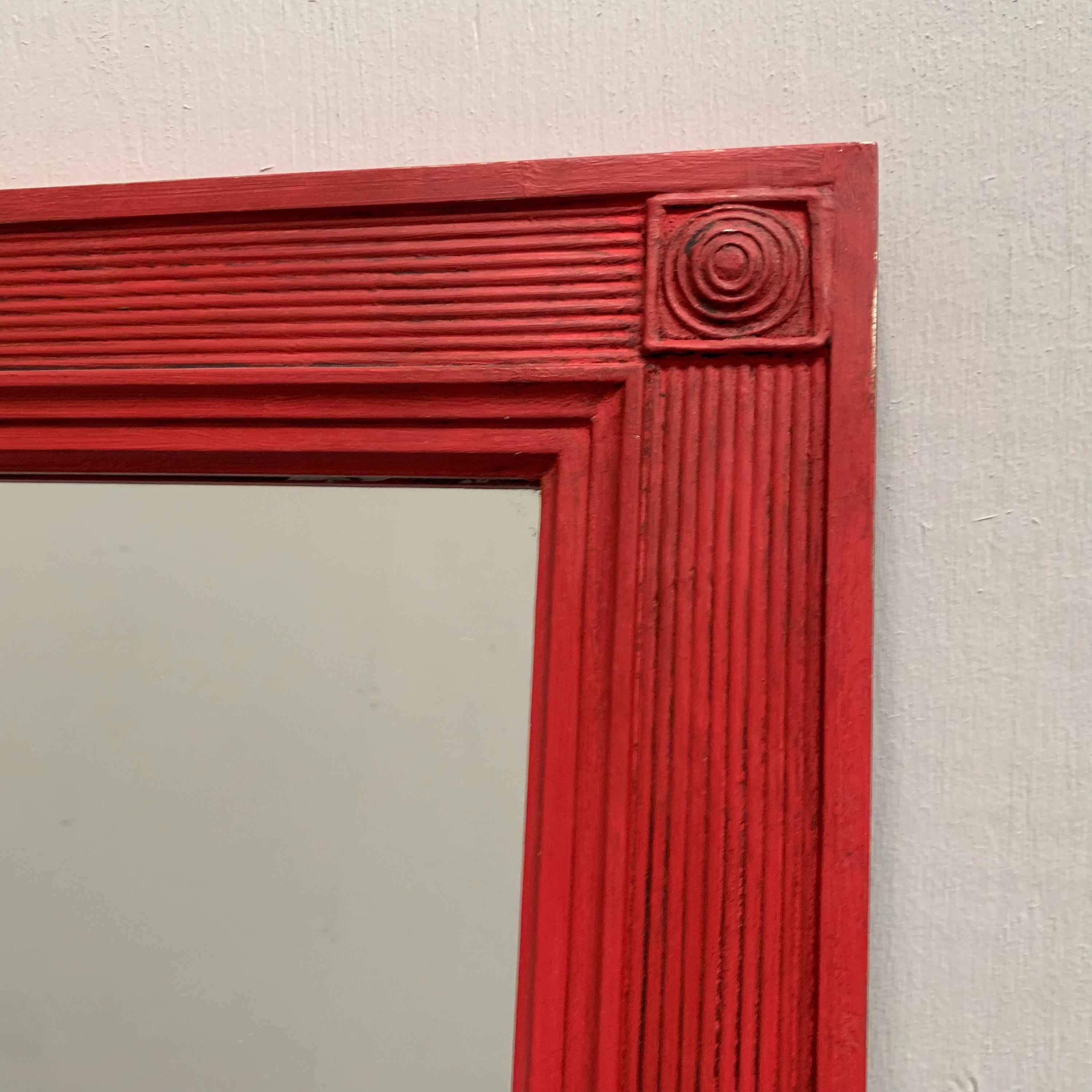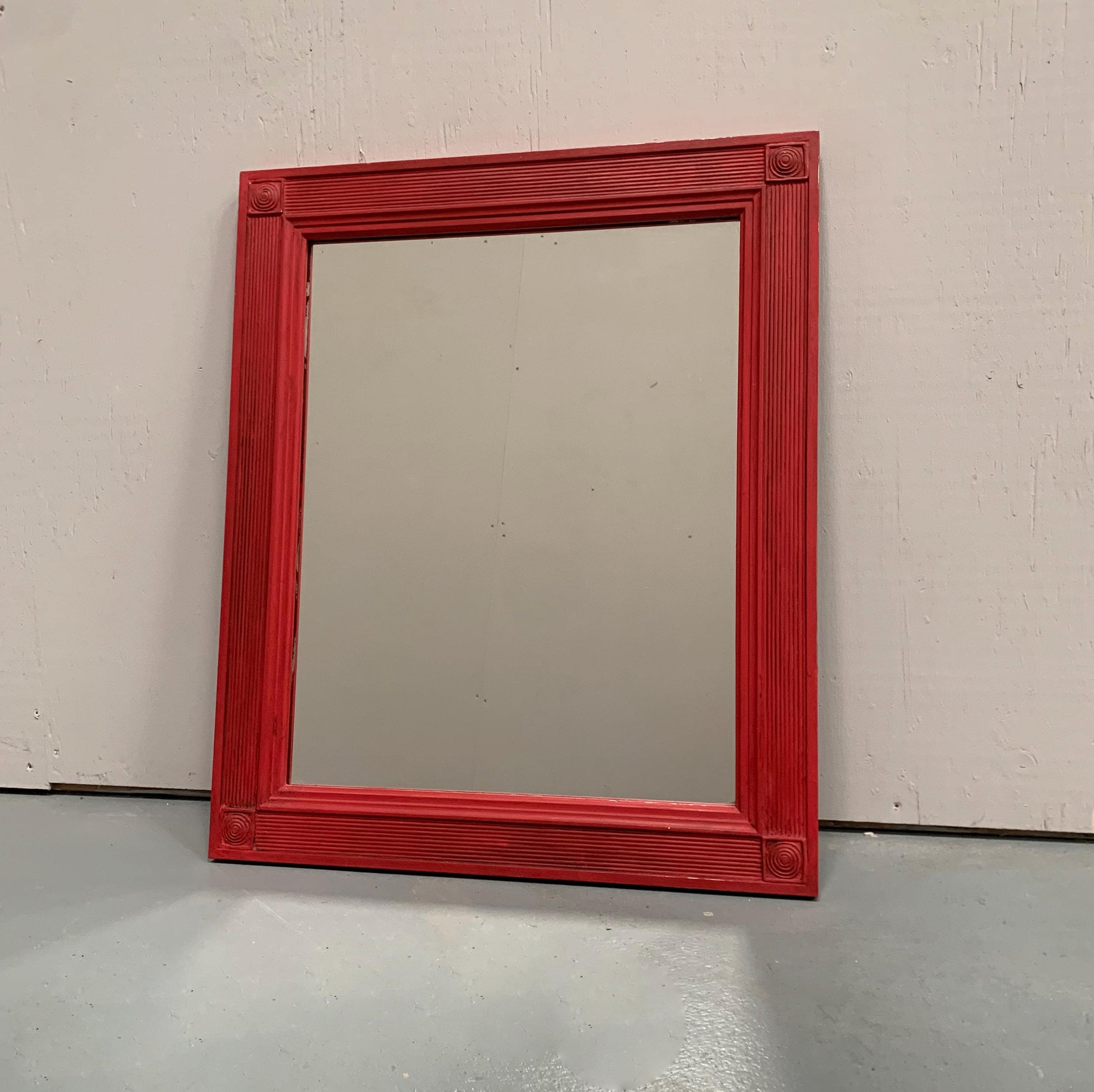 A chalk painted and waxed frame mirror . A good sized mirror in a striking colour