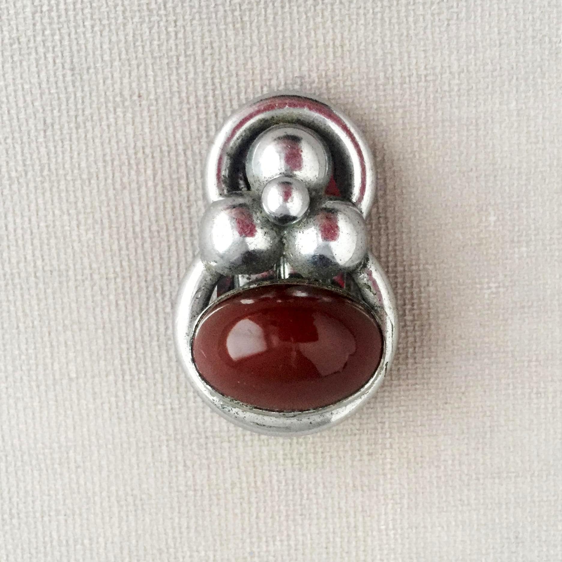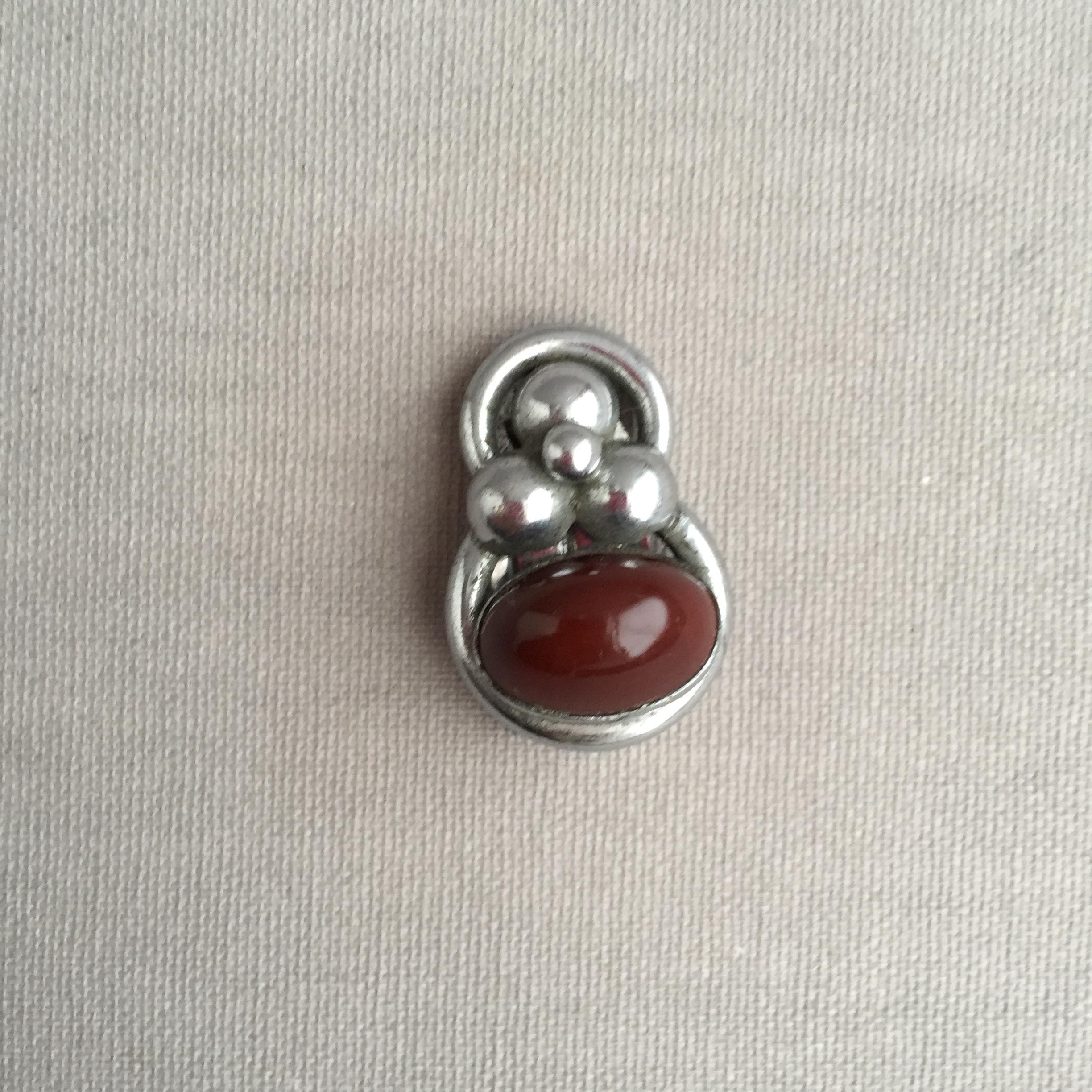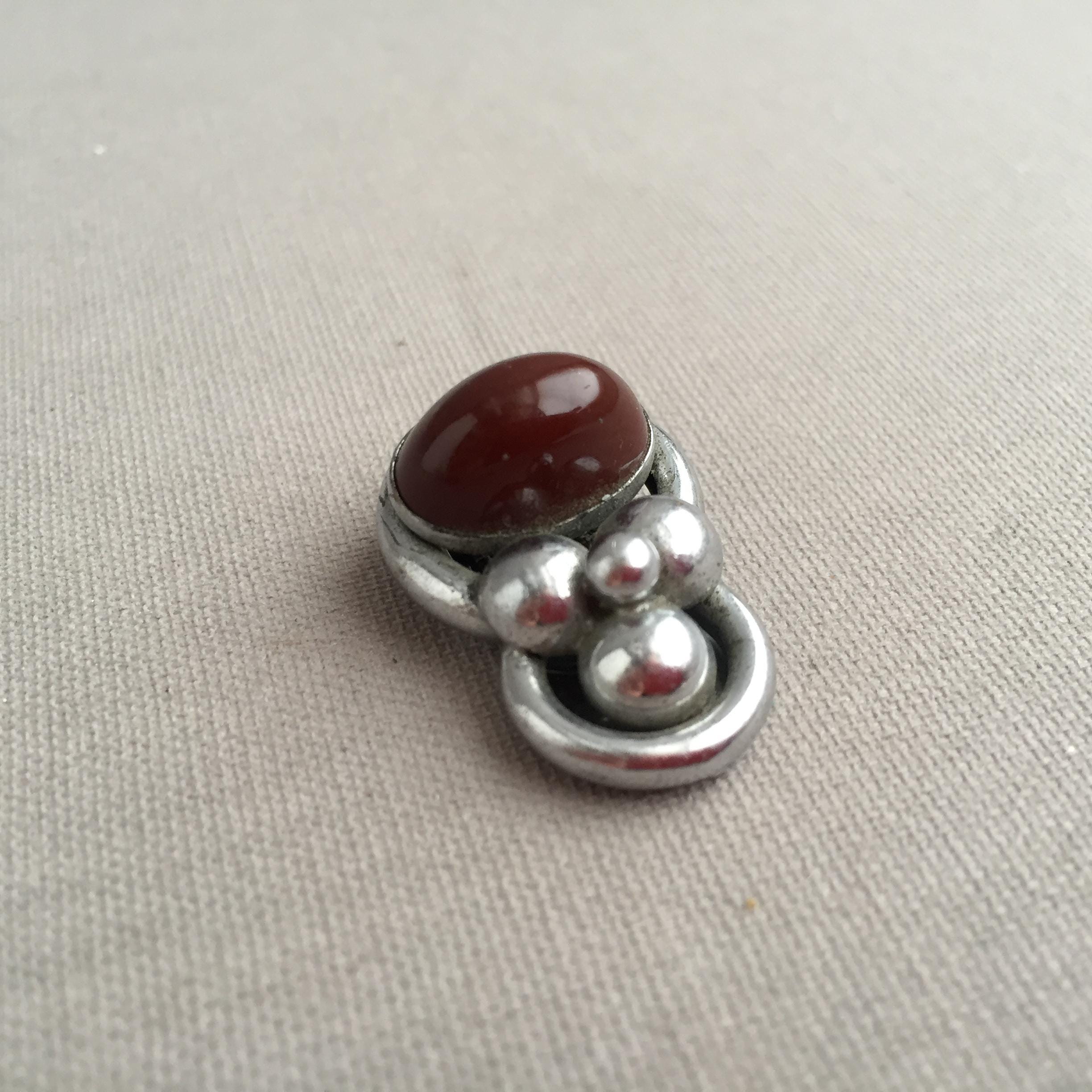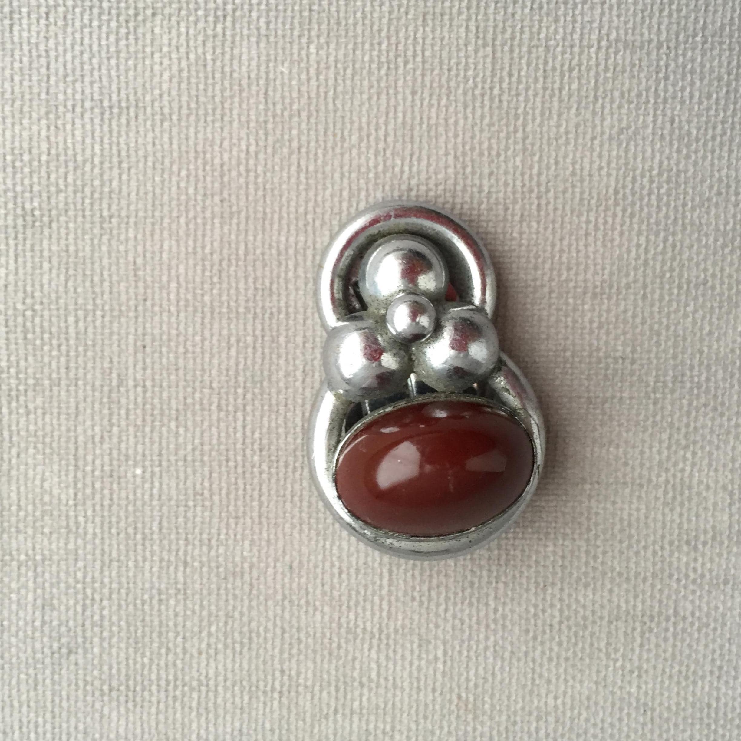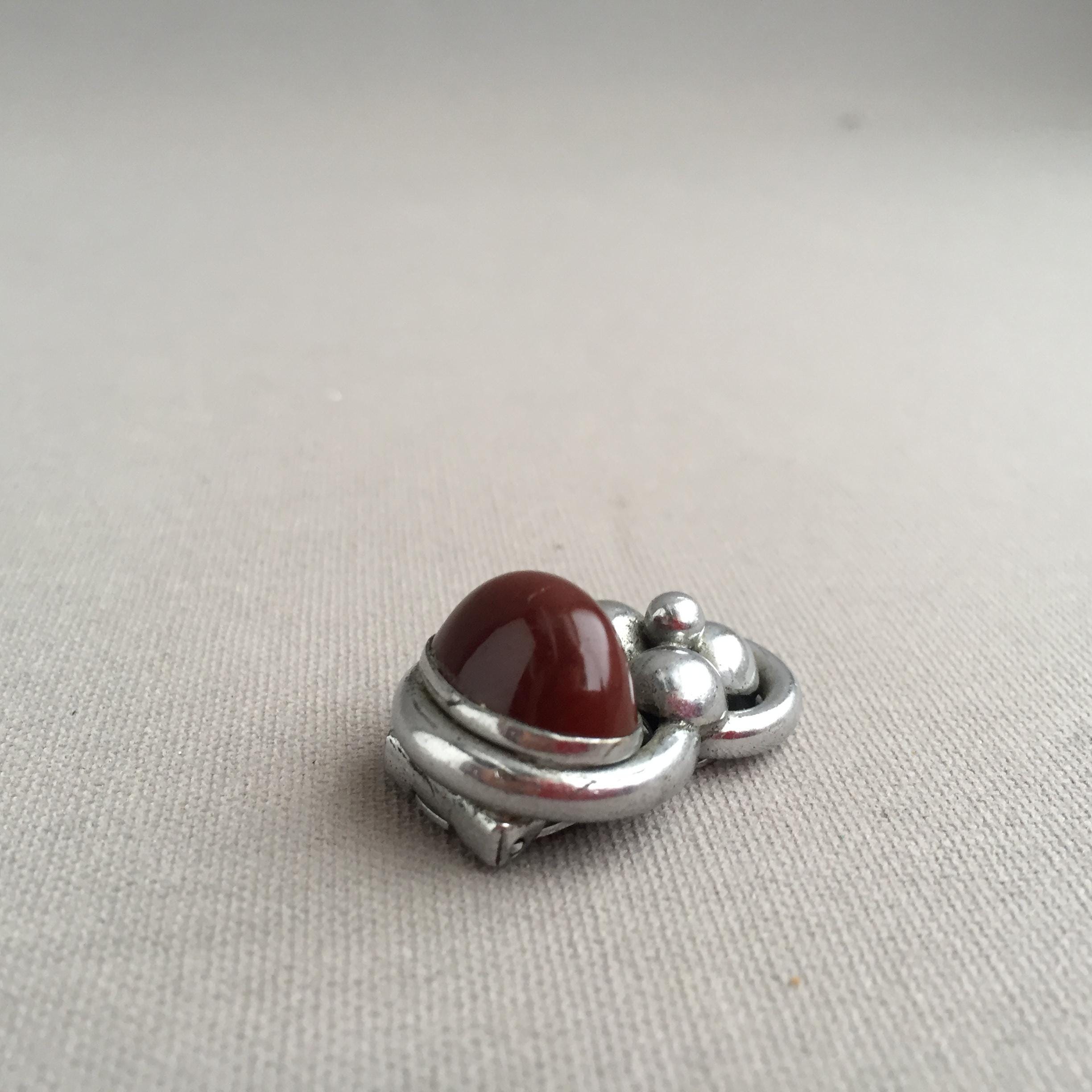 scarf clip with Carnelian stone. looks like silver but not sure - there is a stamp on the clasp which im not able to read think it says ges germany . nice little piece . Supplied in a gift box