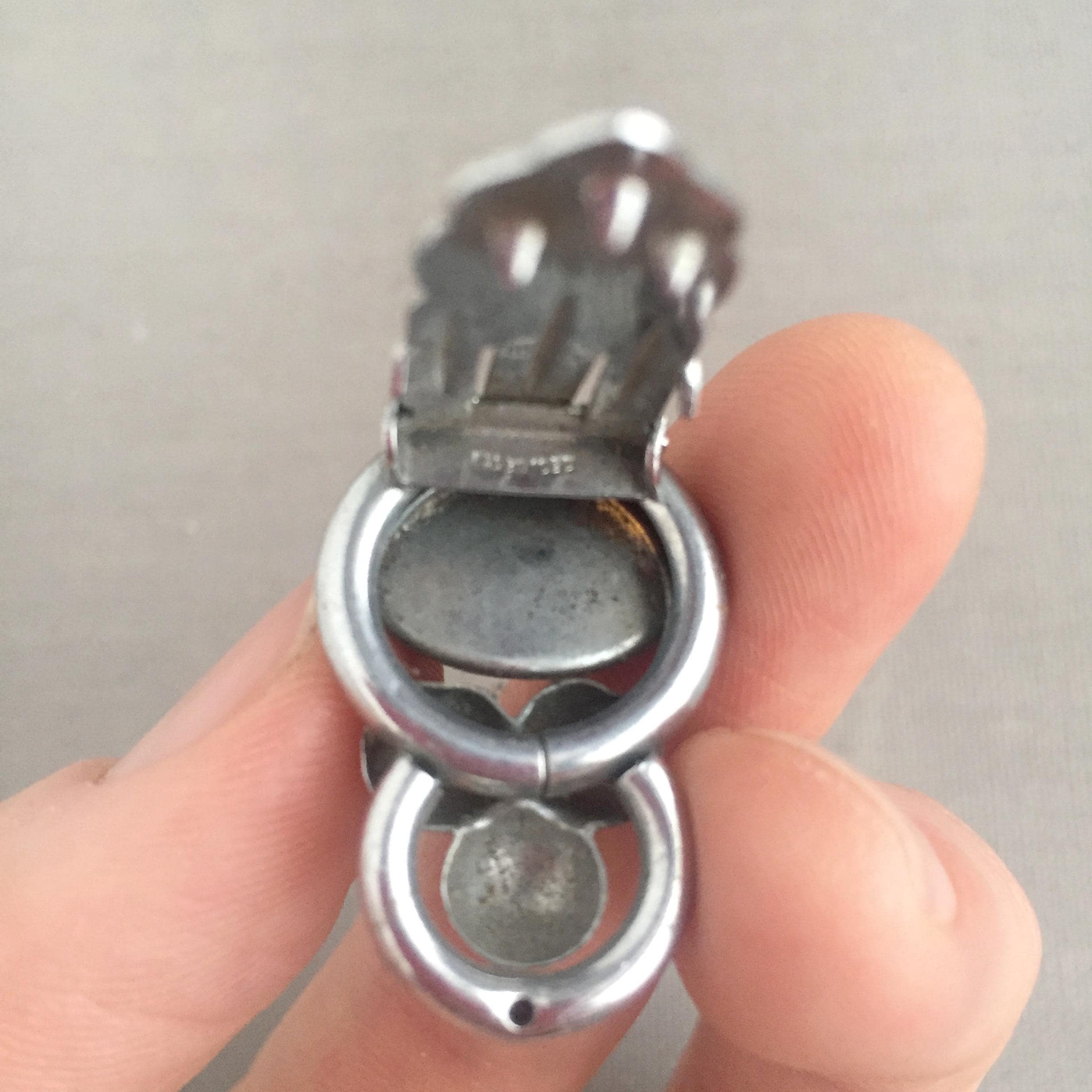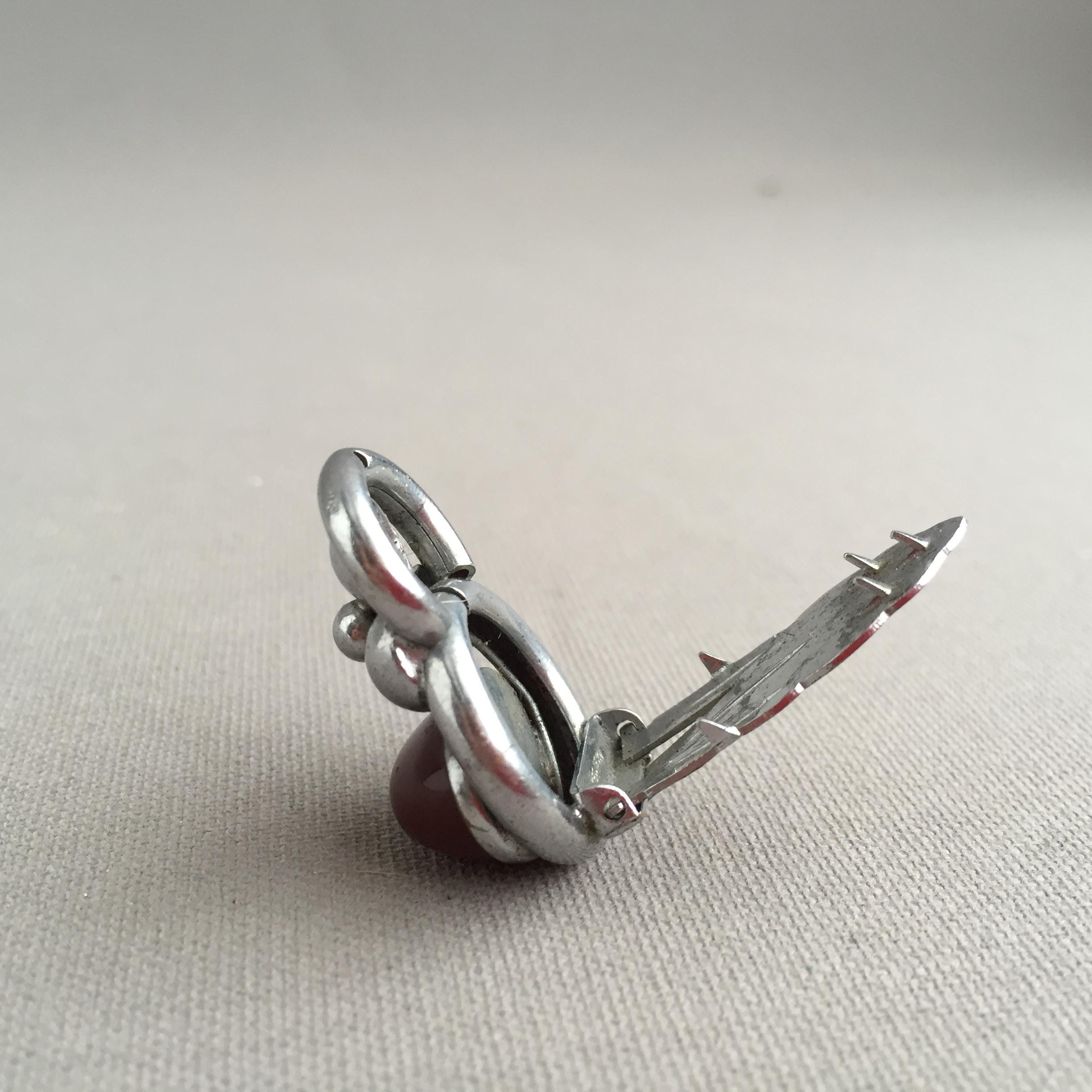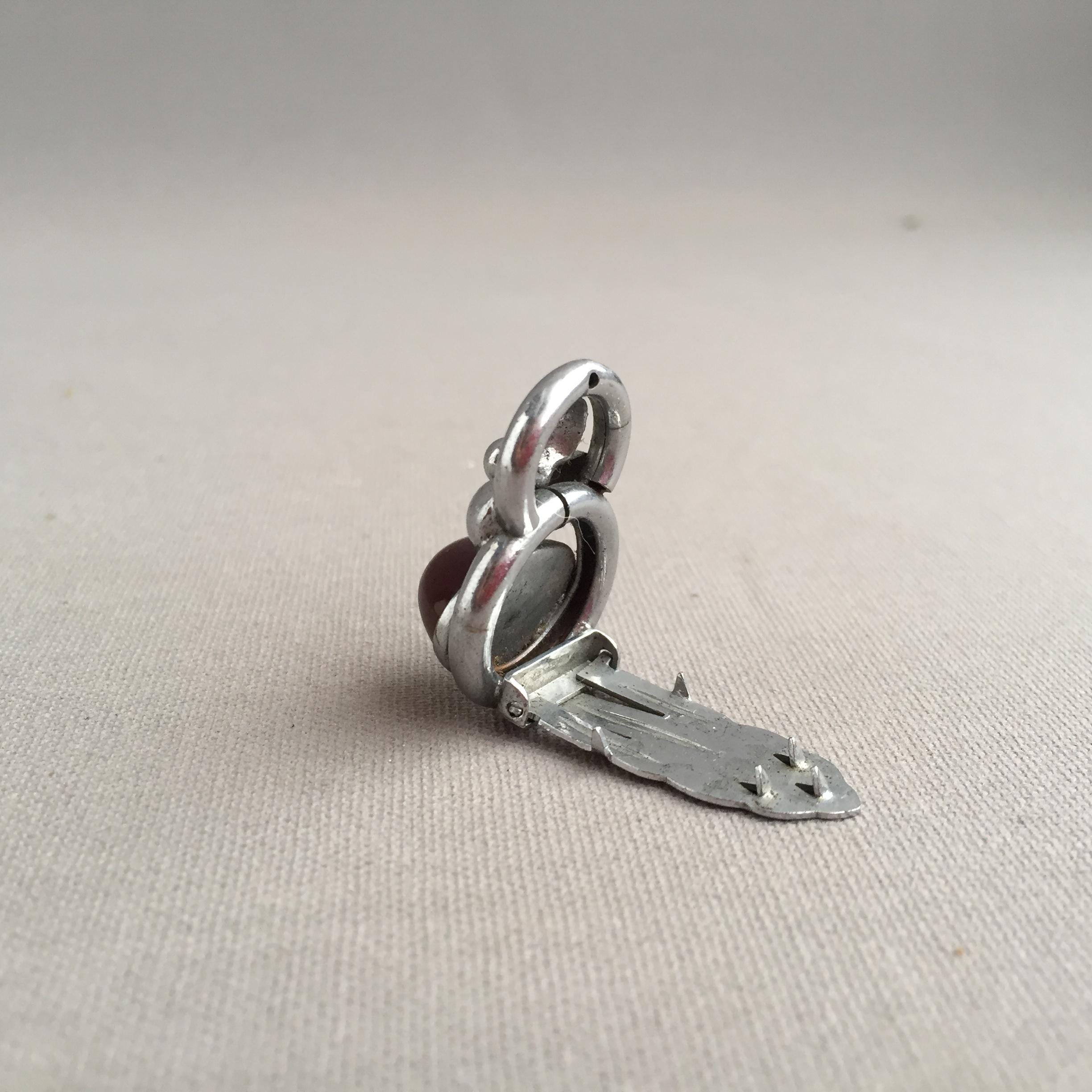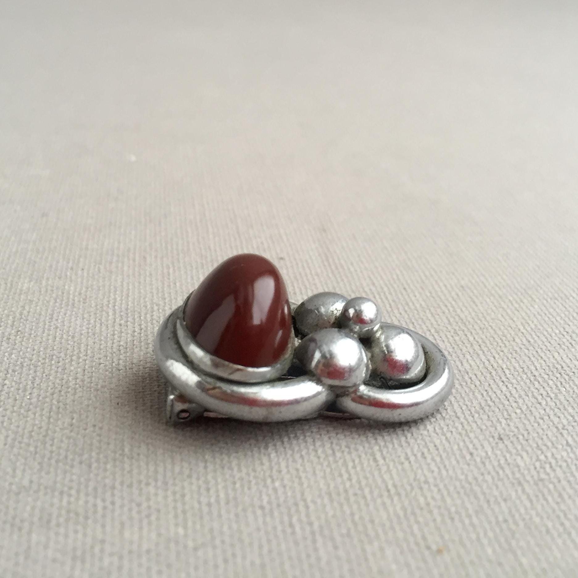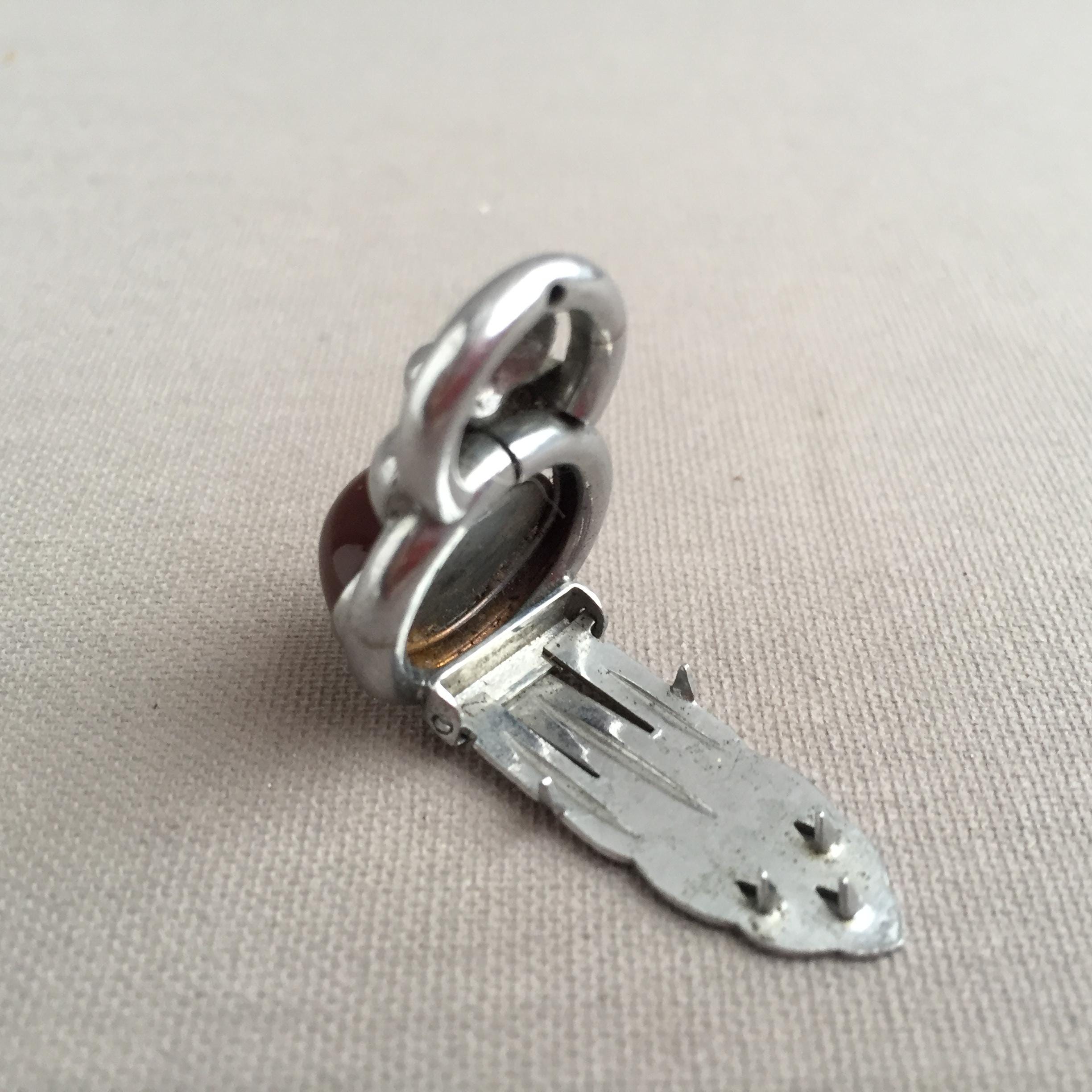 scarf clip with Carnelian stone. looks like silver but not sure - there is a stamp on the clasp which im not able to read think it says ges germany . nice little piece . Supplied in a gift box
