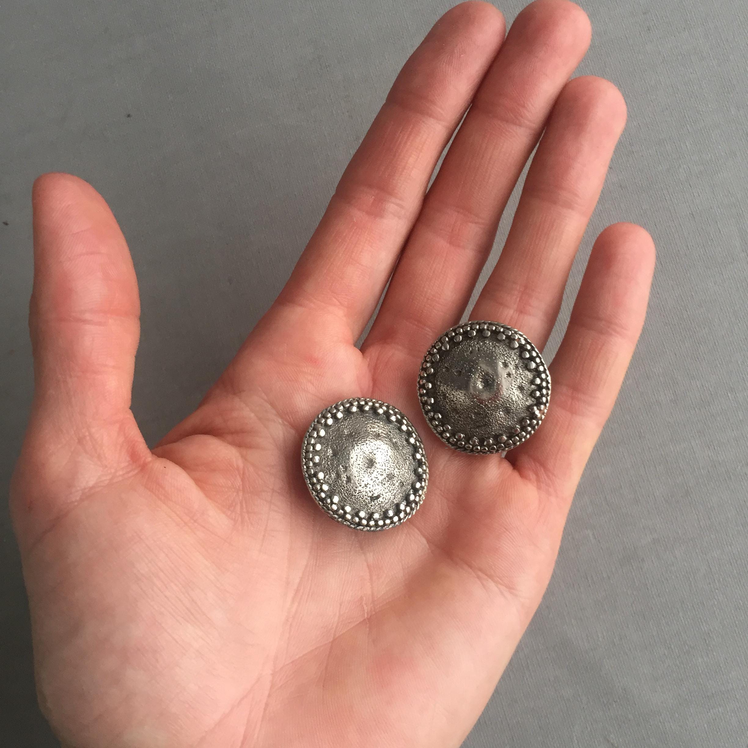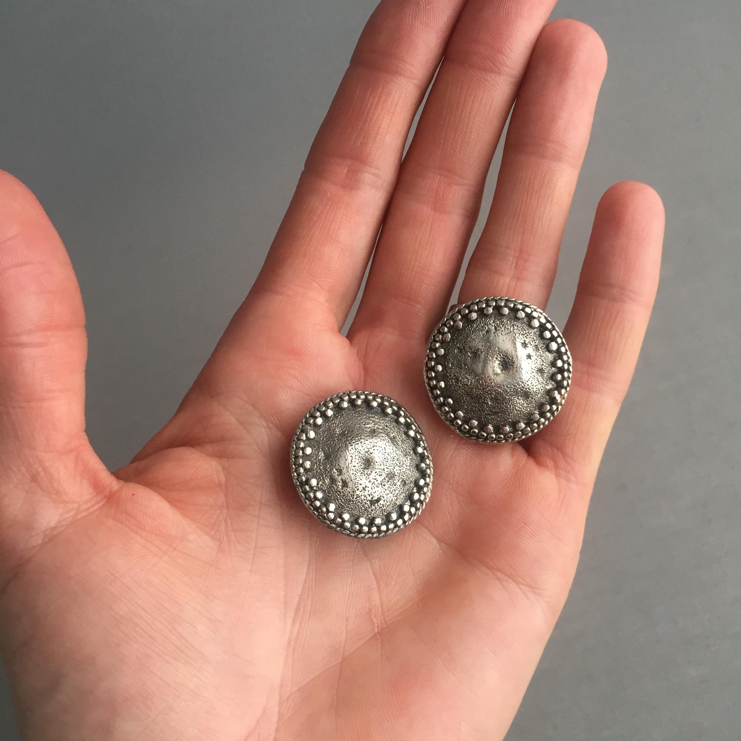 stylish and statement - a rare combo. no silver stamp so not sure what metal but they have a nice weight