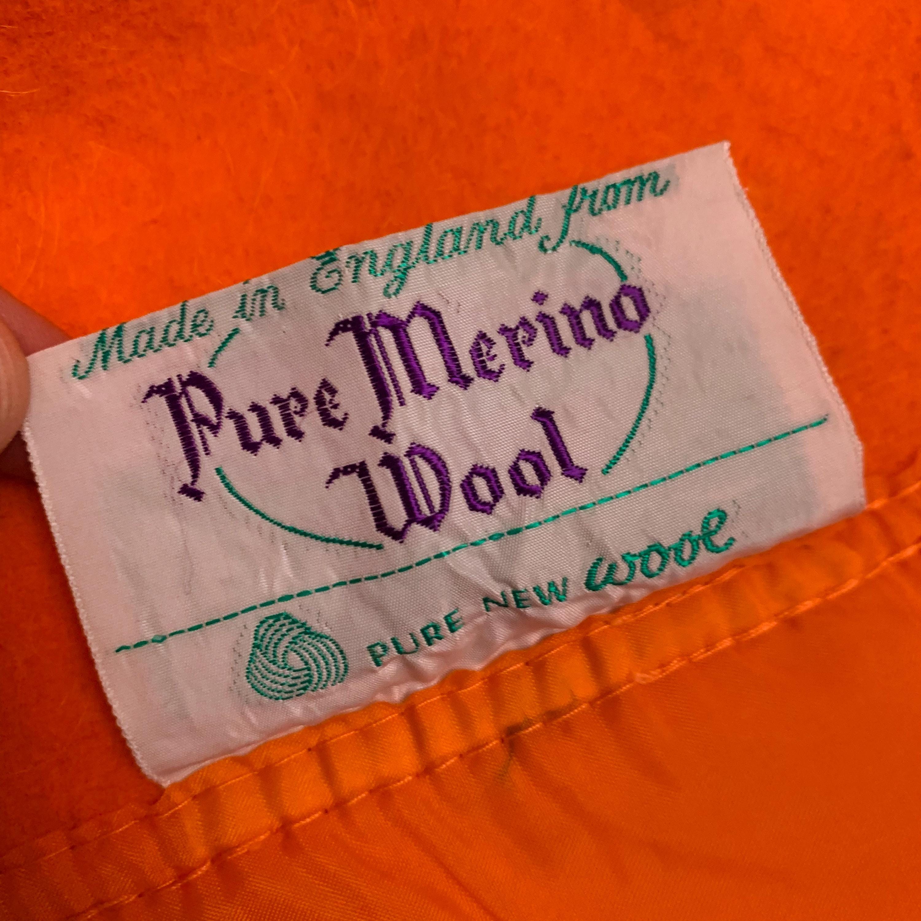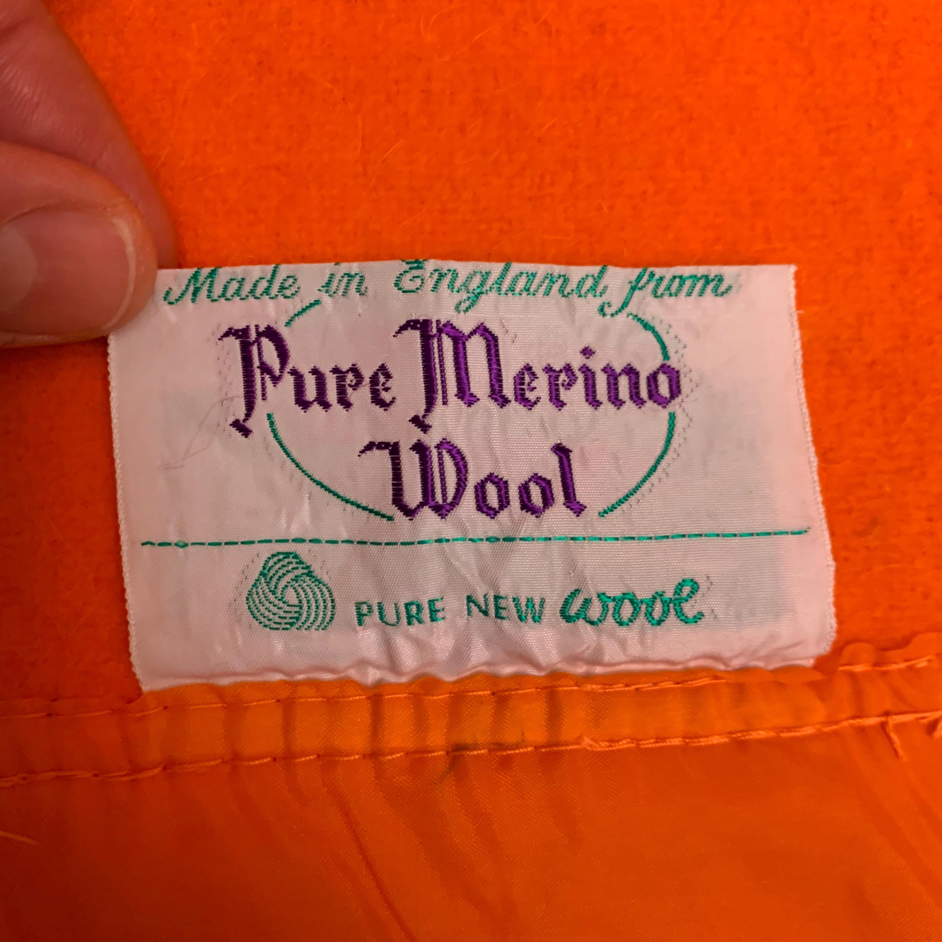 Quality Vintage Pure merino wool blanket in bright orange. Made in England.