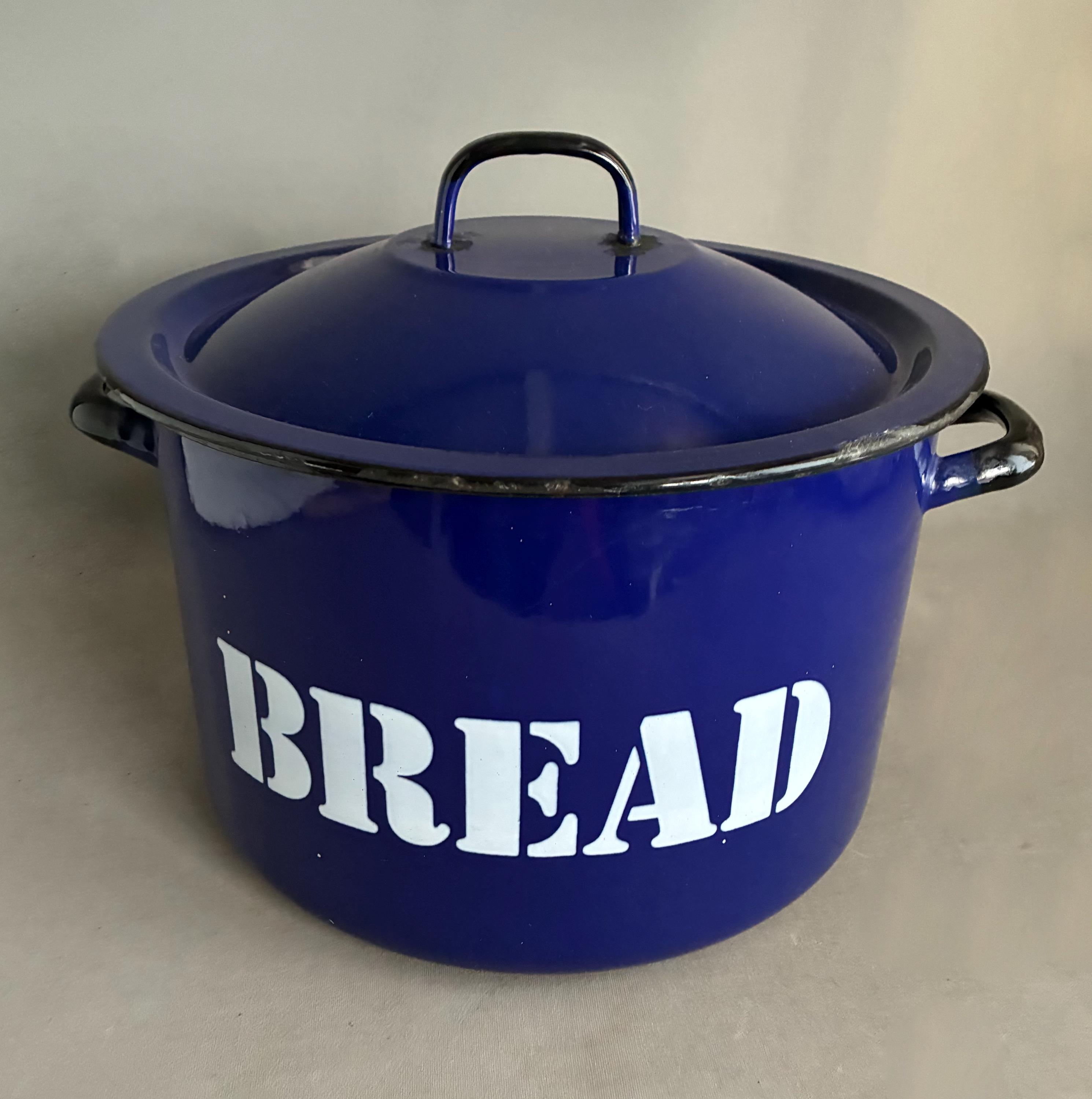 A classic vintage blue enamel bread bin. A stylish and useful collectible circa 1970s- sold in Habitat