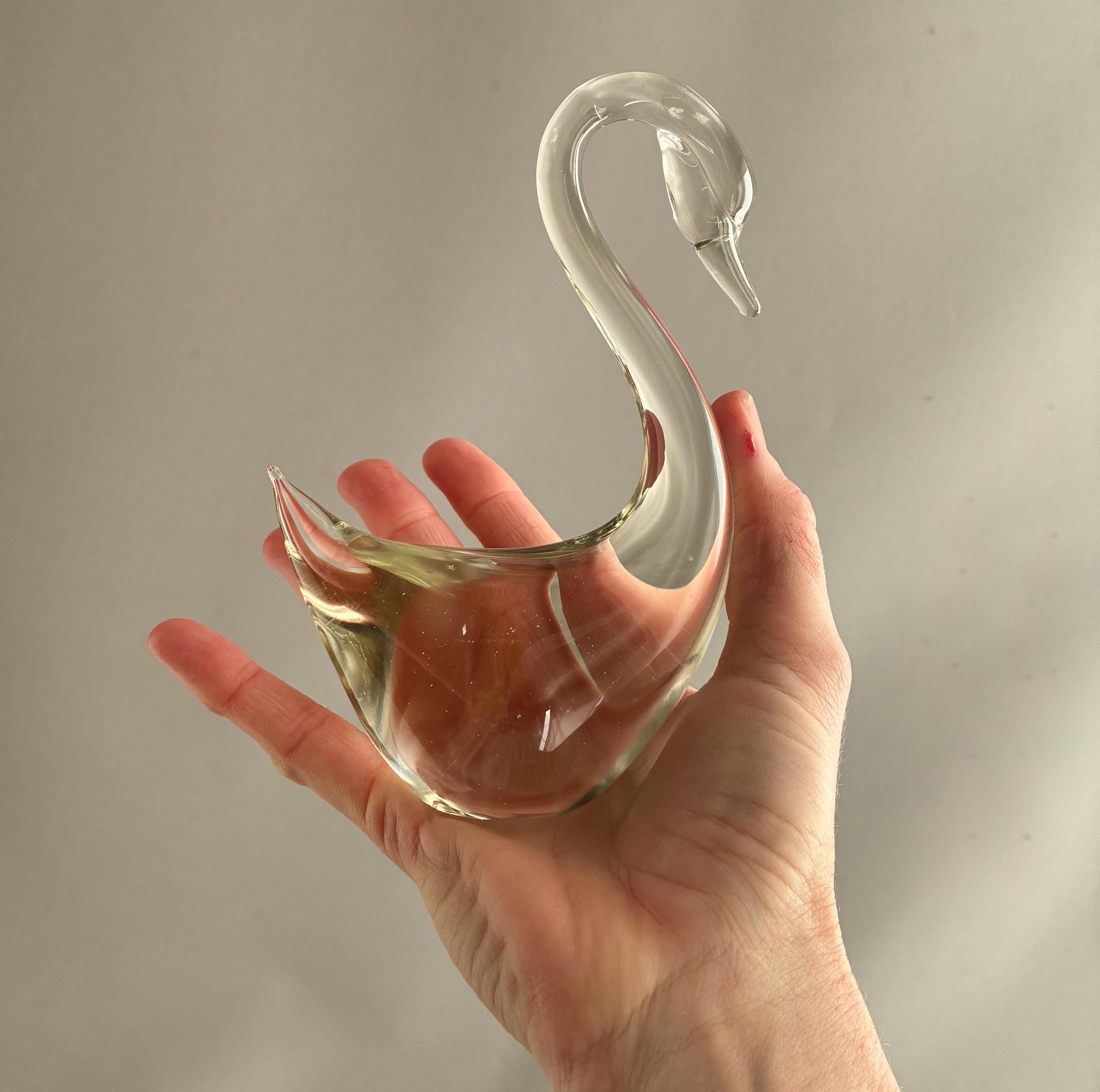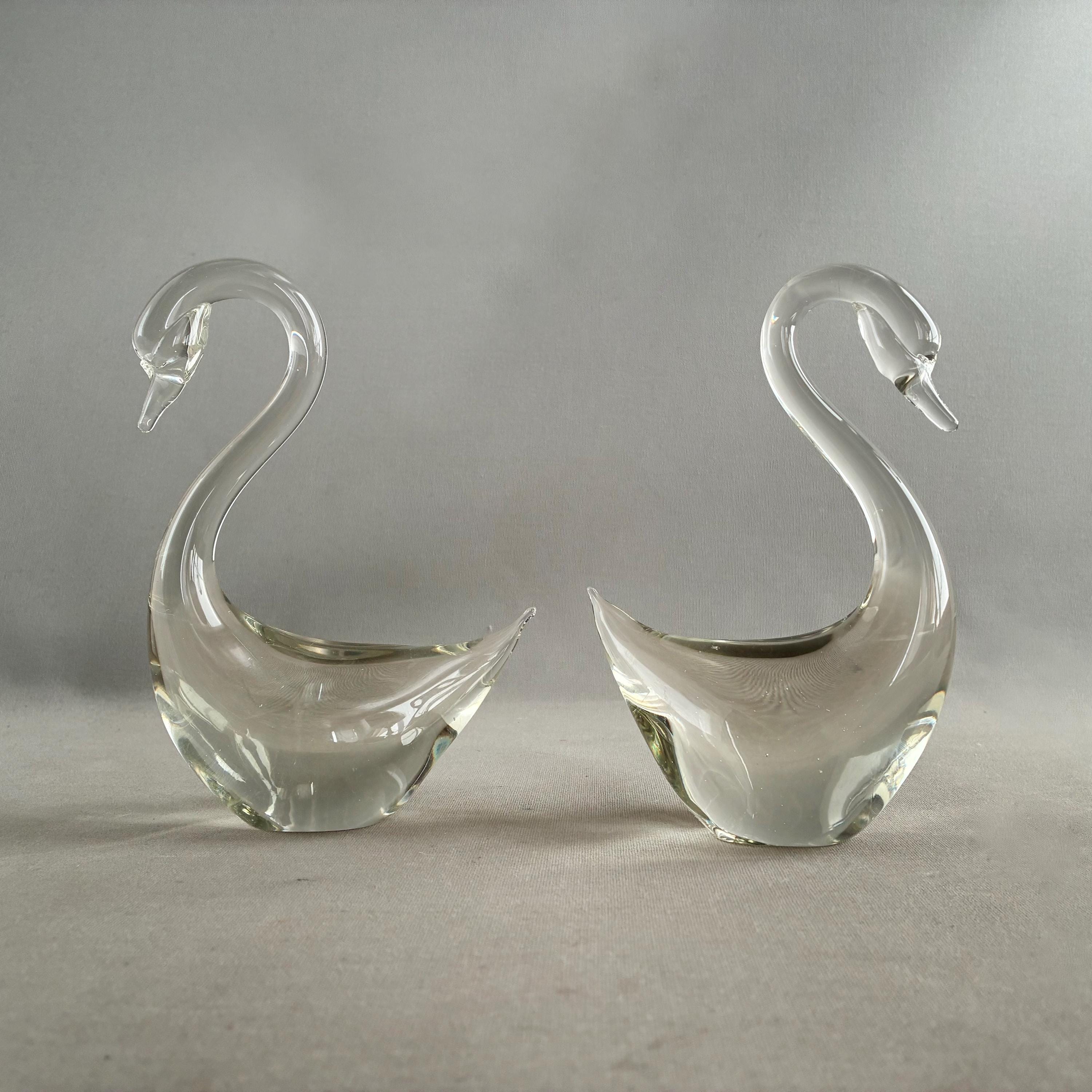 A beautiful pair of studio glass swans possibly Murano .In mint condition