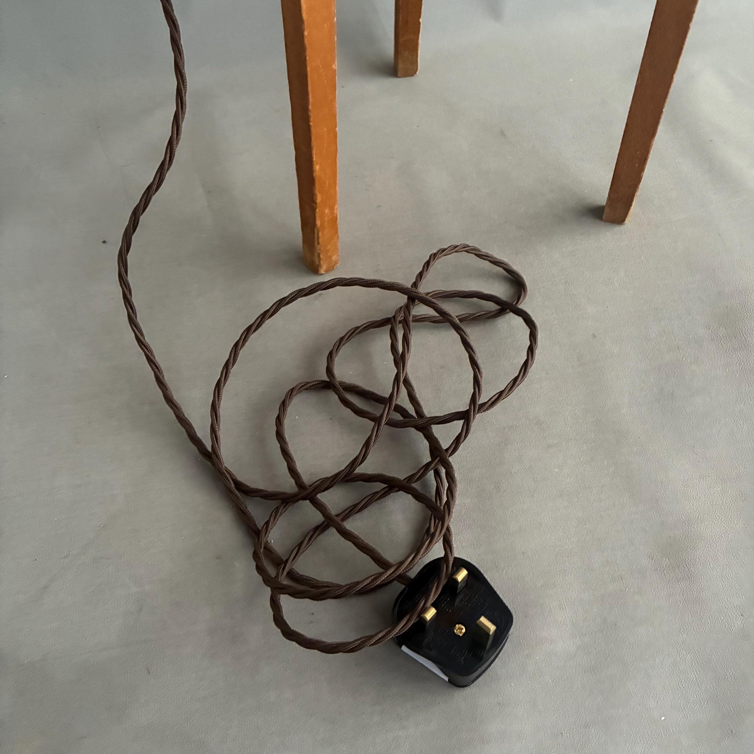 It has a translucent appearance when lit. And a lovely warm orange glow that brings a lot of atmosphere to a room or corner. 94 cm tall x 23 cm wide. Professionally rewired with brown braided textile cable and black on cable switch and brass bayonet lamp holders . Requires 2 bulbs .U.k plug