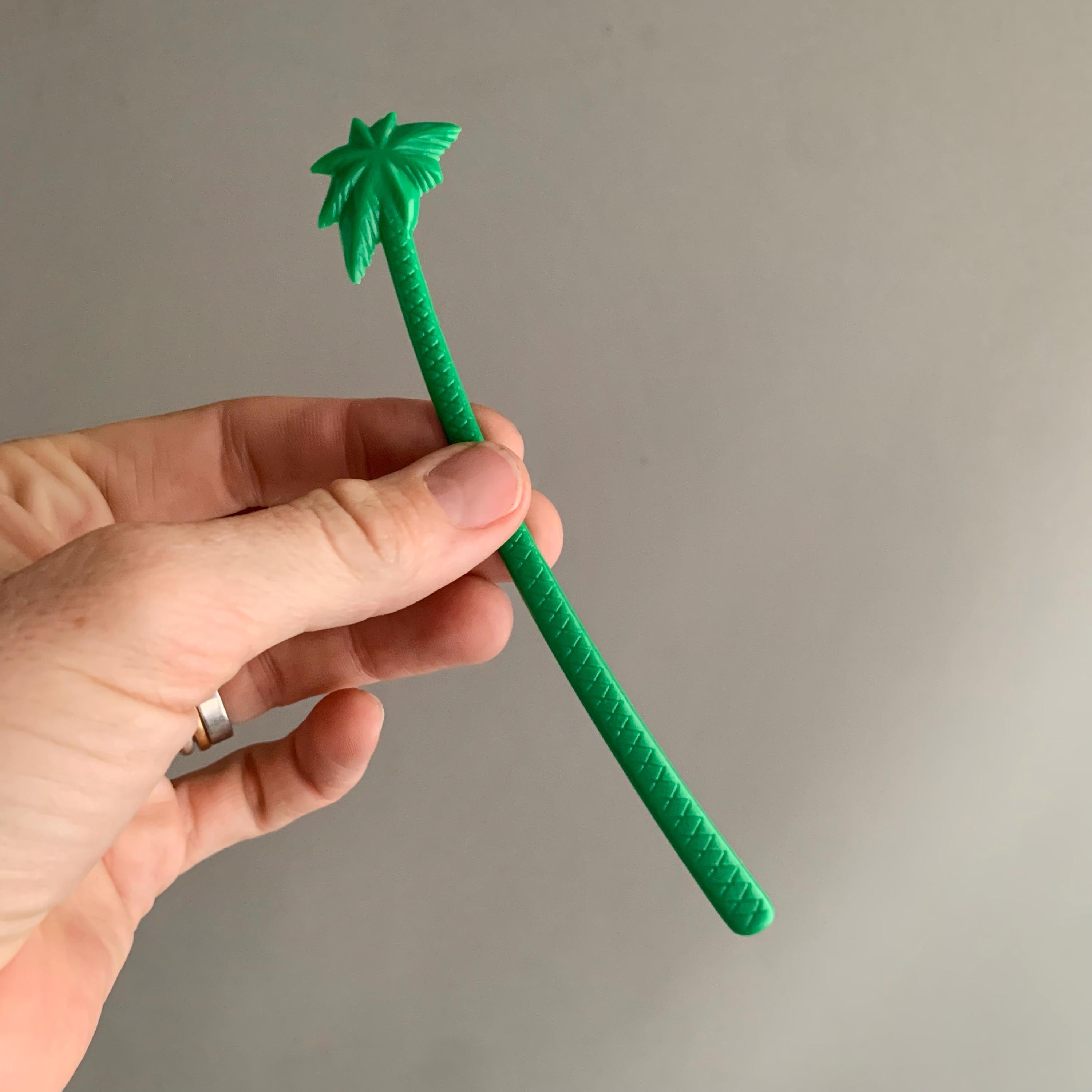 Then through the 1940s and 1950s, plastic production increased, and many businesses, such as nightclubs, airlines, and liquor companies had a custom signature swizzle. These were considered souvenirs and taking them home was encouraged. Essentially, they could be used again, serving as reminders of a great trip or night out.