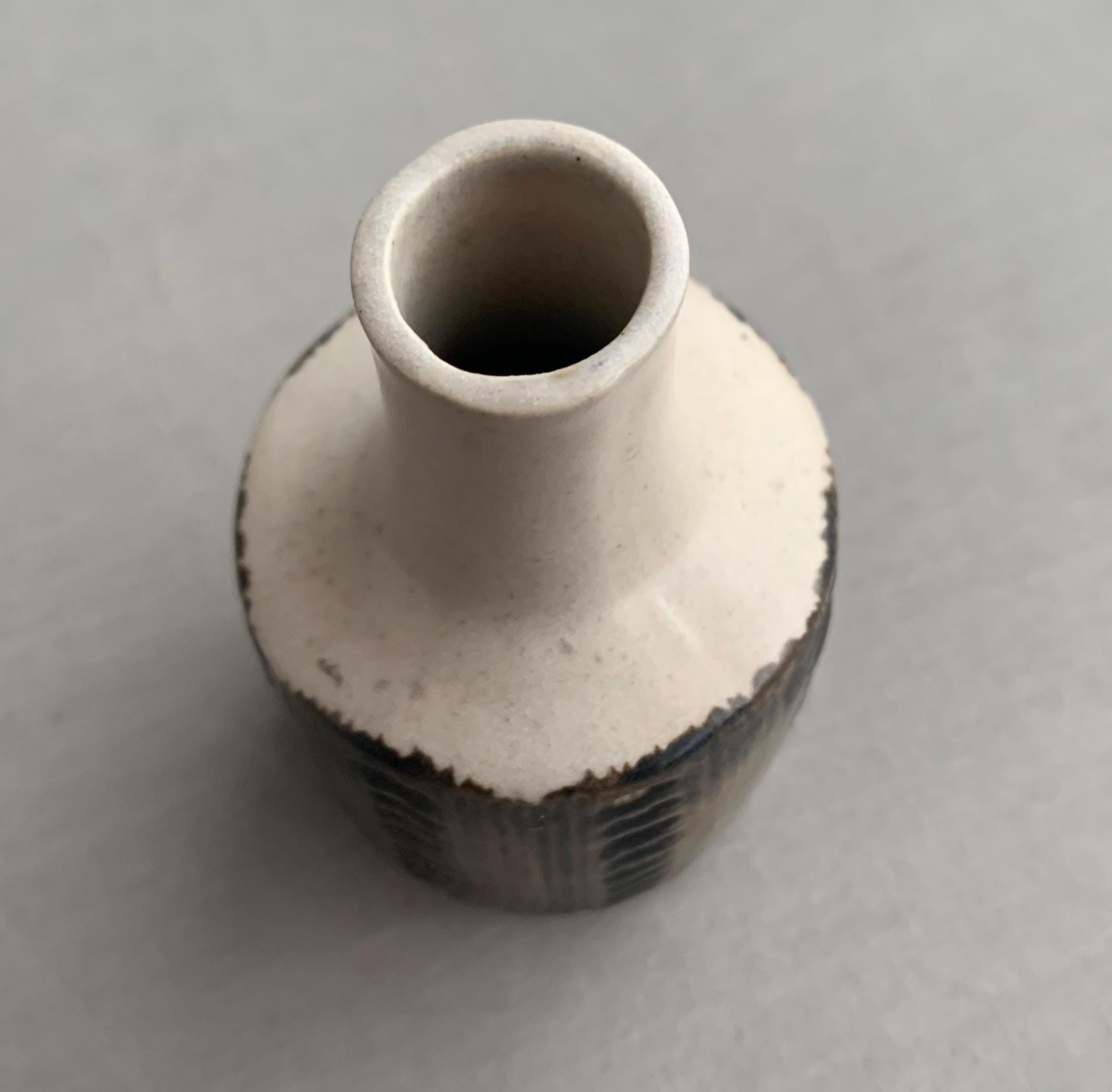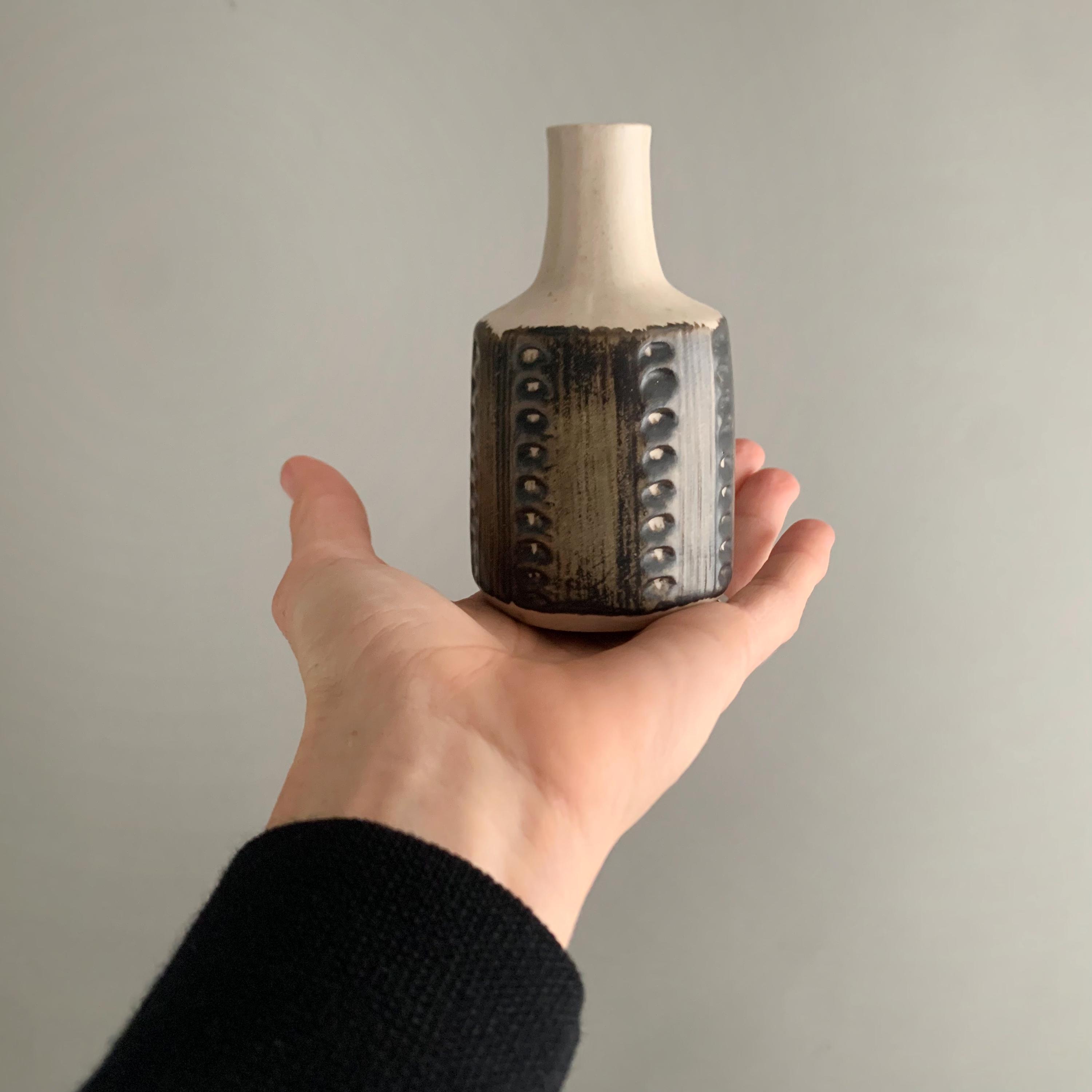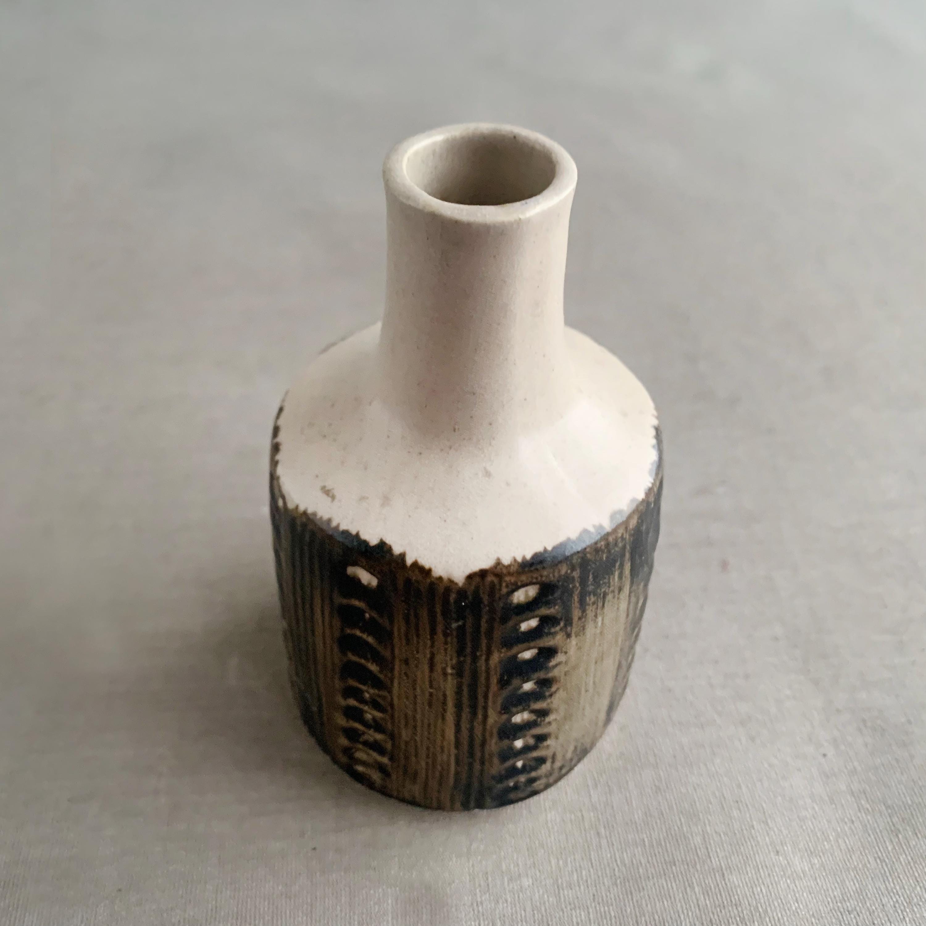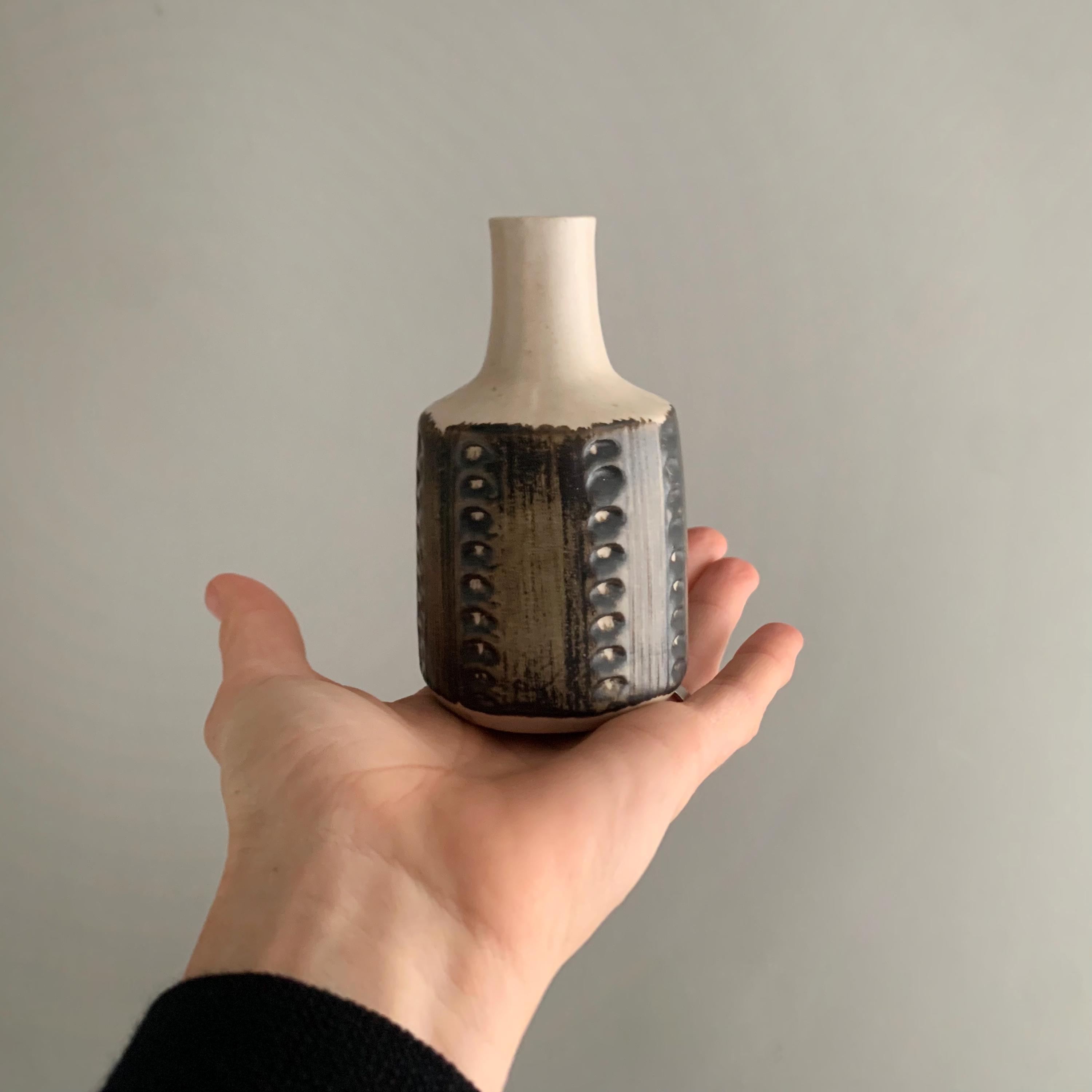 A vintage mid-century ceramic bud vase made by Knobler Japan, The pieces were designed by Alfred E. Knobler and produced in Japan as part of his giftware line.
