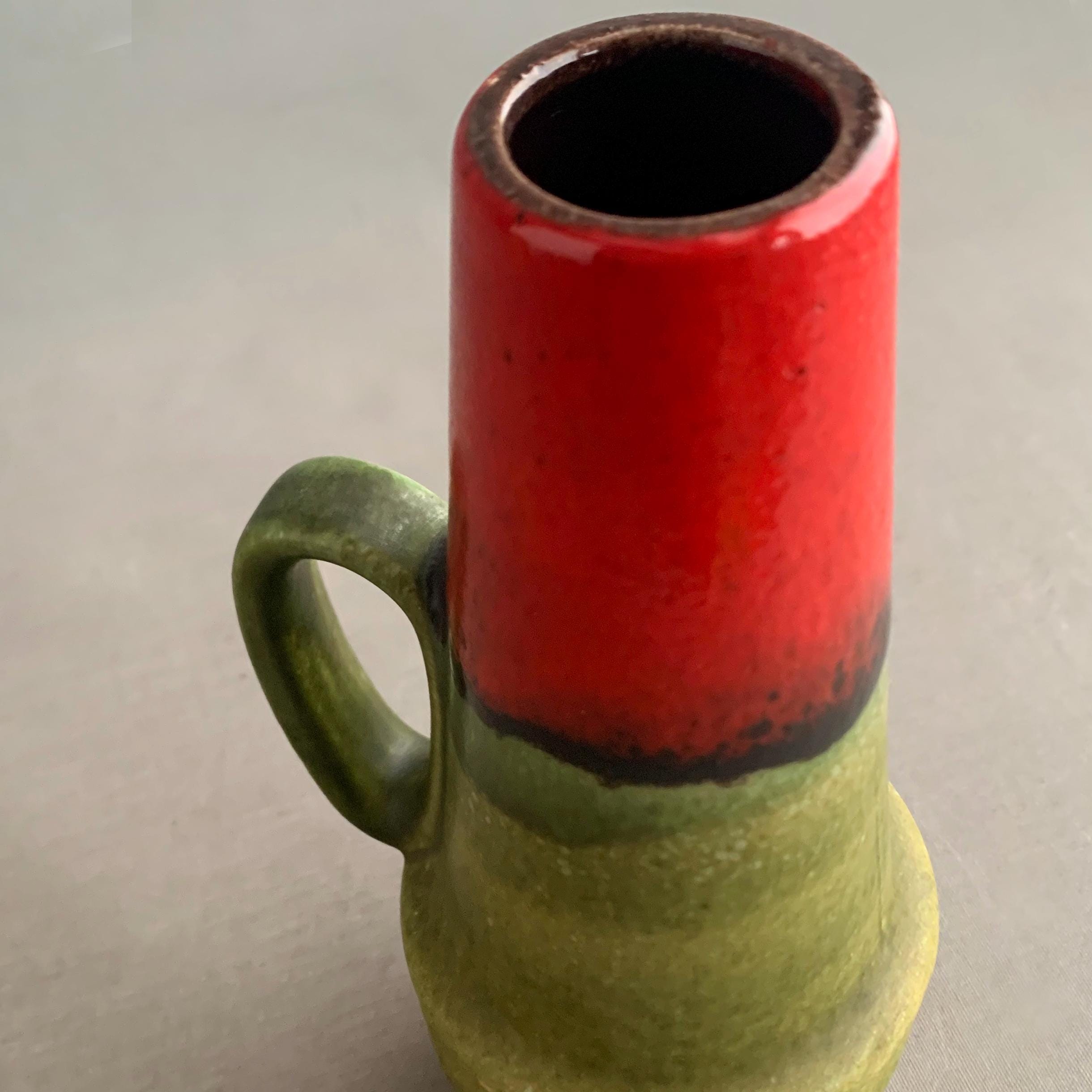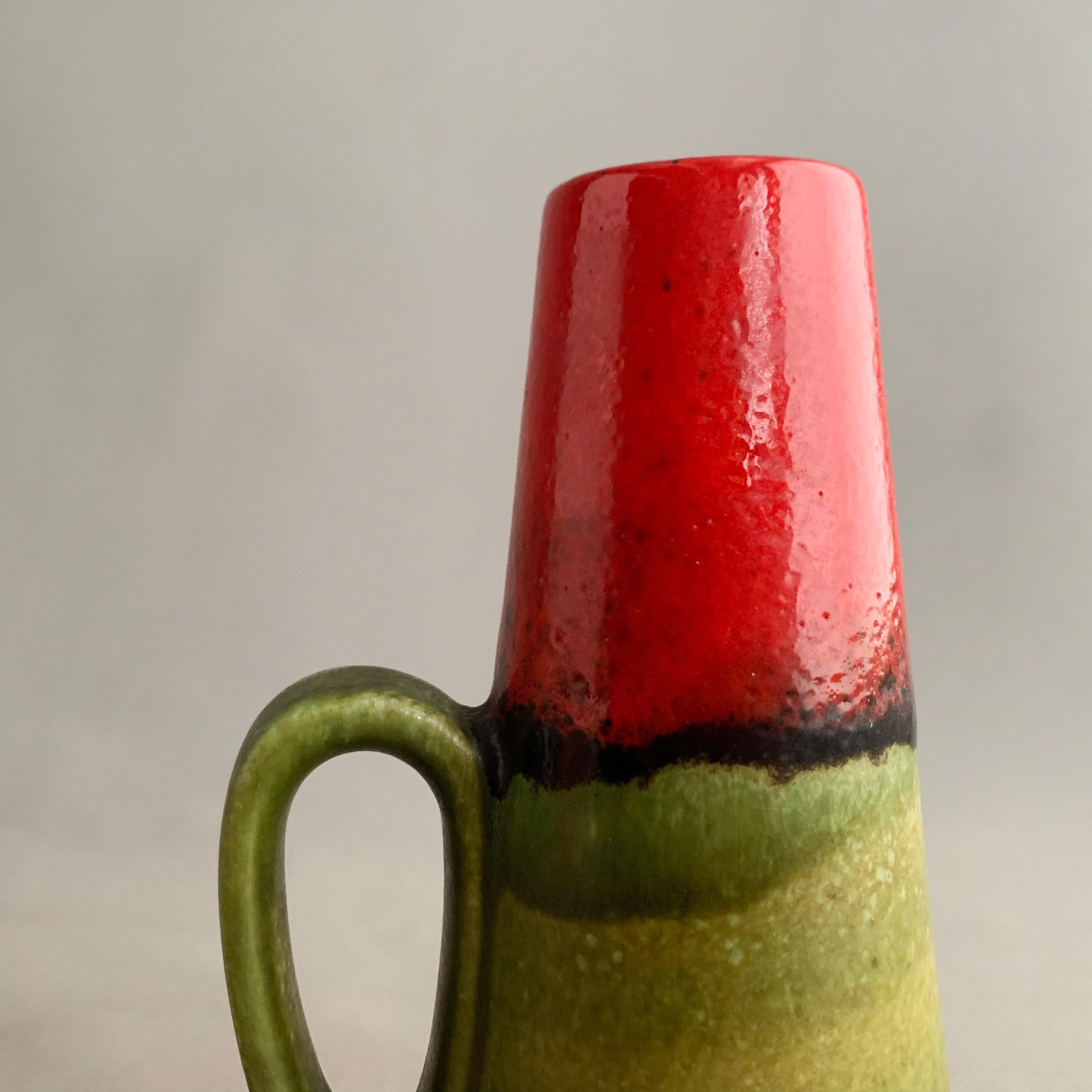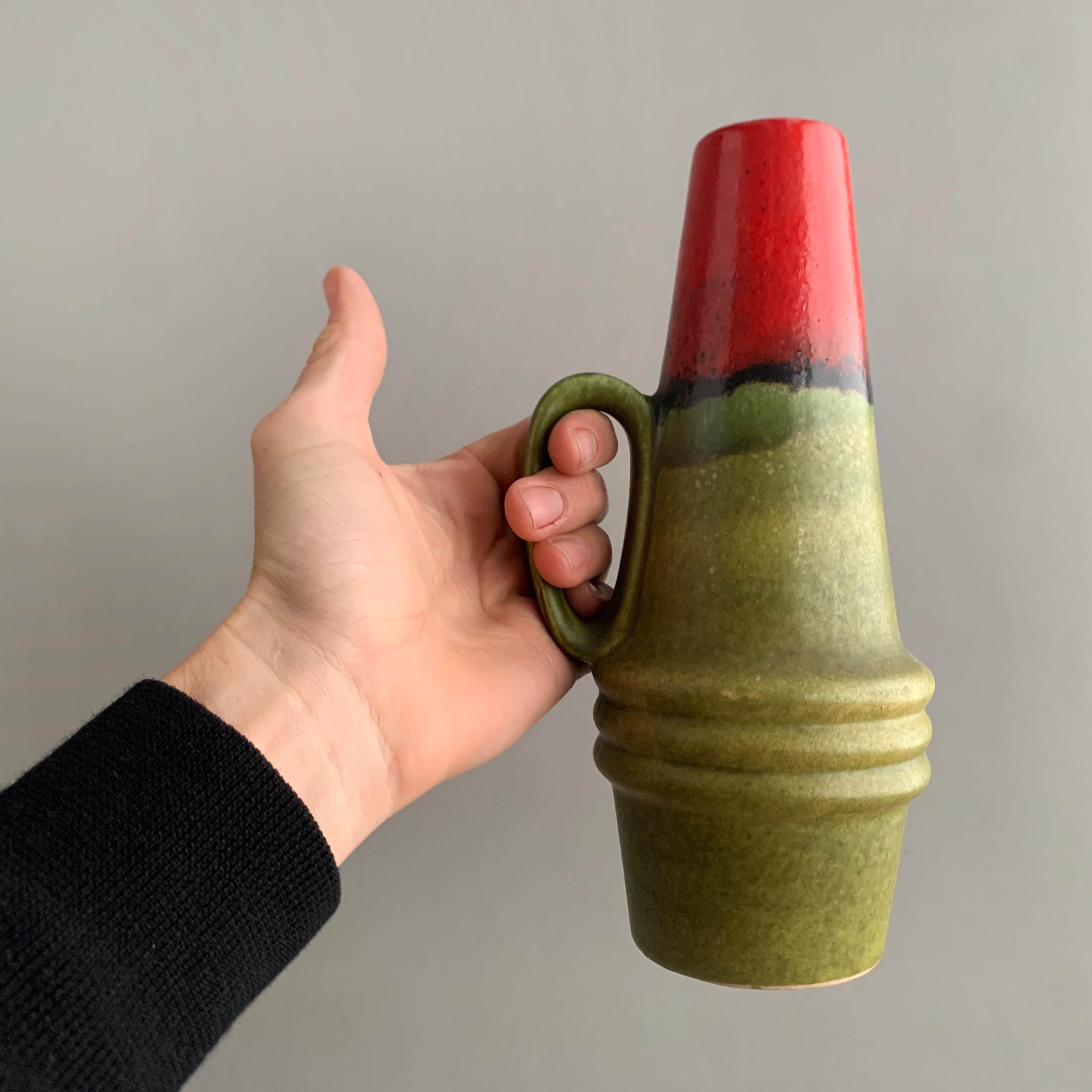 A Scheurich West German Pottery vase, model number 209-18, with a green, black, and red glaze.