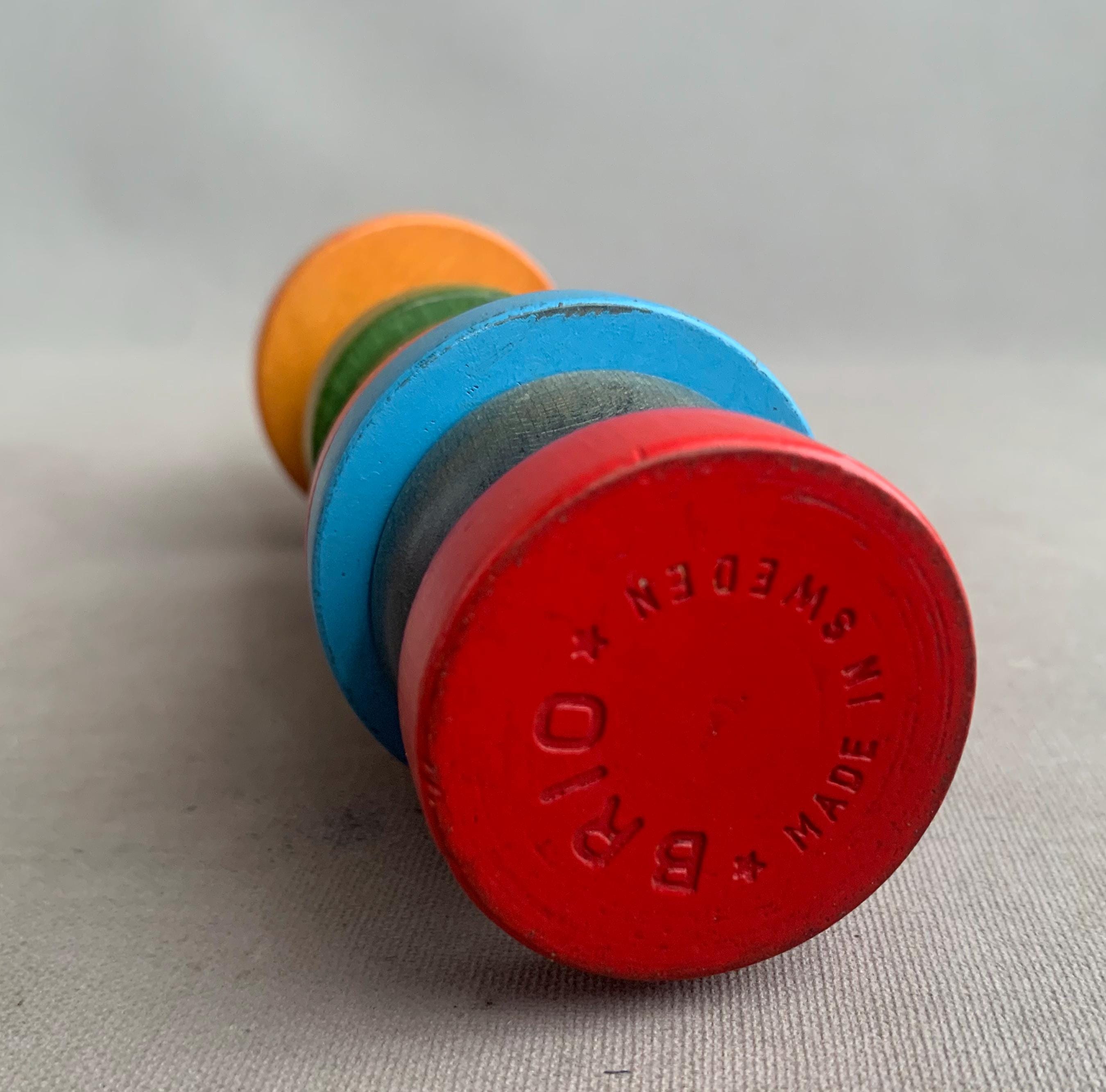 A vintage Brio wooden stacking toy figure, known as "Mexi" or "Don Pedro" depending on its size.