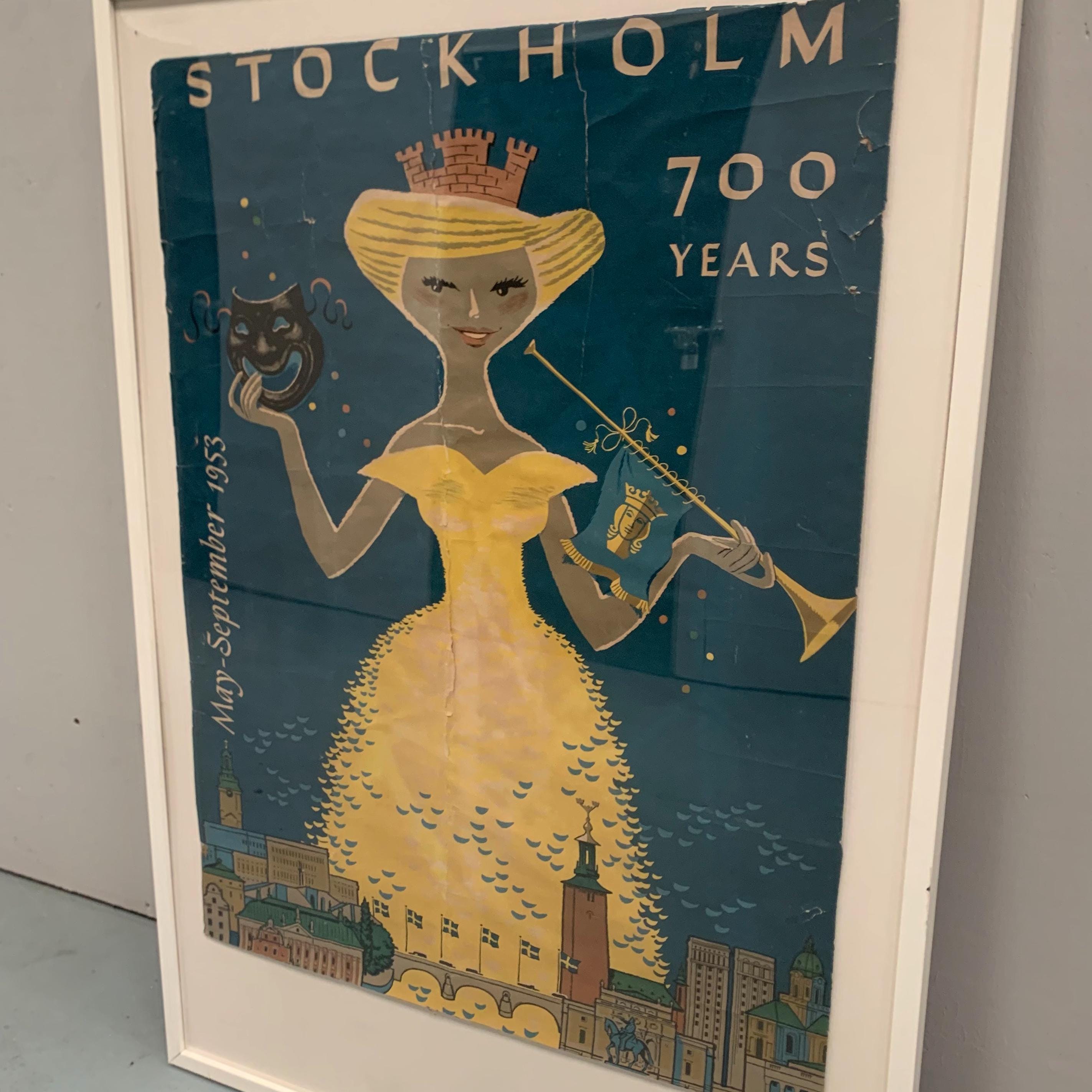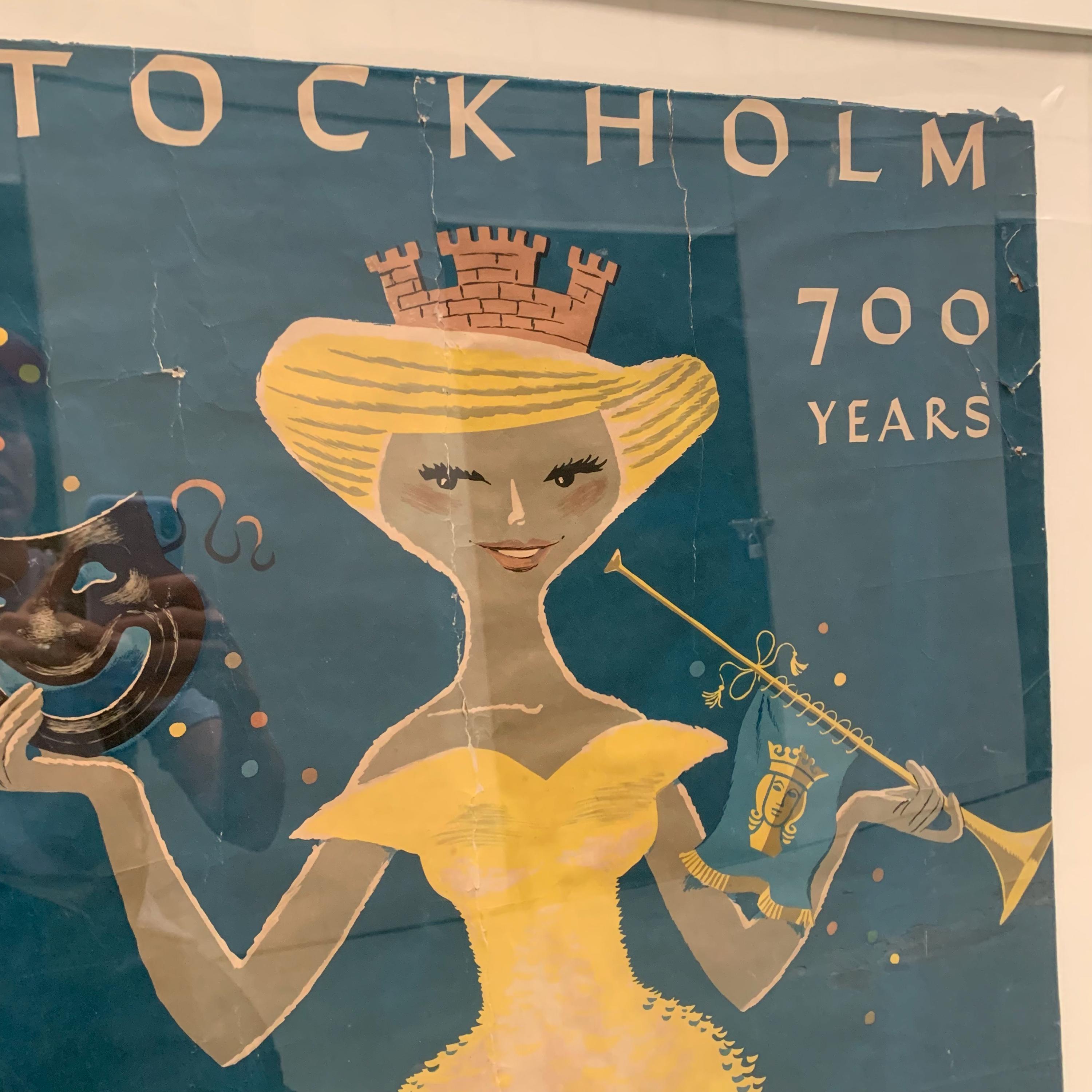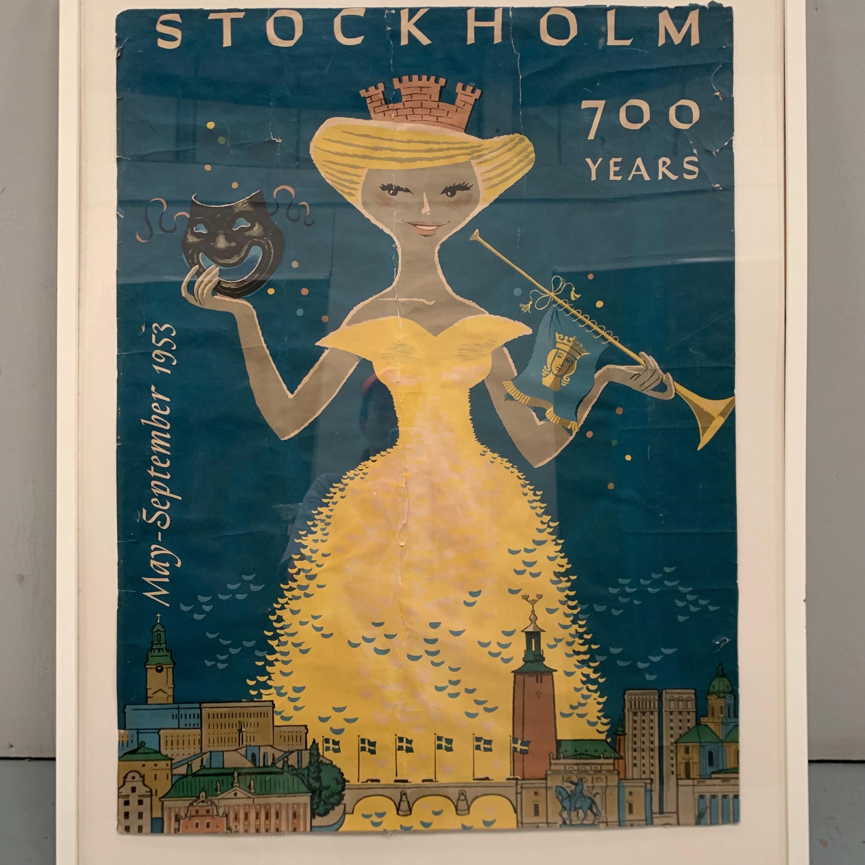 This is an original vintage travel poster by Curt Blixt. Created in 1953 to celebrate Stockholm's 700th anniversary.