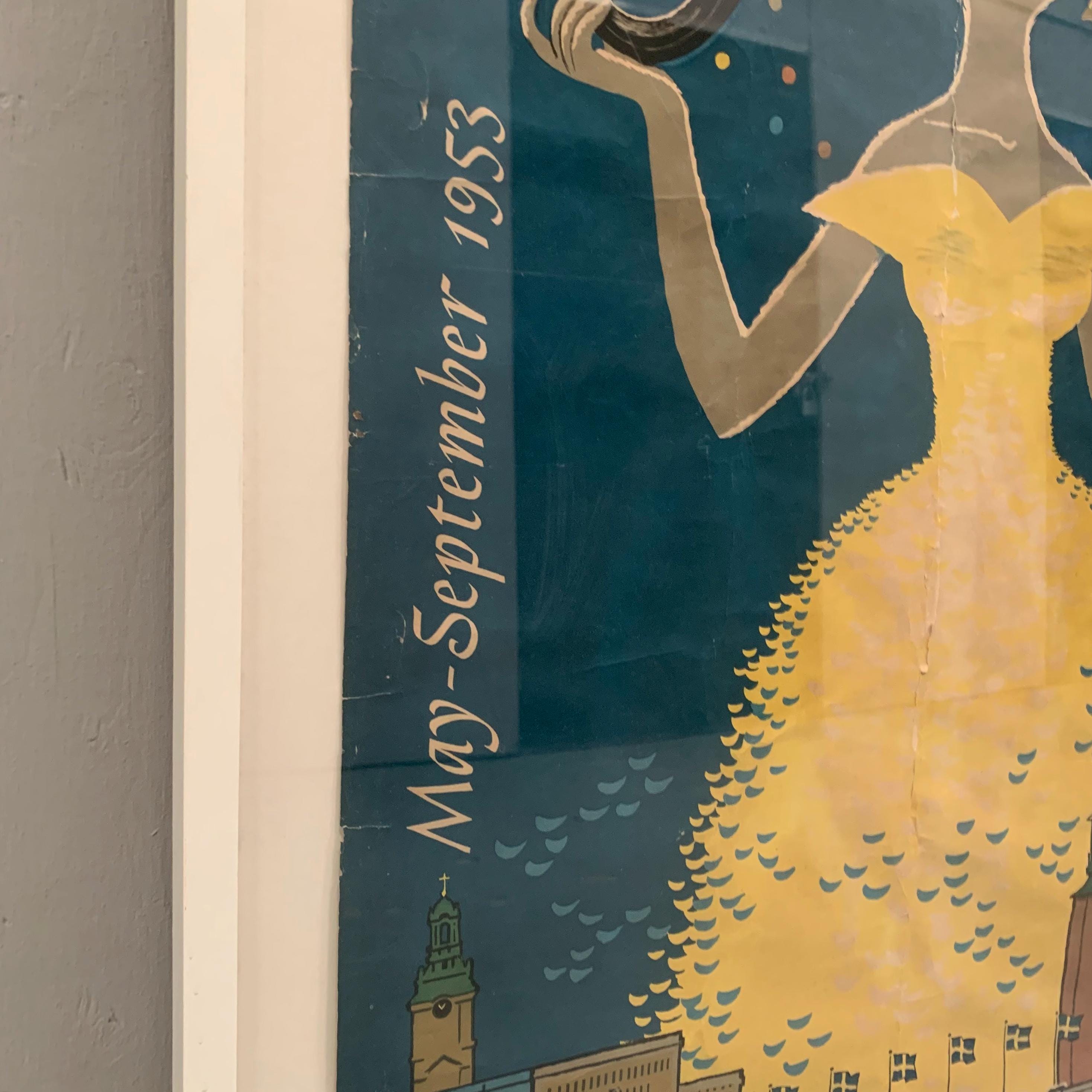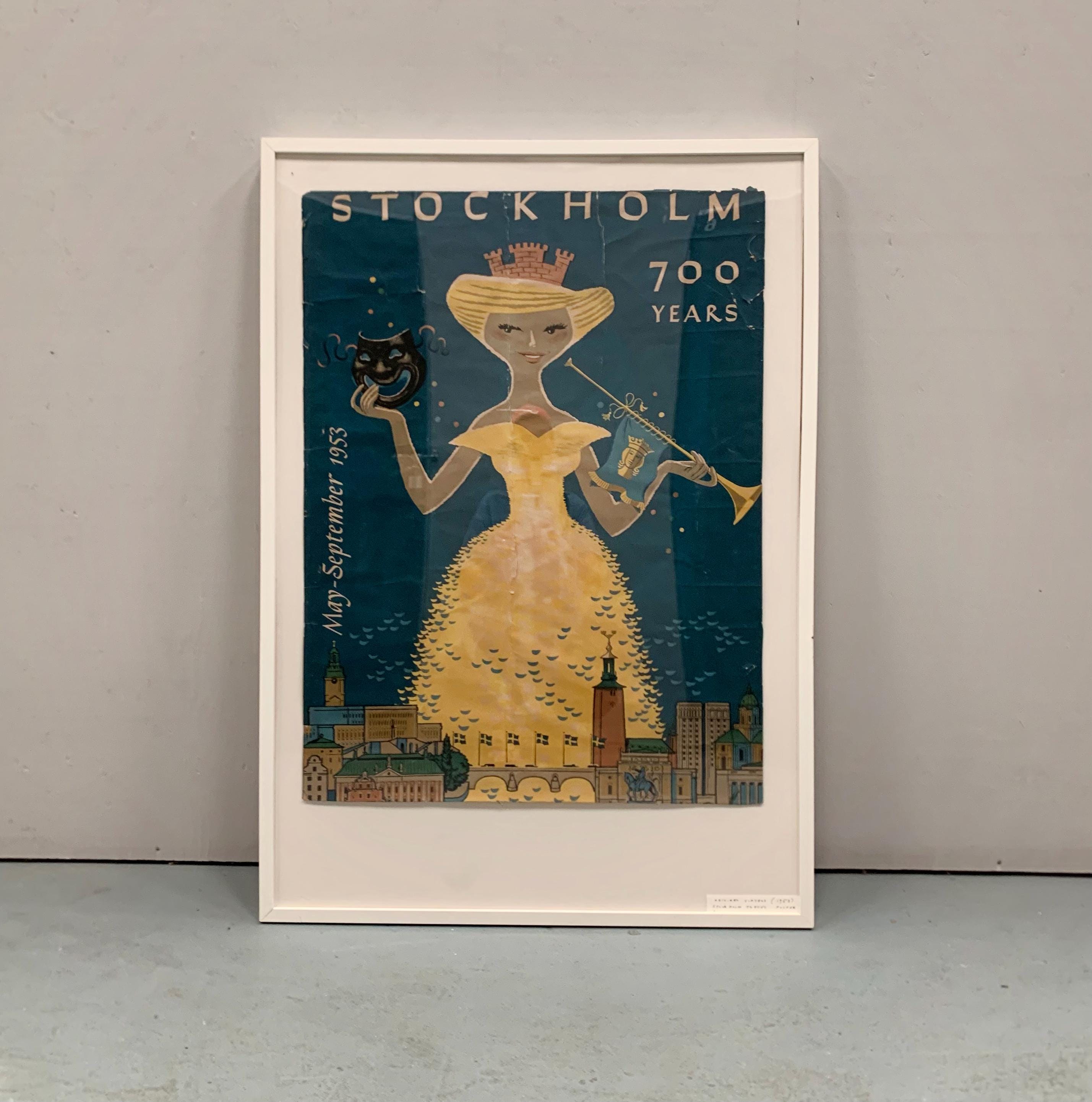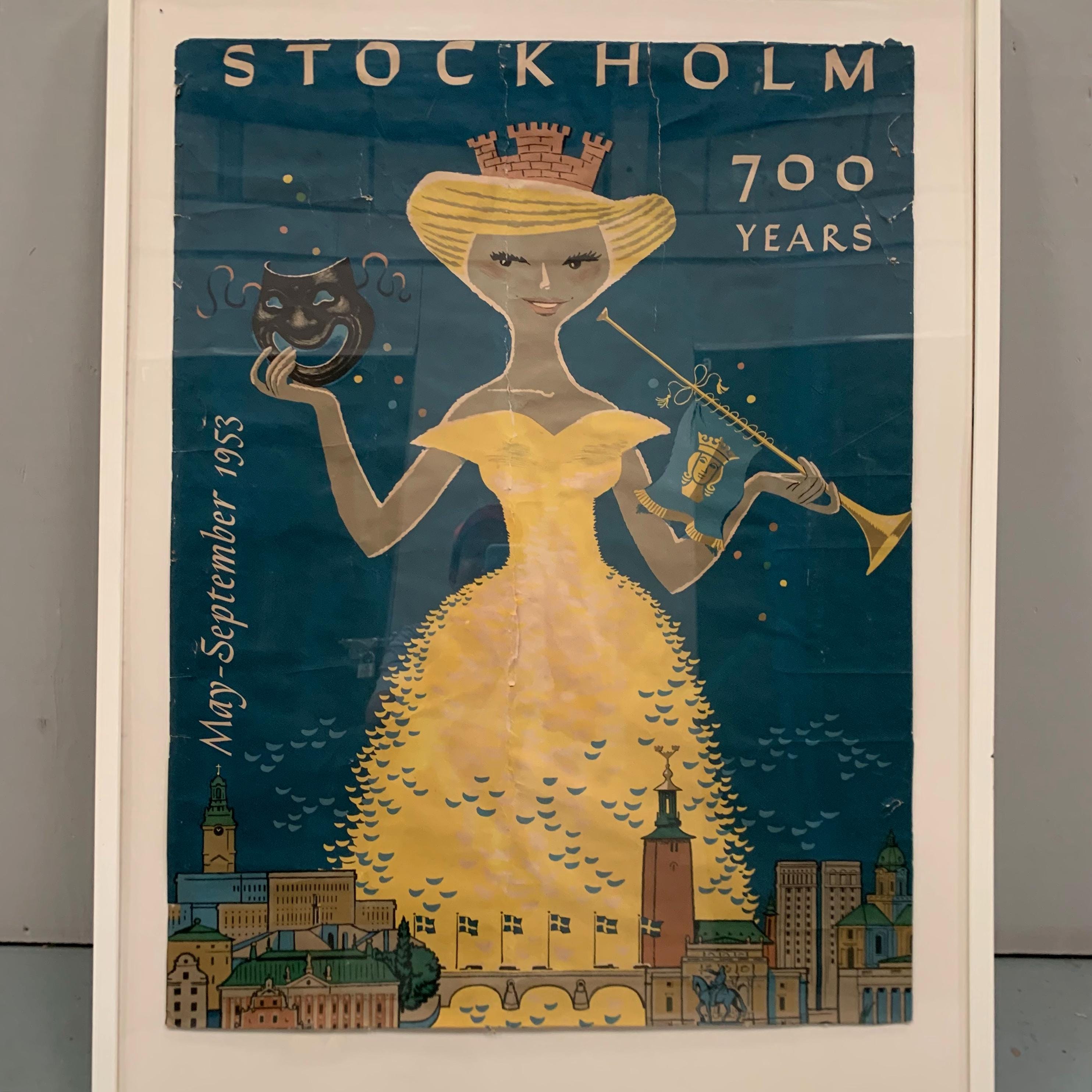 This is an original vintage travel poster by Curt Blixt. Created in 1953 to celebrate Stockholm's 700th anniversary.