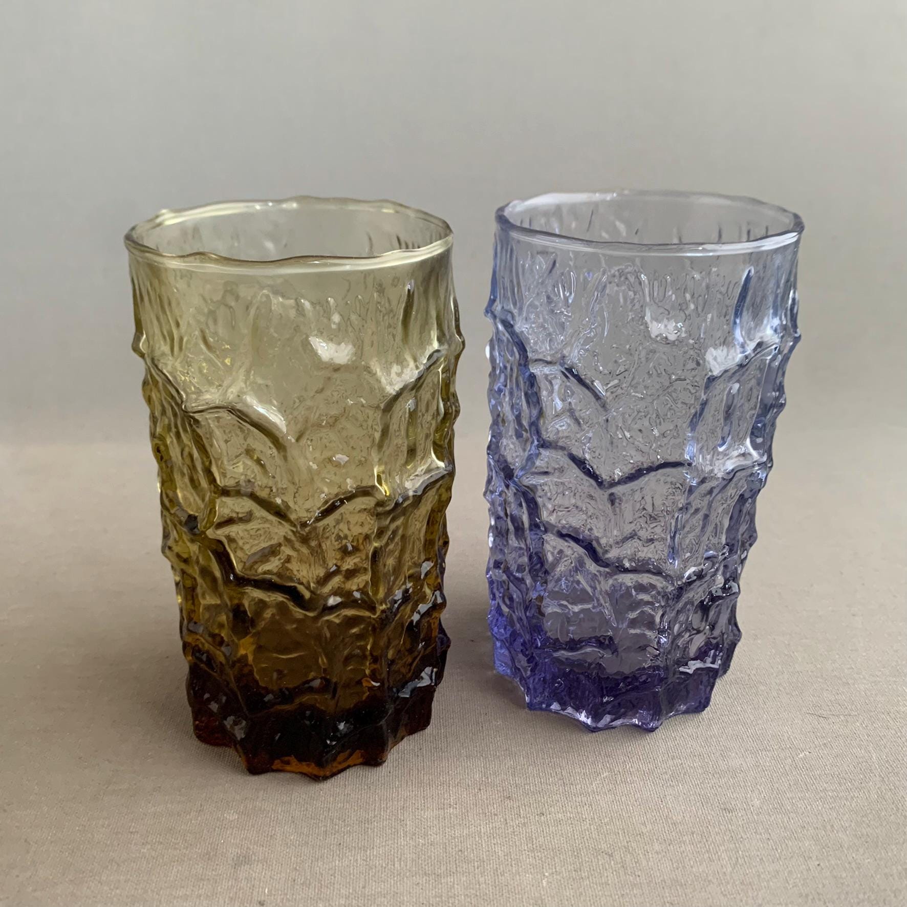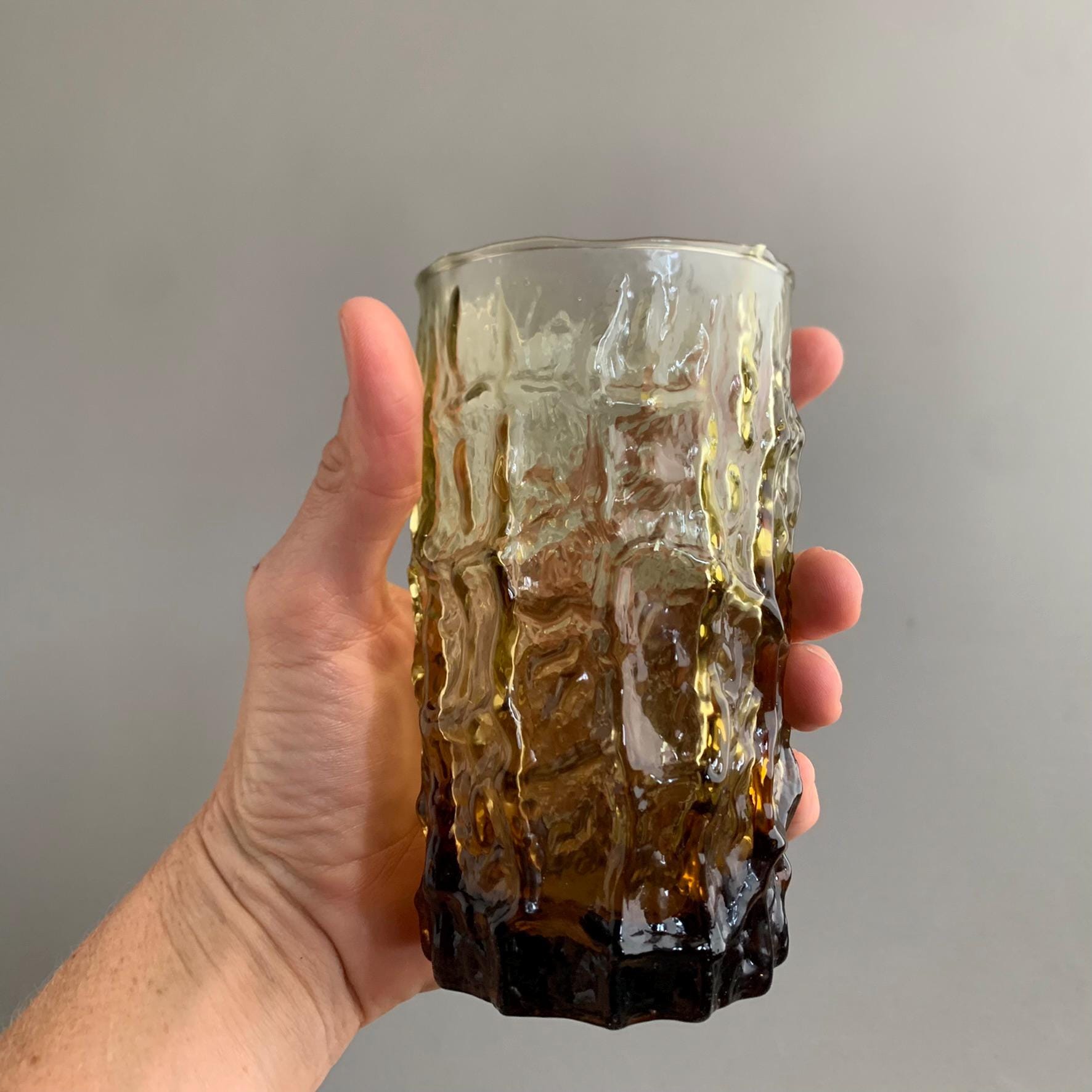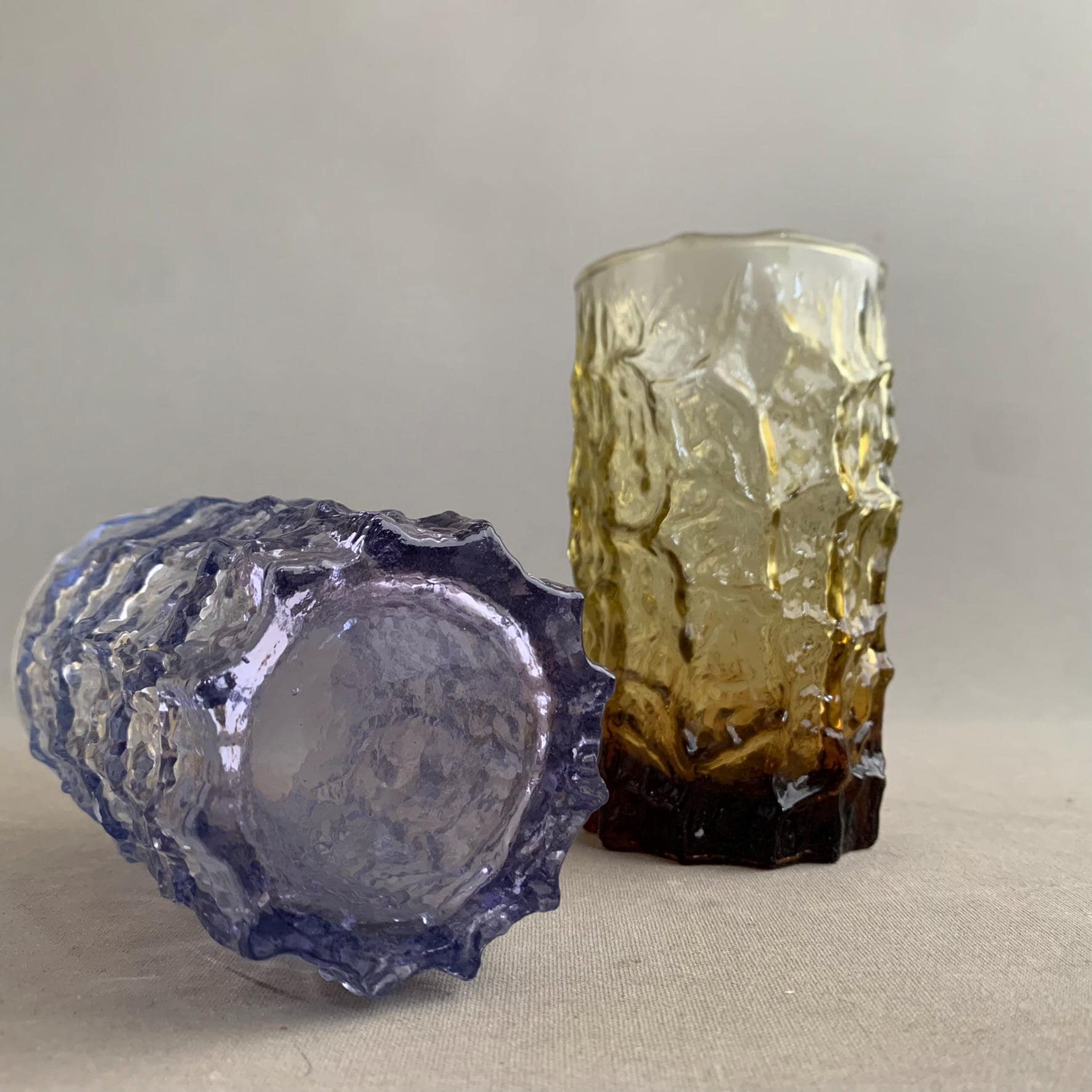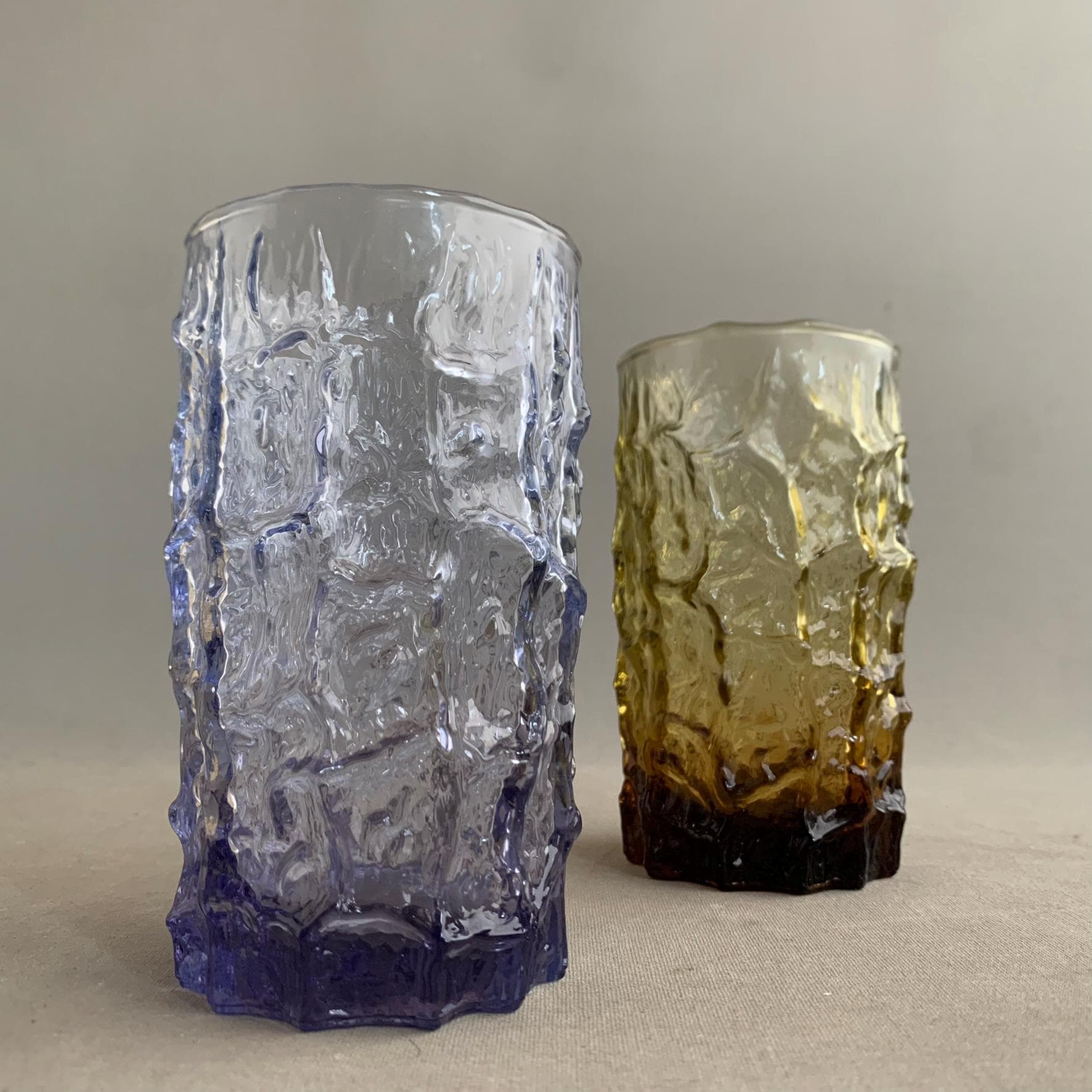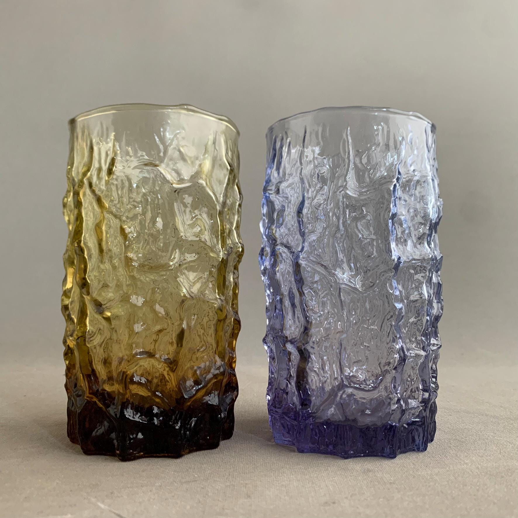 set of 2 "long drinks" "Bark" textured glasses by geoffrey baxter by the famous whitefriars glassworks in north london circa 1960s.