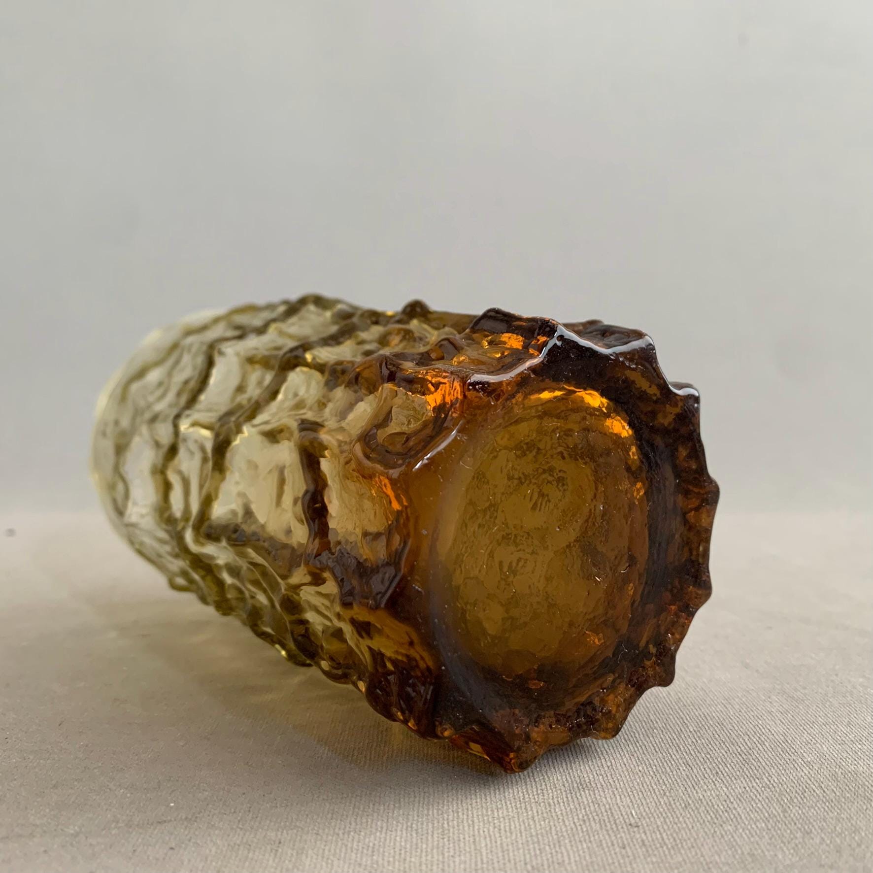 Thick and heavy Bark texture blown glass, in blue and and brown