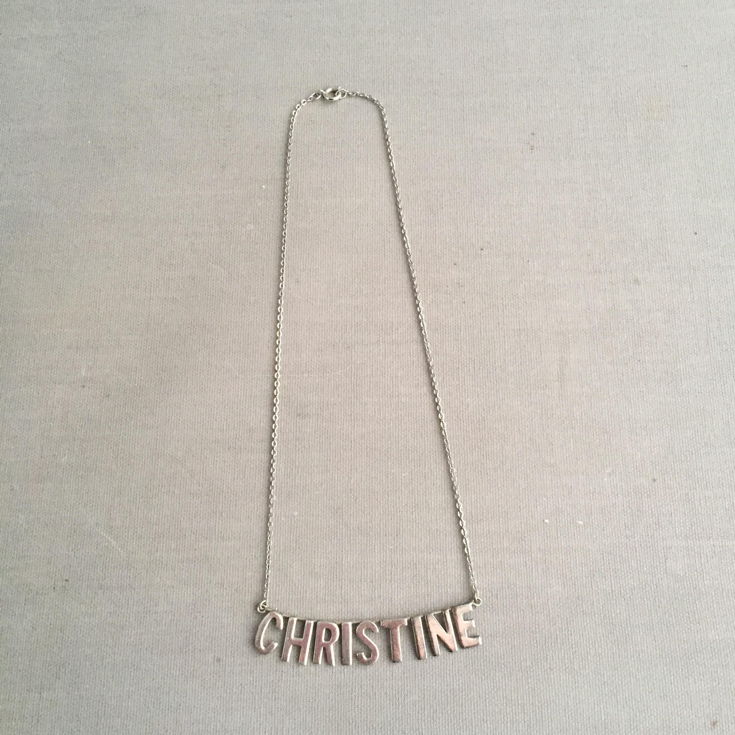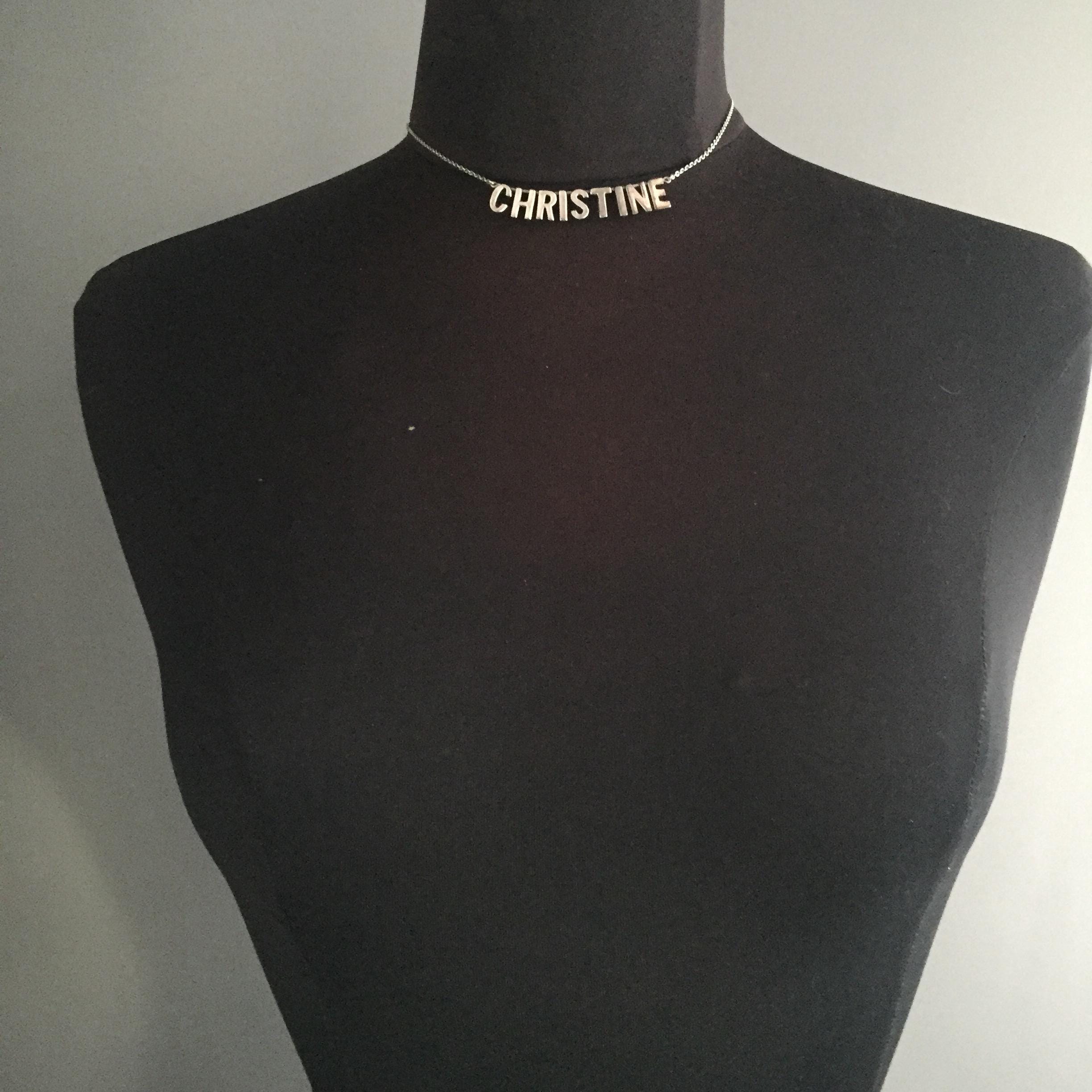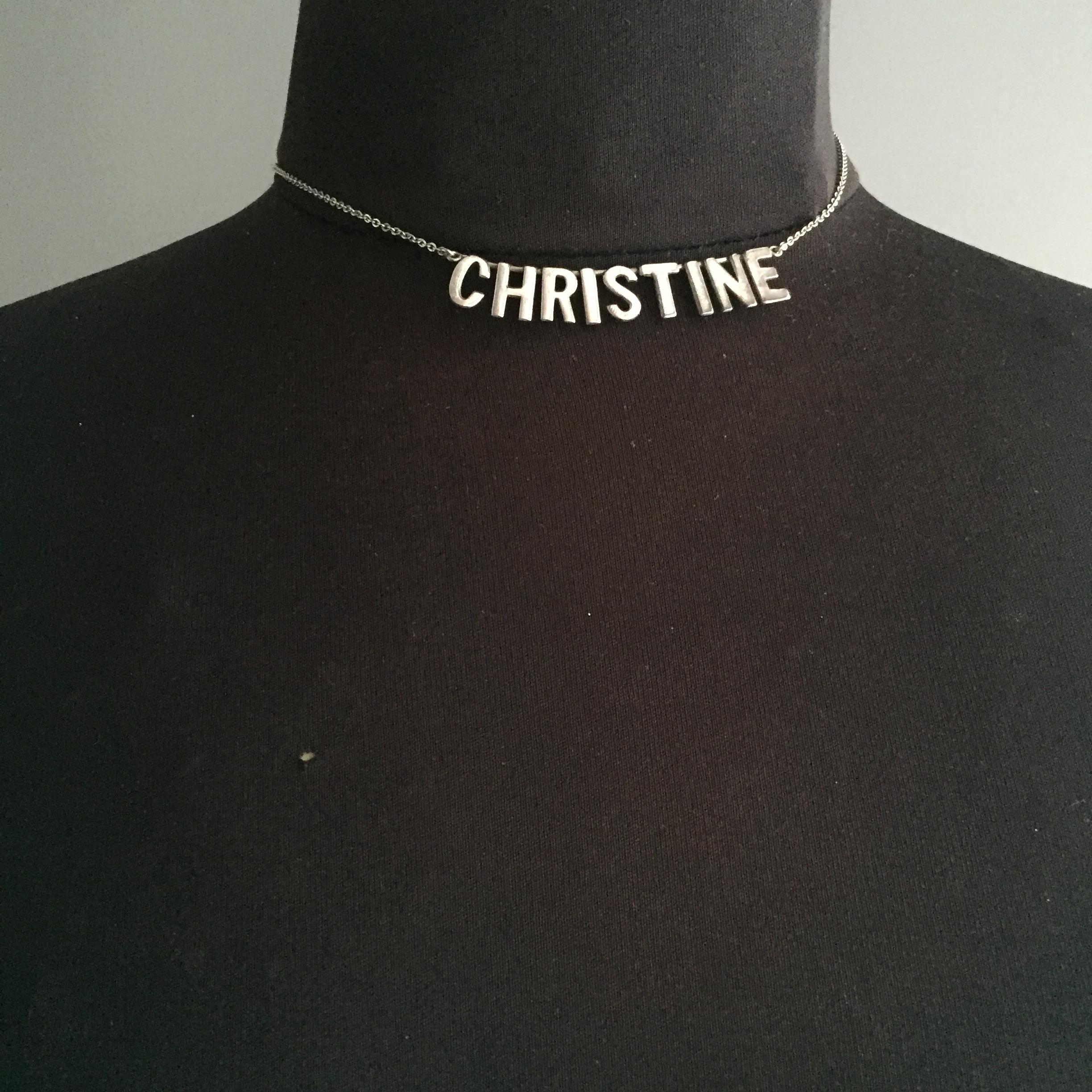 A silver 925 nameplate necklace spelling CHRISTINE . Quite short choker style. Supplied in a gift box