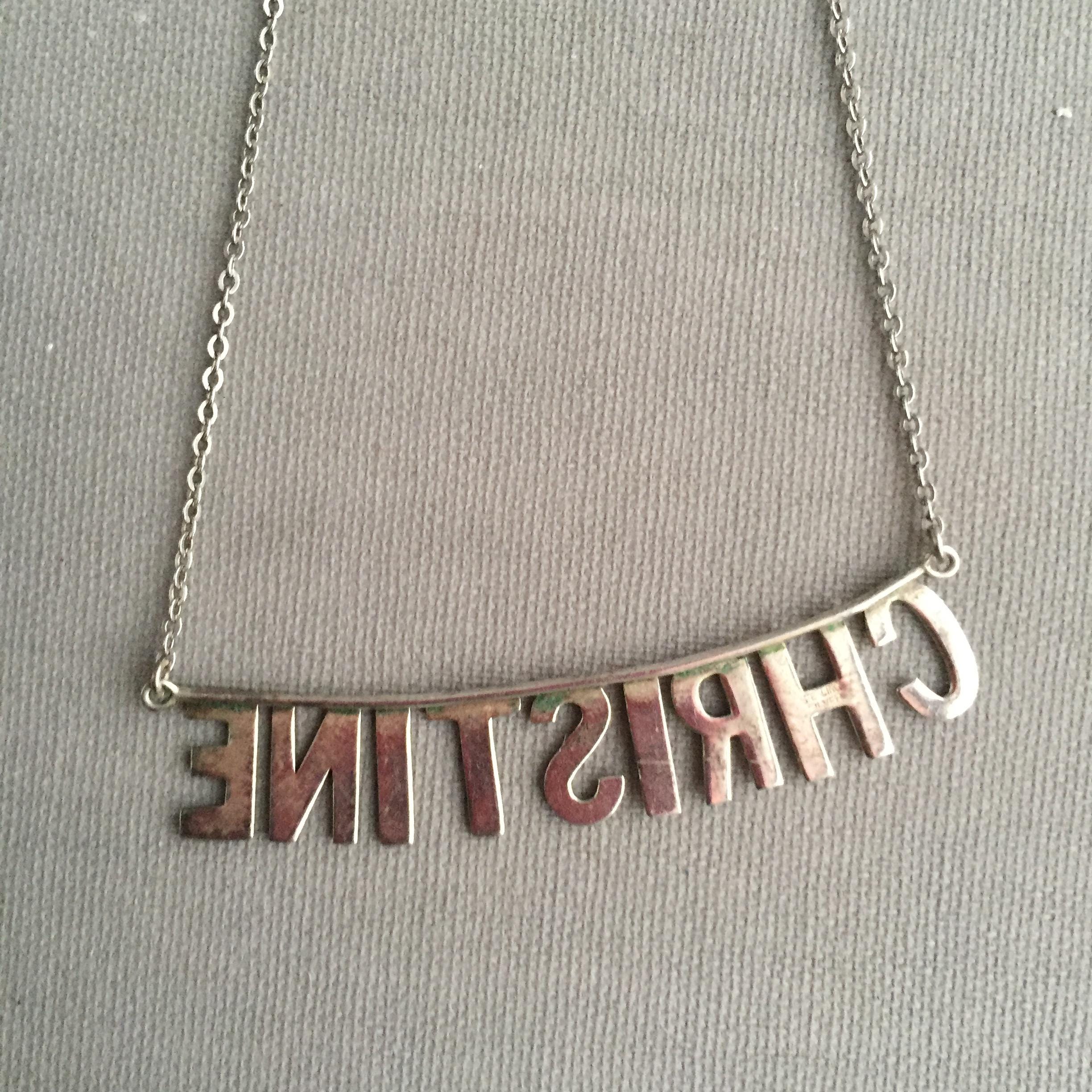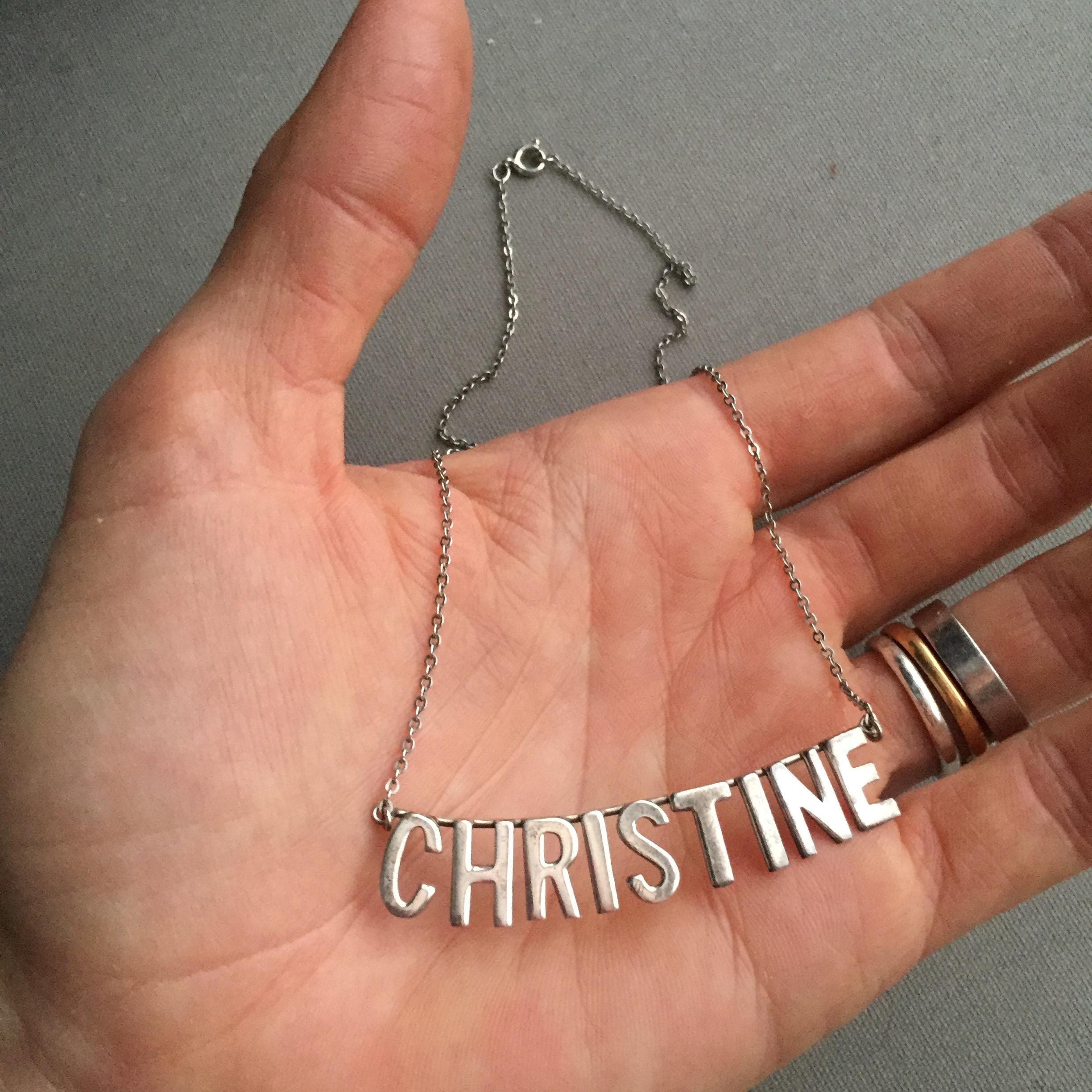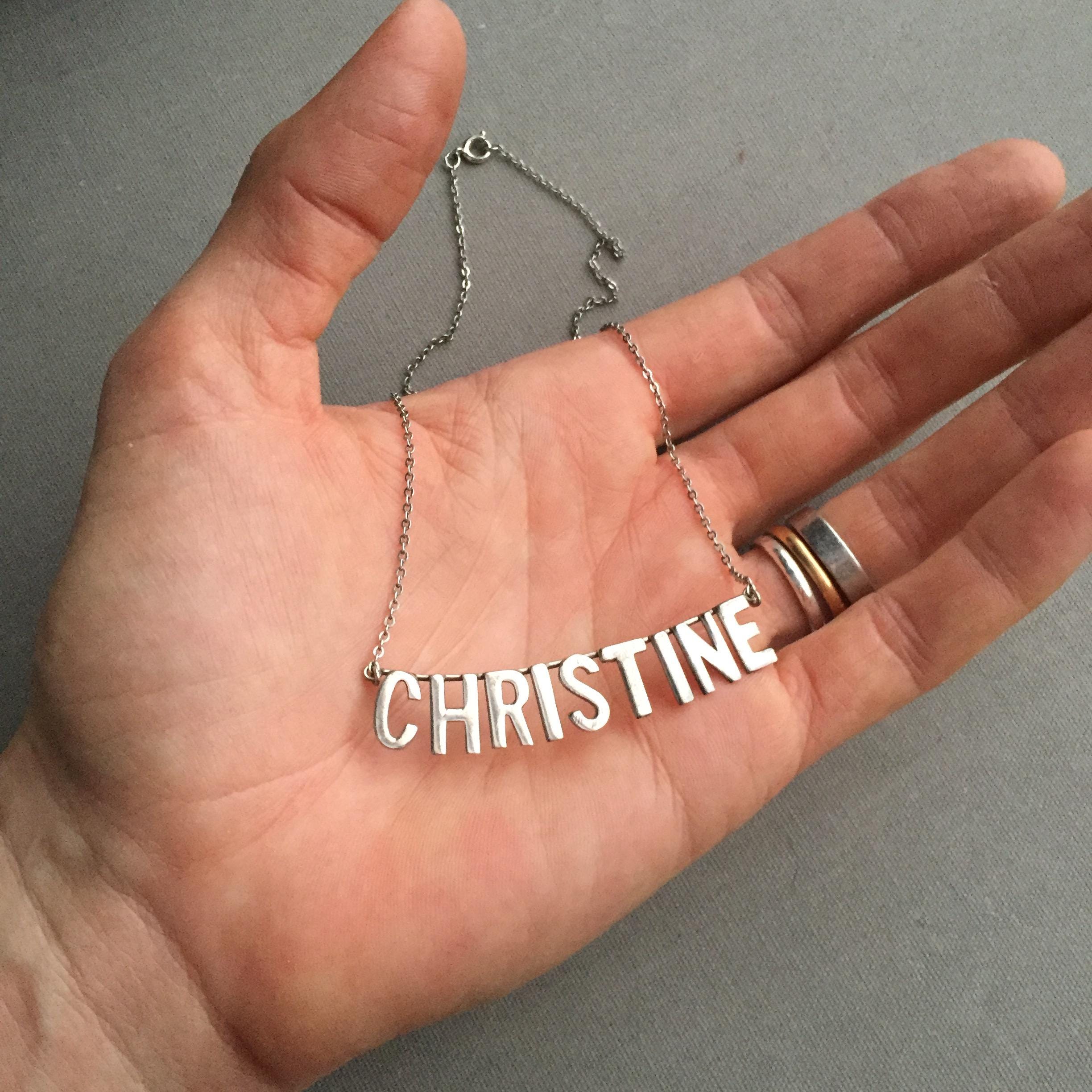 A silver 925 nameplate necklace spelling CHRISTINE . Quite short choker style. Supplied in a gift box