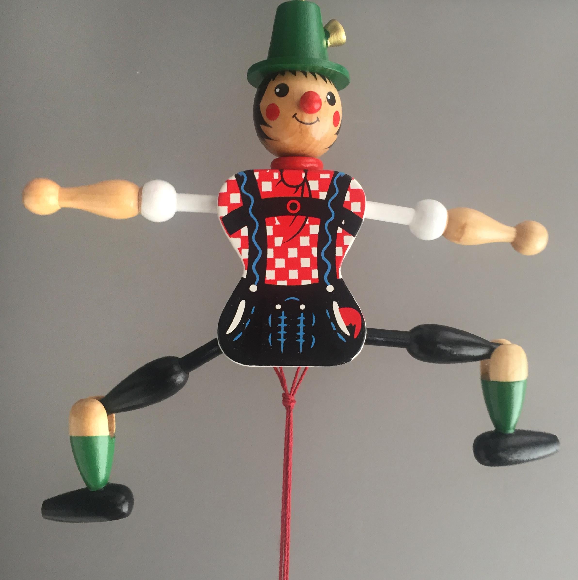 This is a traditional German wooden Jumping Jack toy, also known as a Hampelmann.