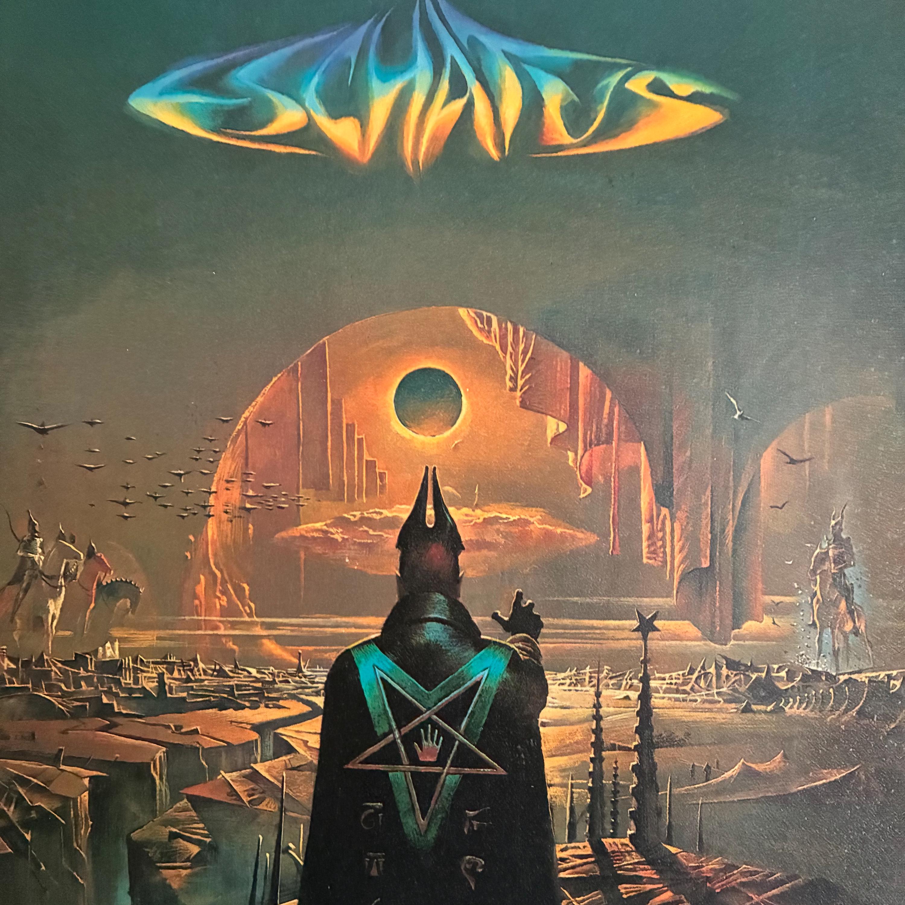 This is the book Eschatus: Future Prophecies from Nostradamus' Ancient Writings by Bruce Pennington. It features visual interpretations of selected prophecies from Nostradamus' writings.