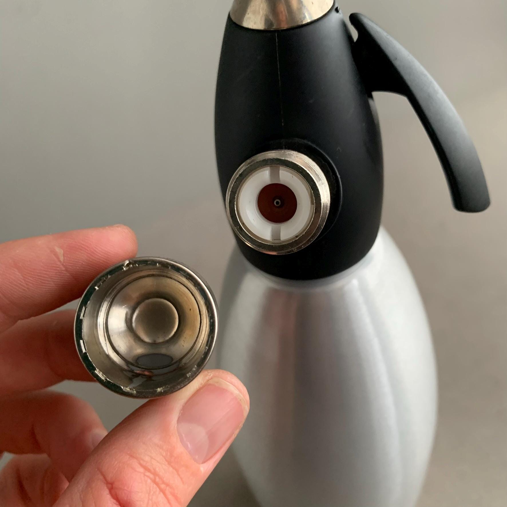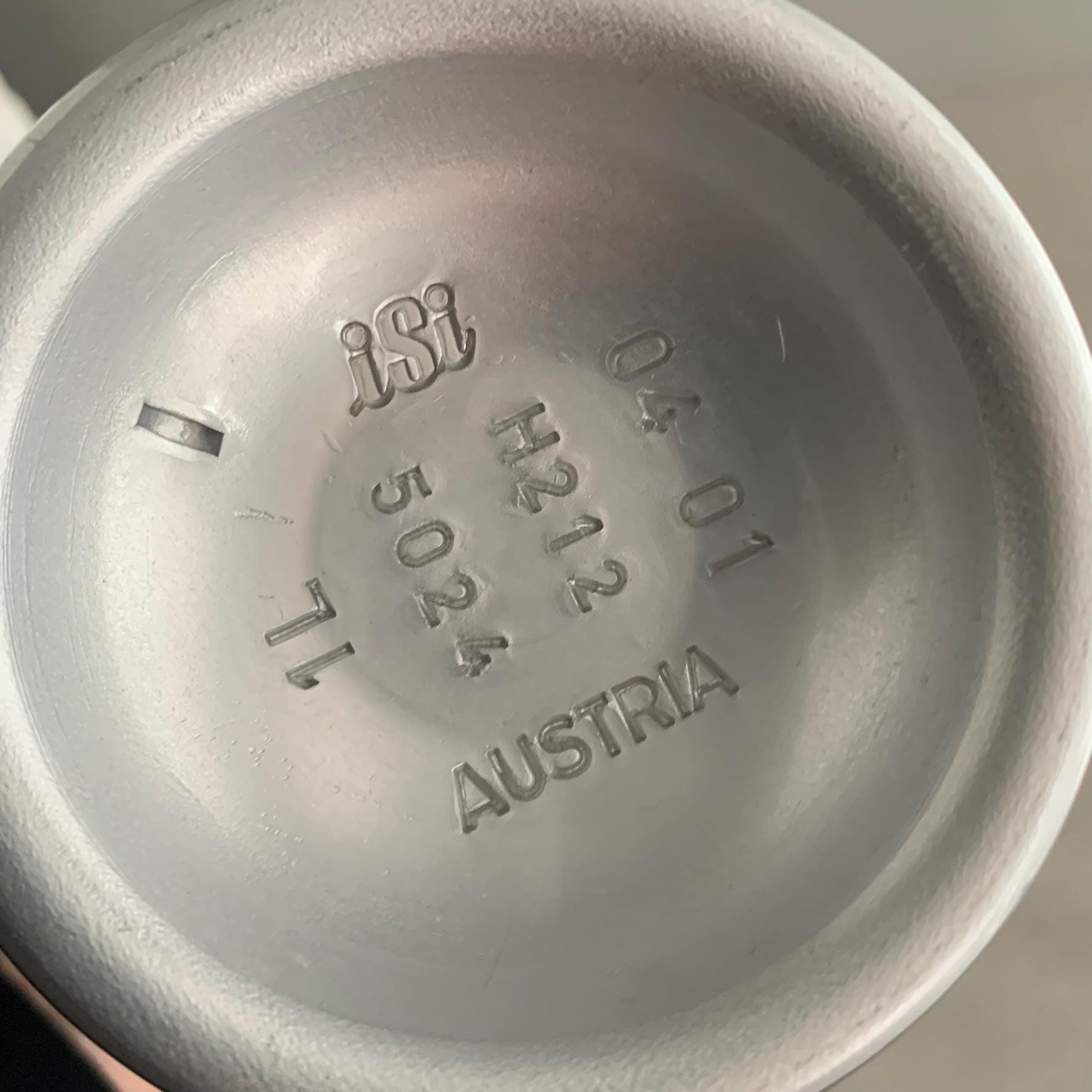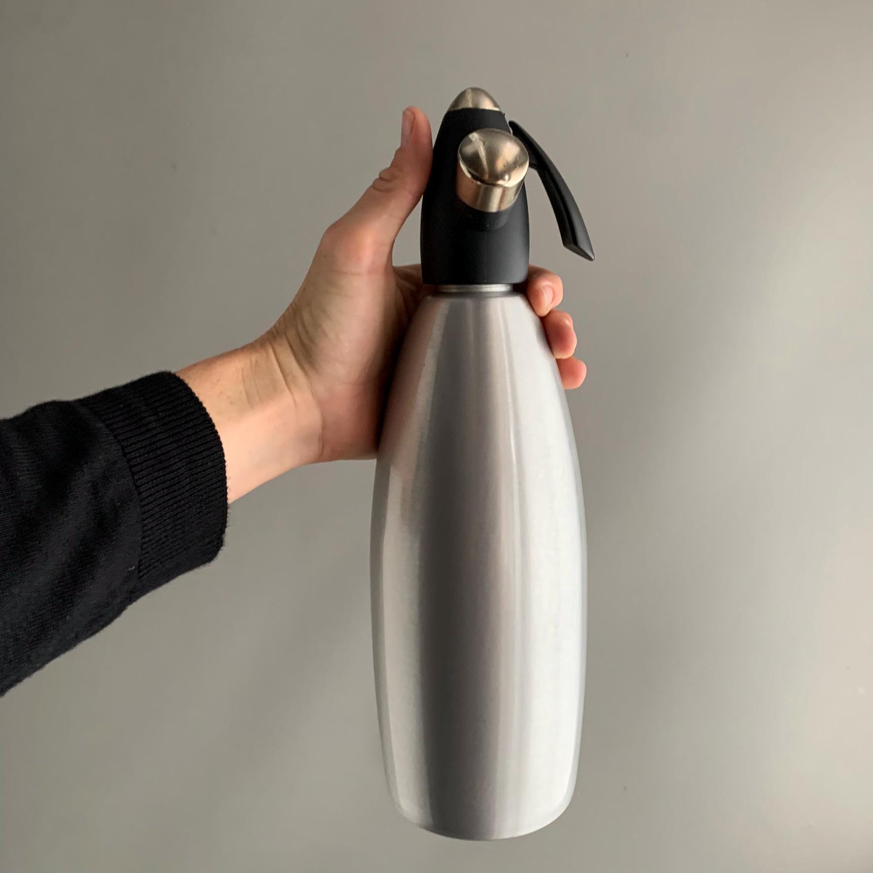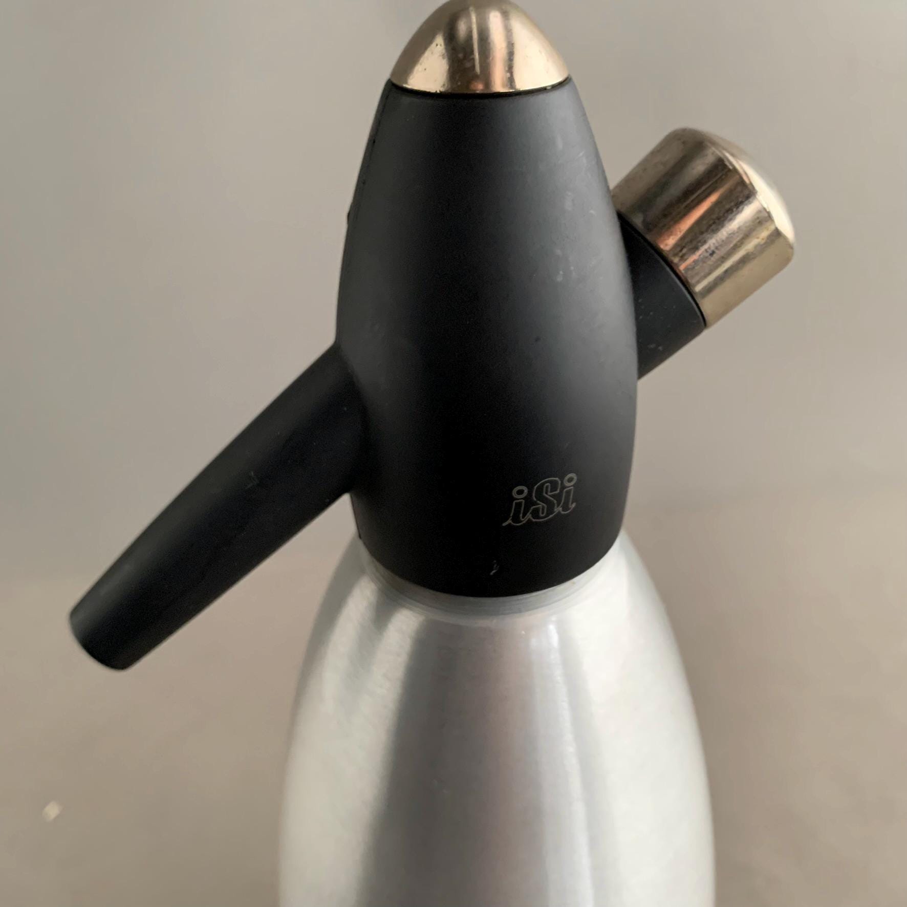 Stainless Steel Soda Siphon made by iSi . Creates fresh carbonated water for sparkling drinks and cocktails.