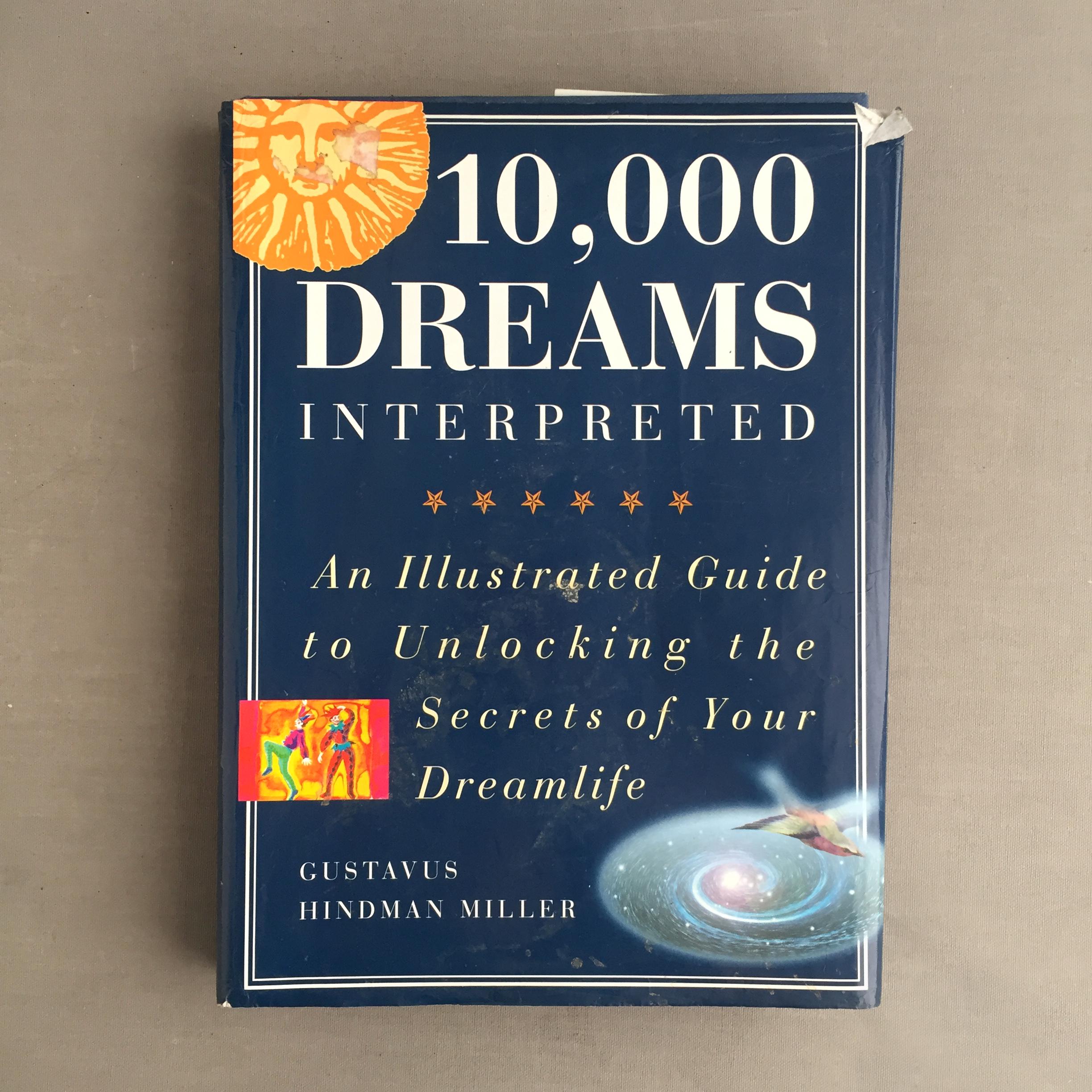 A hardcover copy of the non-fiction book 10,000 Dreams Interpreted by Gustavus Hindman Miller. An exceptional handbook that provides an extensive compendium of dream symbols and their meanings.