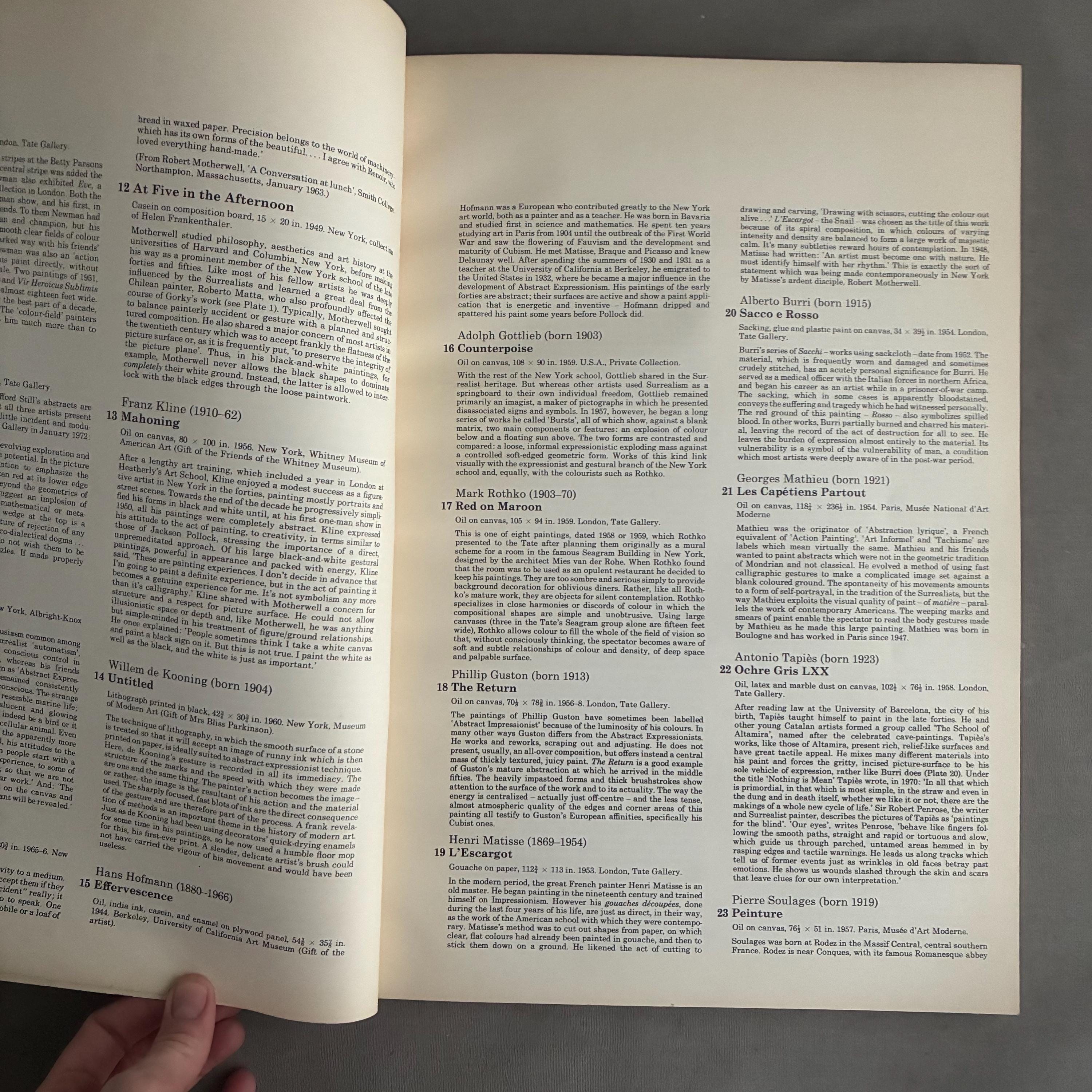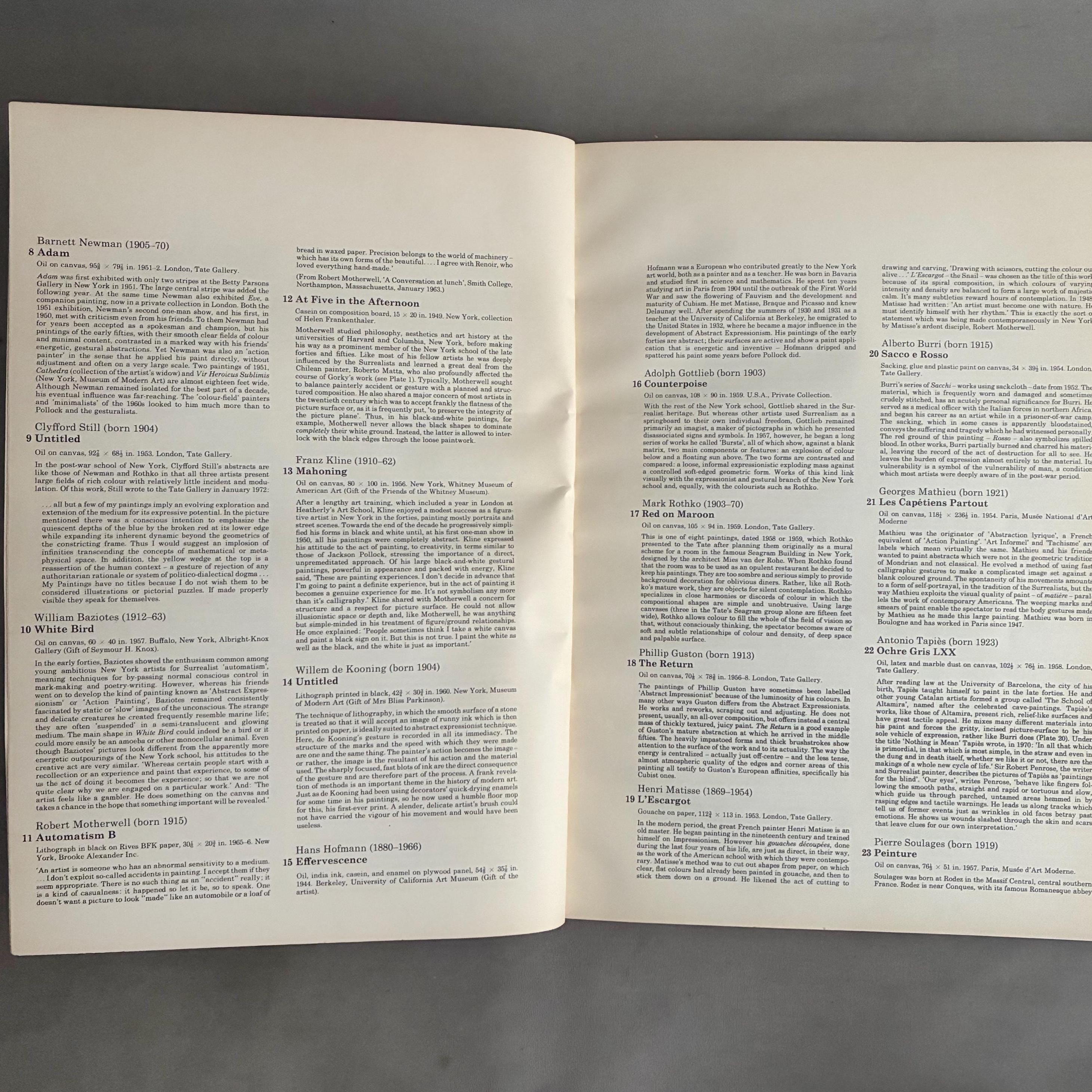 It includes works by artists such as Bacon, Newman, Hamilton, Matisse, Rothko, Kline, Pollock, Sutherland, de Stael, Riley, and Warhol.
