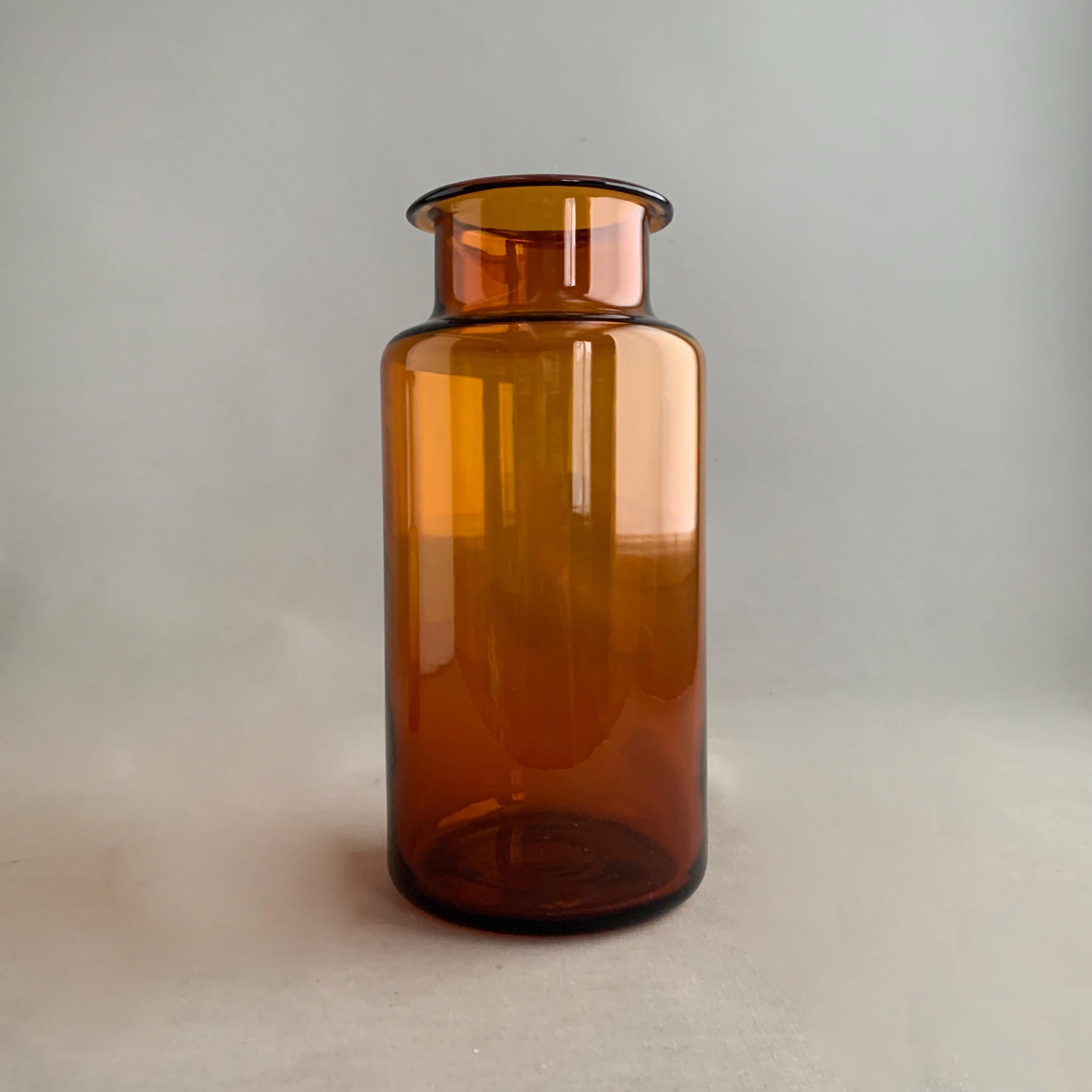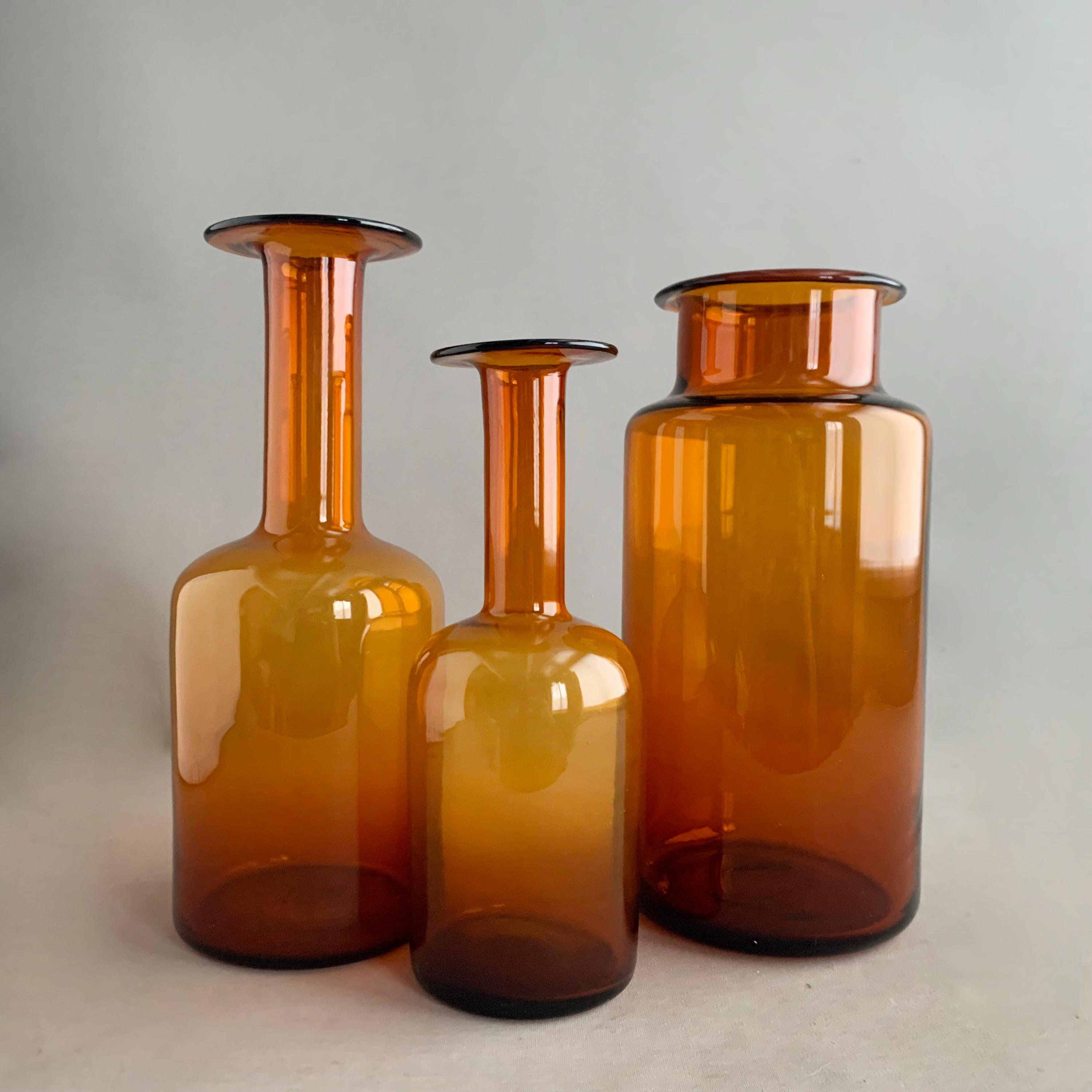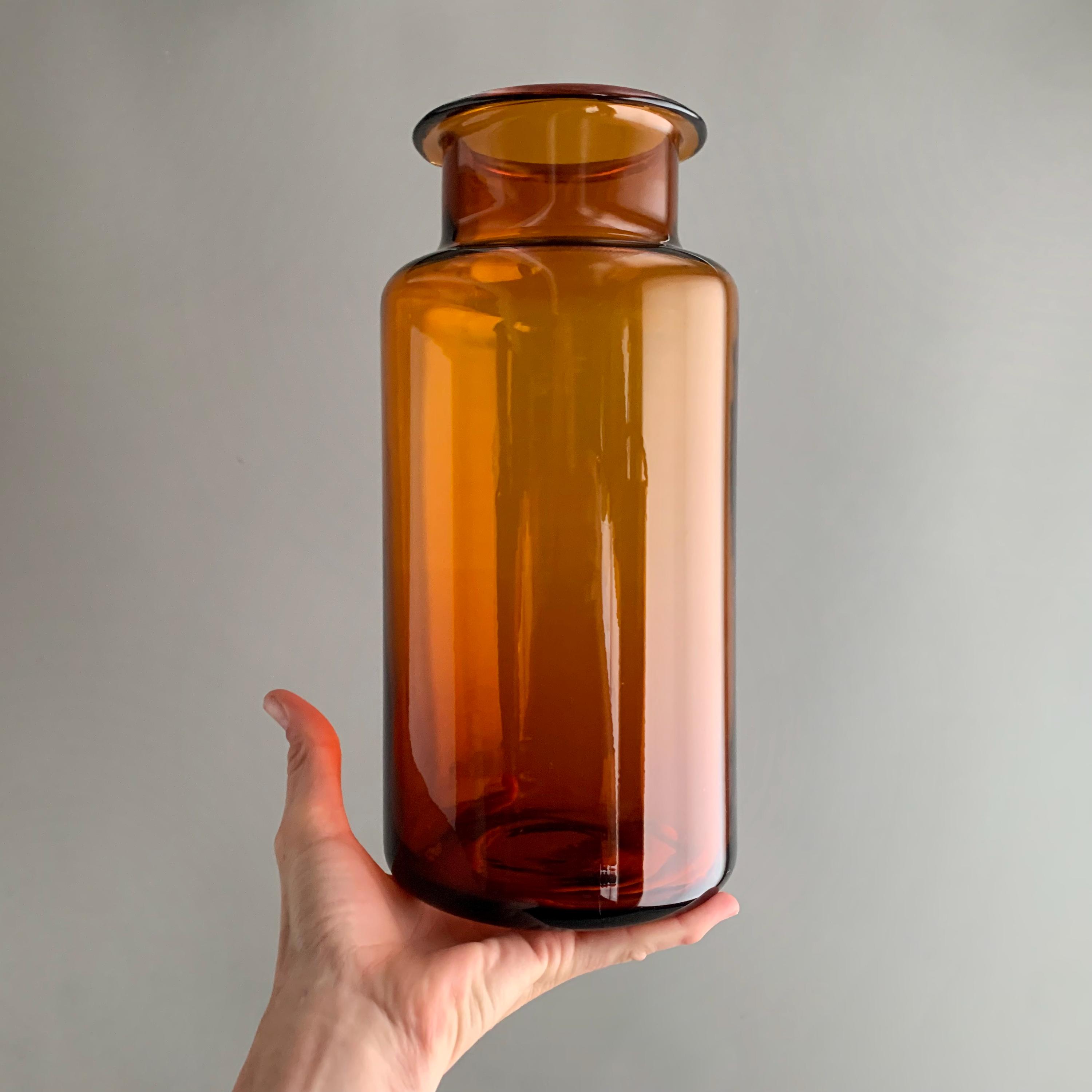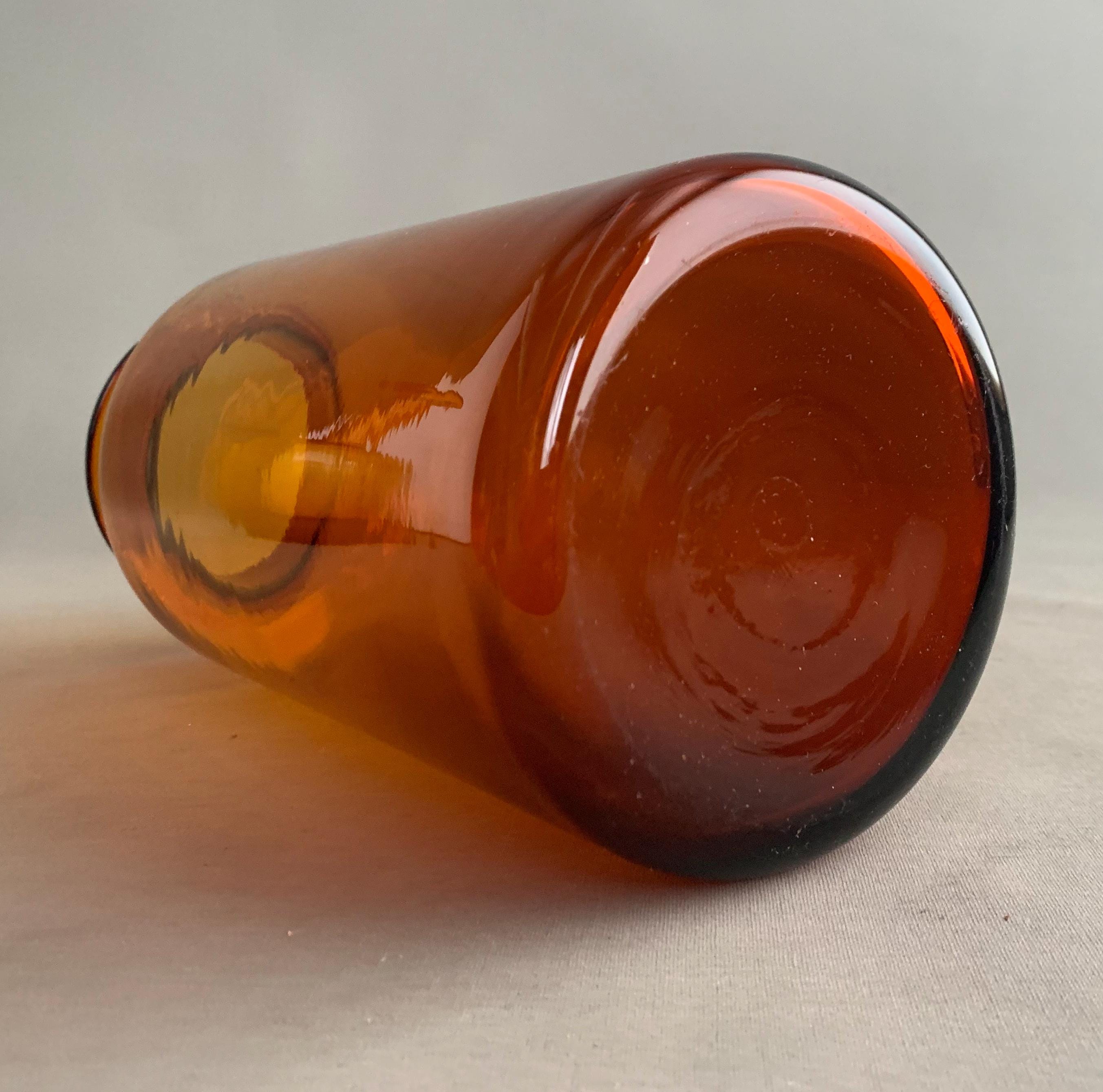 This is a vary unsual find, it looks very much like a Holmegaard Amber vase - it is the same colour , thickness and quality glass as Holmegaard Amber Gul vase by Otto Bauer but i cant seem to find any others like it. Even the base ( underneath has the same look and finish) This is a great shape to add intrest to your Gul vase collection, it is also a perfect size and shape for flowers.