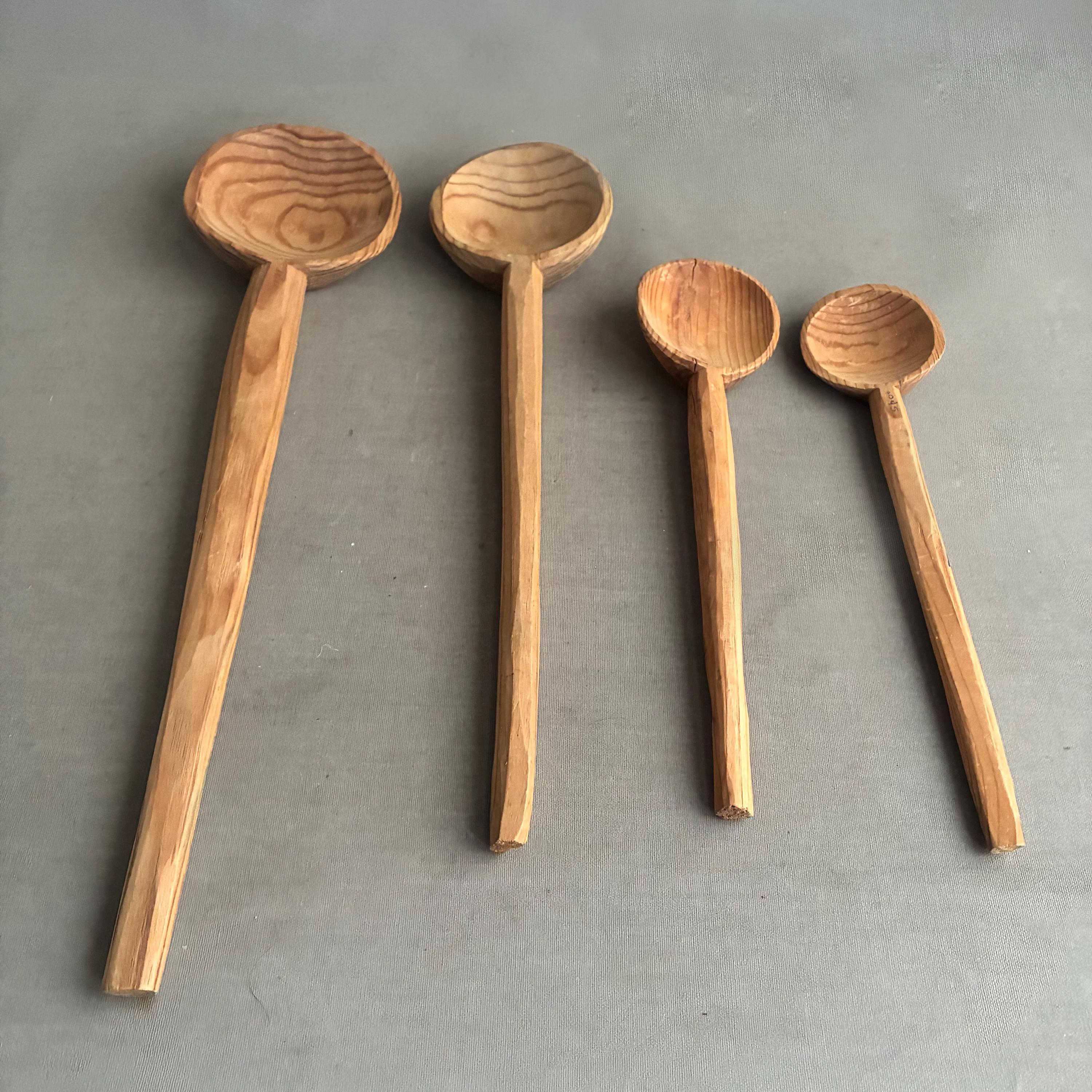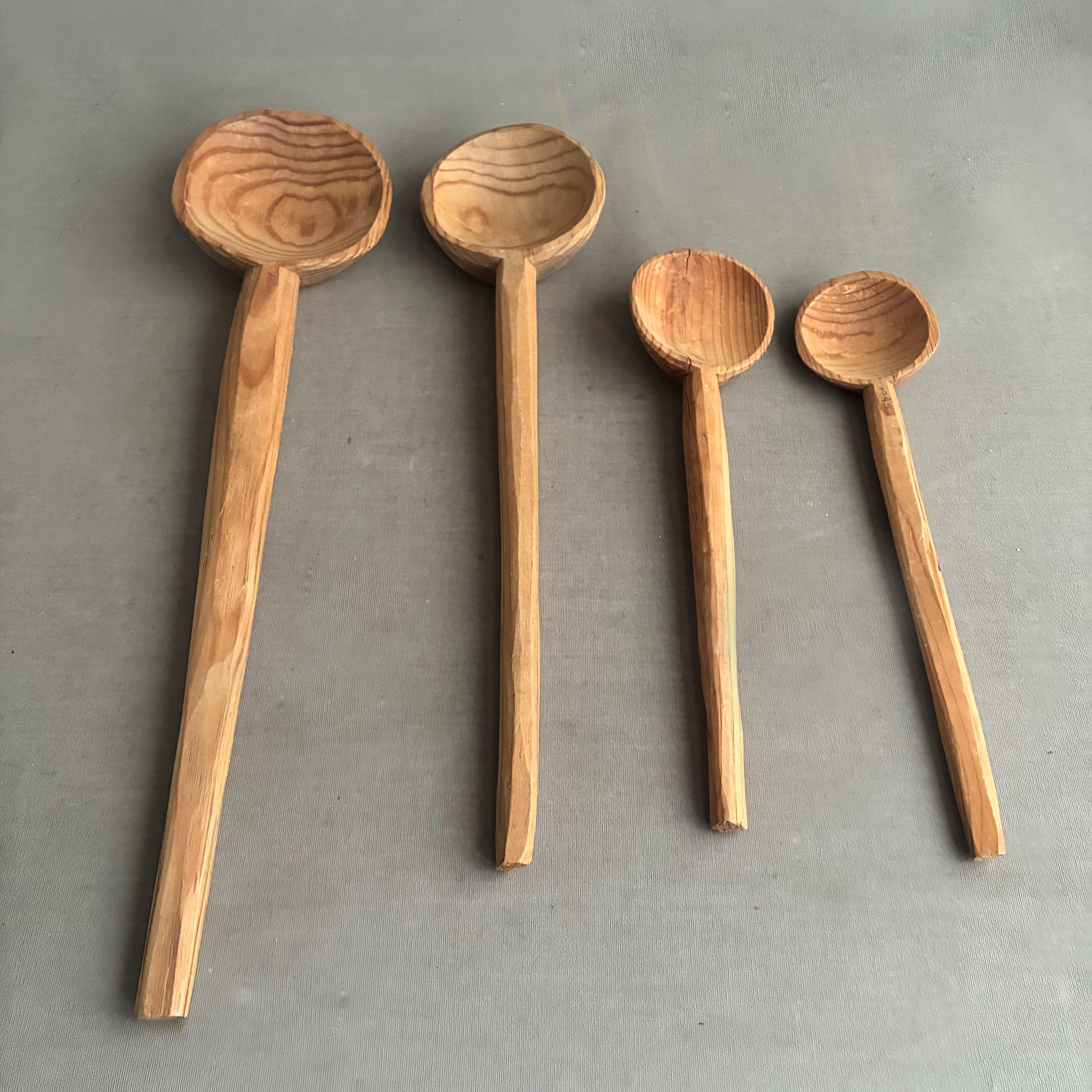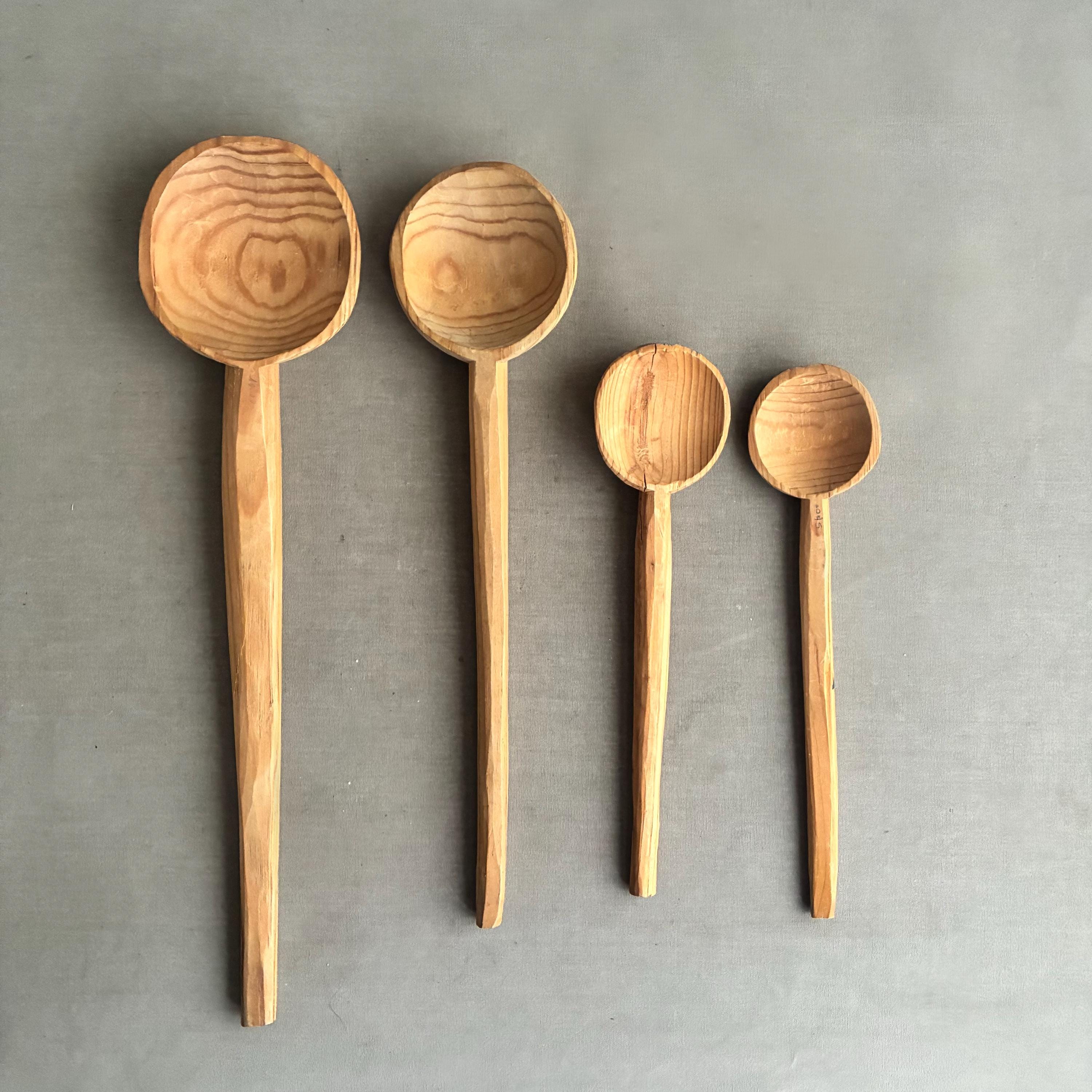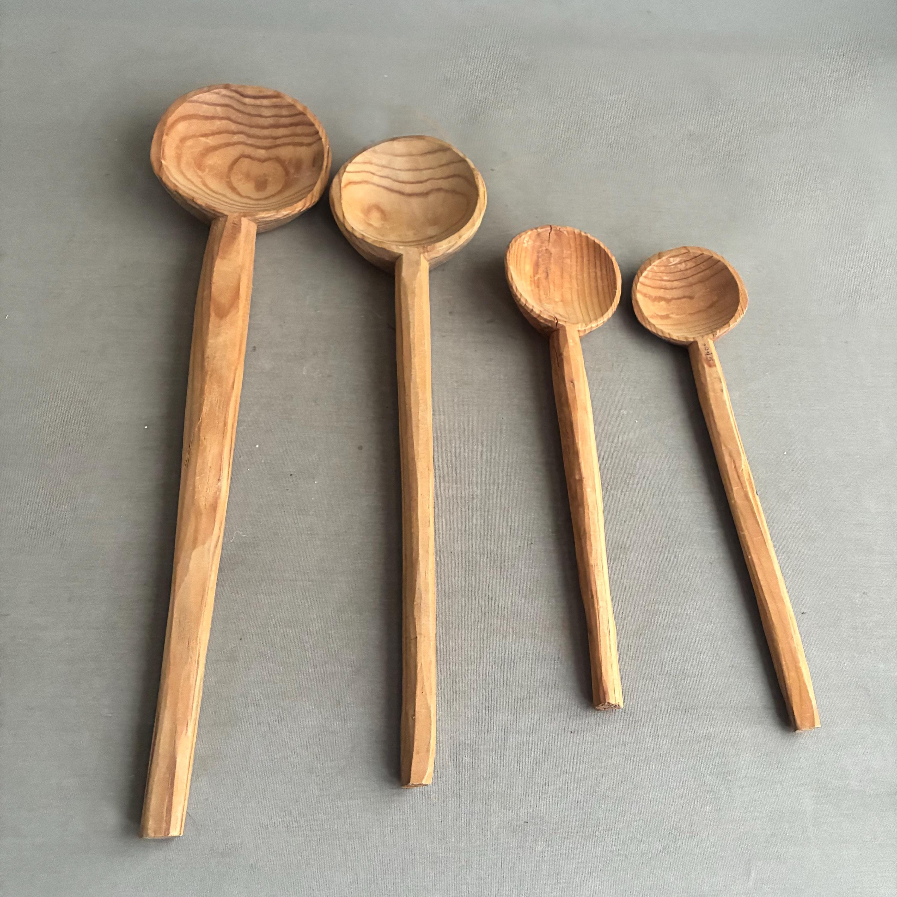 A lovely set of handcrafted wooden spoons , decorative kitchen utensils made from natural wood. sold as a set of 4