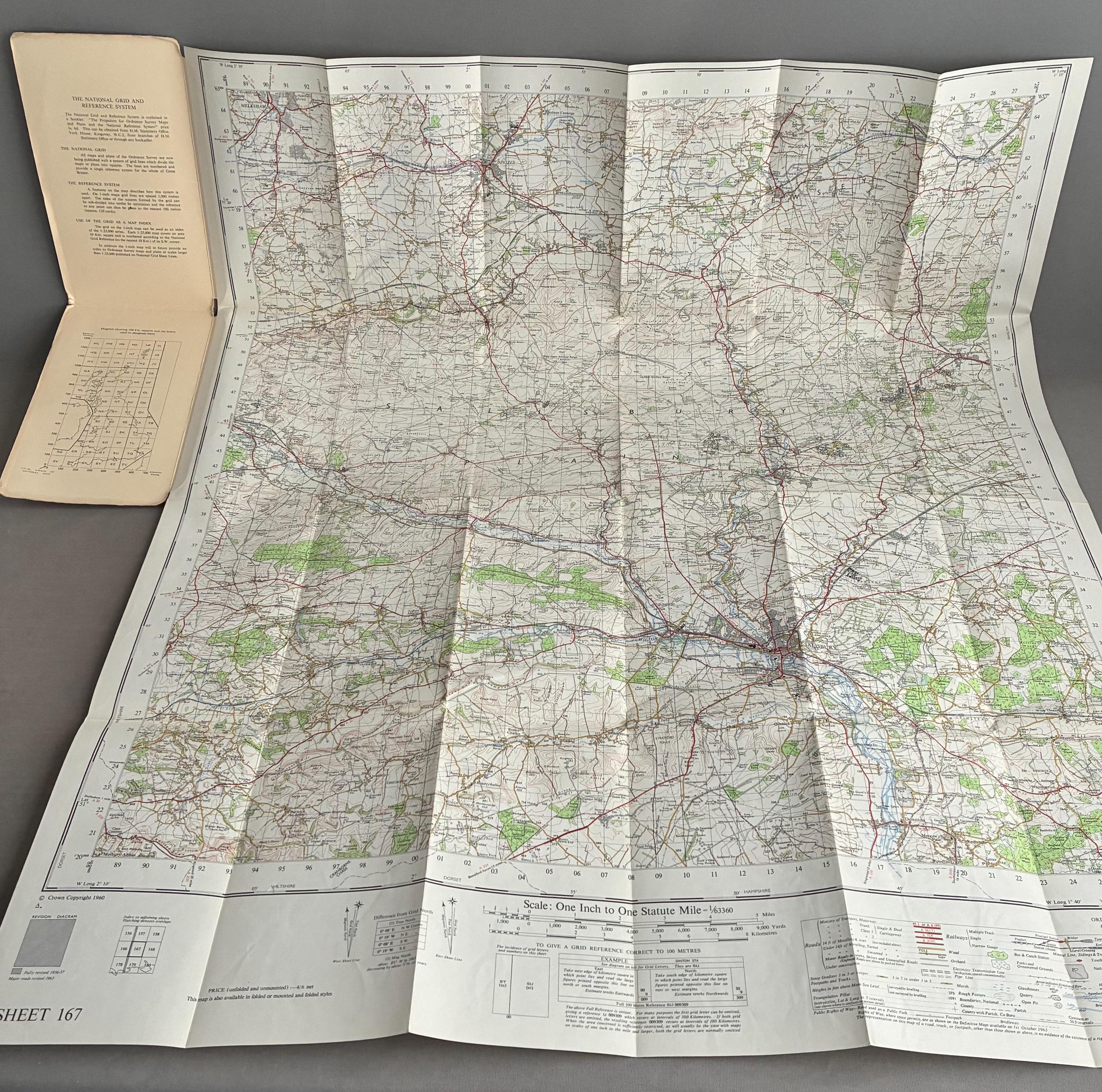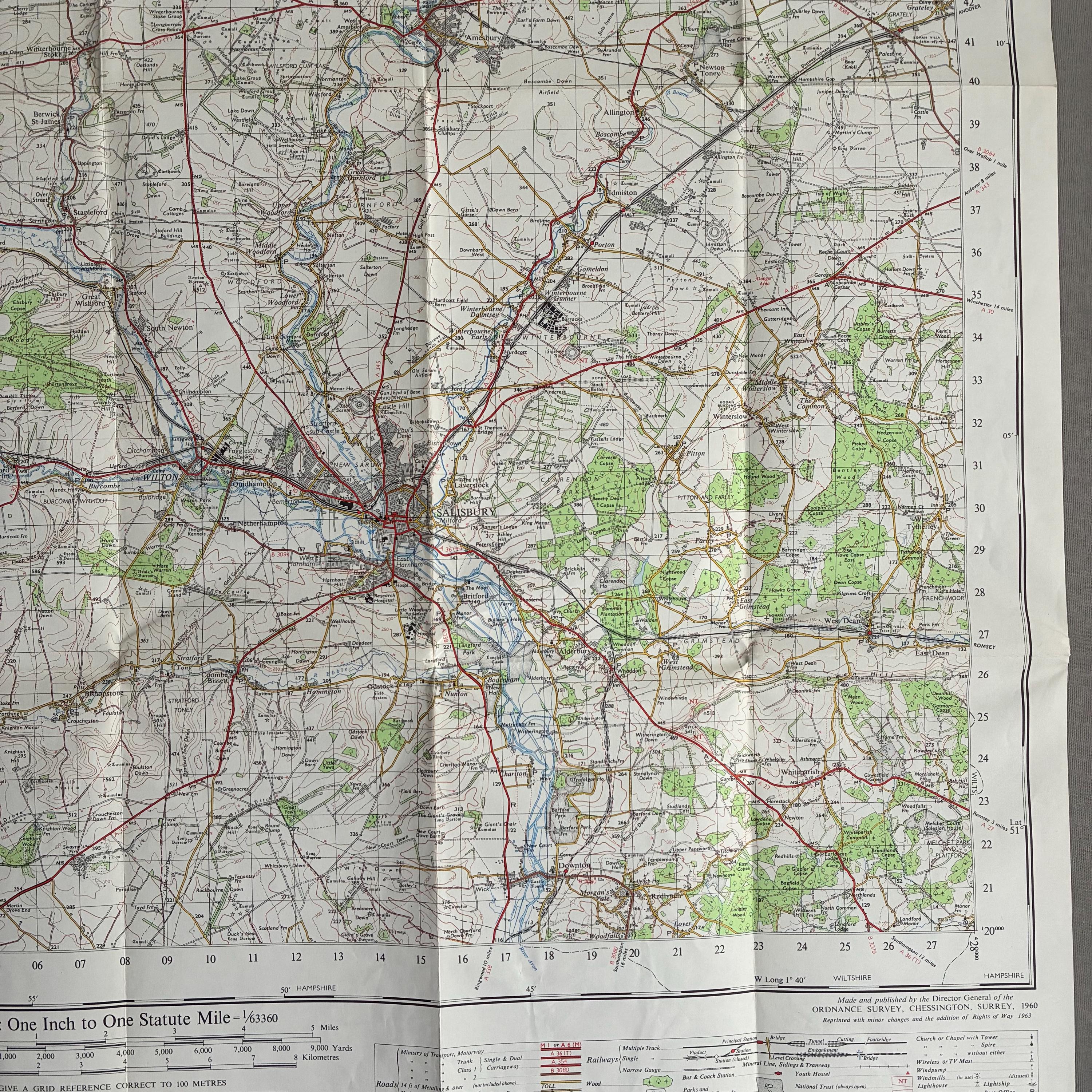 OS Ordnance Survey One Inch Paper Map, various parts of England circa 1960s . nice quality paper with detailed coloured print
