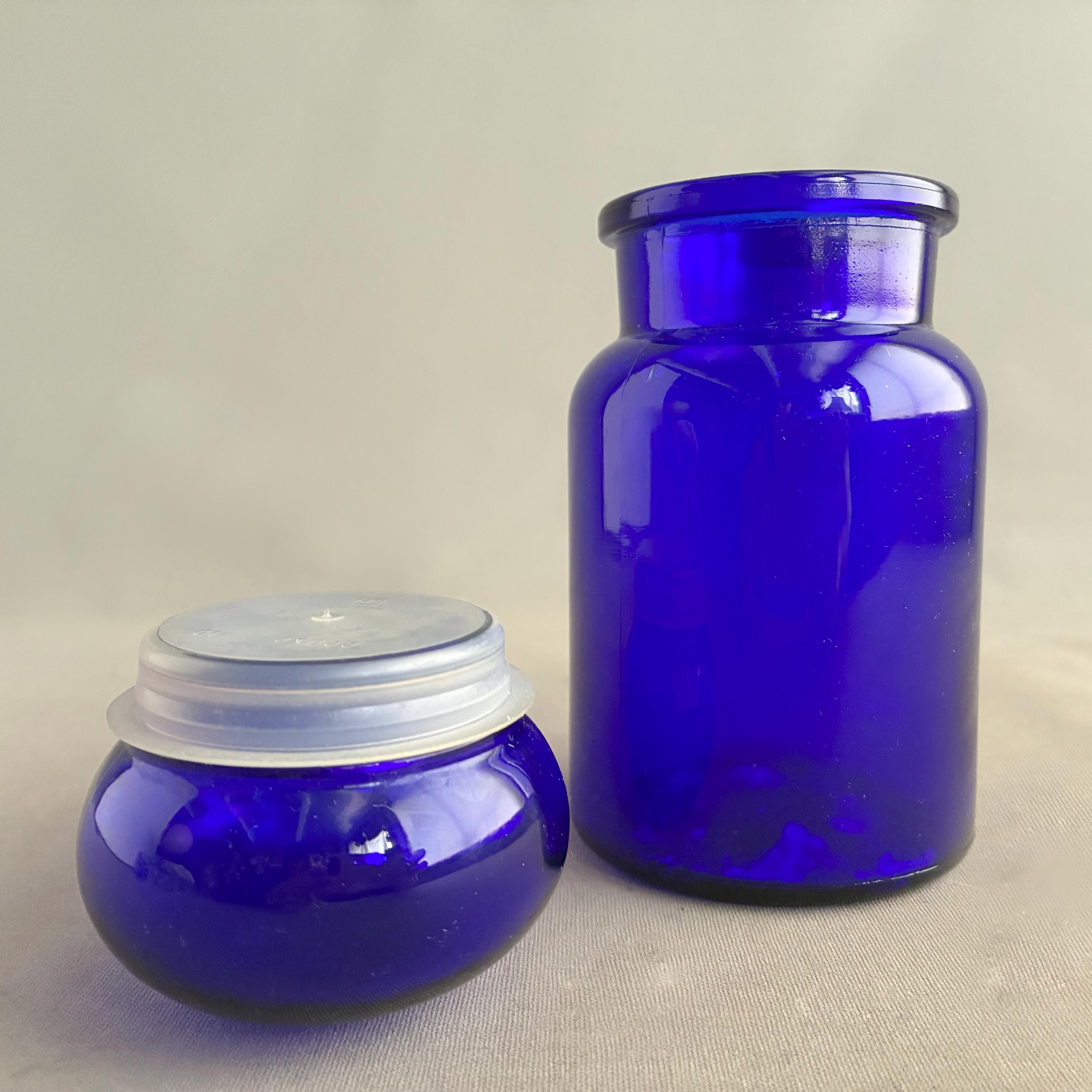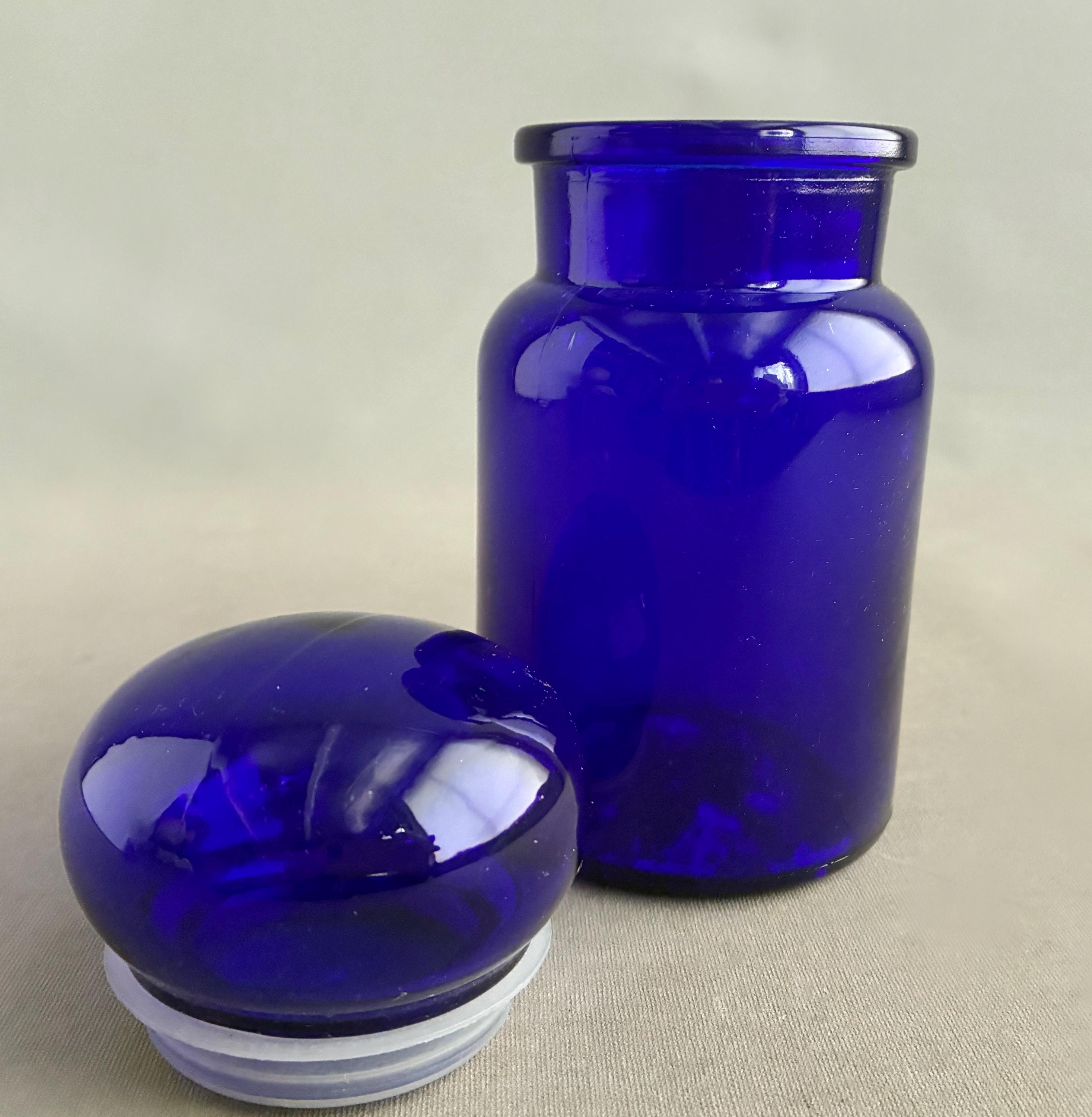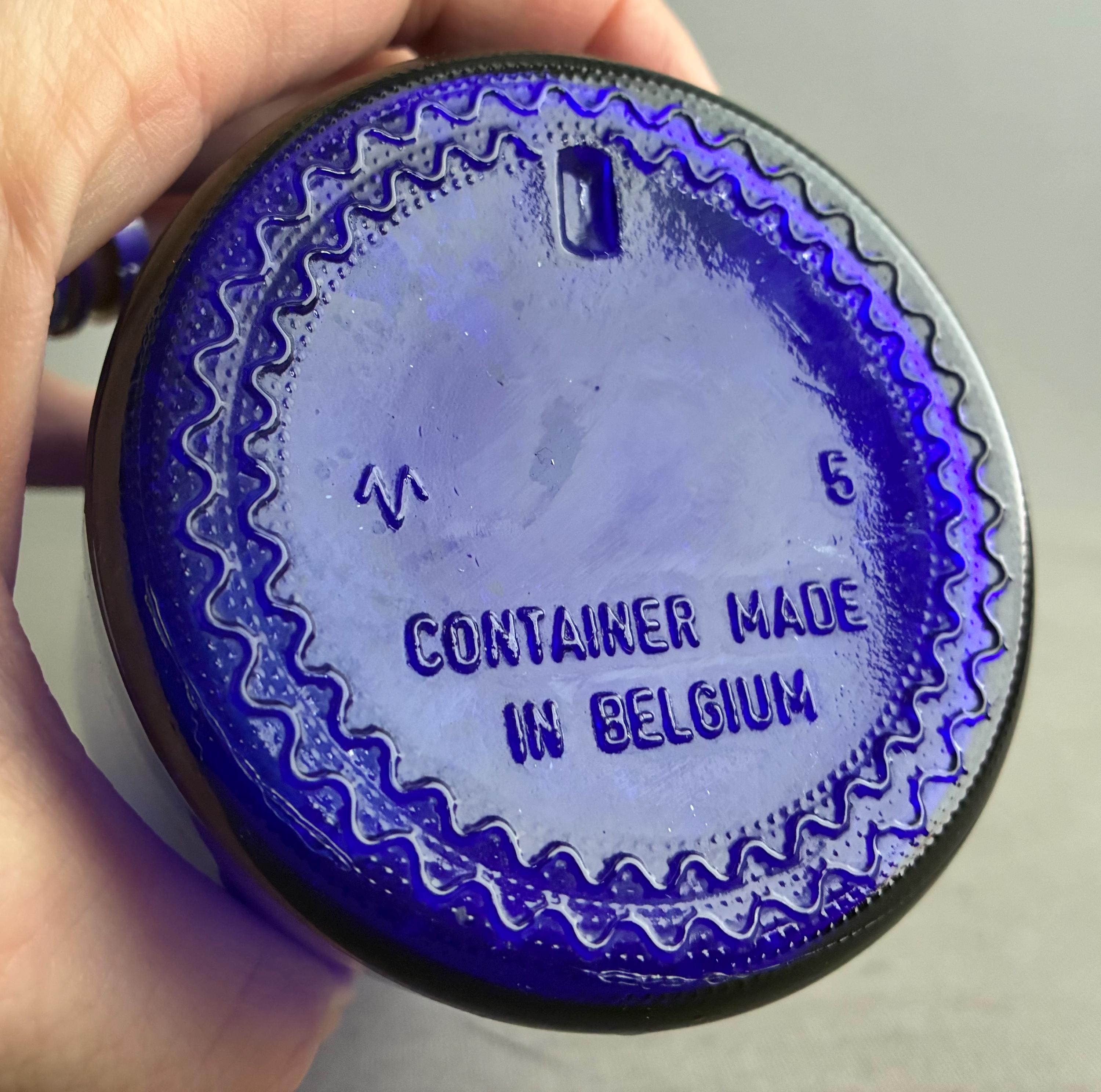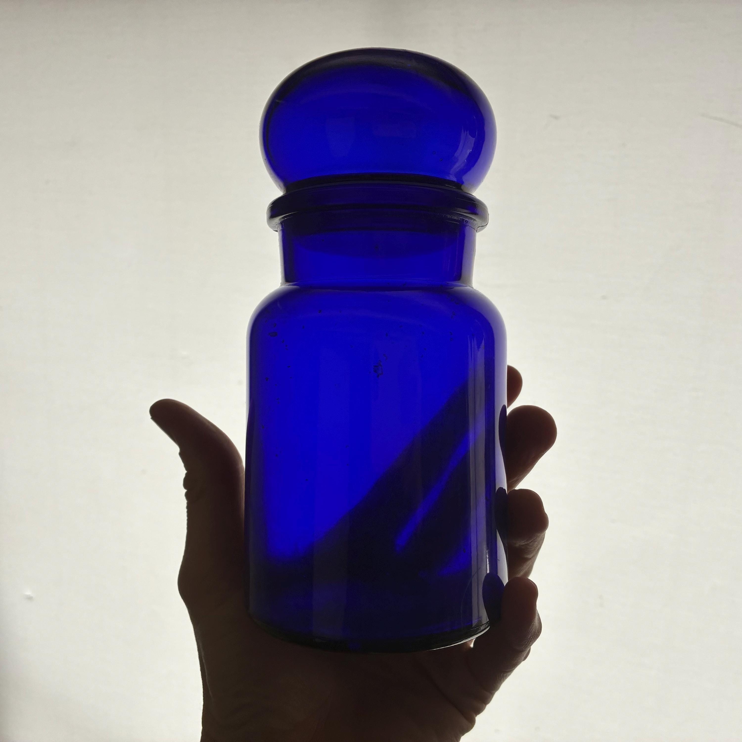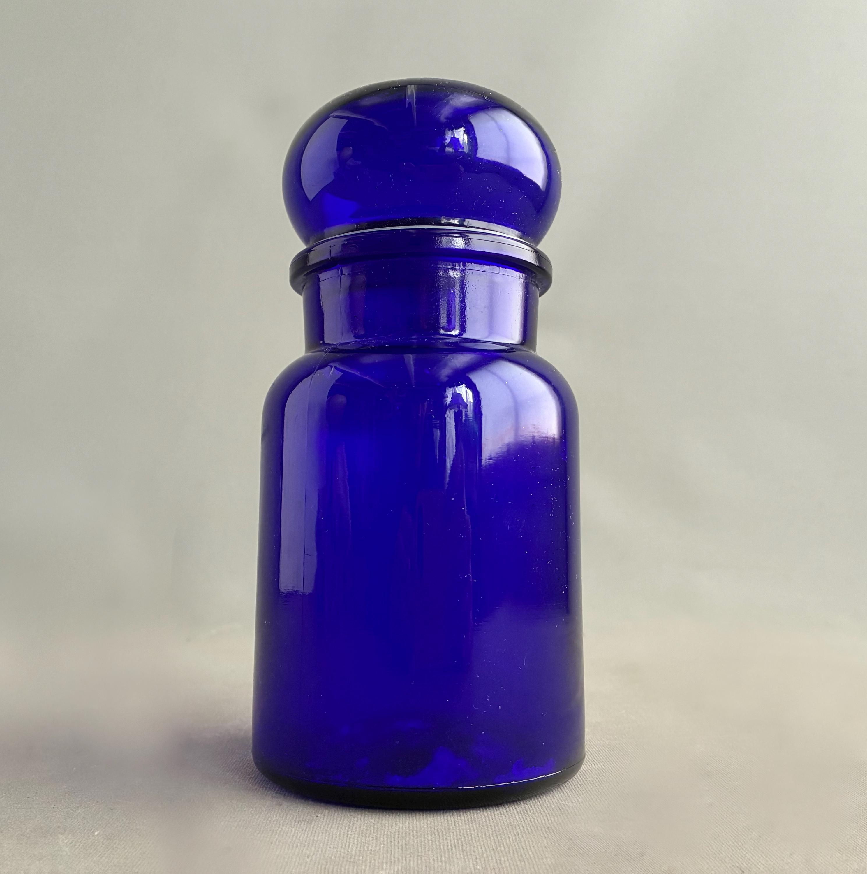 Deep cobalt blue glass, chosen historically for its ability to protect light-sensitive medicinal ingredients.