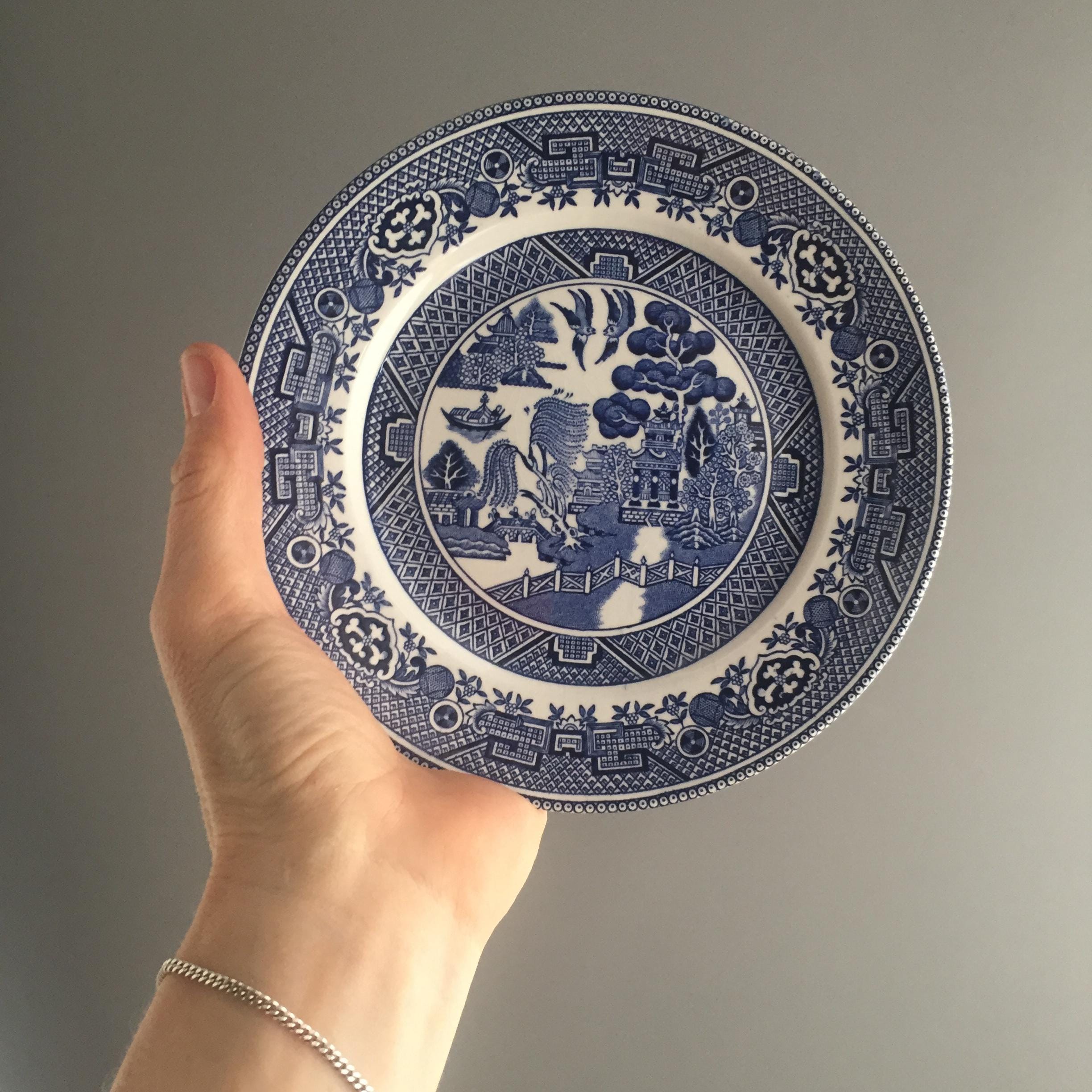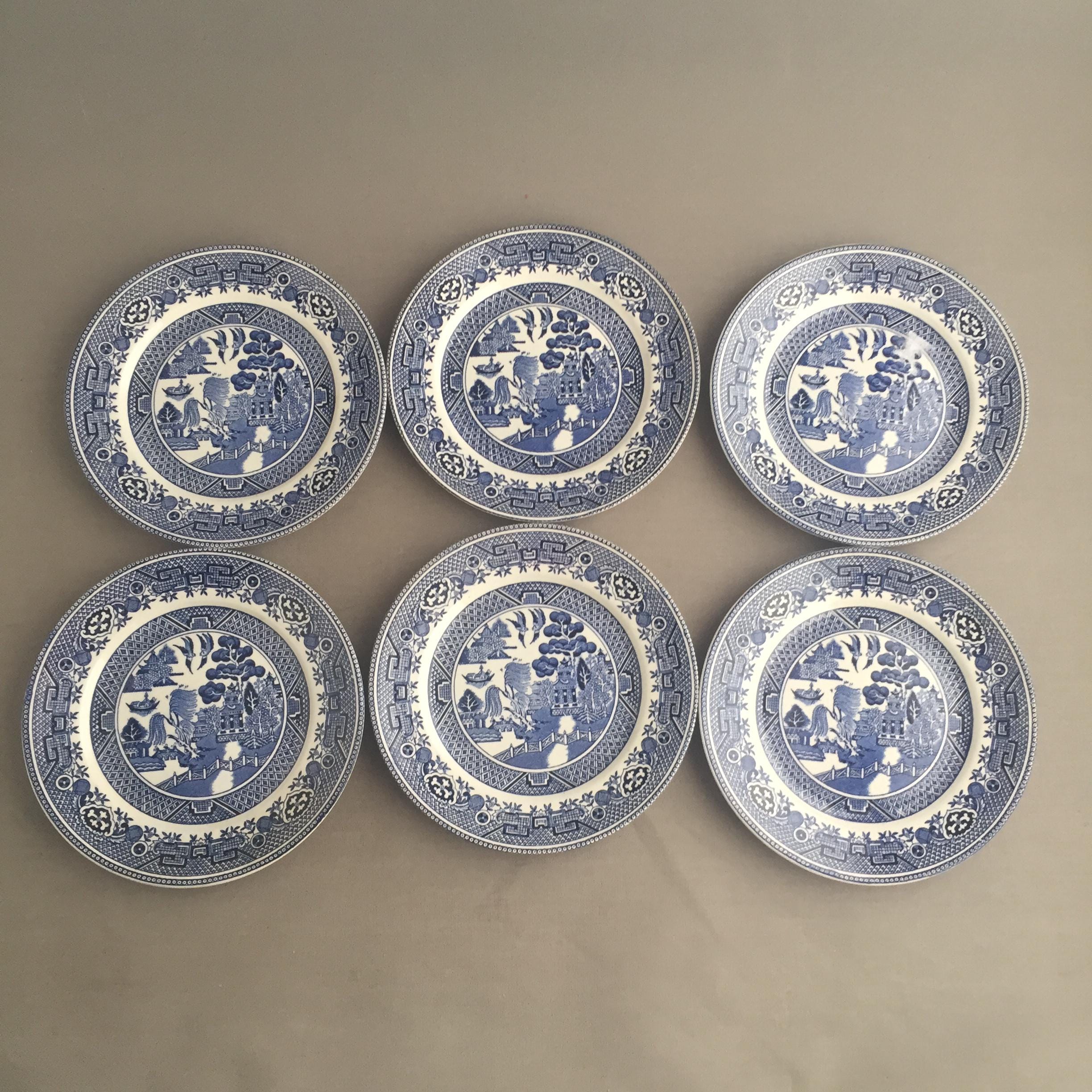 This is a set of 6 willow side plates . measure 17 .5 cm x 17 .5 cm x 1.2 cm high