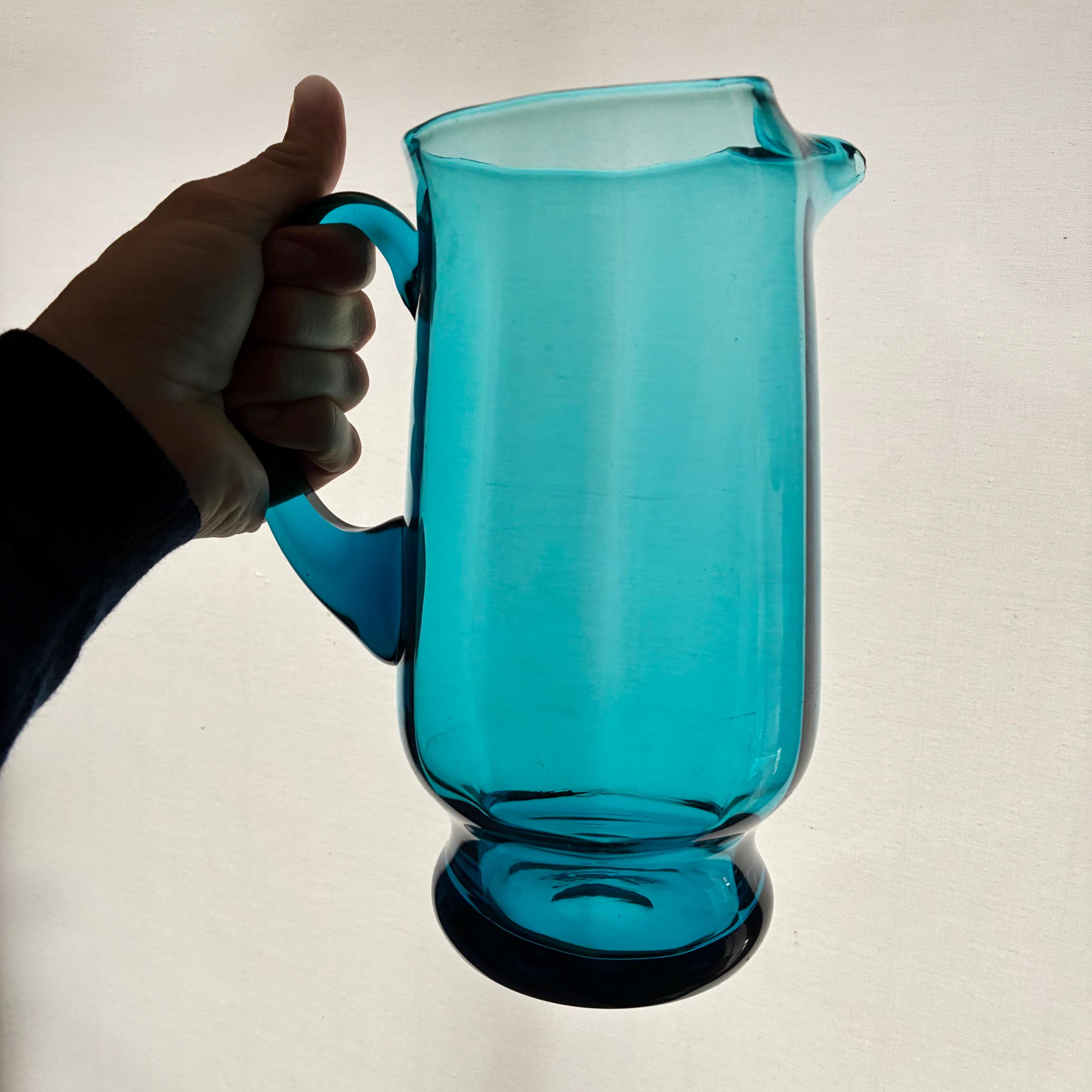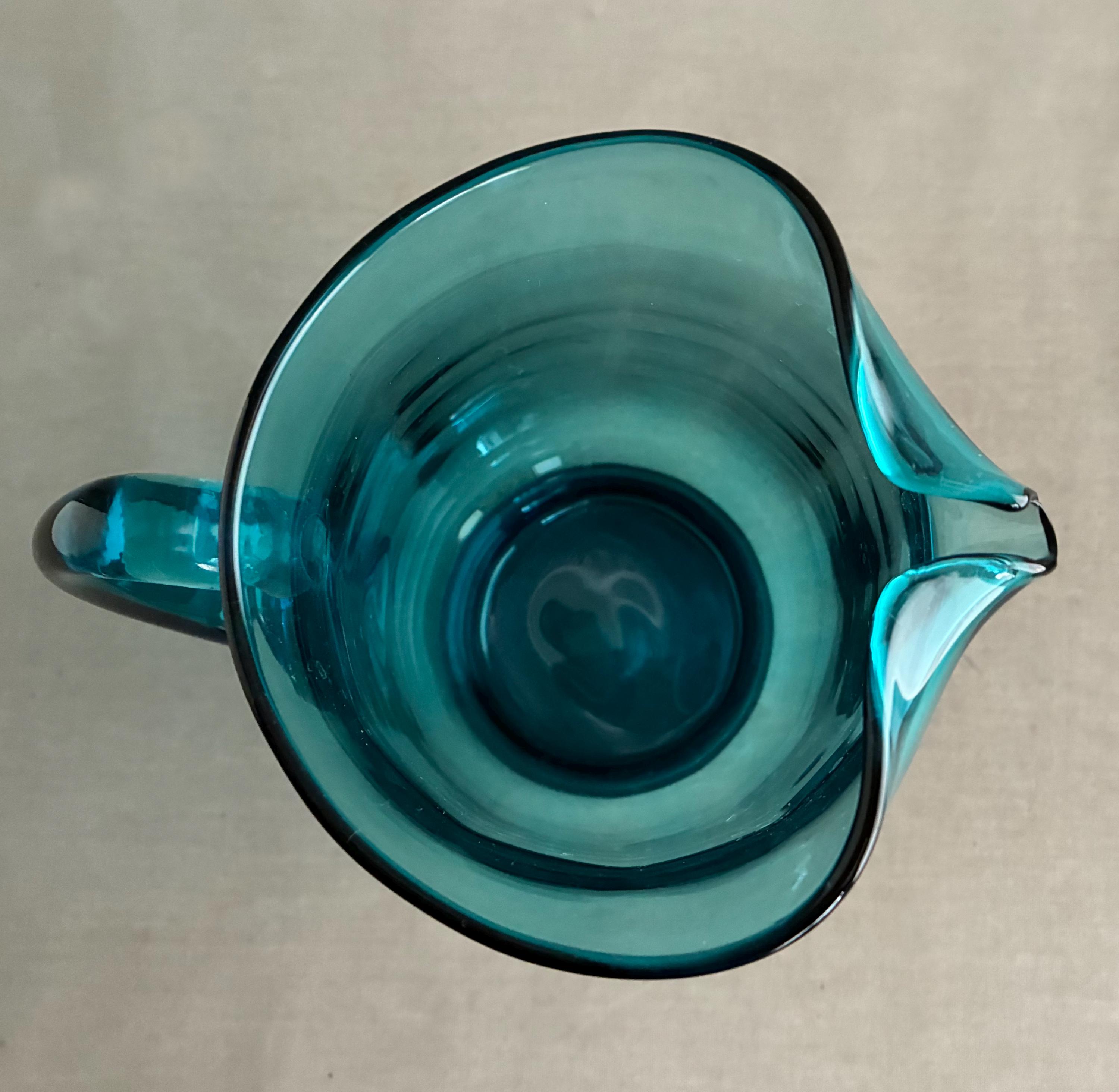 hand made 1960s studio glass jug- possibly murano ( judging by the base of the jug. Nice quality with good weight. A practical and beautiful piece of mid century glass