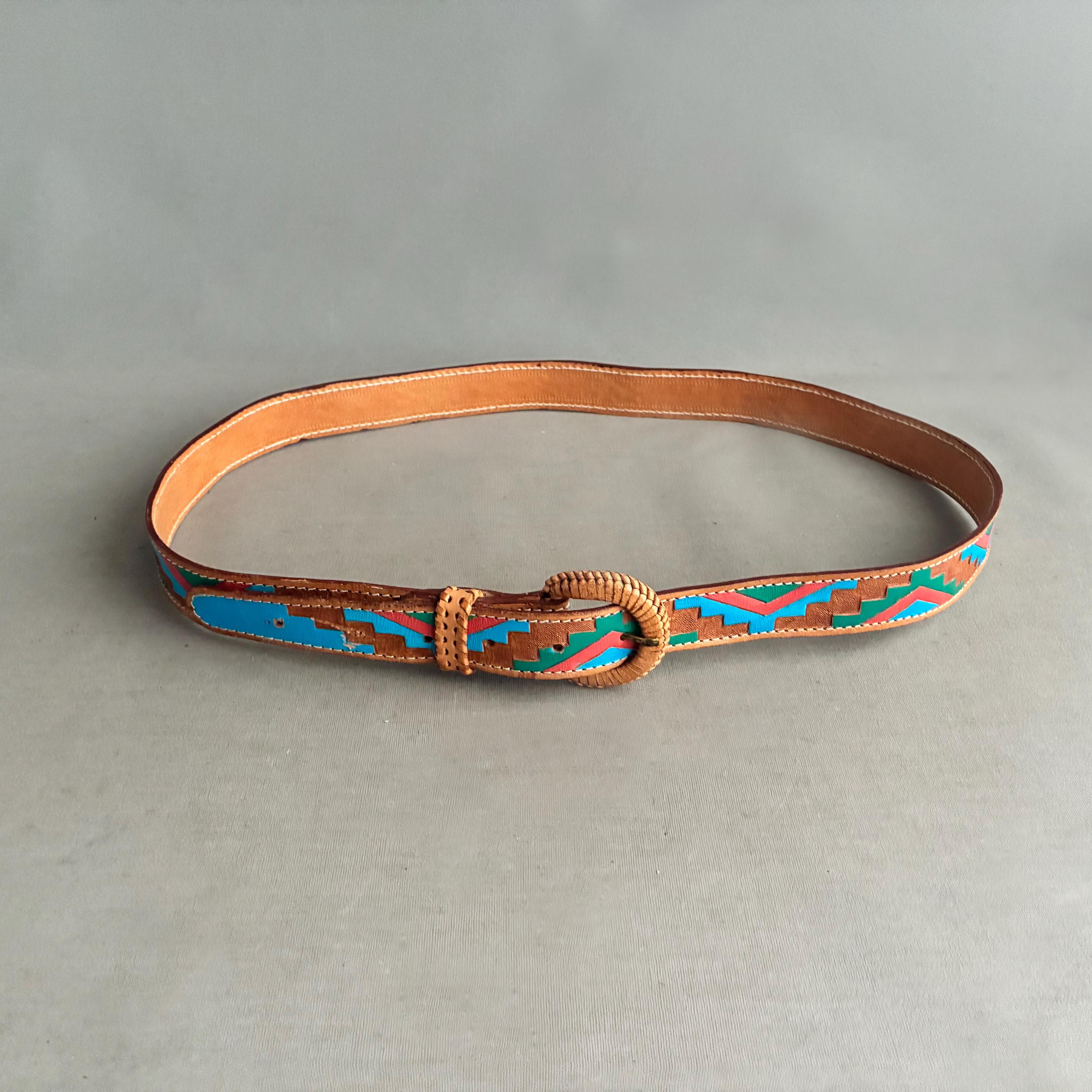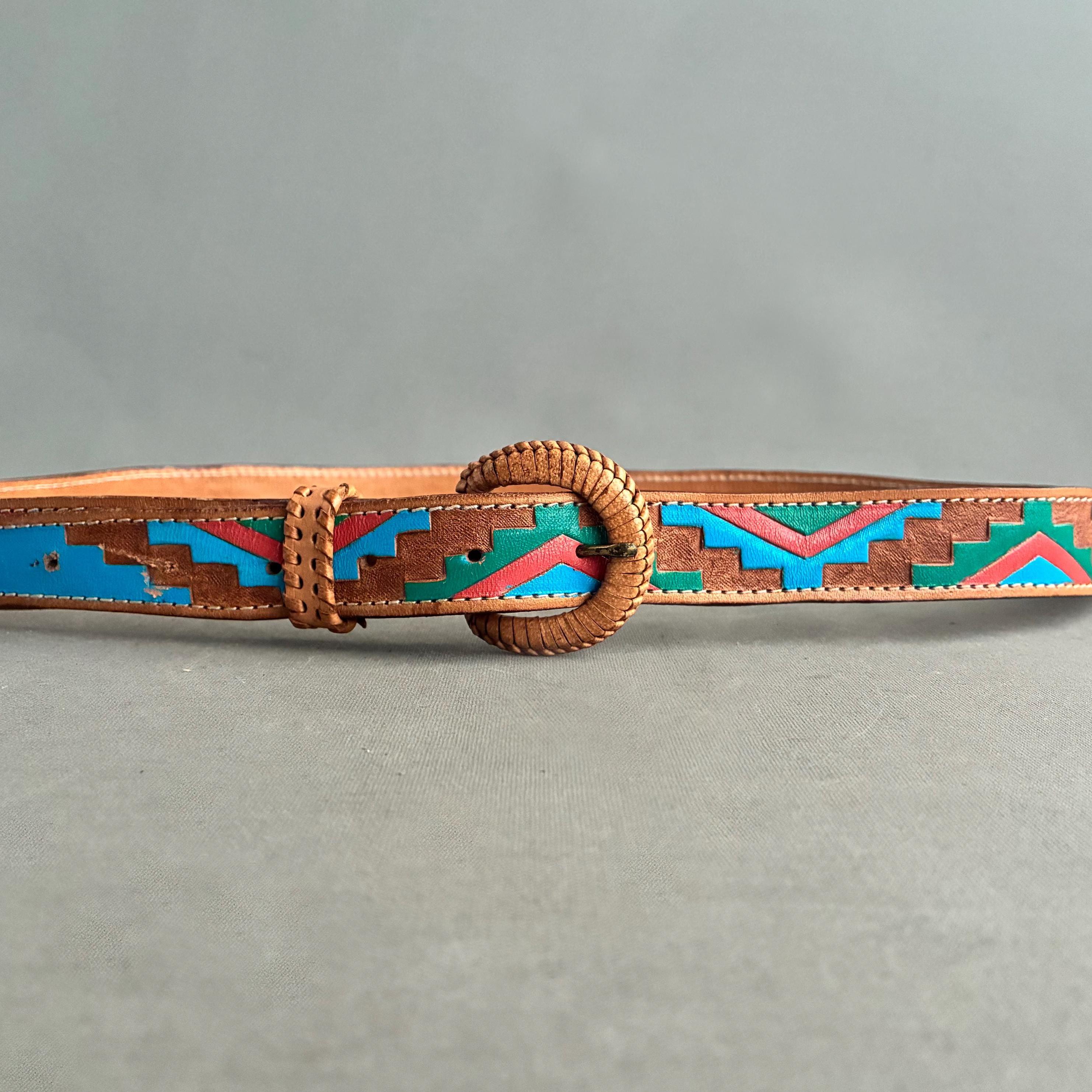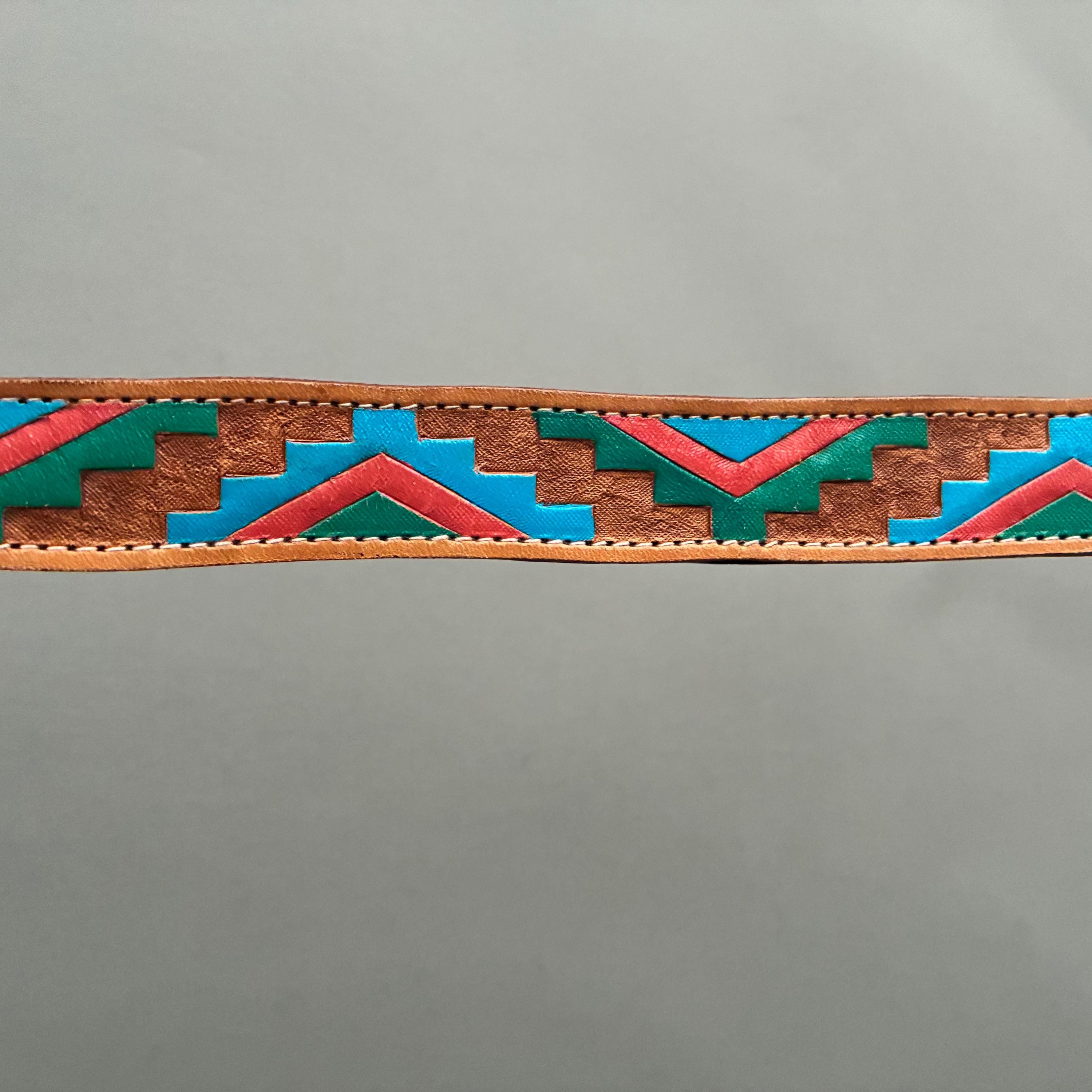 beautiful Tooled leather belt in a classic Southwestern style