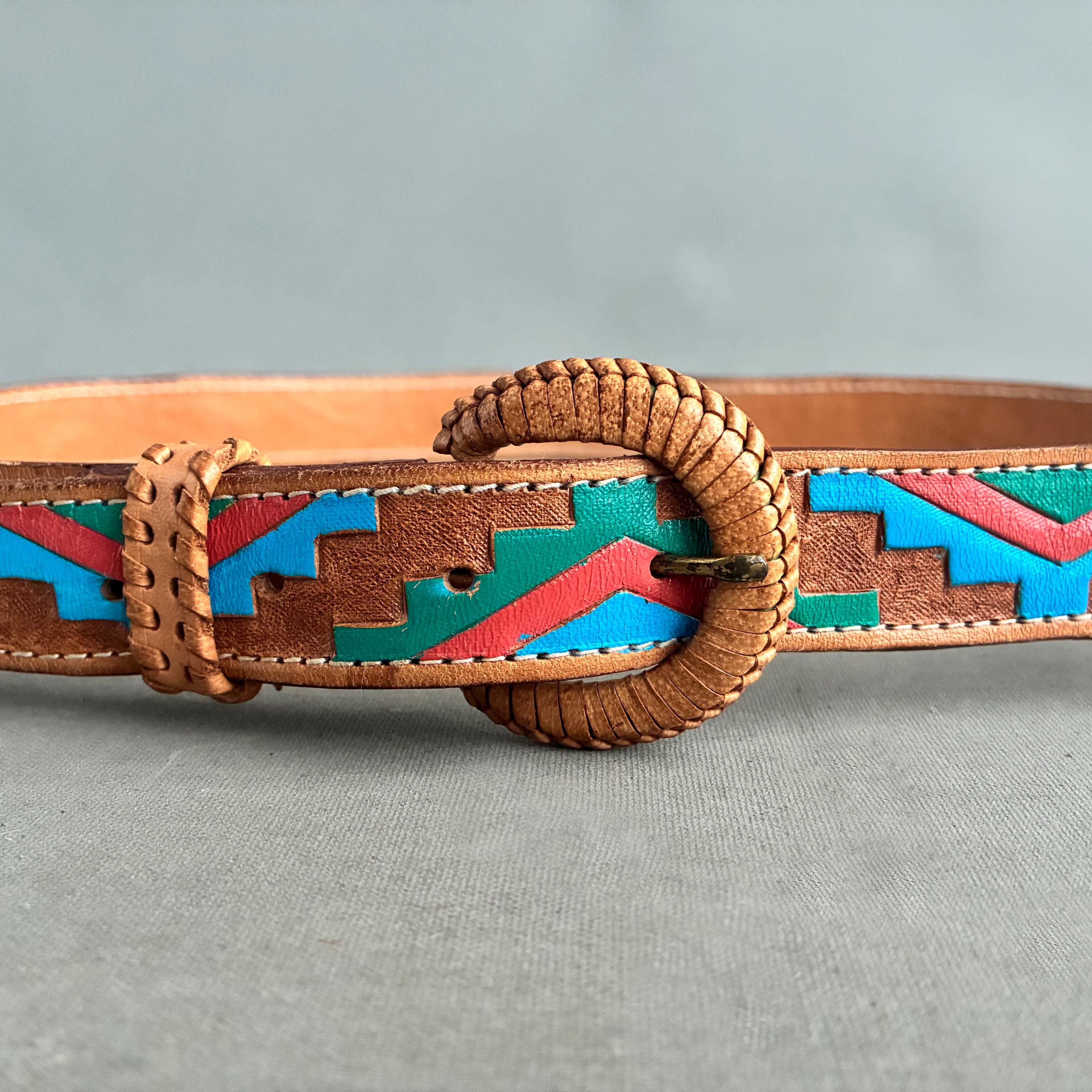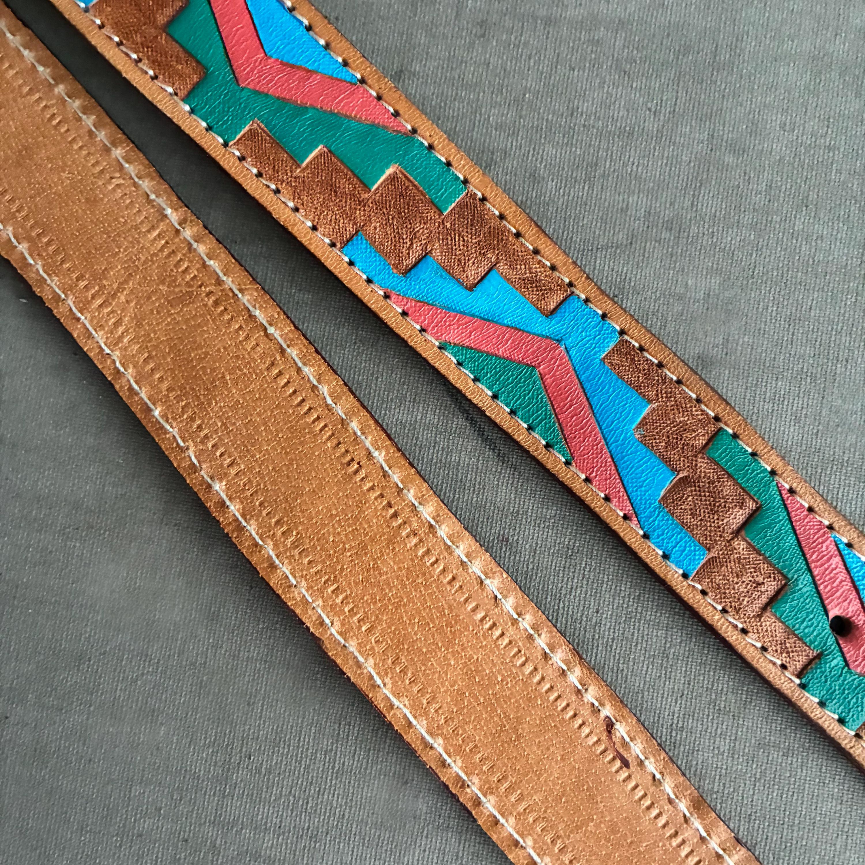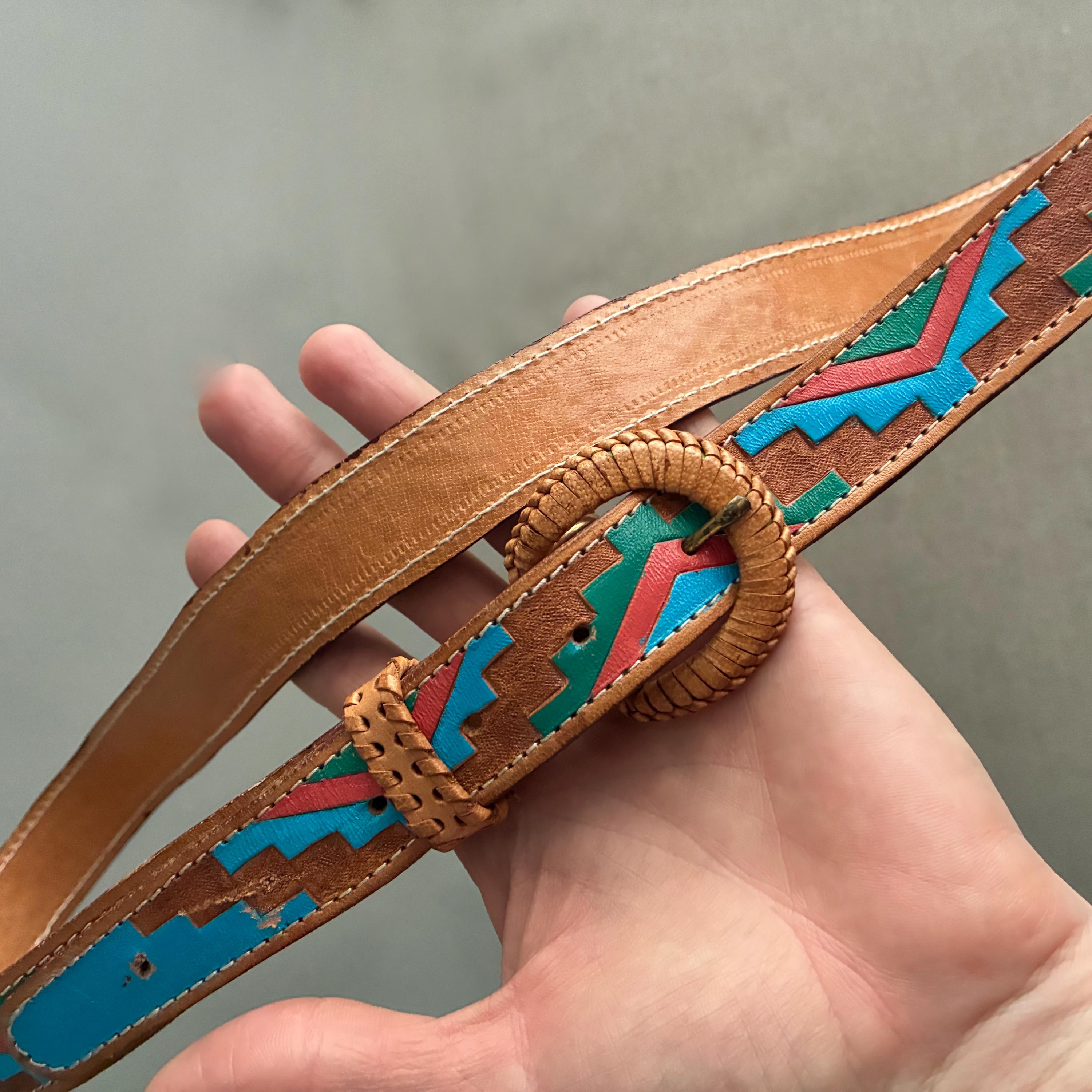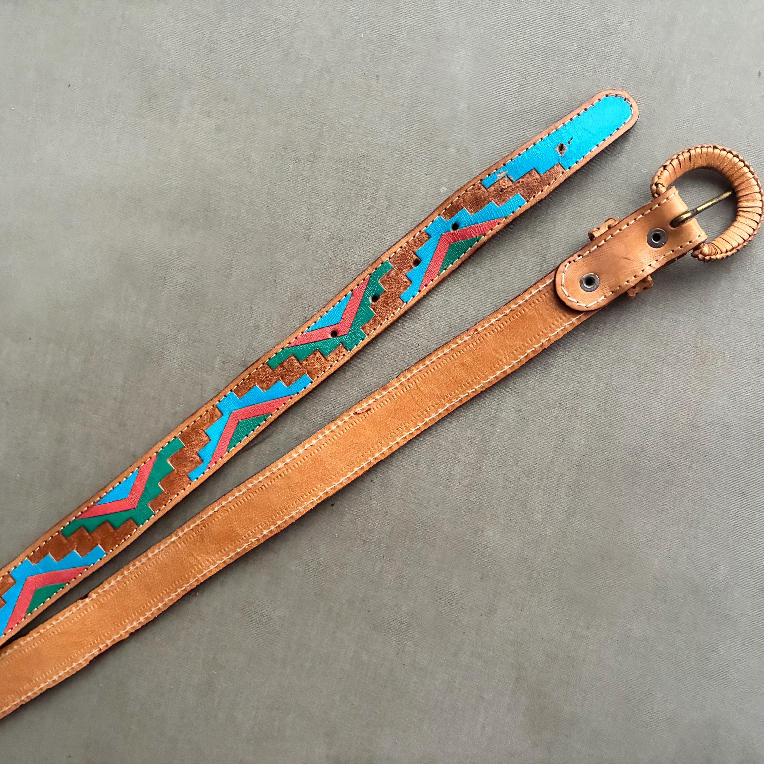 beautiful Tooled leather belt in a classic Southwestern style