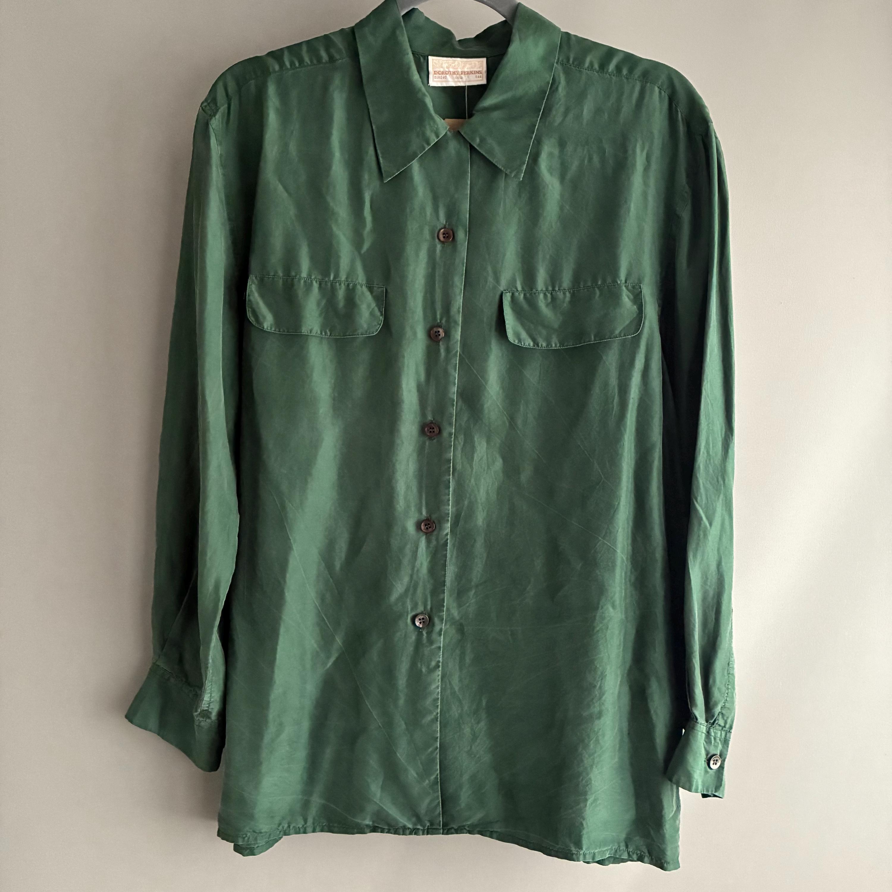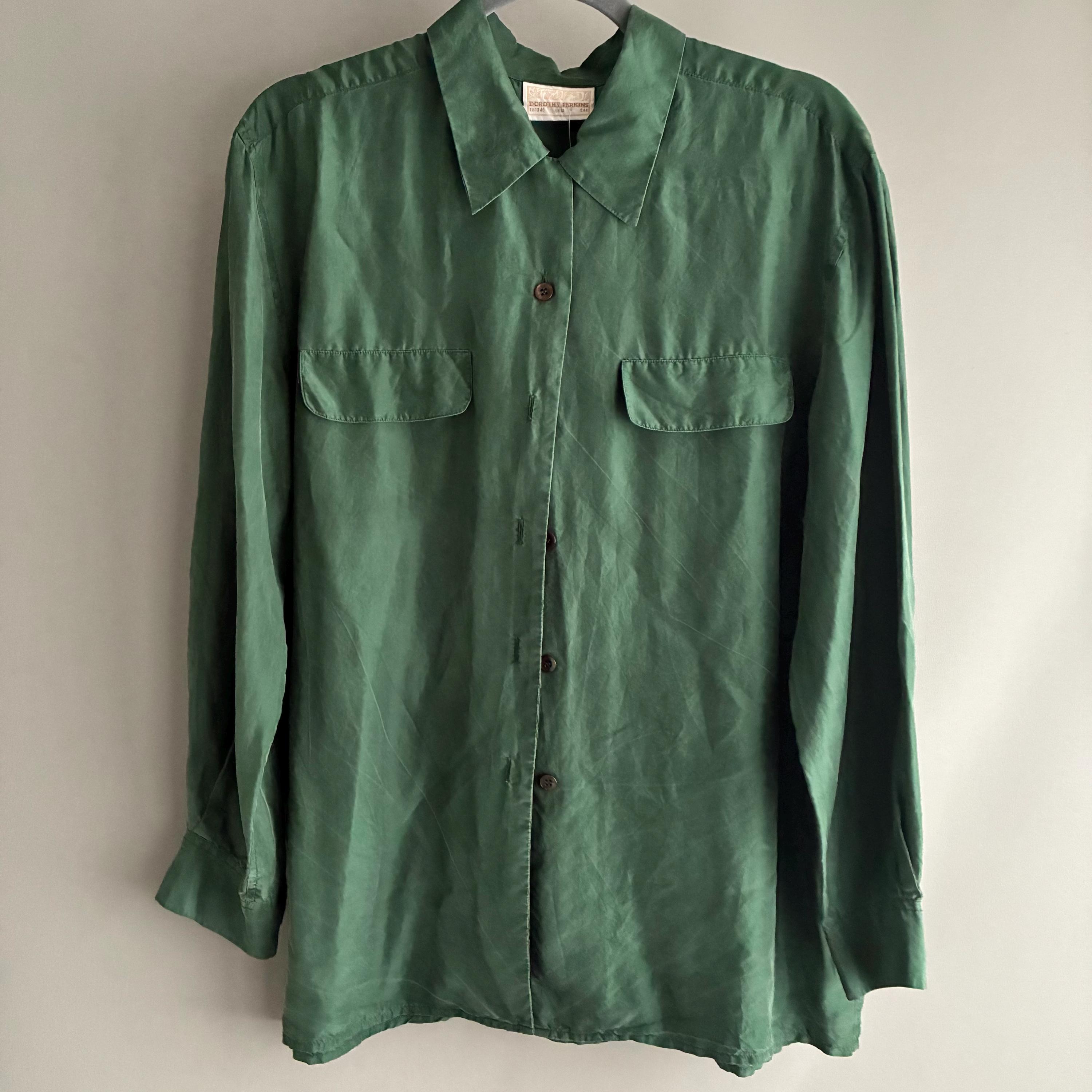 A true vintage 100% washed silk blouse by U.K brand Doroth Perkins. circa 1980s