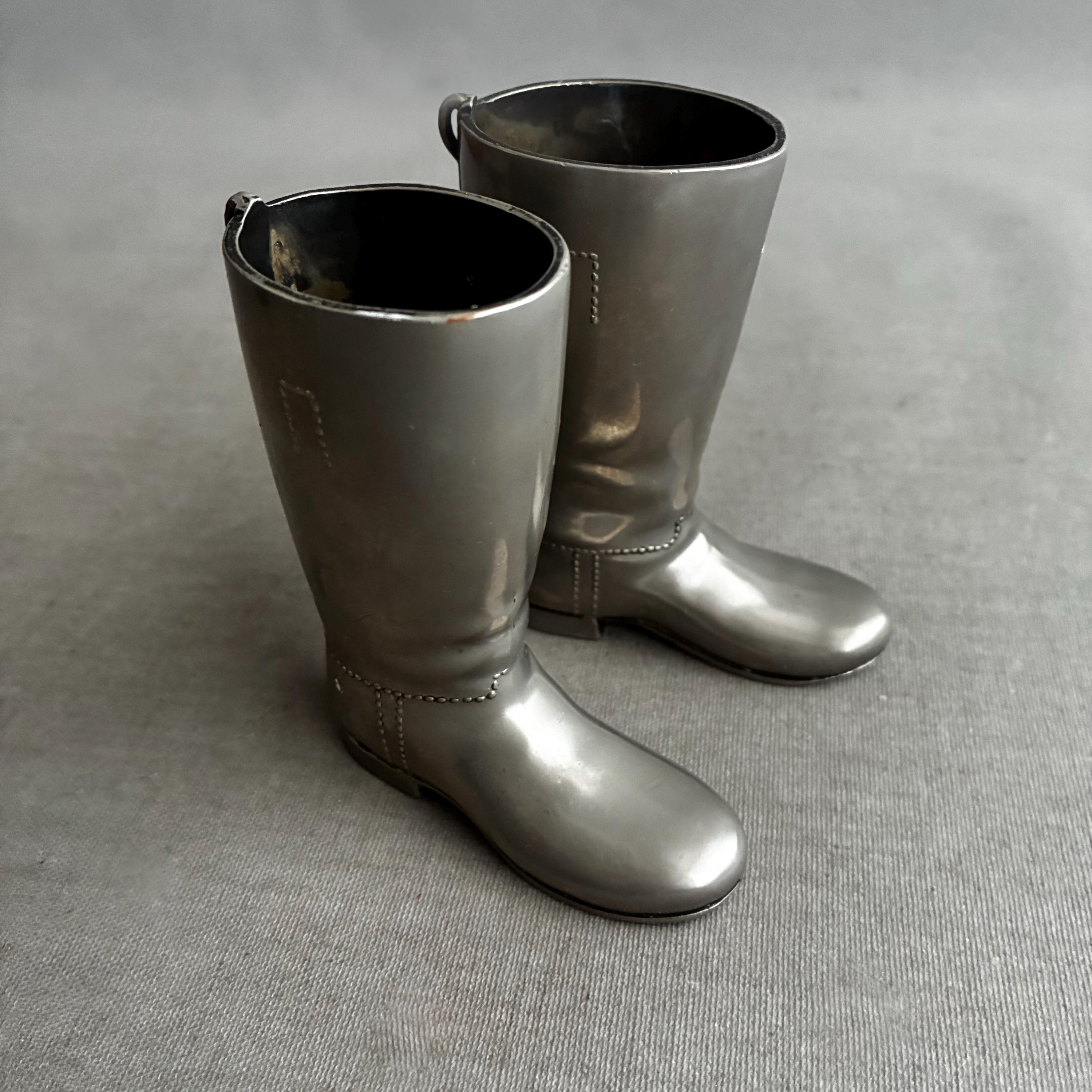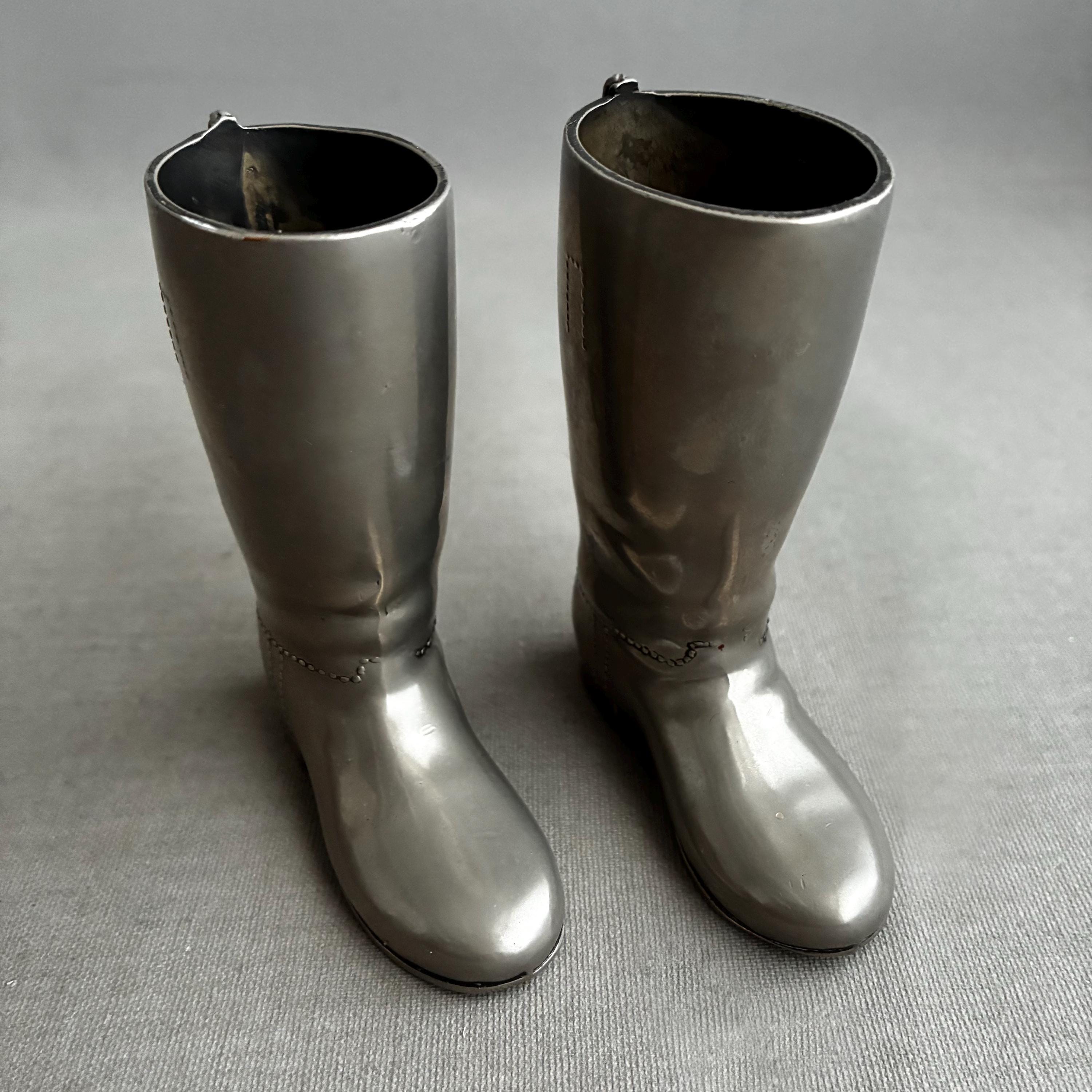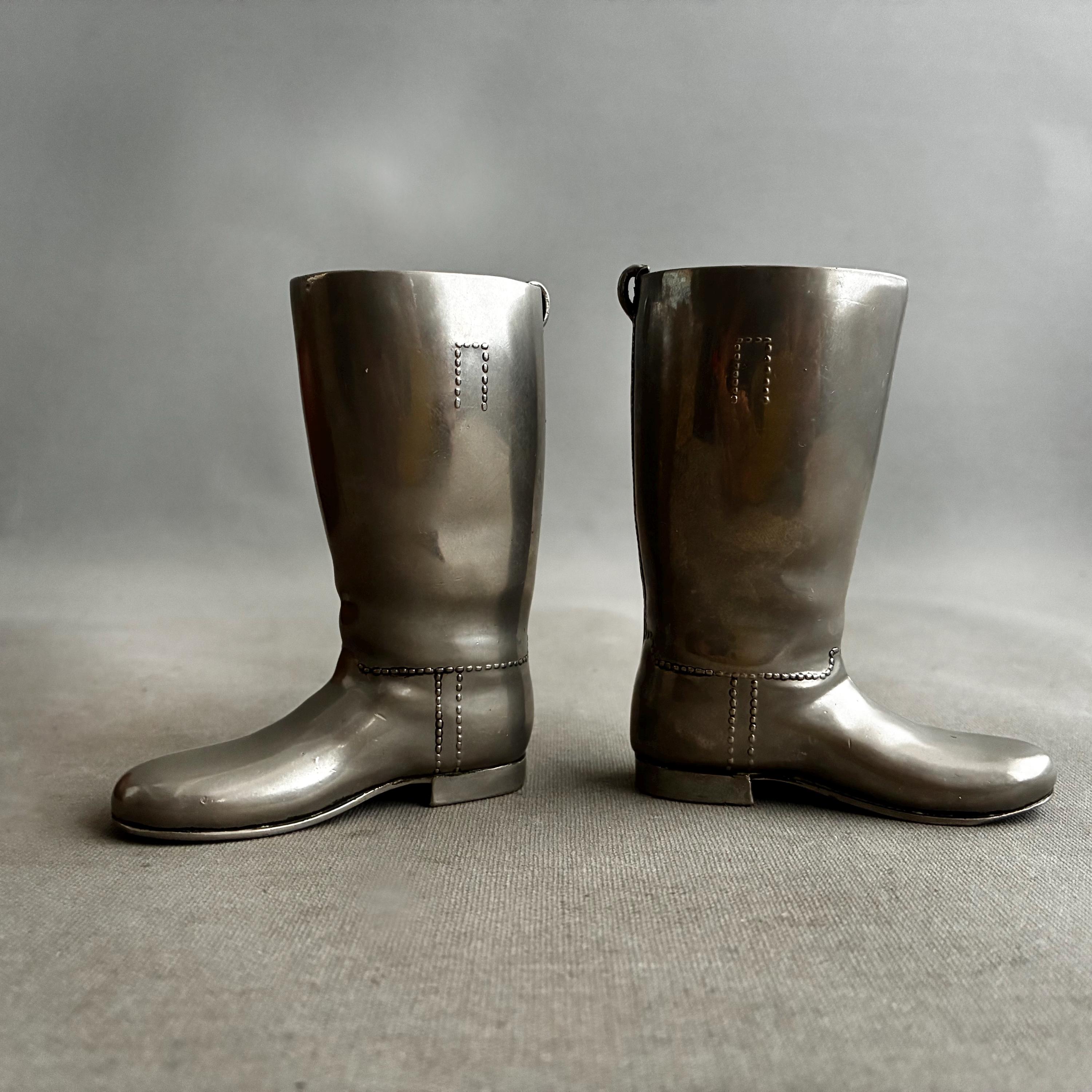 Beautifully crafted and pleasingly weighty made of metal most of the silver plate has been rubbed off but has left a charming vintage patina, these boots are both functional and collectible. They make a wonderful addition to any home bar, barware collection, or vintage kitchen display or a unique gift idea for cocktail lovers, gentleman's bar décor, cocktail lovers, vintage barware collectors