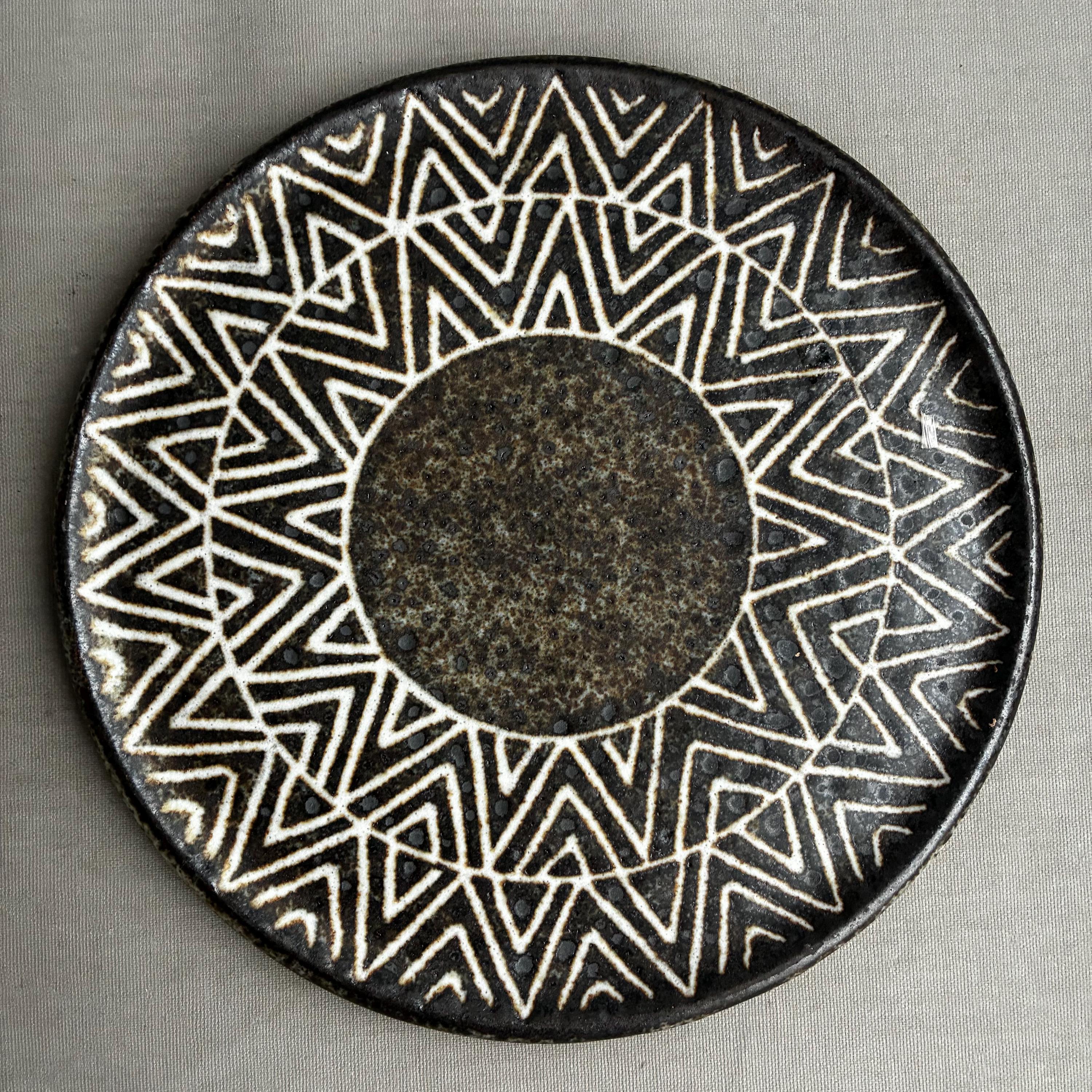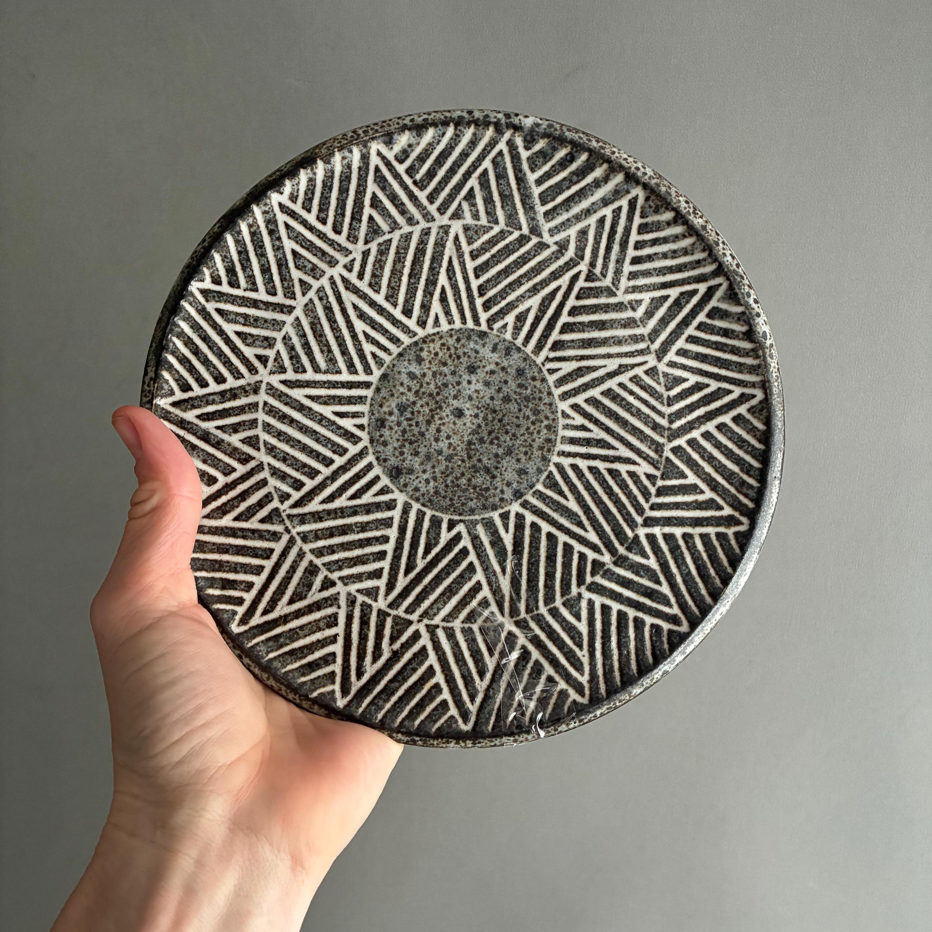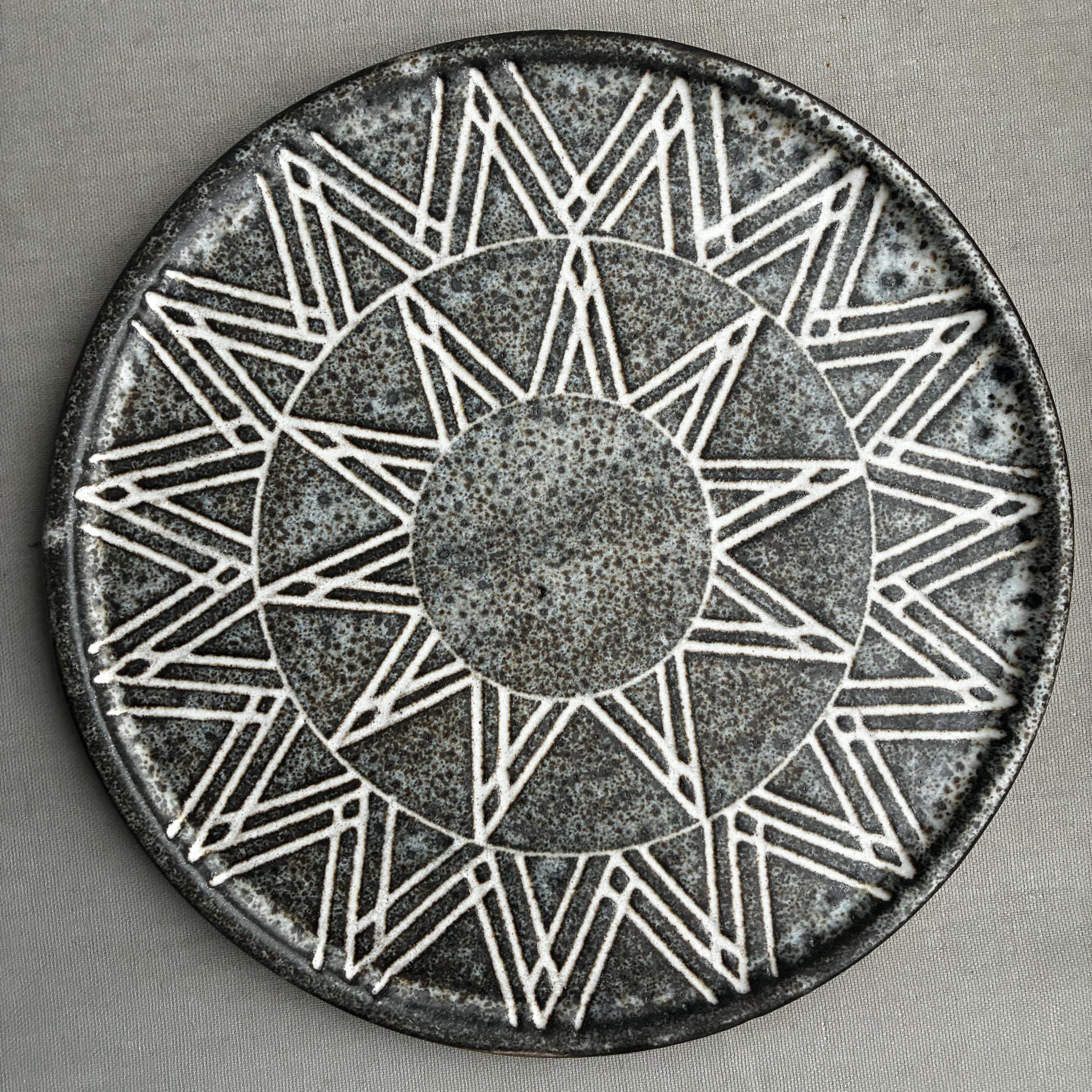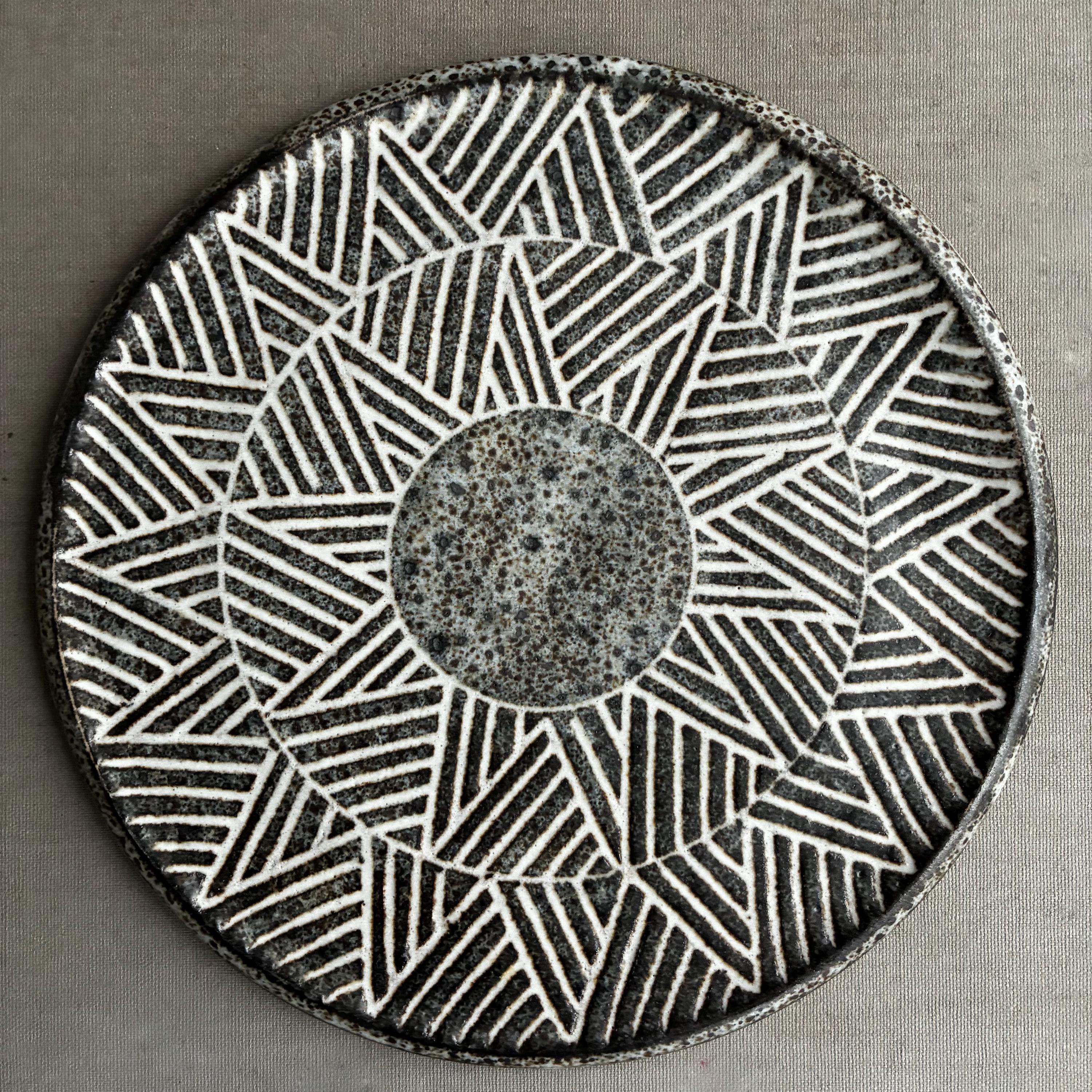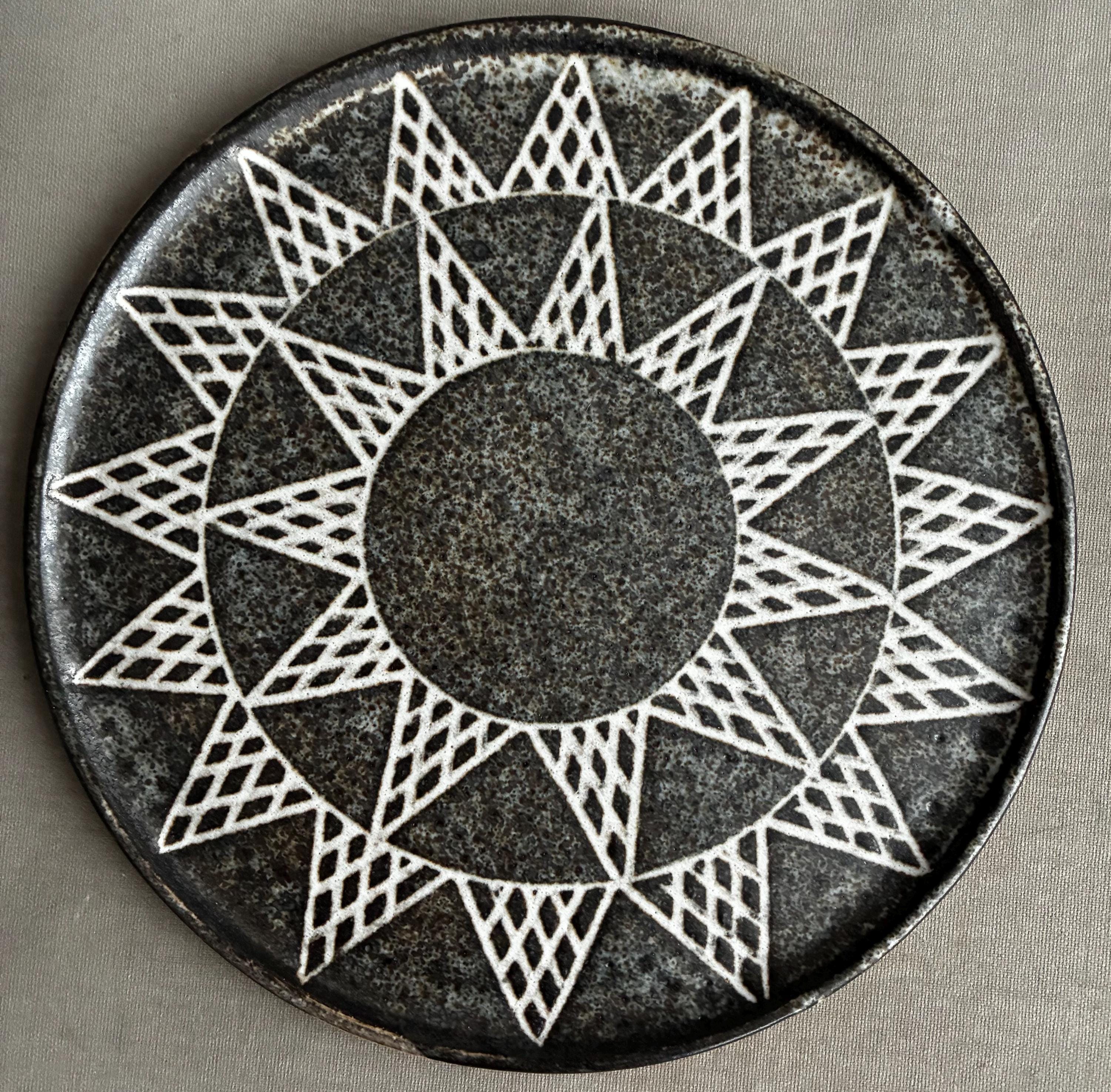 A beautiful set of Hand made studio pottery side plates . With a decorative sgraffito glaze technique finish. handmade so each plate truly unique . Set of 10 in various designs sold as a set . Will also be listing dinner plates soon. Heavy parcel so hefty postage fee. viewings and collection welcome at our north London workshop