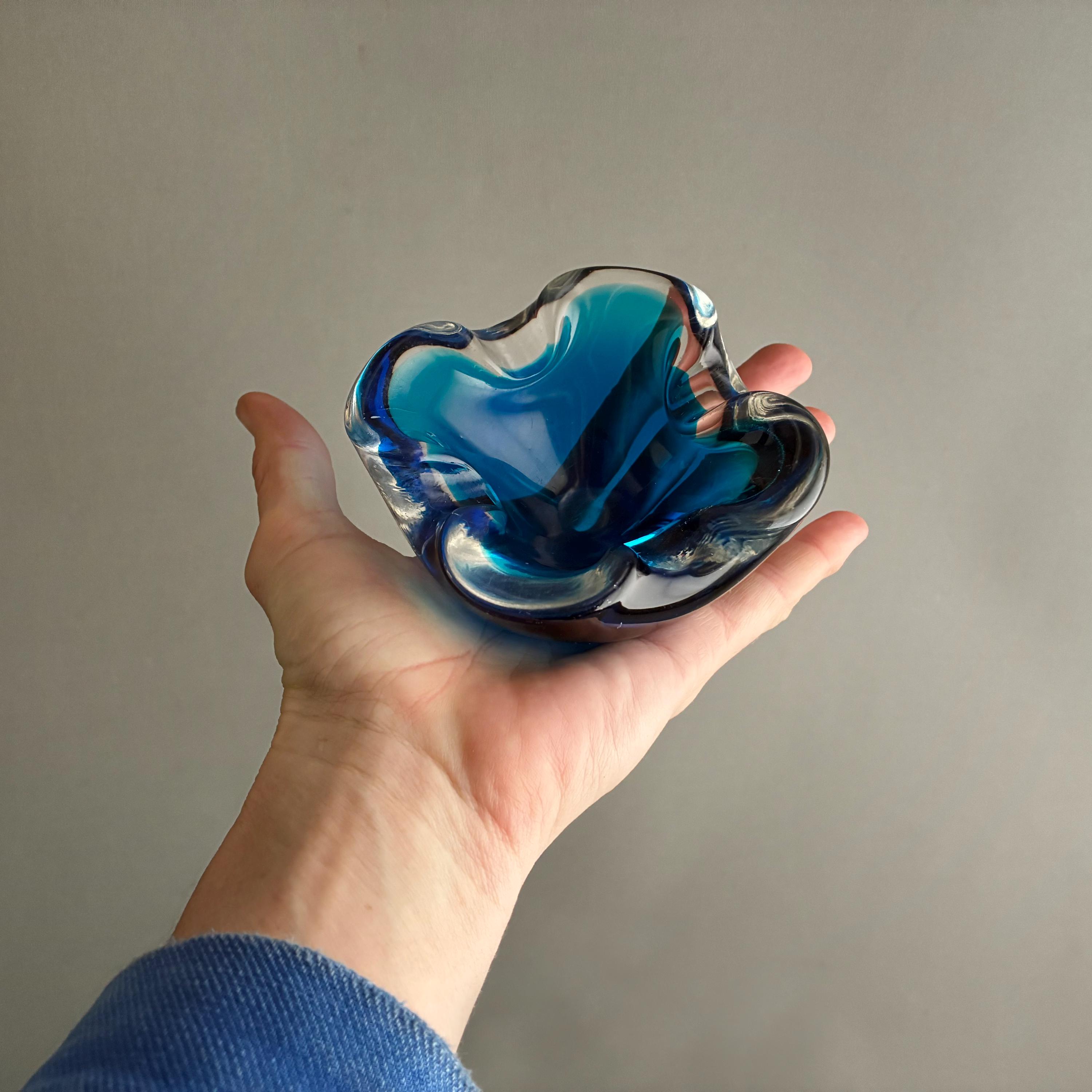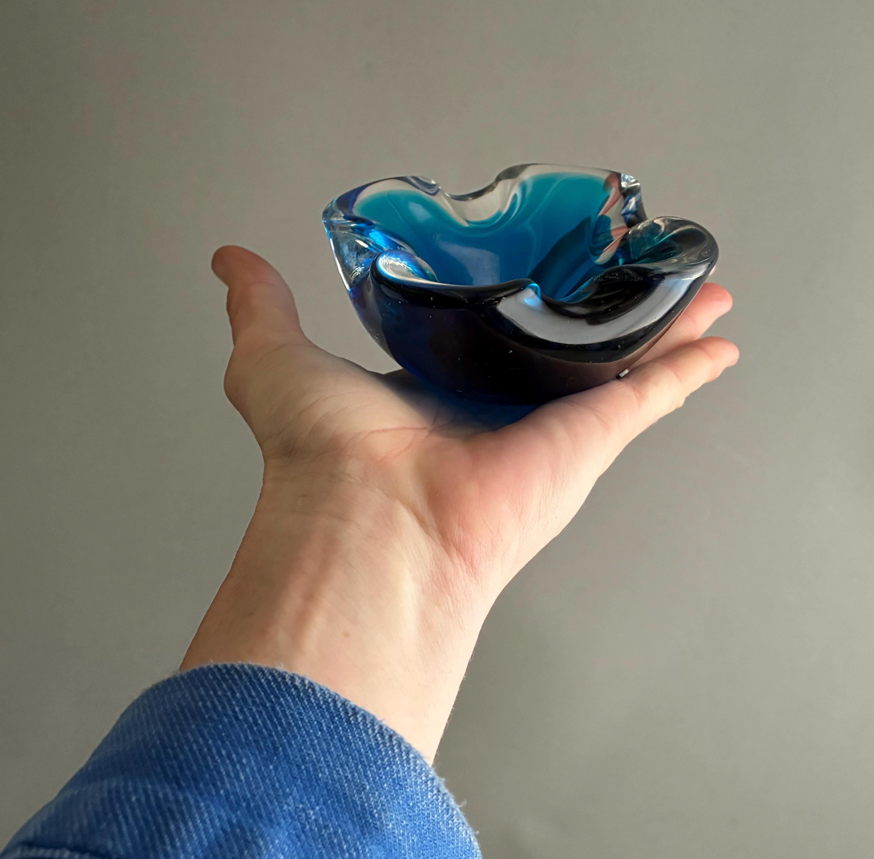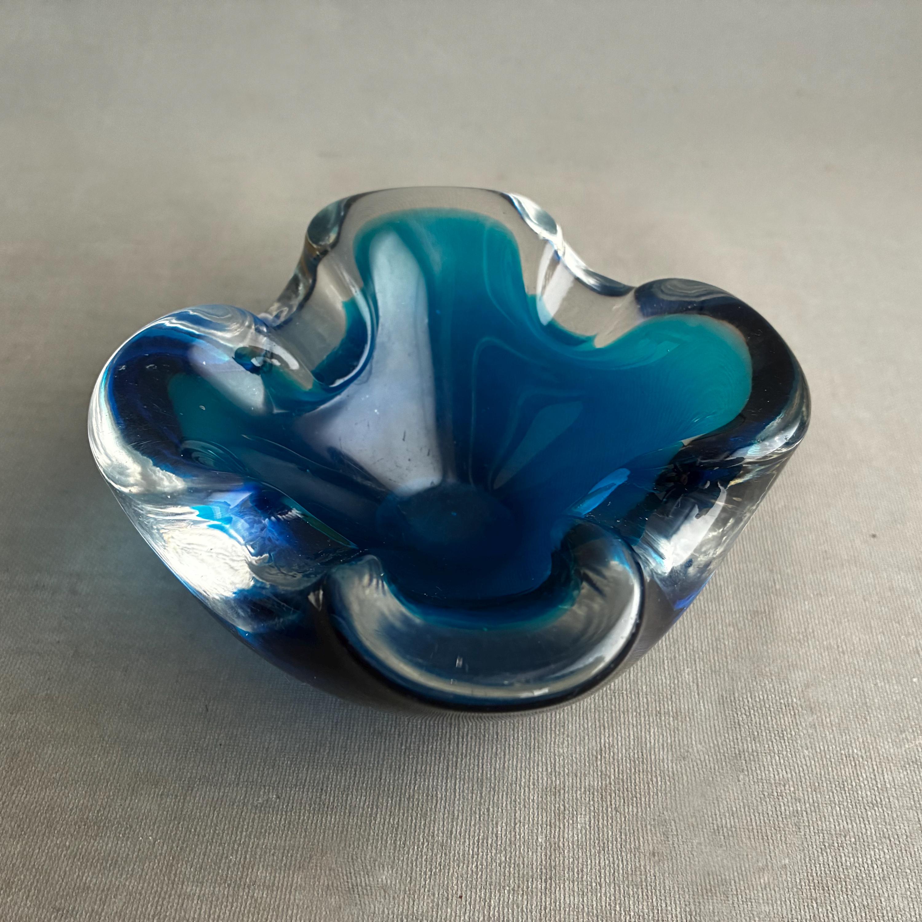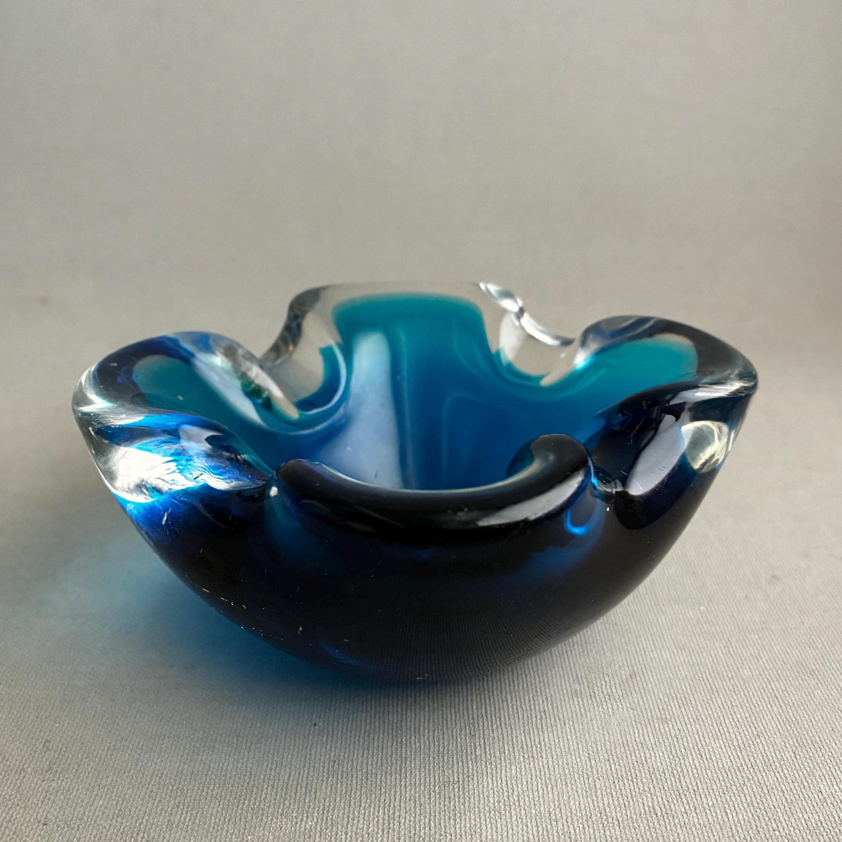 Beautiful large mid-century modern murano sommerso glass catchall/small studio glass ashtray circa 1960s /1970s