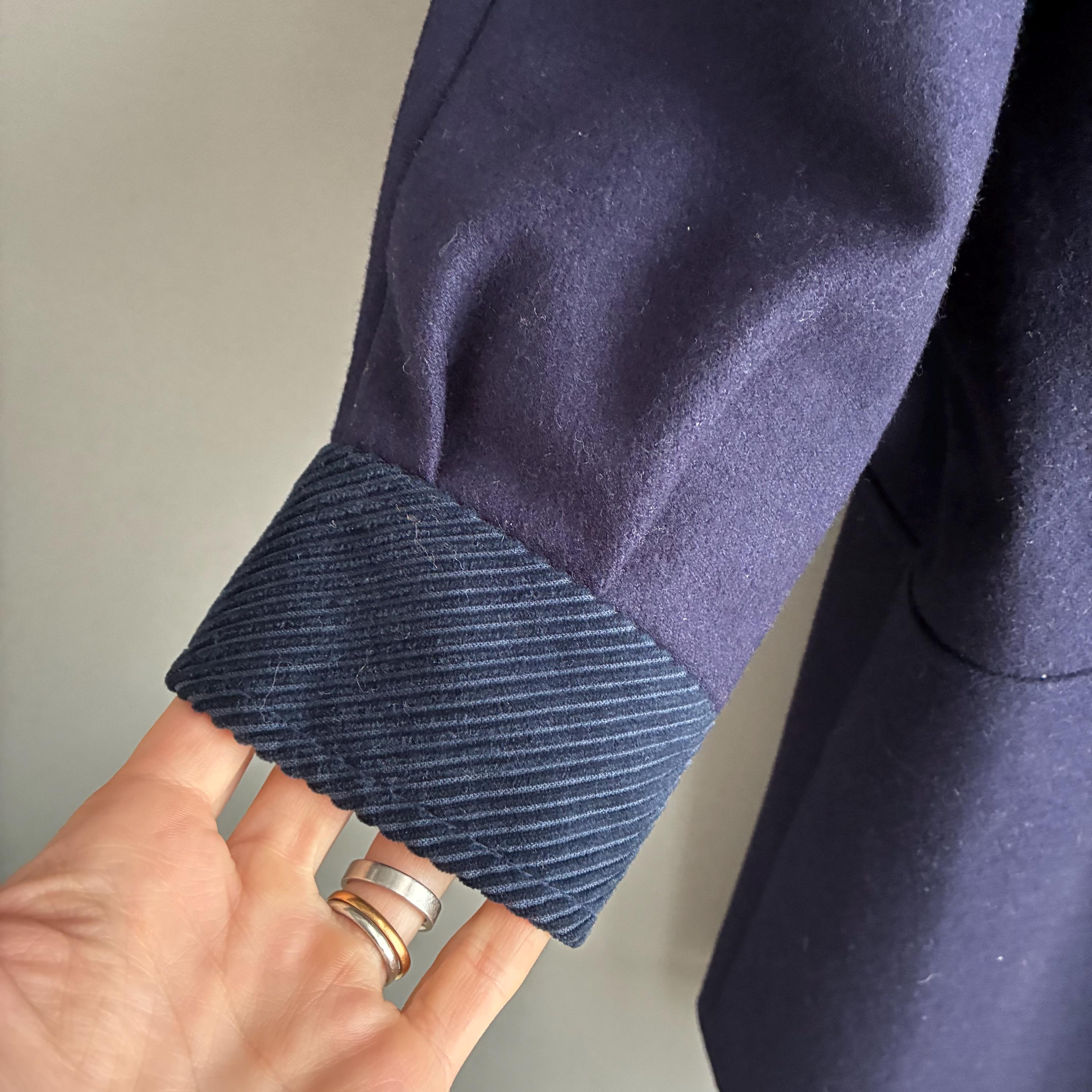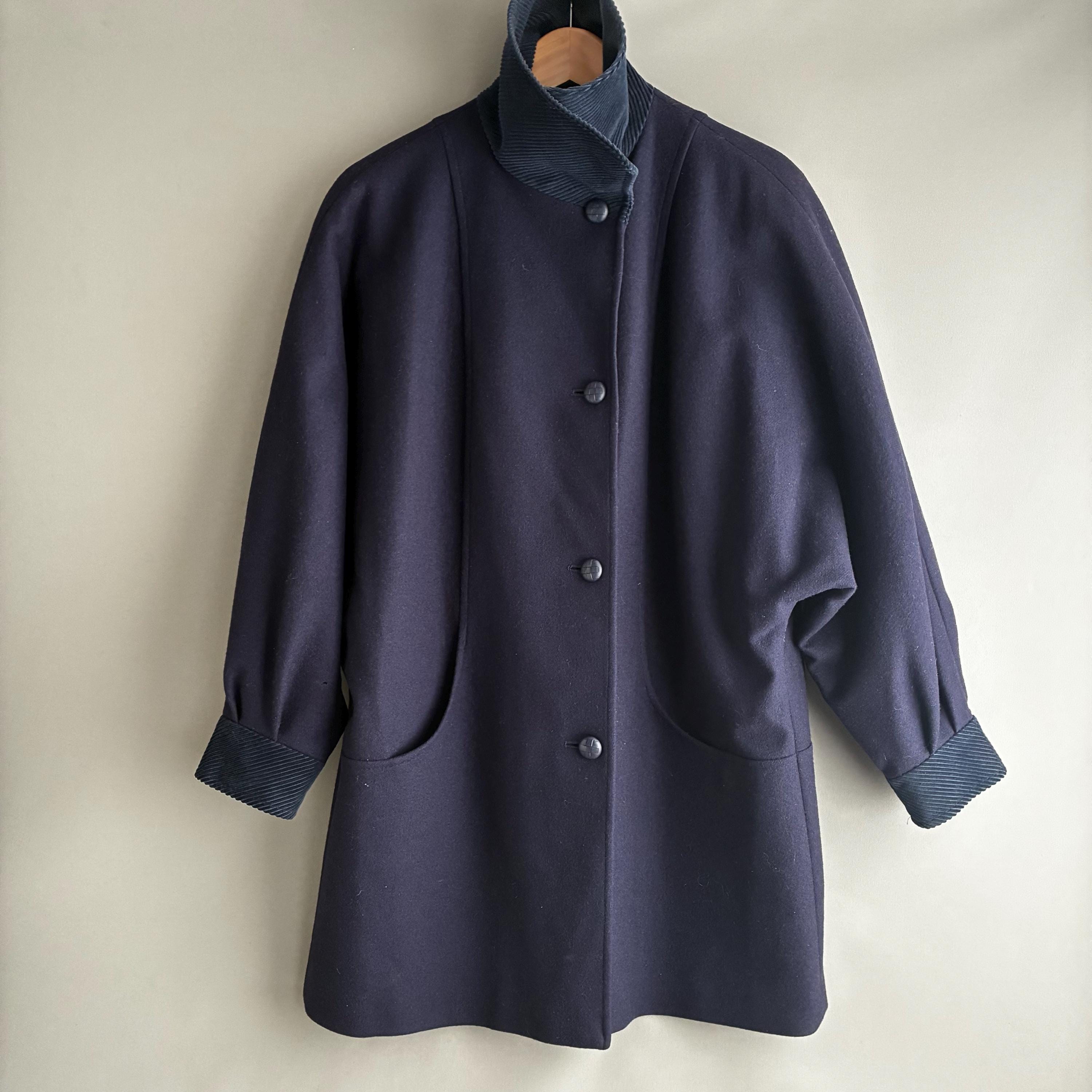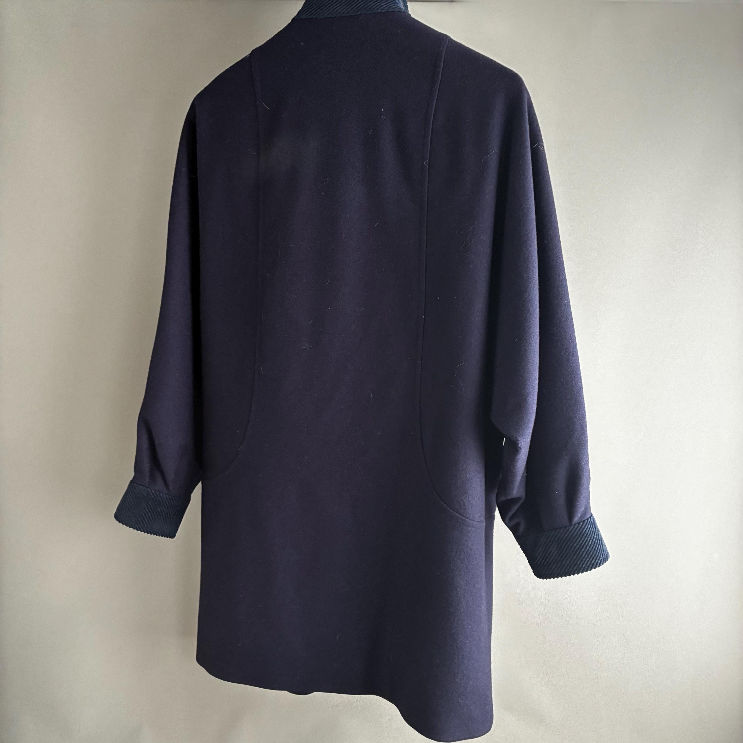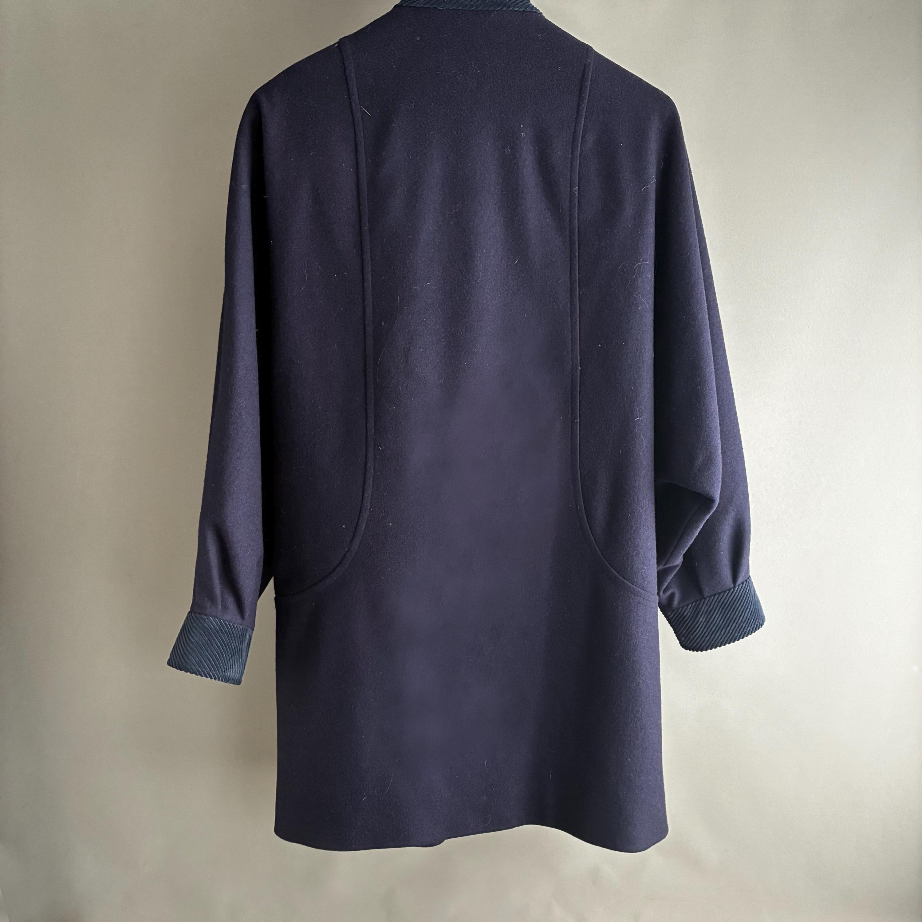 This is a fantastic Pure wool 1980s coat with corduroy collar and cuffs. Featuring gentle A- line shape with bat wing cuffed sleeves
