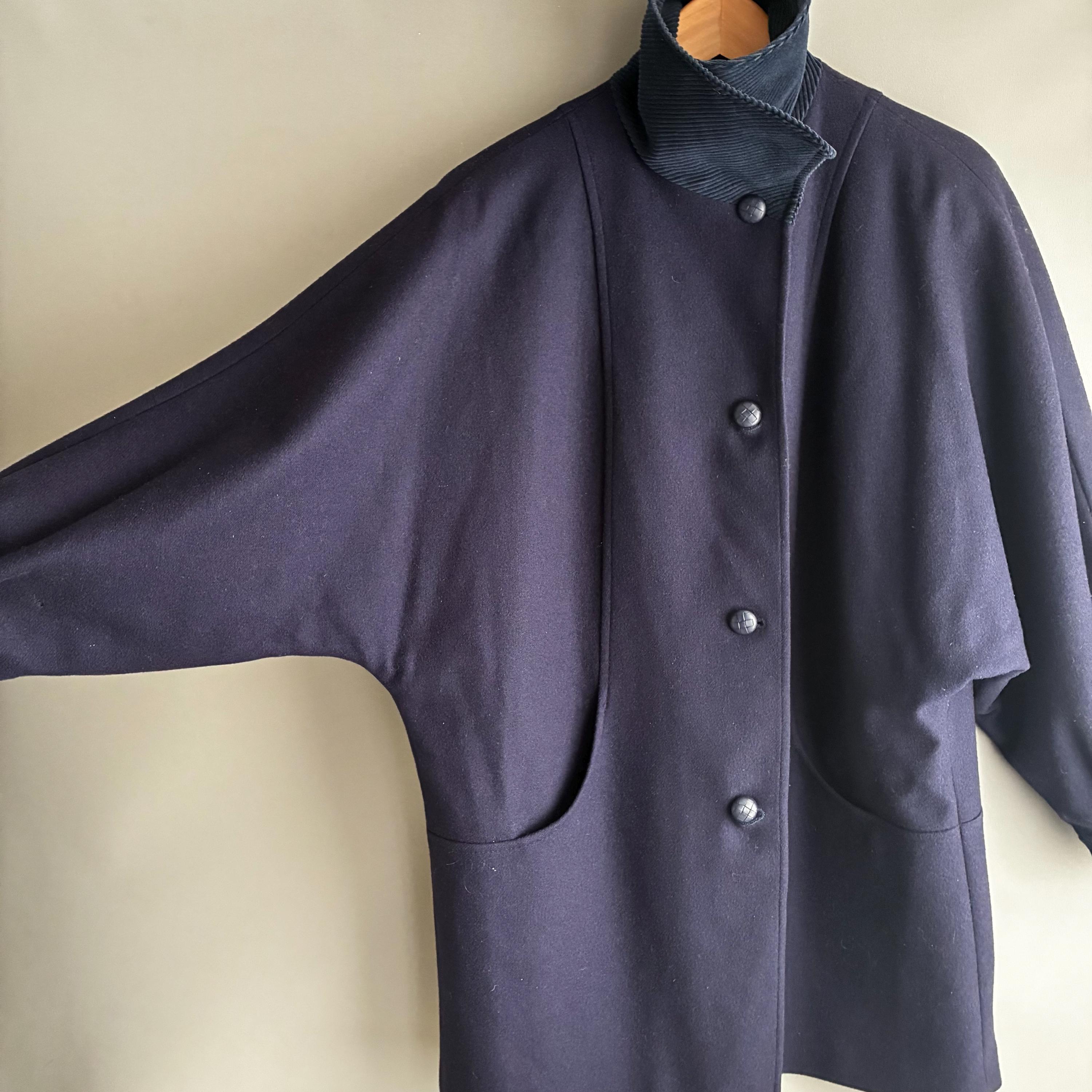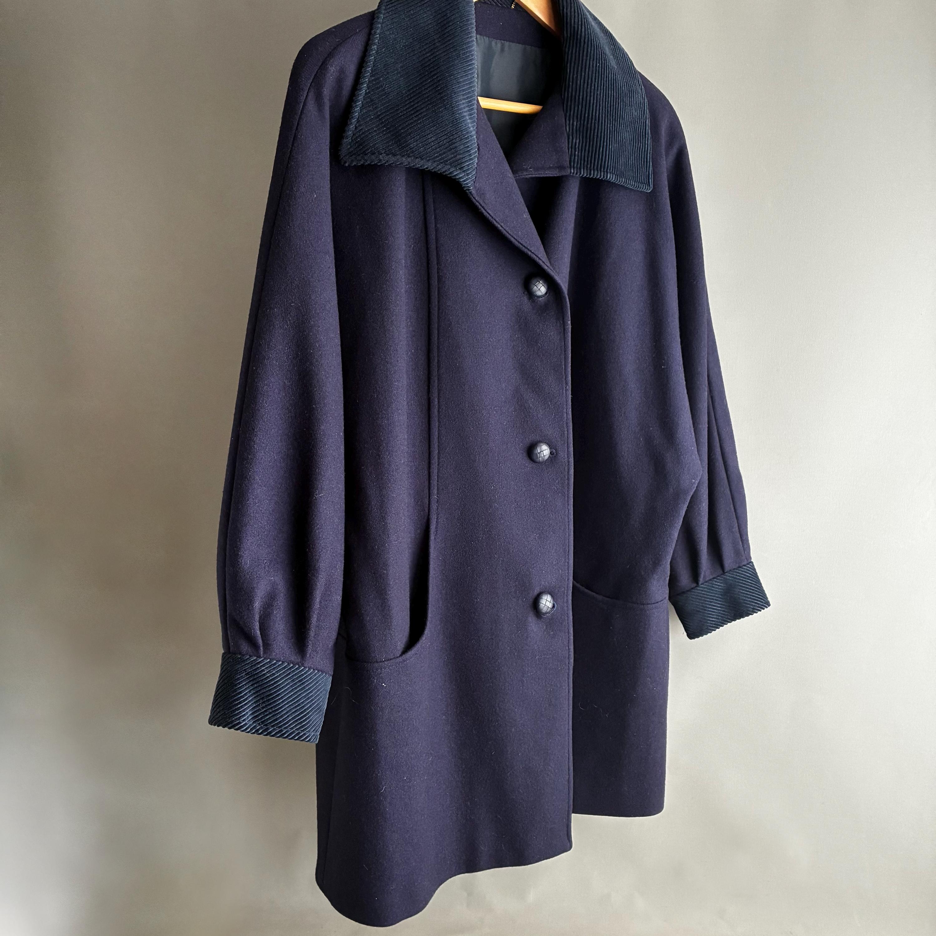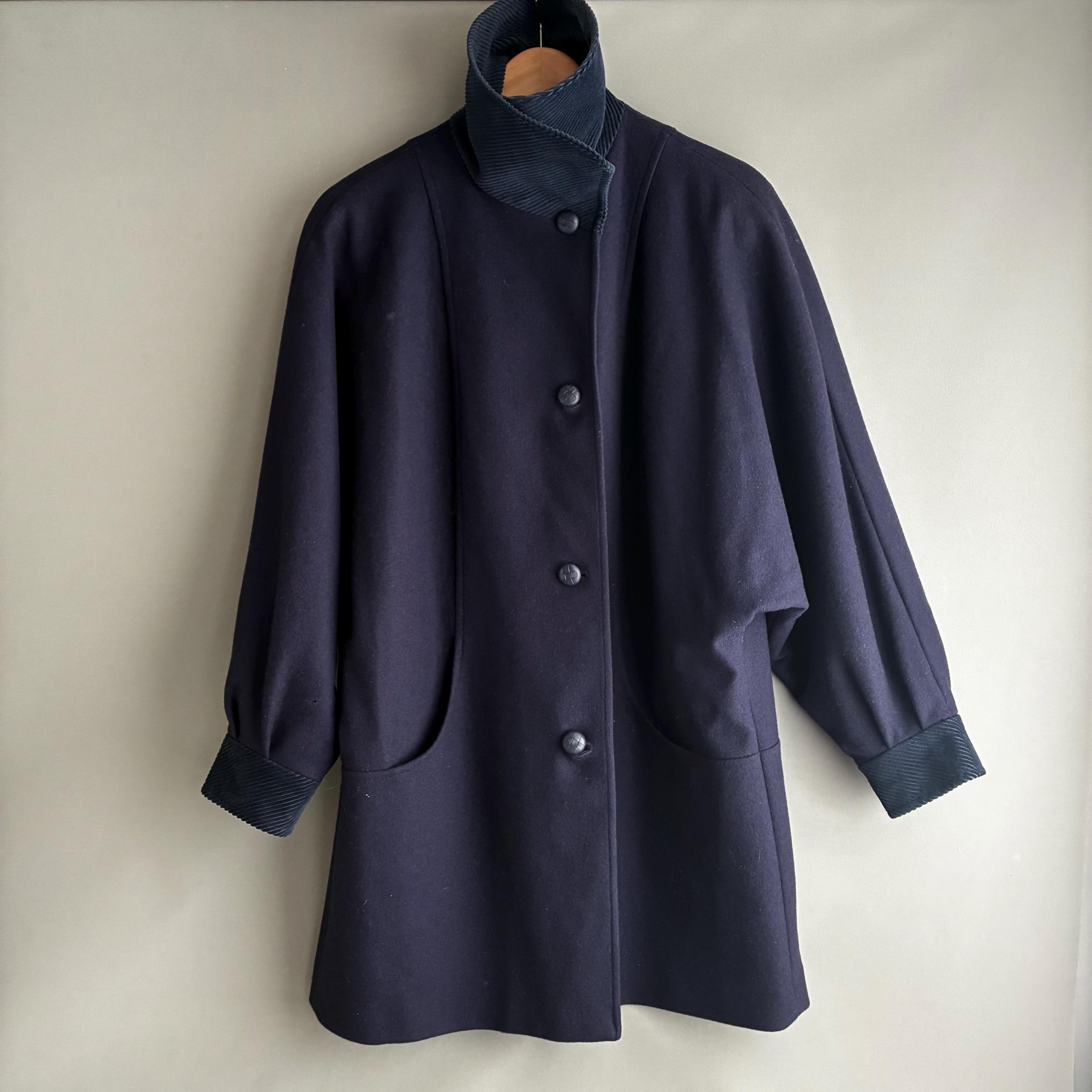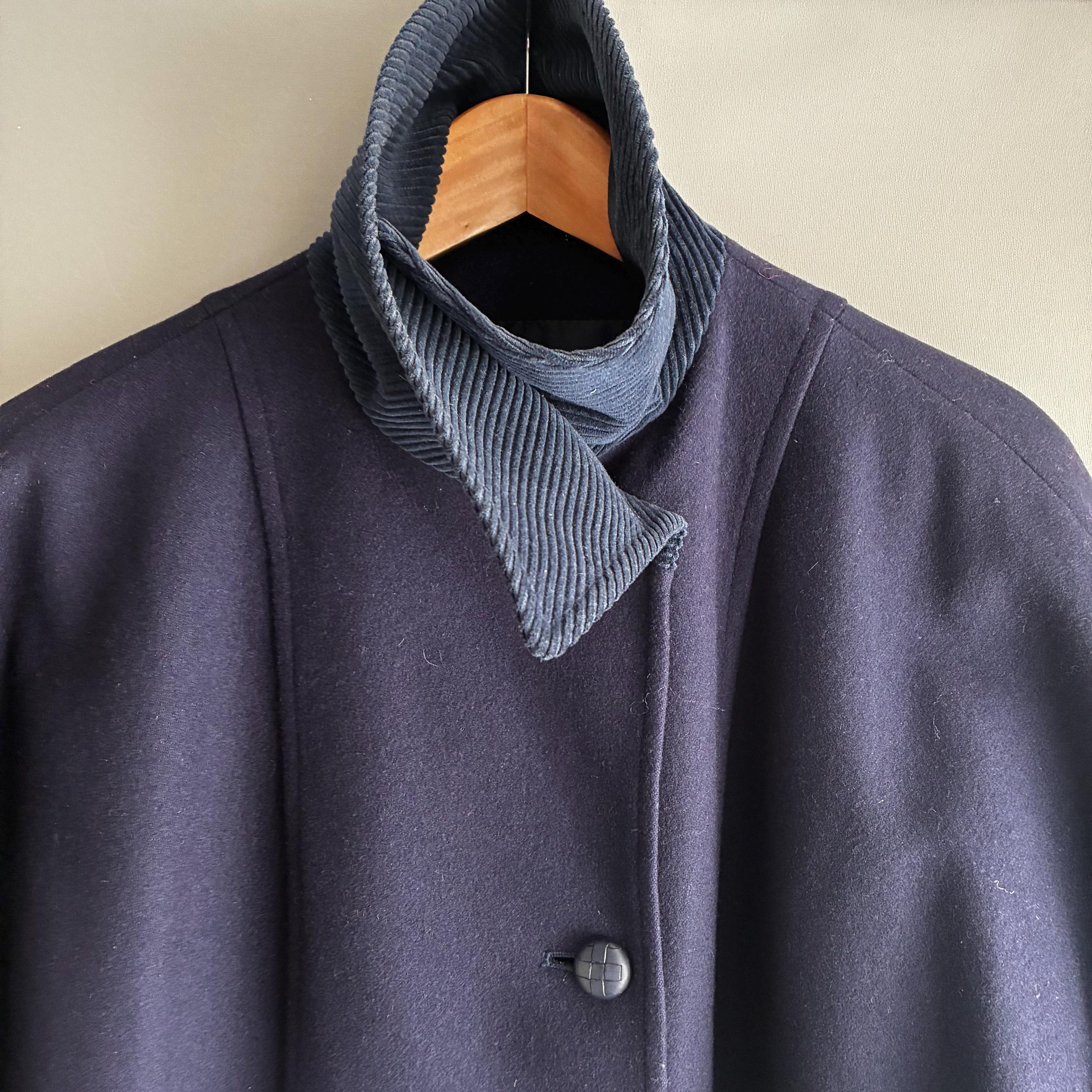 This is a fantastic Pure wool 1980s coat with corduroy collar and cuffs. Featuring gentle A- line shape with bat wing cuffed sleeves