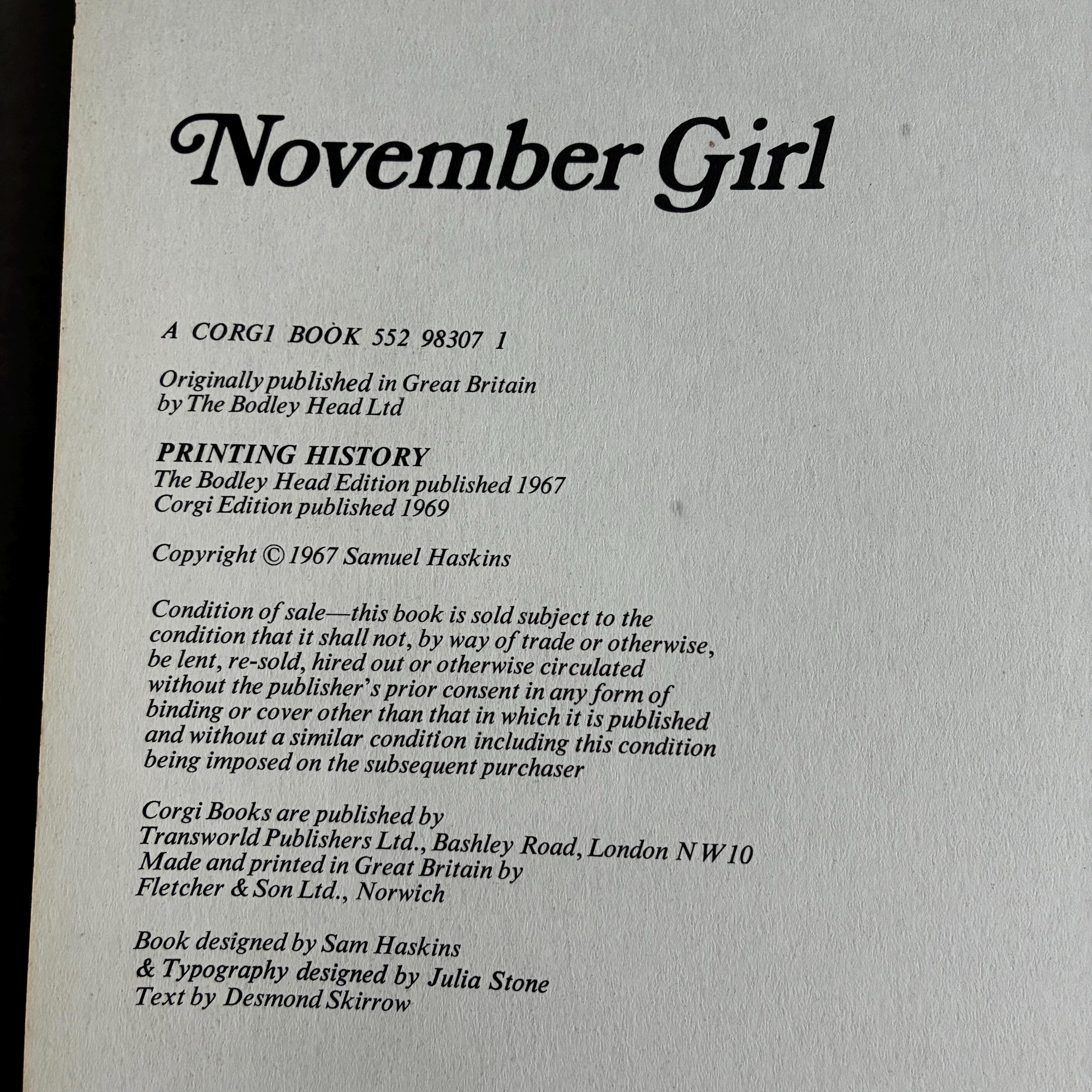Features black-and-white photographic plates printed in gravure. Sam Haskins was a renowned photographer known for his innovative style in fashion and advertising photography. November Girl (1967) contained key image collages which formed the basis of many graphic and surrealist experiments in the 1970s and 1980s. In good vintage condition