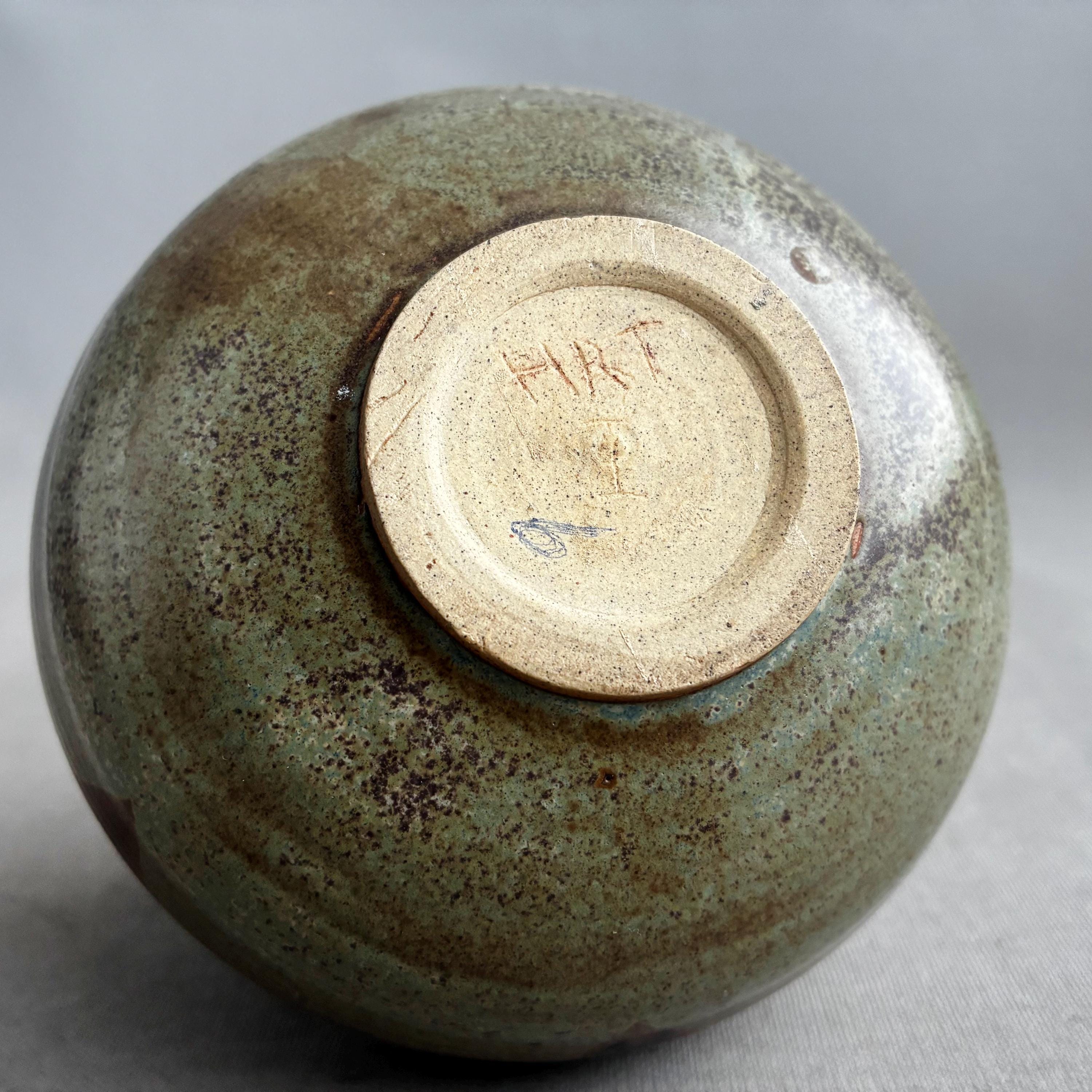 A beautiful vintage studio Stoneware ceramic vase Signed HRT at the bottom ( cant identify the maker)